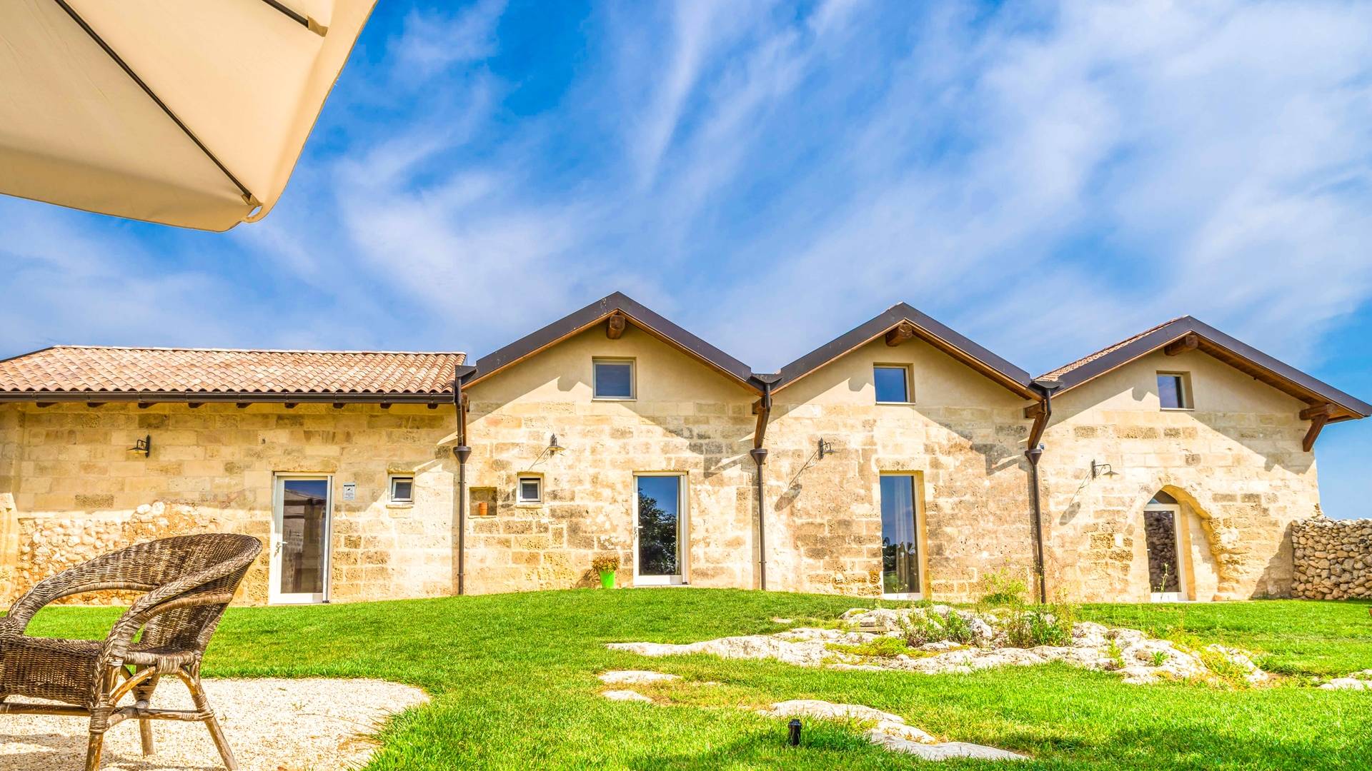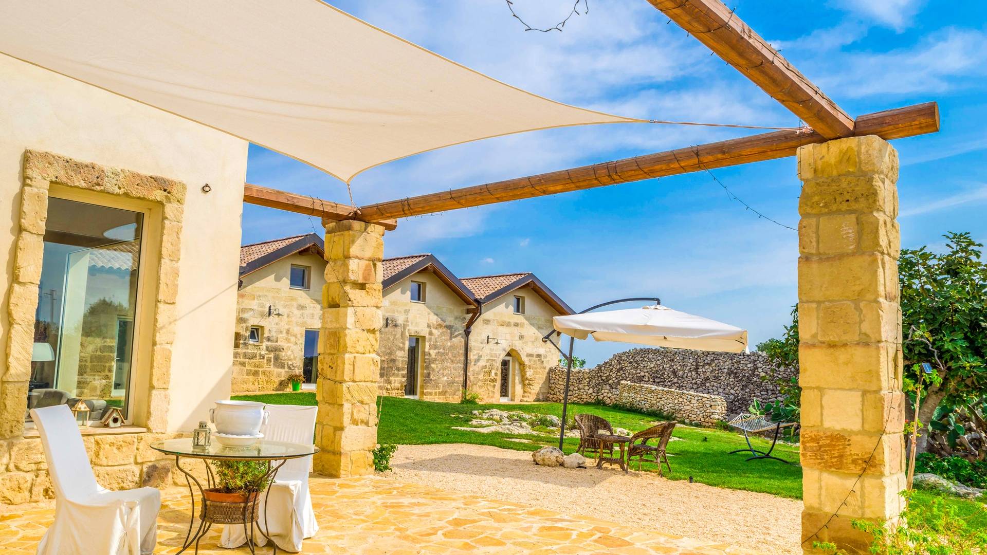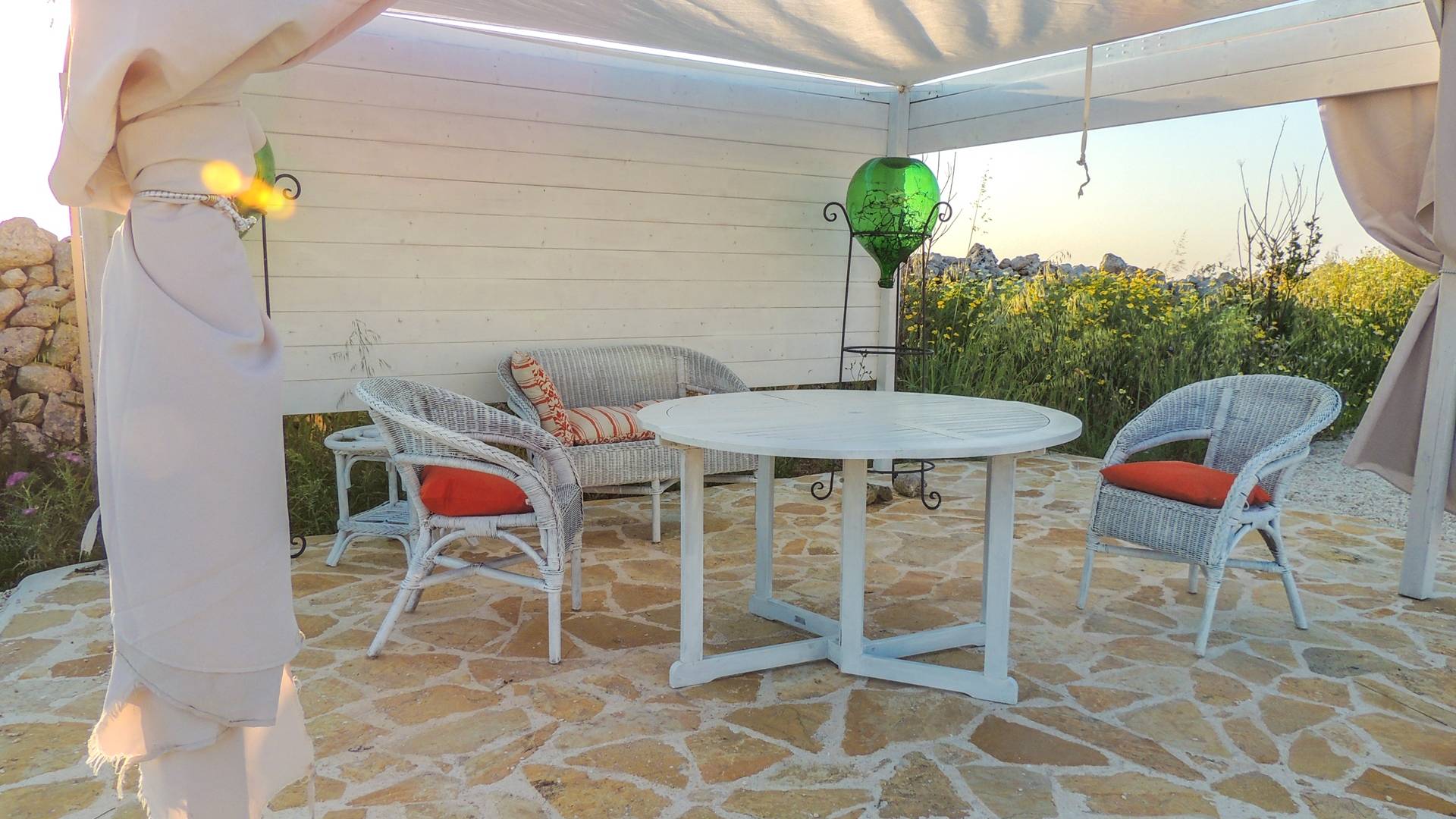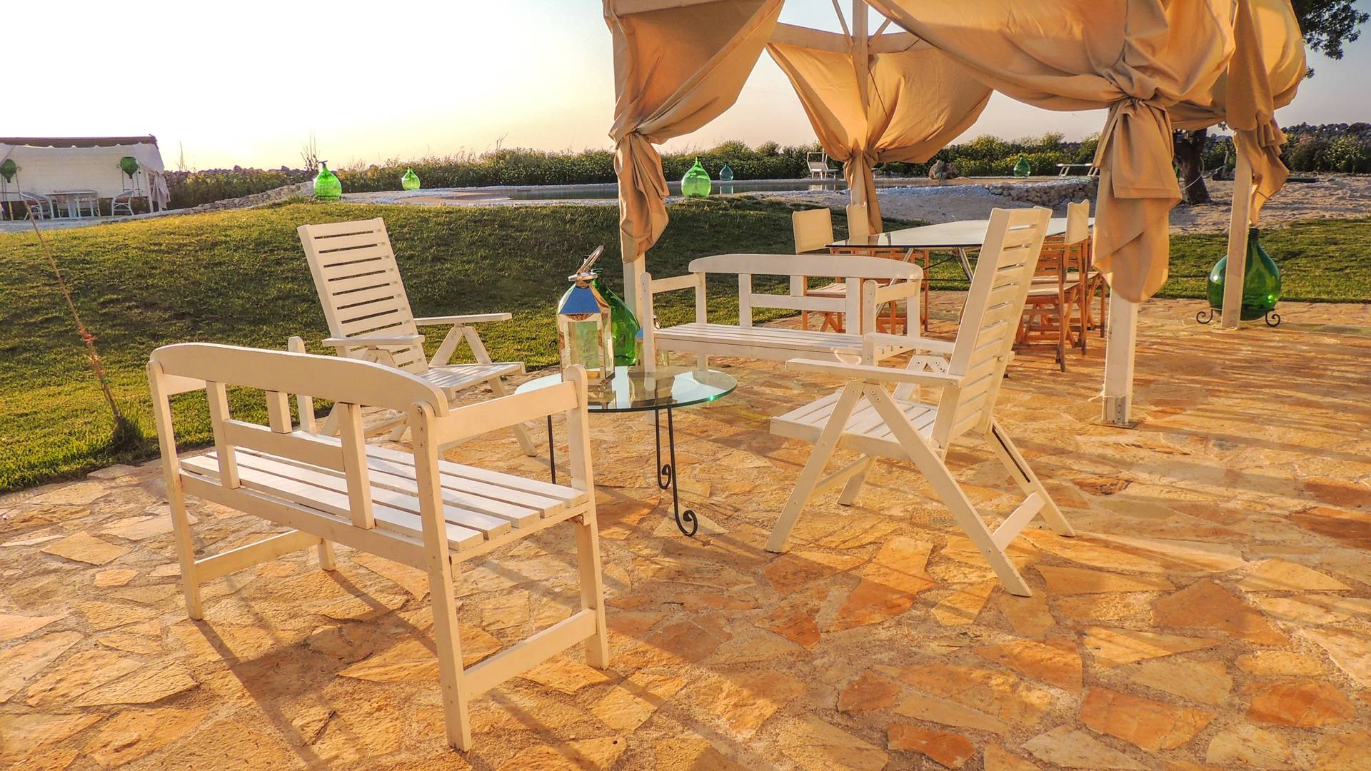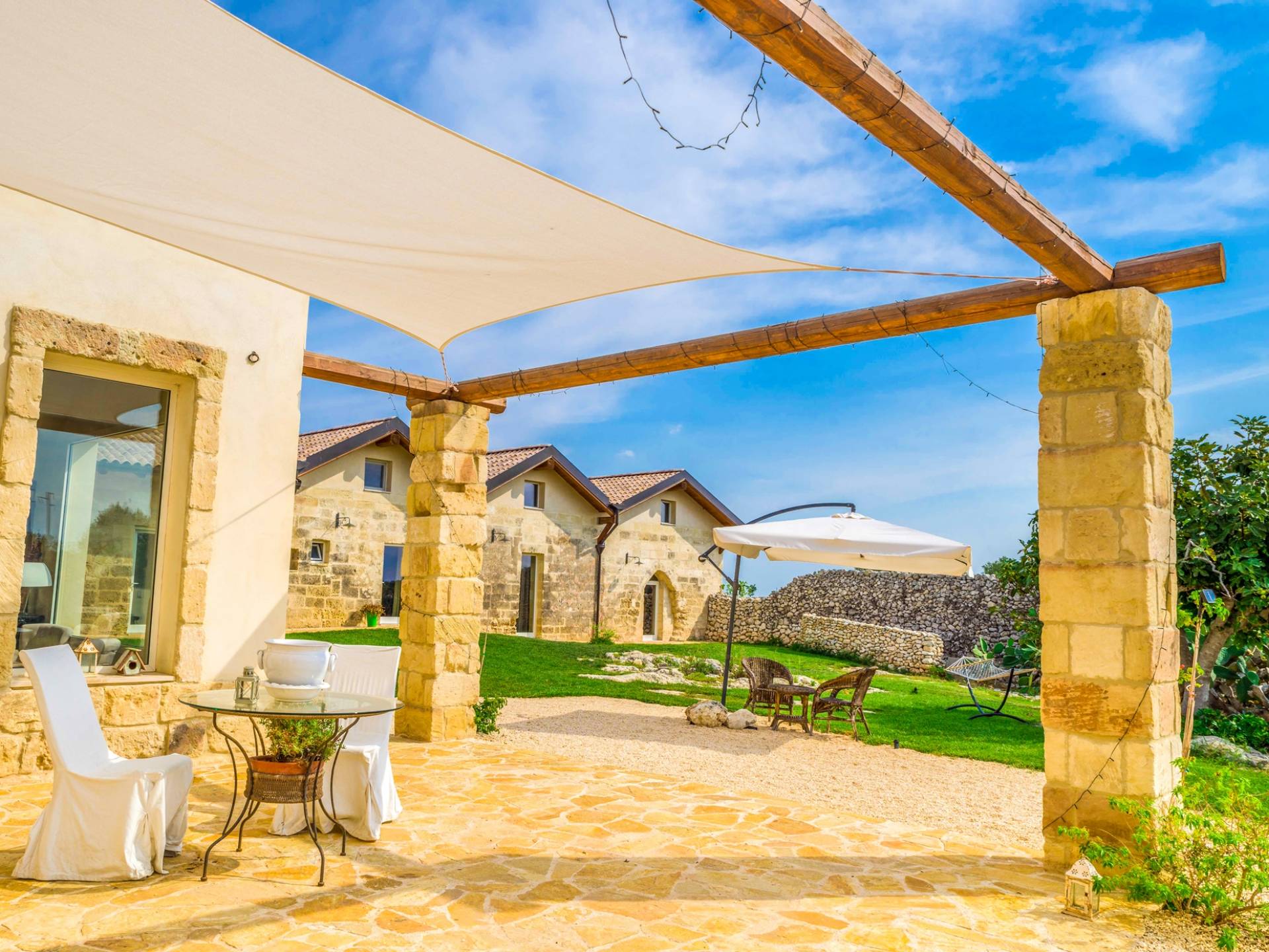Ακόμη και οι εξωτερικοί χώροι της Villa Emma, μιας όασης γαλήνης και ομορφιάς, πρέπει να βιωθούν. Η Maseria περιφραγμένη από ξερολιθιές και ανοίγει σε μια εξοχή που θα κάνει την ιδιωτικότητά σας μοναδική και θα σας μαγέψει. Η πιρόγα ενός μικρού λόφου, η μεγάλη εξωτερική πισίνα θα μοιάζει με θαύμα στα μάτια σας, όπου μπορείτε να κάνετε ηλιοθεραπεία μεταξύ μιας βουτιάς και της άλλης, να πιείτε ένα ποτό ή ένα κοκτέιλ. Καθίστε στο μεγάλο σολάριουμ, εξοπλισμένο με καρέκλες και ξαπλώστρες, απολαύστε ένα εξαιρετικό μπάρμπεκιου στον ευρύχωρο χώρο μπάρμπεκιου σε σχήμα αμφιθεάτρου ή χαλαρώστε κάτω από ένα από τα μεγάλα κιόσκια. Η κατασκευή γεννήθηκε με μια πράσινη τάση, καθώς σχεδιάστηκε εξ ολοκλήρου με γυαλί χαμηλών εκπομπών, για να την απομονώνει από τη θερμότητα, τα πάνελ και τις ανεμογεννήτριες για ενέργεια.