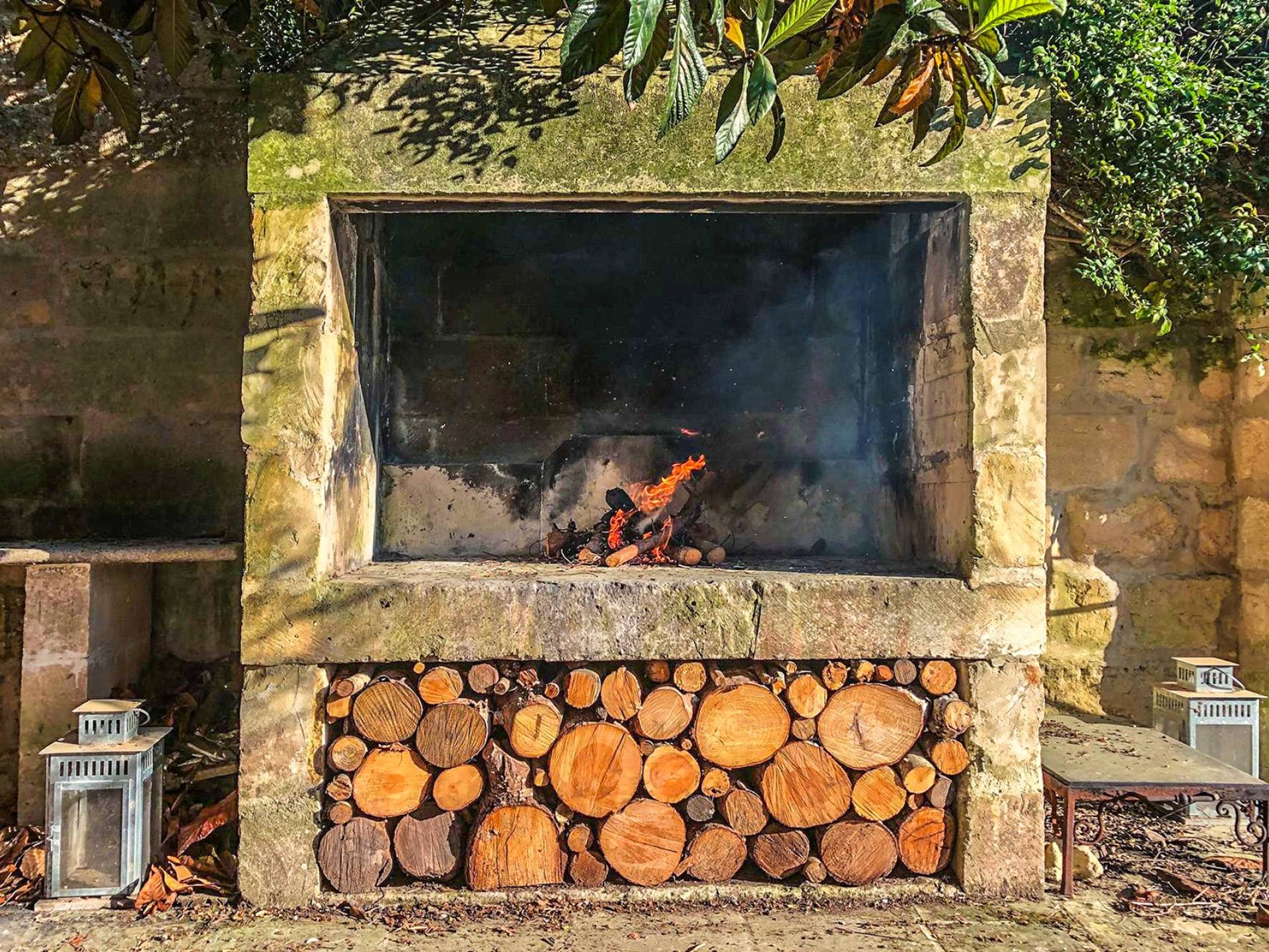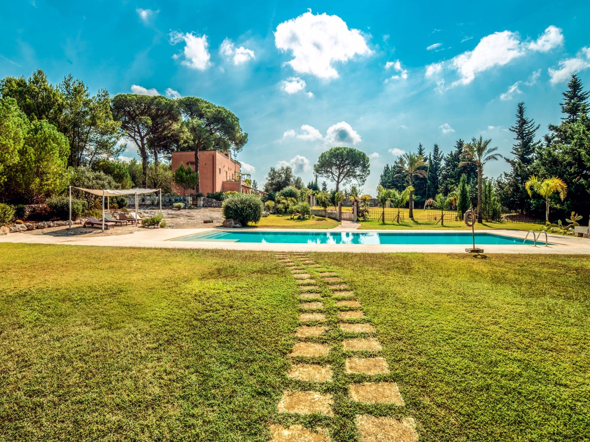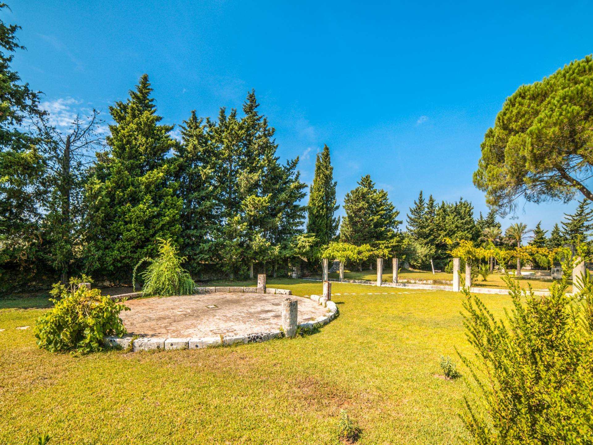 Επίσης έξω, βολικό και στρατηγικό για υπαίθρια μεσημεριανά γεύματα και δείπνα, το αίθριο, το οποίο συνδέεται με το σπίτι με μεγάλα παράθυρα, και ο χώρος για μπάρμπεκιου με ένα μεγάλο πέτρινο τζάκι με ξύλα. Στις καταπράσινες εκτάσεις του σπιτιού, υπάρχουν αιωνόβια δέντρα, μνημειακά πεύκα, φοίνικες αλλά και ελιές και πολλά αποστάγματα του μεσογειακού θάμνου.