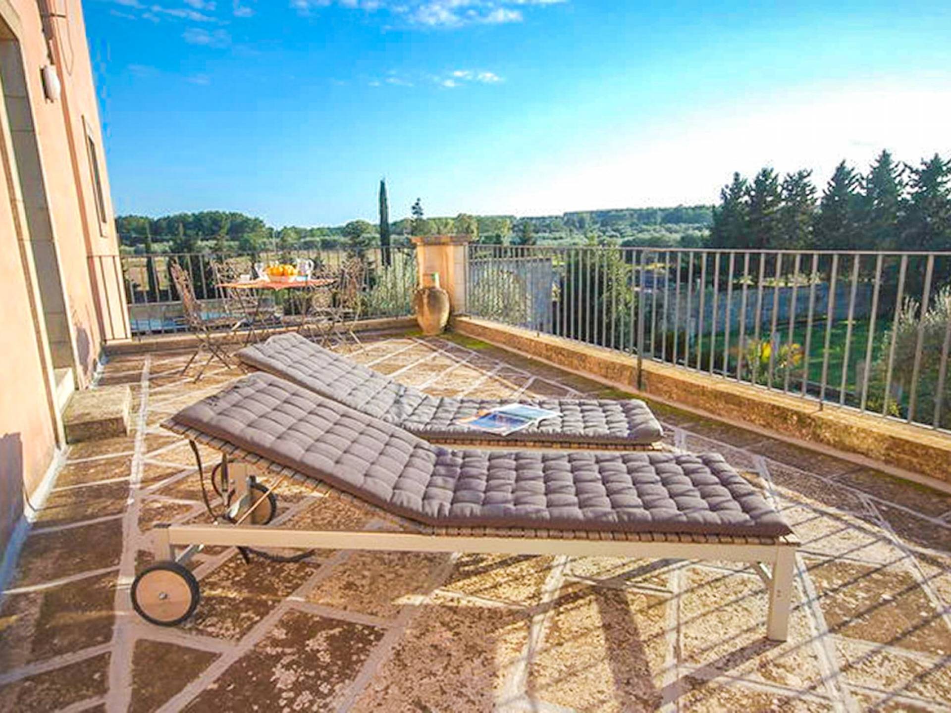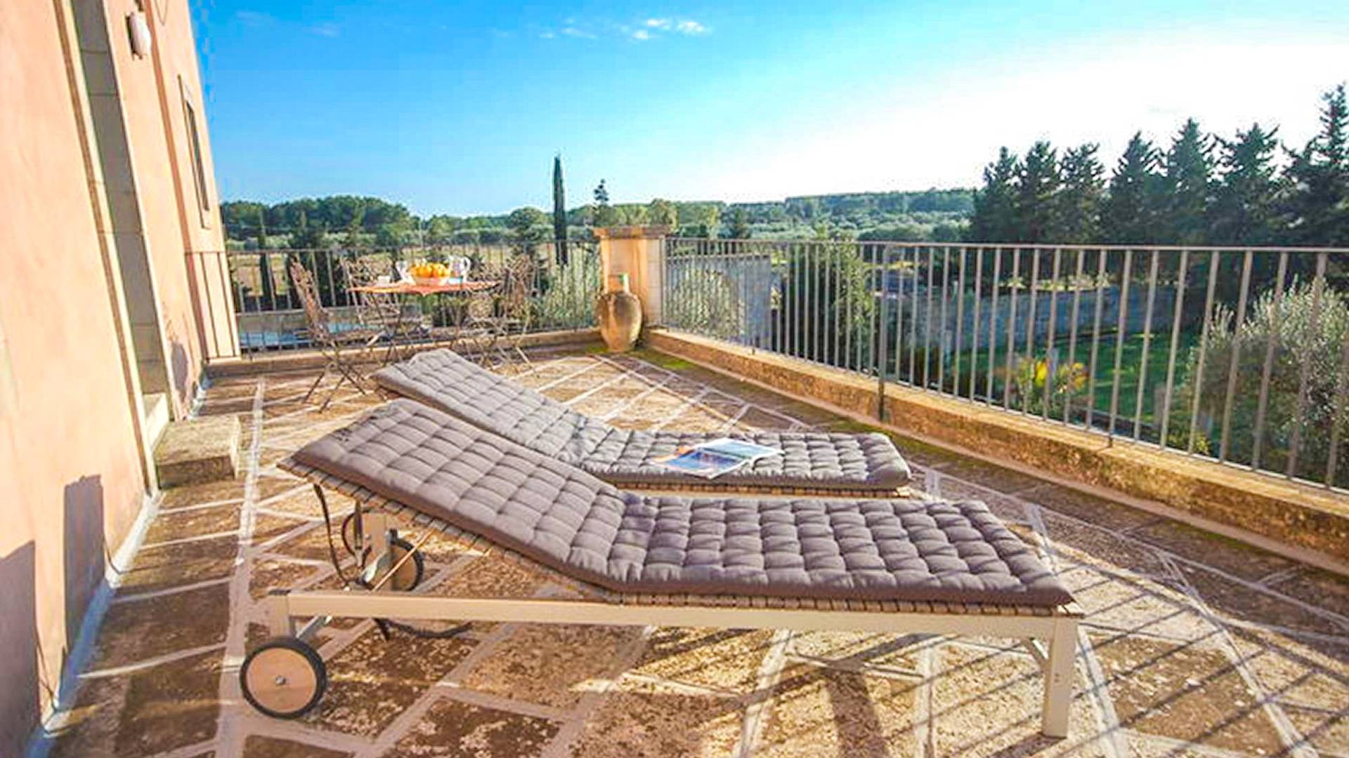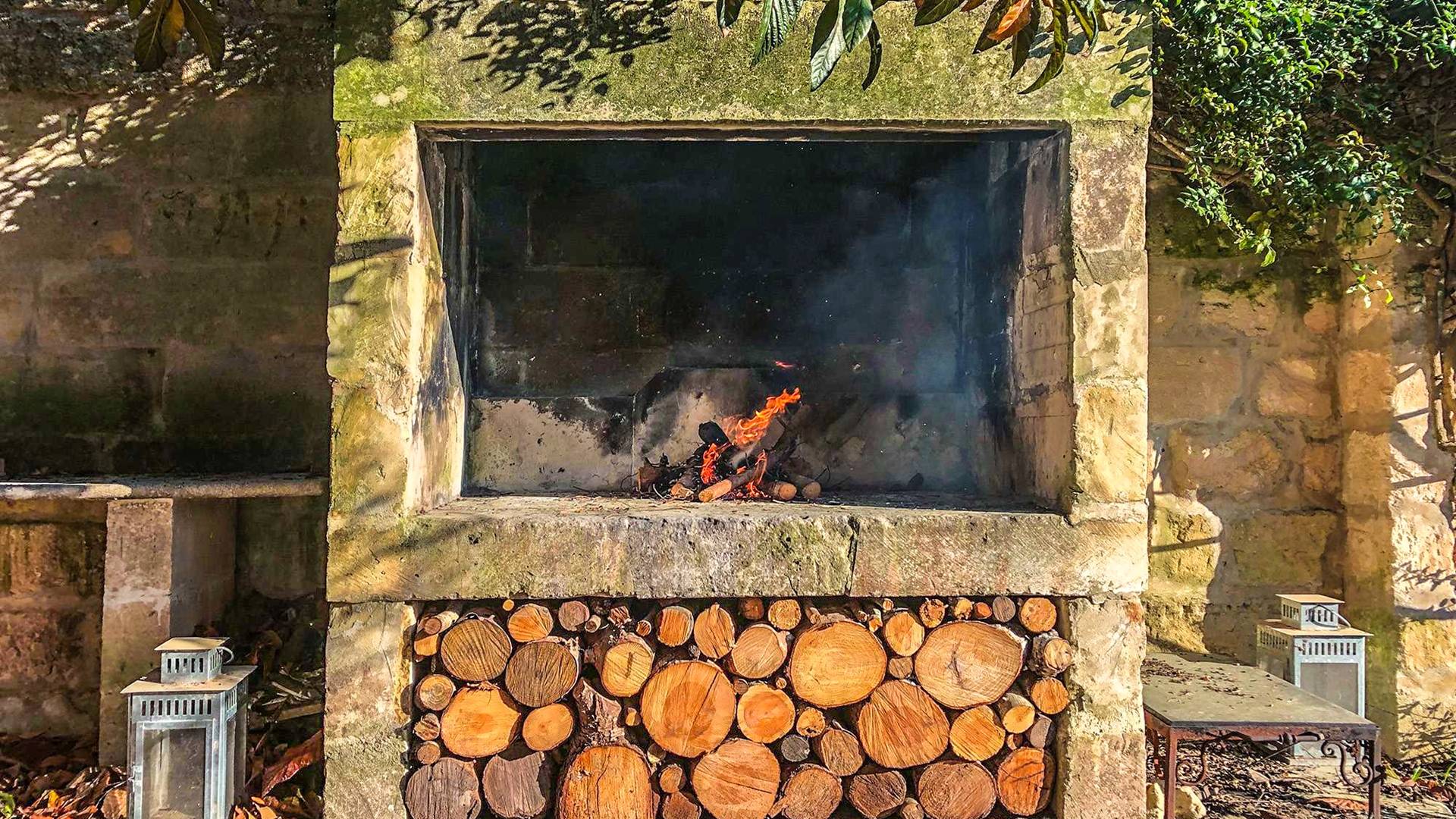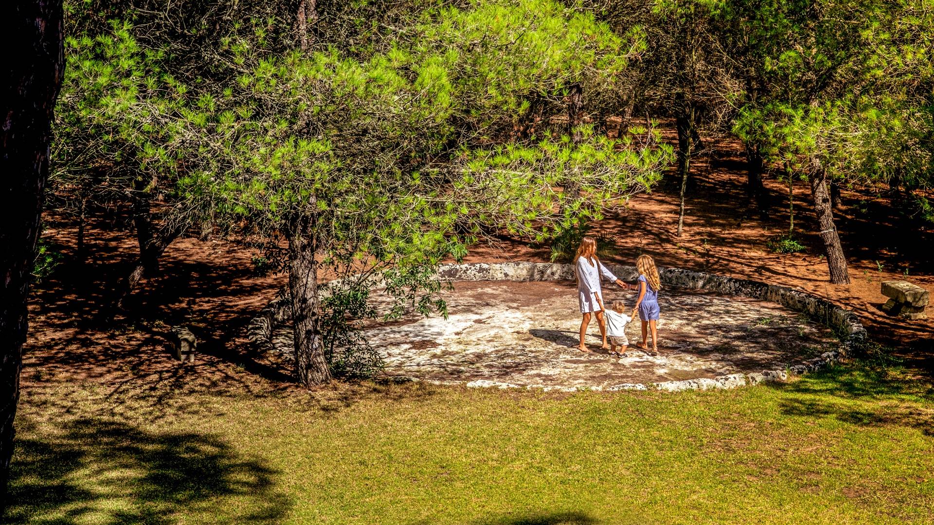 Επίσης έξω, βολικό και στρατηγικό για υπαίθρια μεσημεριανά γεύματα και δείπνα, το αίθριο, το οποίο συνδέεται με το σπίτι με μεγάλα παράθυρα, και ο χώρος για μπάρμπεκιου με ένα μεγάλο πέτρινο τζάκι με ξύλα. Στις καταπράσινες εκτάσεις του σπιτιού, υπάρχουν αιωνόβια δέντρα, μνημειακά πεύκα, φοίνικες αλλά και ελιές και πολλά αποστάγματα του μεσογειακού θάμνου.