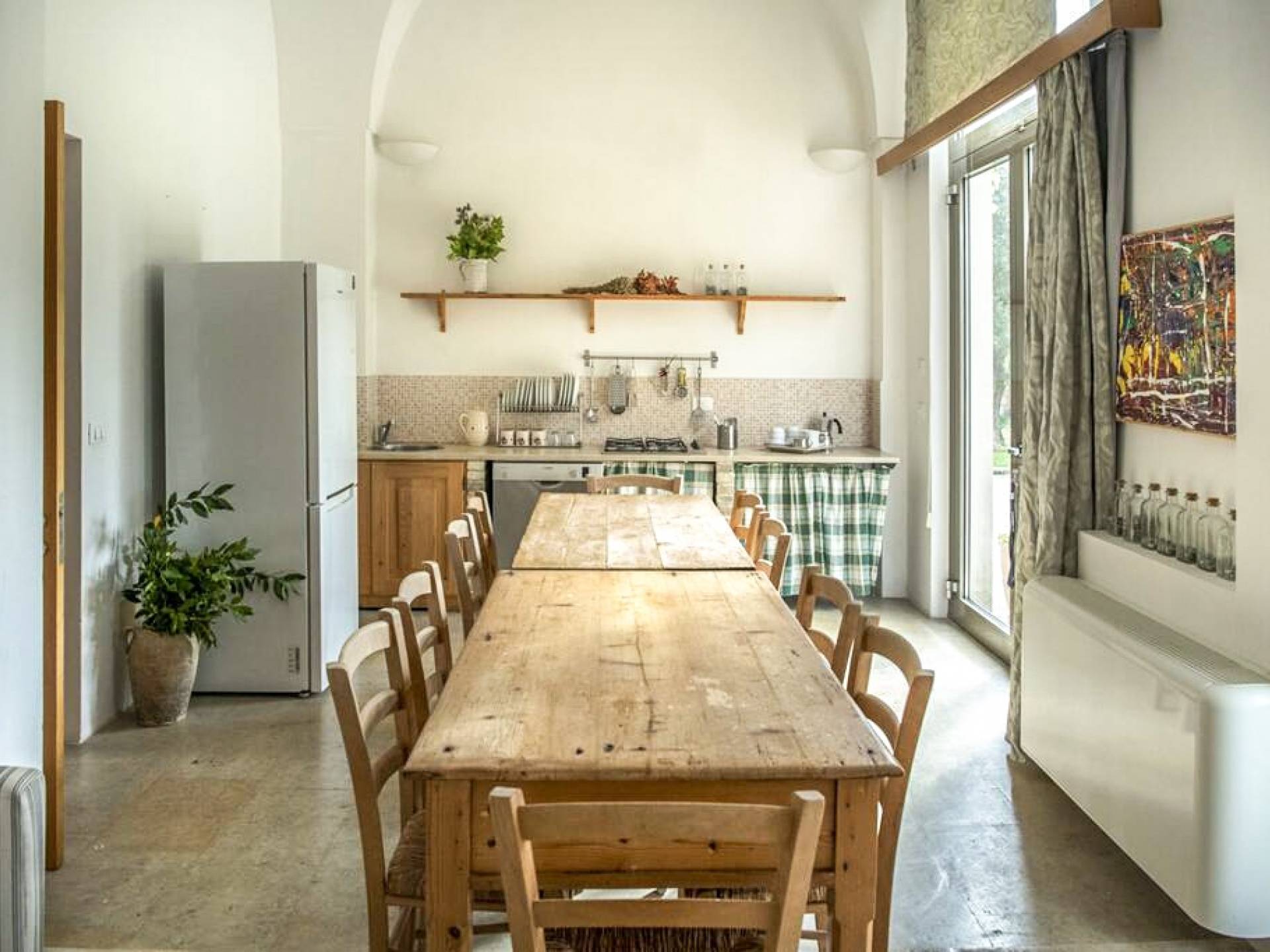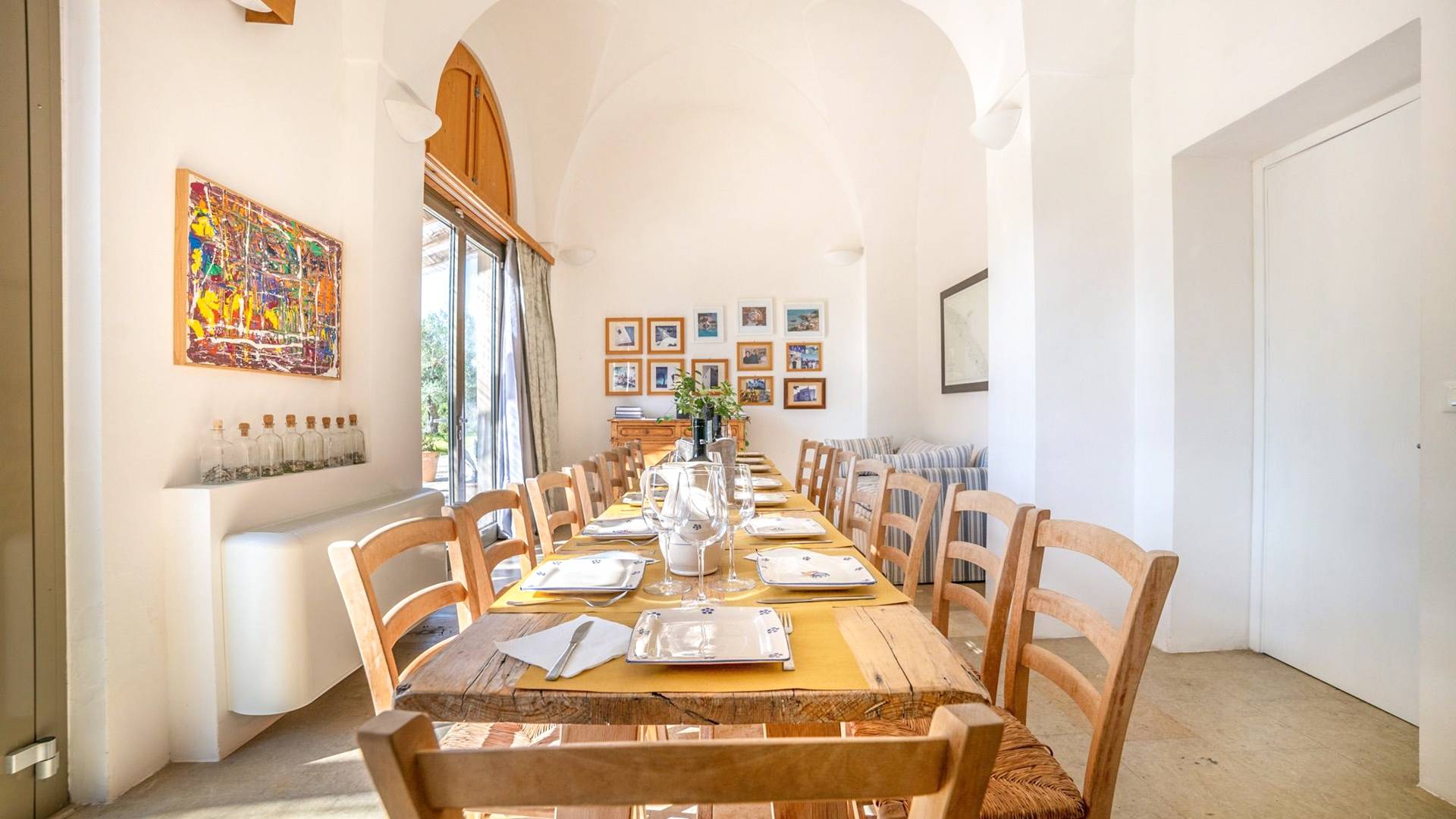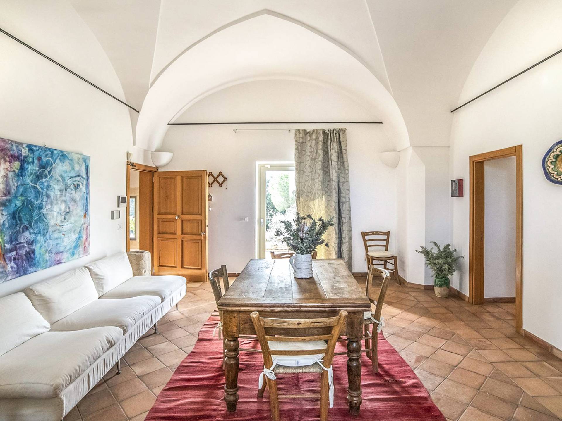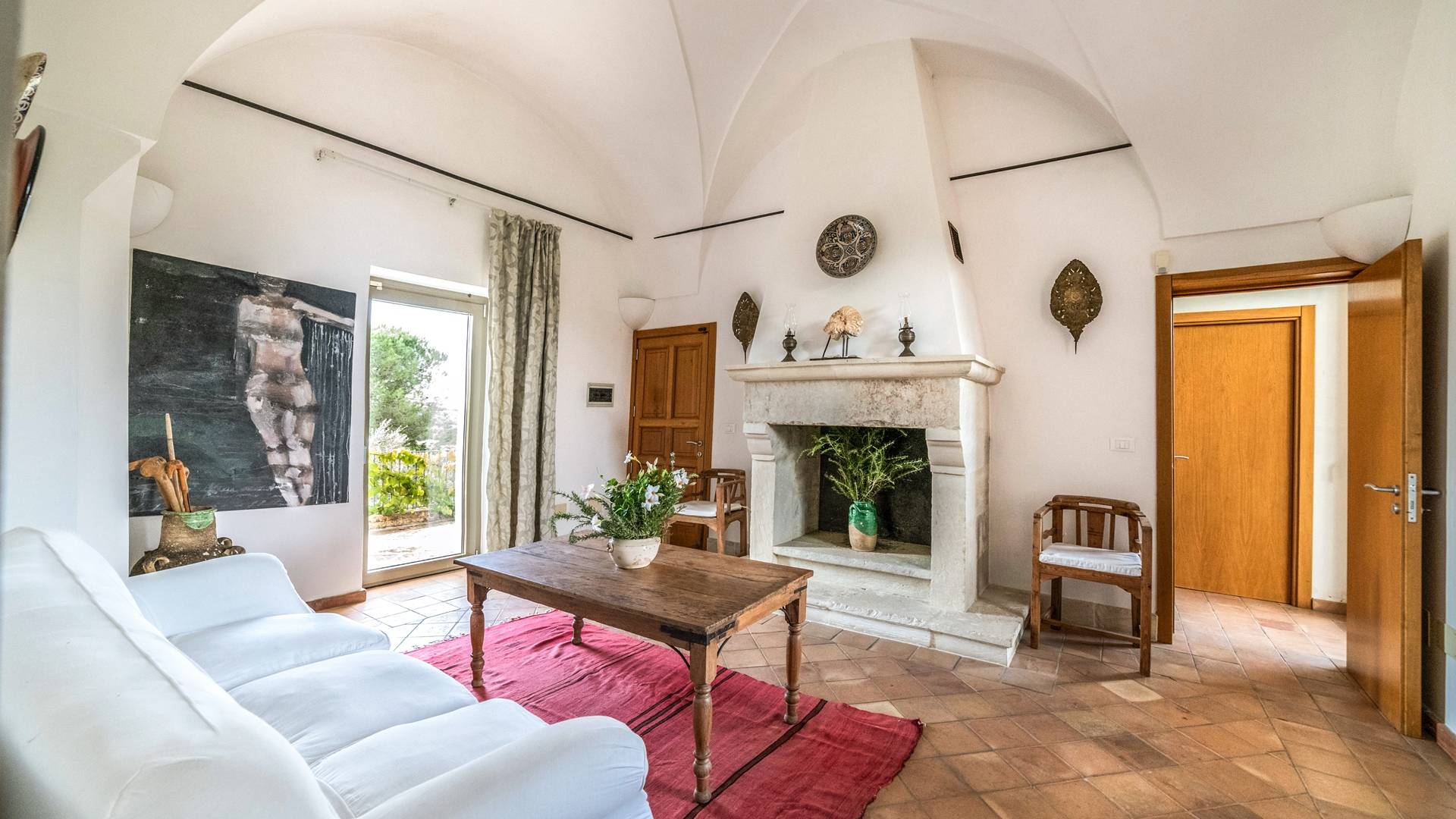 Η εσωτερική επίπλωση, όλα σε αρμονία με την περιοχή, συνδυάζονται με το αυθεντικό στυλ αυτής της αρχαίας κατοικίας: καθρέφτες, σεντούκια, ντουλάπες και ξύλινα κομοδίνα, παίζουν τέλειο ρόλο με τις τυπικές θολωτές οροφές και μερικά εμφανή δοκάρια, με τα δάπεδα σε πέτρα Λέτσε είναι χειροποίητη τερακότα. Ιδιαίτερα φιλόξενο είναι το μεγάλο δωμάτιο που λειτουργεί ως σαλόνι με τον όμορφο λευκό καναπέ, το πέτρινο τζάκι στο κέντρο, ένα τραπεζάκι από μασίφ ξύλο και μια φωτεινή θέα στην πανοραμική βεράντα. Στην τραπεζαρία, υπάρχει χώρος για 16 άτομα χάρη στο μεγάλο ξύλινο τραπέζι. Χαρακτηριστικό και πραγματικά εξοπλισμένο με όλα όσα χρειάζεστε, ακόμα και την κουζίνα του σπιτιού.
