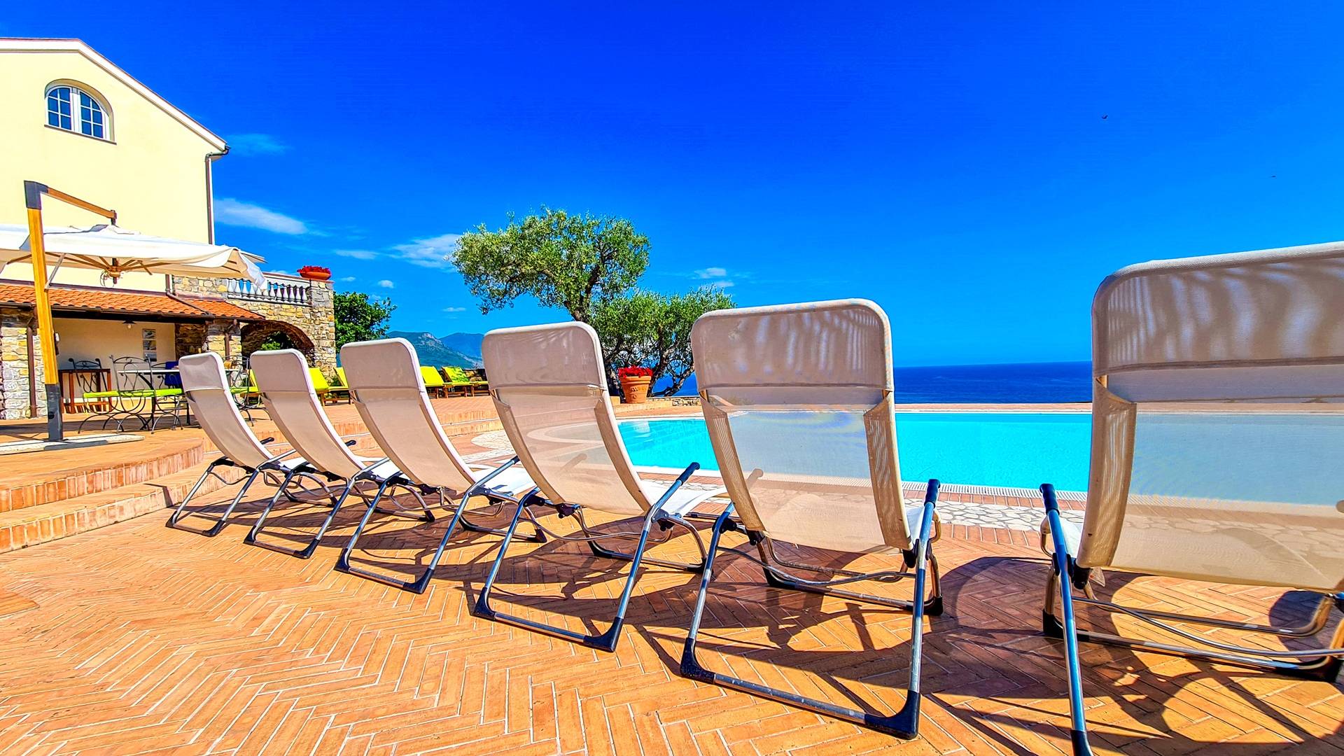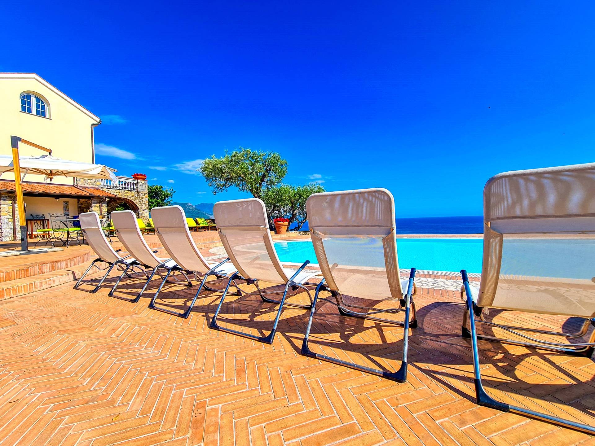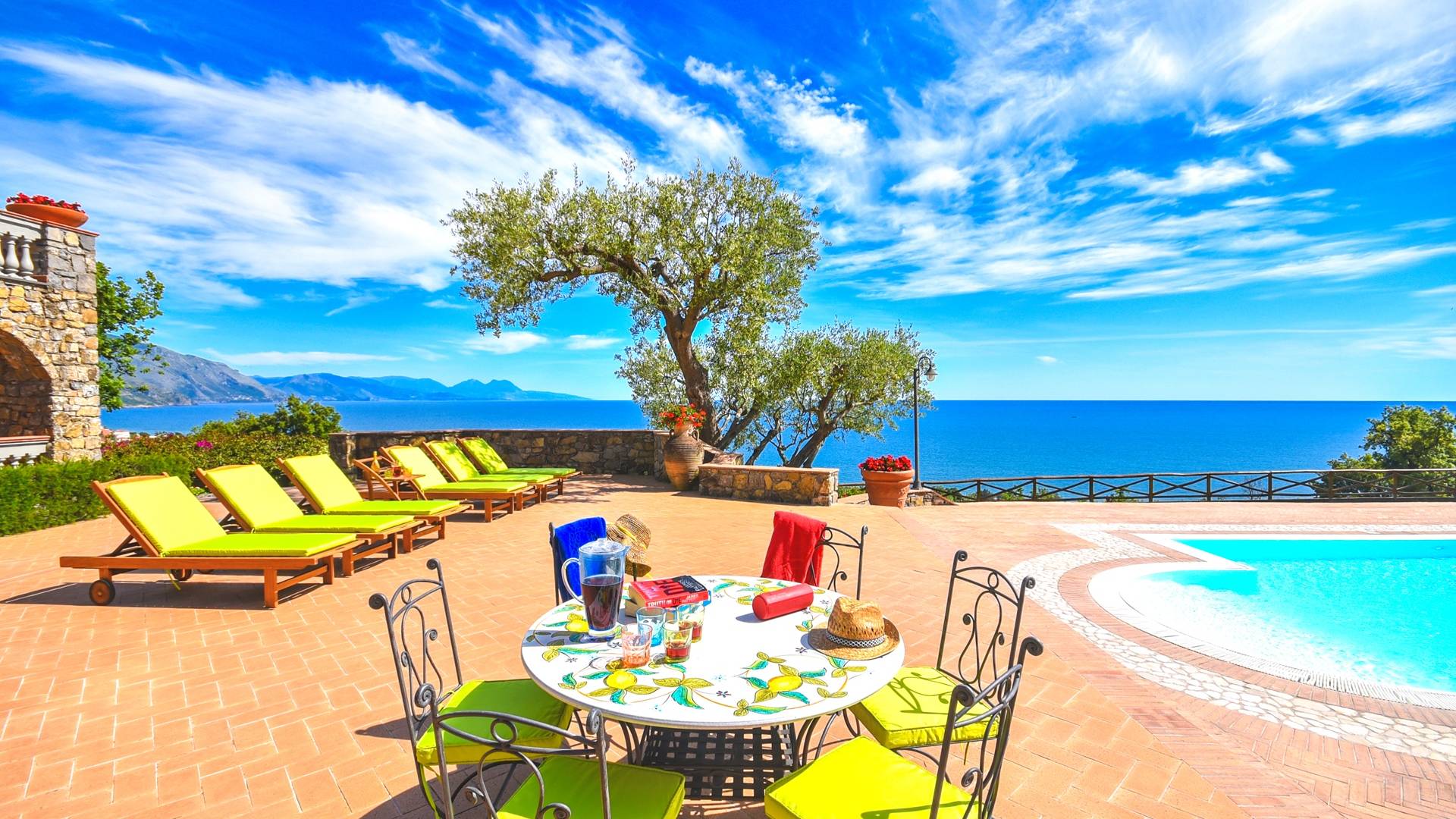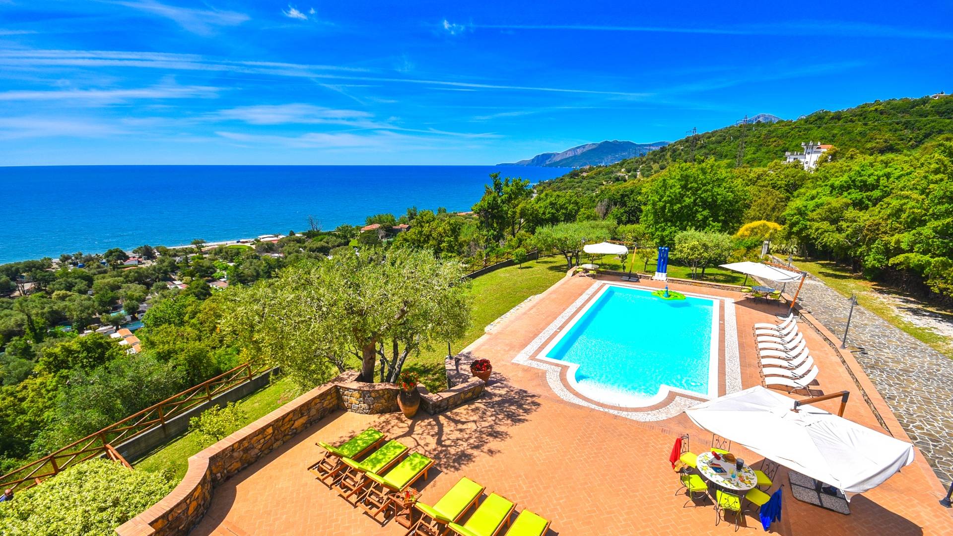 Η βίλα είναι μια μοντέρνα, τριώροφη βίλα χτισμένη σε παραδοσιακό στιλ, 124 πόδια πάνω από την επιφάνεια της θάλασσας με εκπληκτική θέα που εκτείνεται για μίλια κατά μήκος της ακτής Cilento. Είναι άνετα επιπλωμένο σε μοντέρνο στιλ και κάθε επίπεδο είναι αυτόνομο καθιστώντας το ιδανικό για μεγαλύτερες παρέες. Έξω υπάρχει αρκετός χώρος για να συναντηθούν όλοι και να απολαύσουν την εκπληκτική θέα στη θάλασσα από μια από τις πολλές βεράντες, να χαλαρώσουν στη σκιά μιας τεράστιας μεσογειακής βελανιδιάς, να απολαύσουν τον ήλιο γύρω από την πισίνα ή να απολαύσουν ένα γεύμα στο ρουστίκ. ταβέρνα' τραπεζαρία βεράντα. Όλα τα καταλύματα έχουν ανάλαφρη, φωτεινή και ευάερη ατμόσφαιρα και είναι επιπλωμένα με πρωτότυπο και κομψό γούστο. Είναι η ιδανική λύση για οικογενειακές συναντήσεις στην παραλία της Ιταλίας. Δίνει ευκαιρίες να μοιραστείτε τις διακοπές σας με τον αγαπημένο σας καθώς και να διατηρήσετε το απόρρητό σας όταν χρειάζεται.