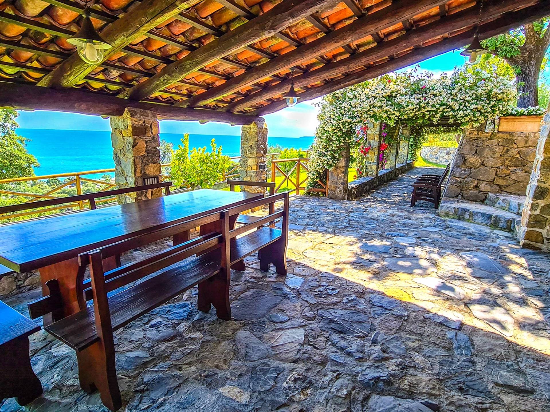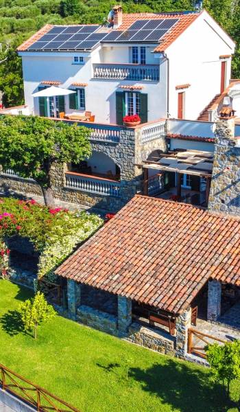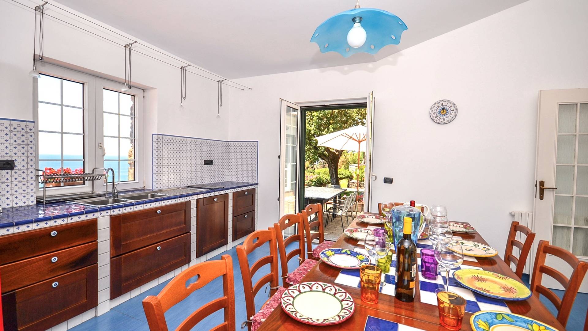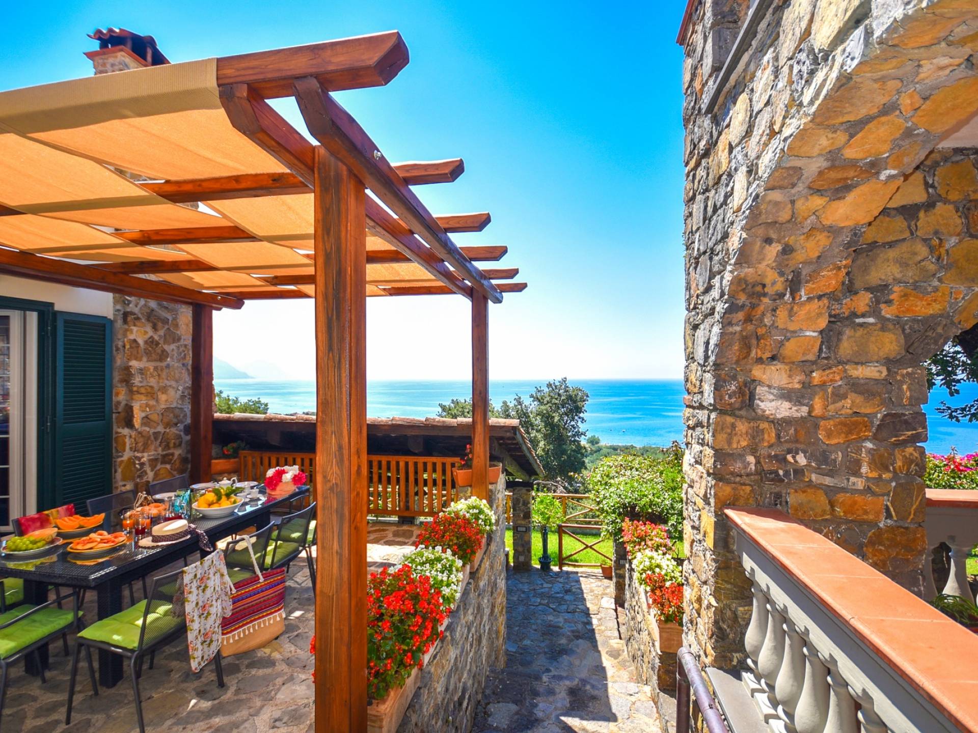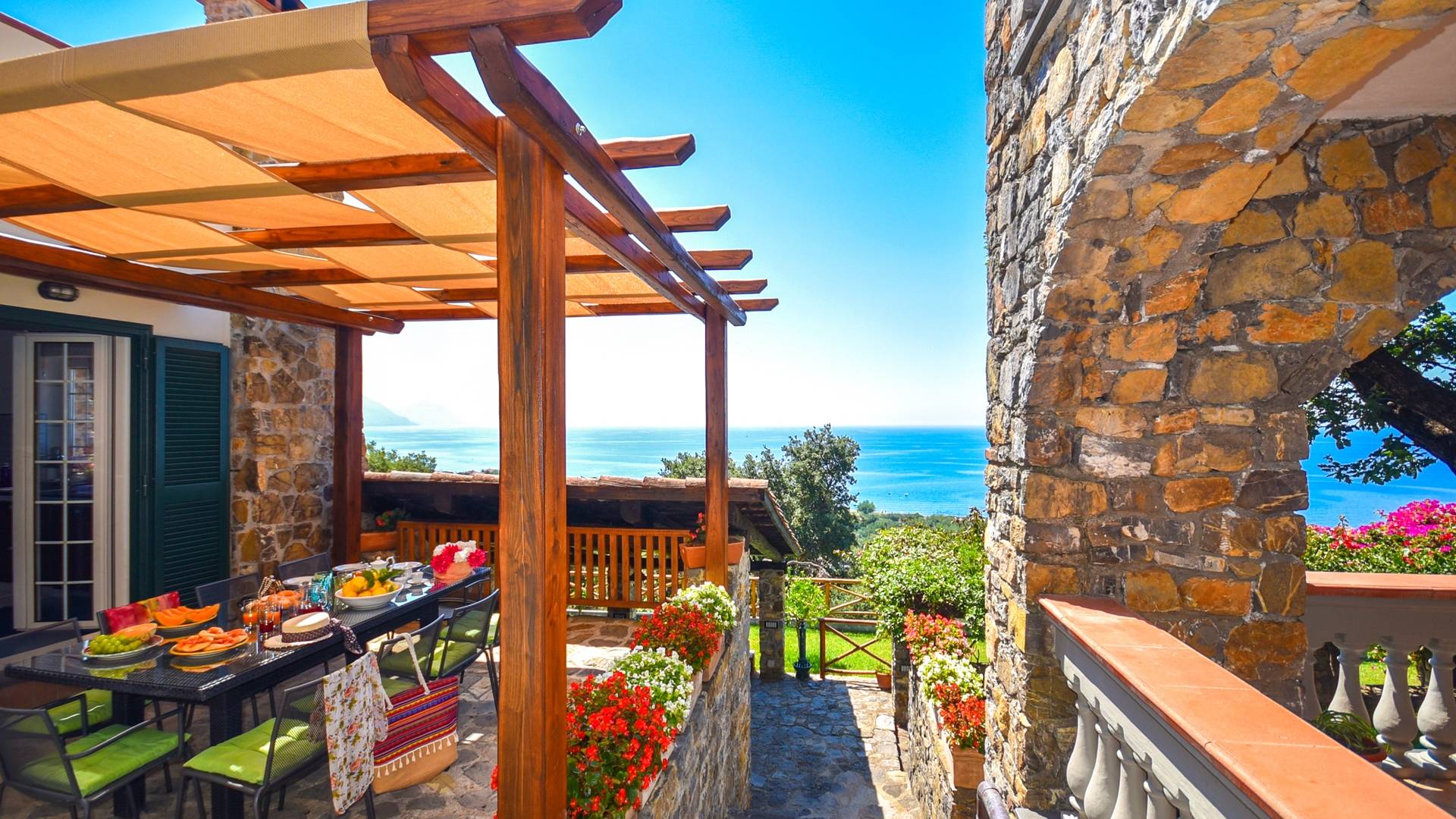Η βίλα είναι μια μοντέρνα, τριώροφη βίλα χτισμένη σε παραδοσιακό στιλ, 124 πόδια πάνω από την επιφάνεια της θάλασσας με εκπληκτική θέα που εκτείνεται για μίλια κατά μήκος της ακτής Cilento. Είναι άνετα επιπλωμένο σε μοντέρνο στιλ και κάθε επίπεδο είναι αυτόνομο καθιστώντας το ιδανικό για μεγαλύτερες παρέες. Έξω υπάρχει αρκετός χώρος για να συναντηθούν όλοι και να απολαύσουν την εκπληκτική θέα στη θάλασσα από μια από τις πολλές βεράντες, να χαλαρώσουν στη σκιά μιας τεράστιας μεσογειακής βελανιδιάς, να απολαύσουν τον ήλιο γύρω από την πισίνα ή να απολαύσουν ένα γεύμα στο ρουστίκ. ταβέρνα' τραπεζαρία βεράντα. Όλα τα καταλύματα έχουν ανάλαφρη, φωτεινή και ευάερη ατμόσφαιρα και είναι επιπλωμένα με πρωτότυπο και κομψό γούστο. Είναι η ιδανική λύση για οικογενειακές συναντήσεις στην παραλία της Ιταλίας. Δίνει ευκαιρίες να μοιραστείτε τις διακοπές σας με τον αγαπημένο σας καθώς και να διατηρήσετε το απόρρητό σας όταν χρειάζεται.