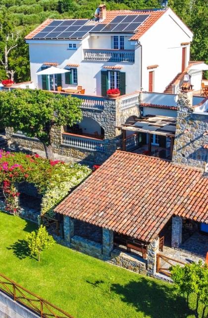 Το διαχειρίζονται άμεσα οι ιδιοκτήτες με μεγάλη προσοχή και βρίσκεται σε μια πανοραμική πλαγιά με θέα στη θάλασσα, μόλις 600 μέτρα από τη μεγάλη αμμώδη παραλία "Santa Maria Le Piane". Η βίλα έχει εκπληκτική θέα στη Μεσόγειο - θέα που εκτείνεται μέχρι τα πιο απομακρυσμένα βουνά της περιοχής της Καλαβρίας (η οροσειρά που υψώνεται πάνω από το Diamante και την Paola) από τη μία πλευρά και μέχρι την Punta (Ακρωτήρι) του Infreschi και την άγρια παράκτια διαδρομή που φέρει το ίδιο όνομα μεταξύ του Scario και της Marina di Camerota στην άλλη πλευρά. Τα δύο τρίτα του κτήματος καλύπτονται με καταπράσινα δάση με φελλοειδή βελανιδιά, ένα φυτό χαρακτηριστικό της περιβαλλοντικής θέσης που εκτείνεται κατά μήκος της ακτογραμμής του κόλπου του Policastro μεταξύ S. Marina και Sapri. Περιτριγυρισμένο από έναν μεγάλο κλειστό κήπο, είναι το τέλειο κατάλυμα για οικογένειες με παιδιά.