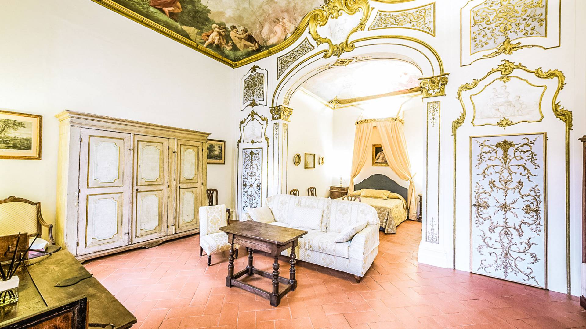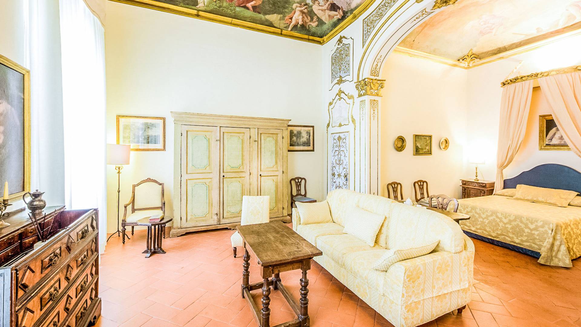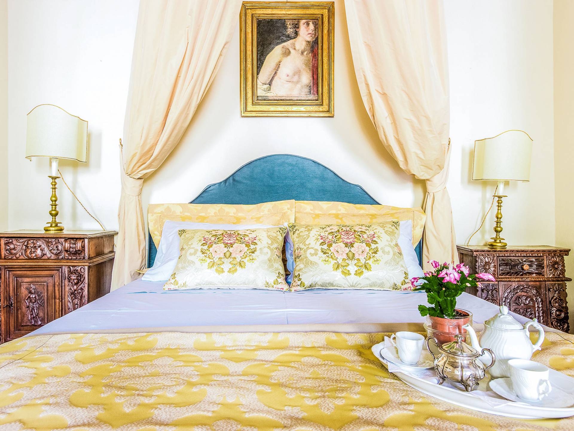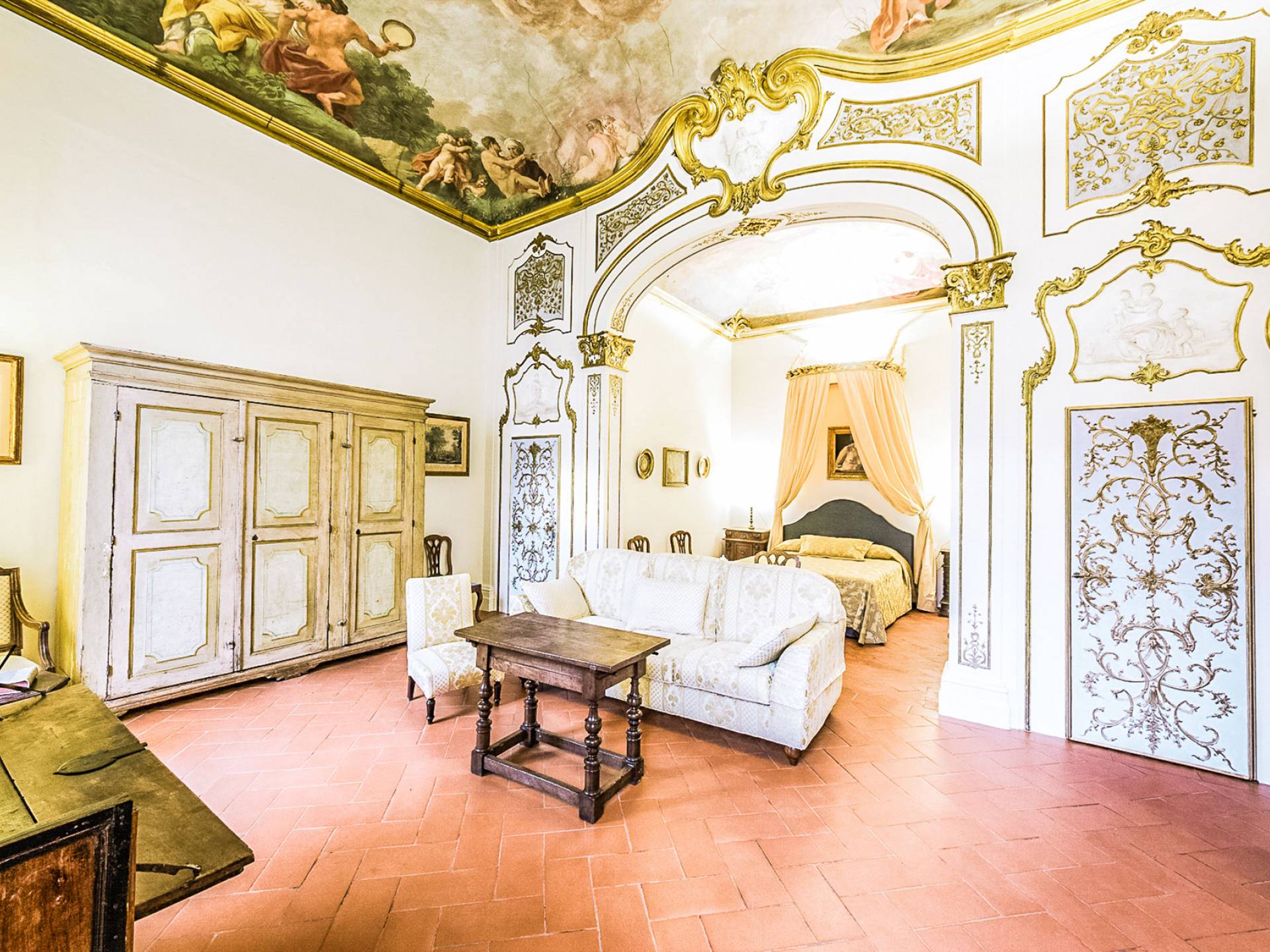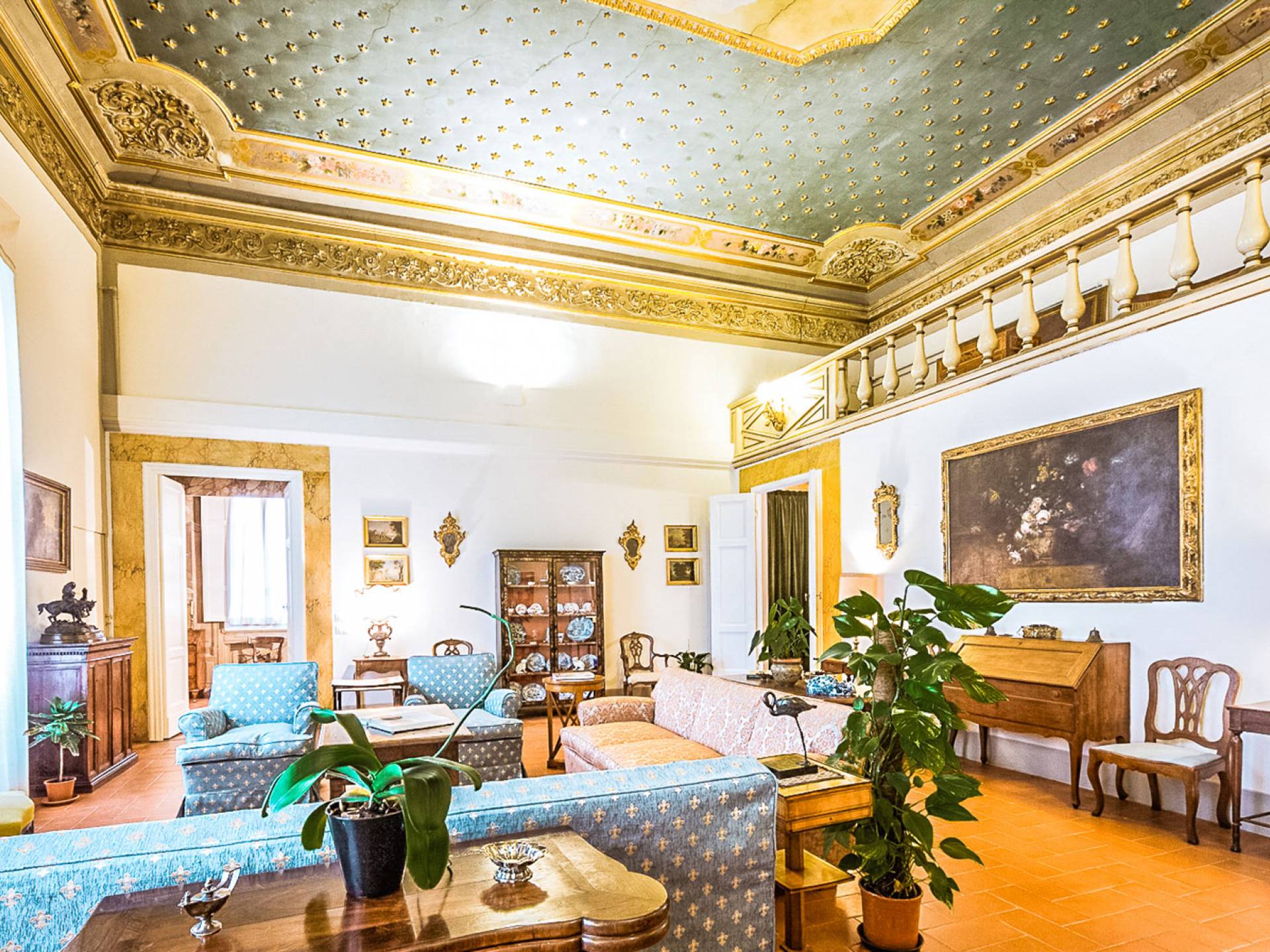 1 επίσημη τραπεζαρία (50 τετραγωνικά μέτρα) - Μια μεγάλη τραπεζαρία που βλέπει στην πλατεία. Περιλαμβάνει ένα μεγάλο στρογγυλό τραπέζι (αρκετά μεγάλο για δέκα άτομα), δύο ντουλάπια κουζίνας από τον δέκατο έβδομο αιώνα, μια συρταριέρα Λουδοβίκου XIV, δύο μικρότερα στρογγυλά τραπέζια για μικρότερα γεύματα και δείπνα 4 έως 6 ατόμων. Οι δερμάτινες καρέκλες συμπληρώνουν την επίπλωση. Οι τοίχοι είναι διακοσμημένοι με ελαιογραφίες από διάφορες περιόδους. Το δωμάτιο φωτίζεται από έναν μεγάλο πολύχρωμο γυάλινο πολυέλαιο από το Murano. 1 Κύριο υπνοδωμάτιο με διπλό κρεβάτι (47 m2) - Μεγάλο υπνοδωμάτιο με εσοχή όπου κοιμόταν ο Πάπας Κλήμης Η'. Αποτελείται από μια μικρή είσοδο επιπλωμένη με μια υπέροχη συρταριέρα του δέκατου έβδομου αιώνα από την Piacenza, πάνω από την οποία υπάρχει μια ελαιογραφία που αντιπροσωπεύει μια μυθολογική σκηνή, μια μεγάλη ντουλάπα με τρία χωρίσματα, ένα ντιβάνι 3 ατόμων και πολλές καρέκλες . Το υπνοδωμάτιο περιέχει ένα βασιλικό αντίκες, επιχρυσωμένο διπλό κρεβάτι με ουρανό. Κλιματιζόμενο. Δορυφορική τηλεόραση με πλήρη προγράμματα SKY. Κύριο μπάνιο (6 m2) Το μπάνιο έχει ανακαινιστεί πλήρως κατά τη διάρκεια πρόσφατης αποκατάστασης. Οι τοίχοι είναι από μάρμαρο, τα εξαρτήματα είναι από κλασική λευκή πορσελάνη. Ένα μεγάλο ντους.