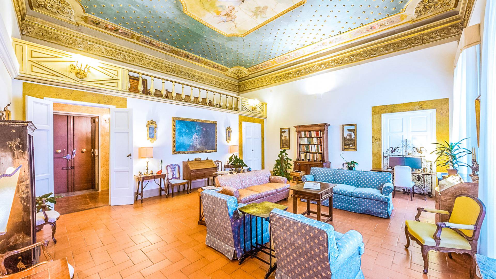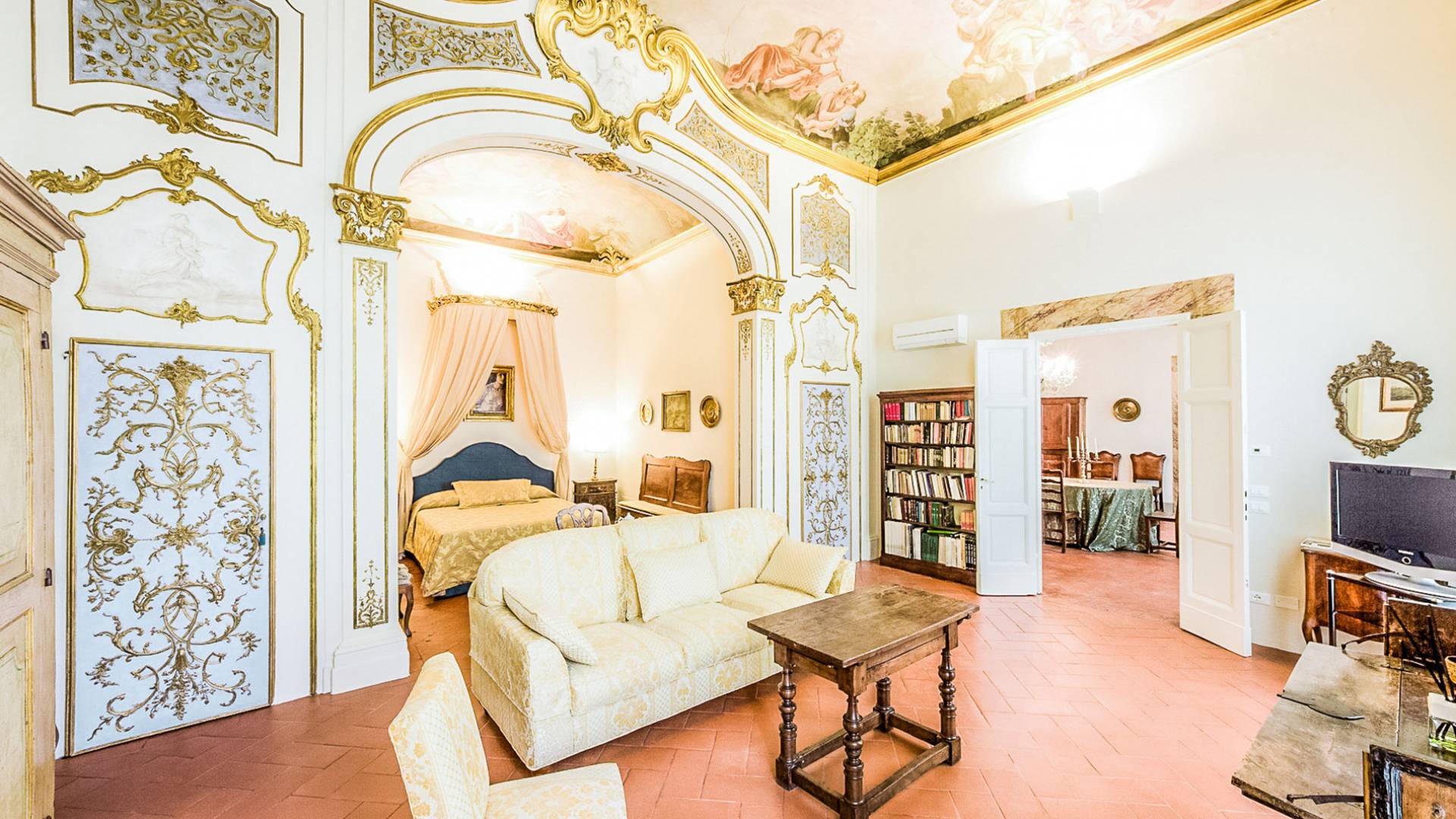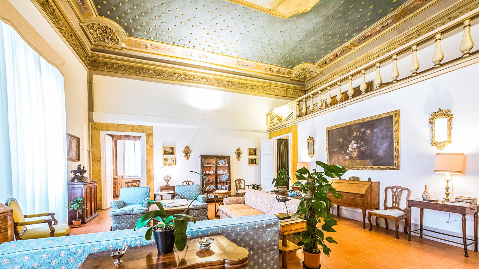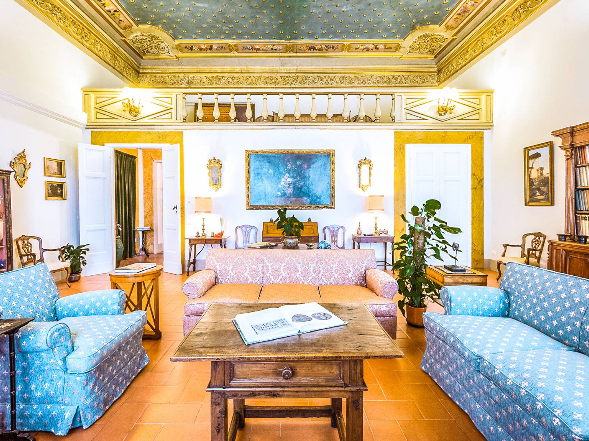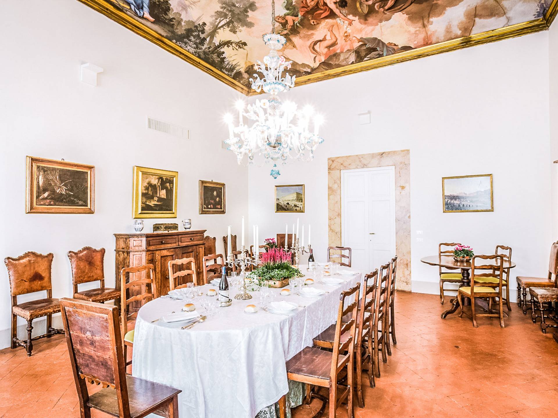 1 επίσημη τραπεζαρία (50 τετραγωνικά μέτρα) - Μια μεγάλη τραπεζαρία που βλέπει στην πλατεία. Περιλαμβάνει ένα μεγάλο στρογγυλό τραπέζι (αρκετά μεγάλο για δέκα άτομα), δύο ντουλάπια κουζίνας από τον δέκατο έβδομο αιώνα, μια συρταριέρα Λουδοβίκου XIV, δύο μικρότερα στρογγυλά τραπέζια για μικρότερα γεύματα και δείπνα 4 έως 6 ατόμων. Οι δερμάτινες καρέκλες συμπληρώνουν την επίπλωση. Οι τοίχοι είναι διακοσμημένοι με ελαιογραφίες από διάφορες περιόδους. Το δωμάτιο φωτίζεται από έναν μεγάλο πολύχρωμο γυάλινο πολυέλαιο από το Murano. 1 Κύριο υπνοδωμάτιο με διπλό κρεβάτι (47 m2) - Μεγάλο υπνοδωμάτιο με εσοχή όπου κοιμόταν ο Πάπας Κλήμης Η'. Αποτελείται από μια μικρή είσοδο επιπλωμένη με μια υπέροχη συρταριέρα του δέκατου έβδομου αιώνα από την Piacenza, πάνω από την οποία υπάρχει μια ελαιογραφία που αντιπροσωπεύει μια μυθολογική σκηνή, μια μεγάλη ντουλάπα με τρία χωρίσματα, ένα ντιβάνι 3 ατόμων και πολλές καρέκλες . Το υπνοδωμάτιο περιέχει ένα βασιλικό αντίκες, επιχρυσωμένο διπλό κρεβάτι με ουρανό. Κλιματιζόμενο. Δορυφορική τηλεόραση με πλήρη προγράμματα SKY. Κύριο μπάνιο (6 m2) Το μπάνιο έχει ανακαινιστεί πλήρως κατά τη διάρκεια πρόσφατης αποκατάστασης. Οι τοίχοι είναι από μάρμαρο, τα εξαρτήματα είναι από κλασική λευκή πορσελάνη. Ένα μεγάλο ντους.