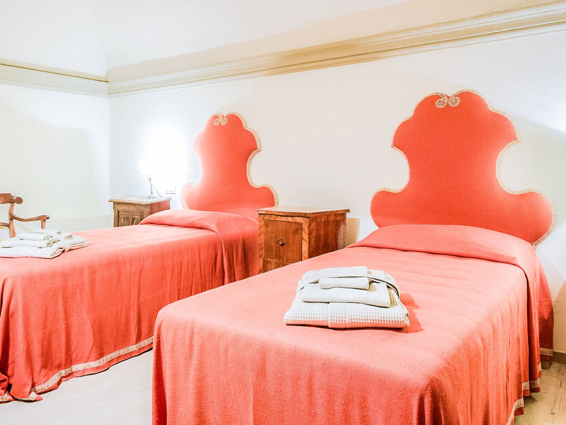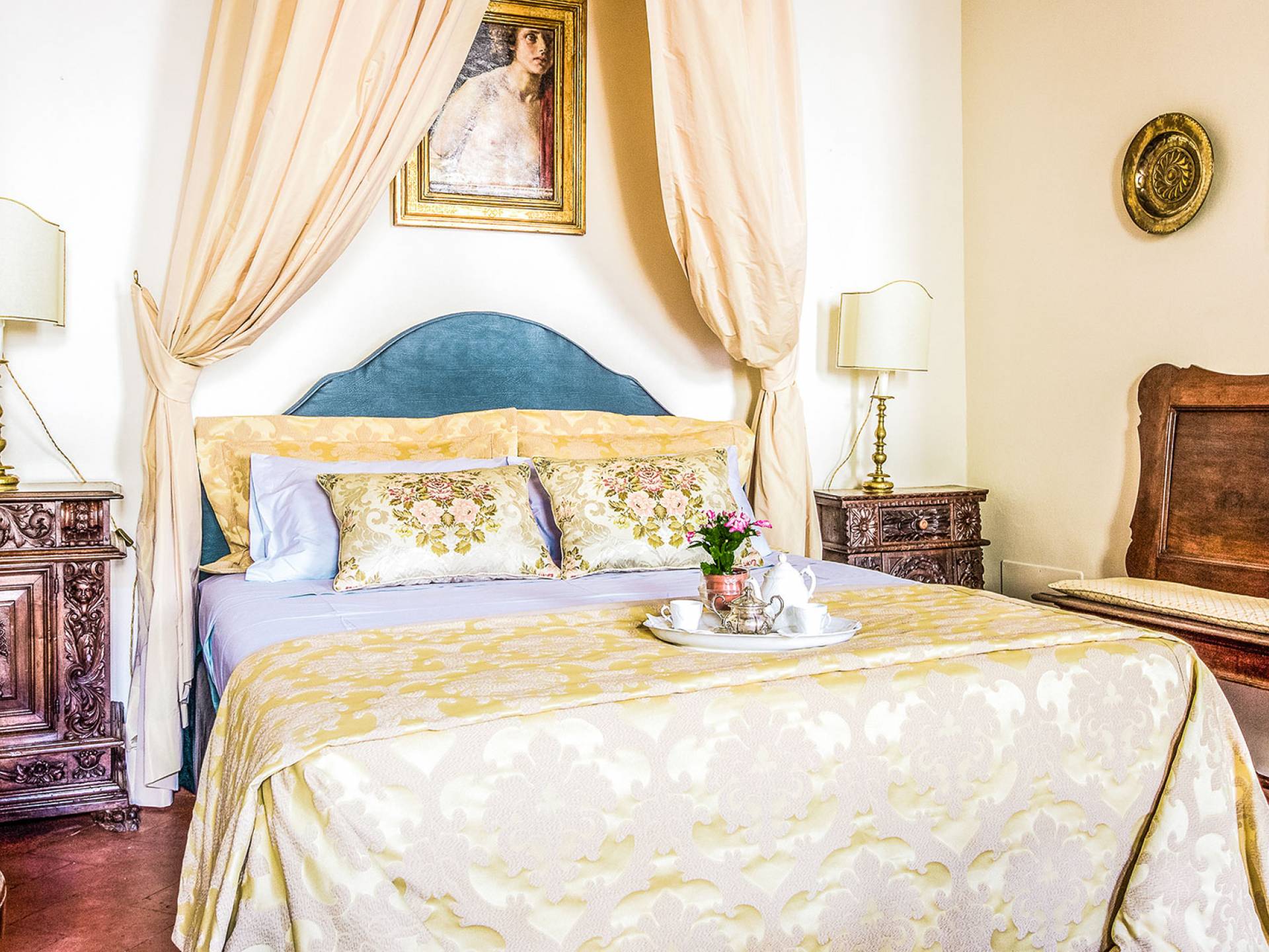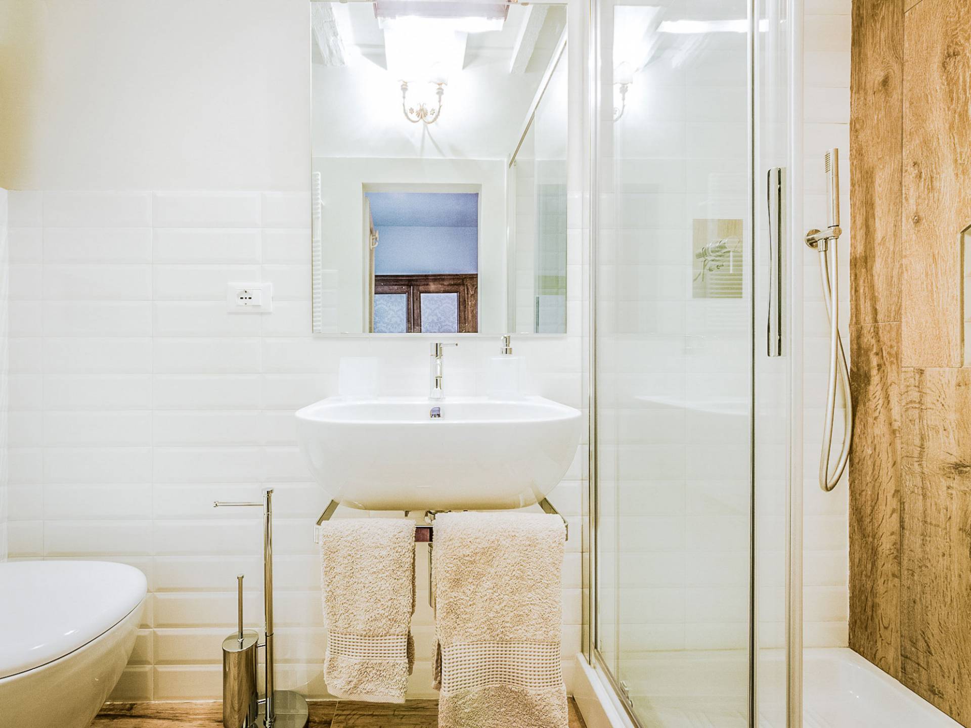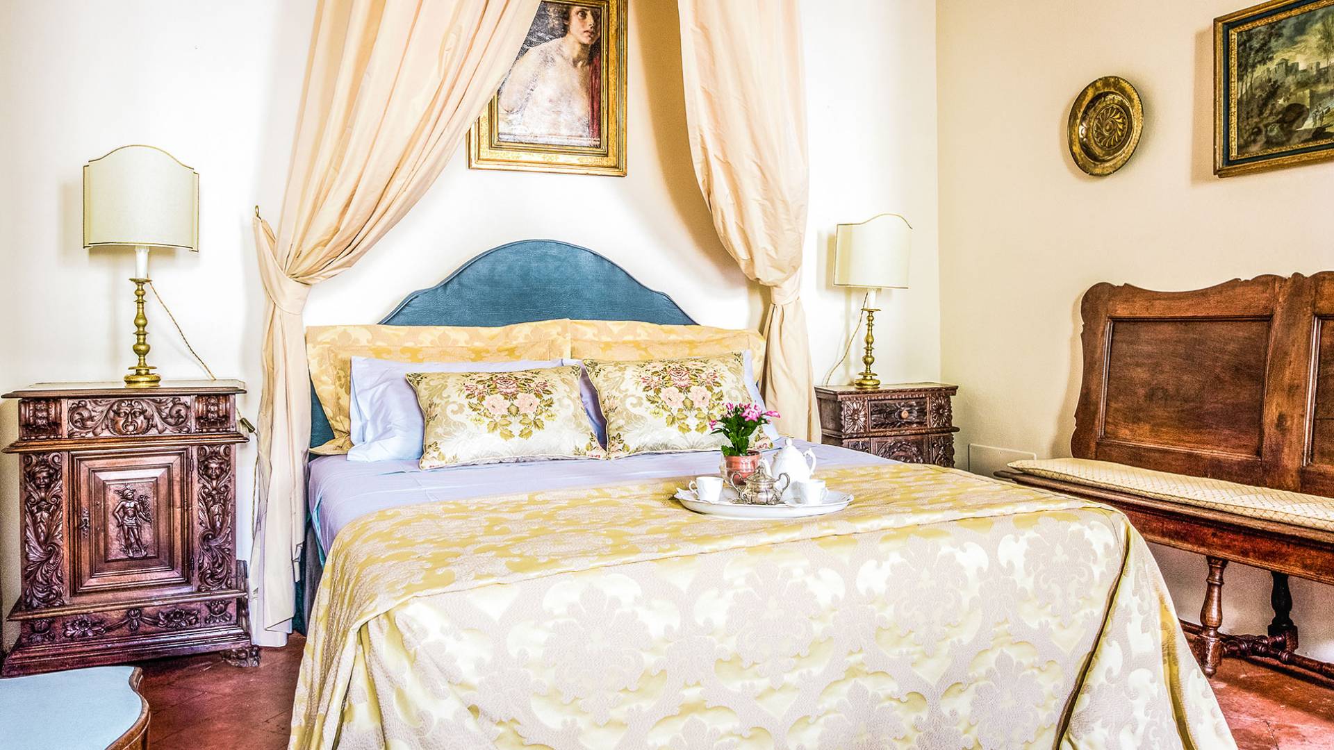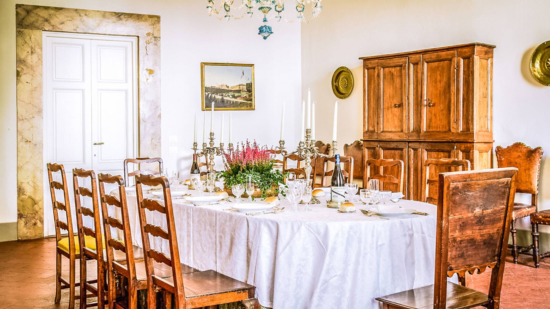 1 επίσημη τραπεζαρία (50 τετραγωνικά μέτρα) - Μια μεγάλη τραπεζαρία που βλέπει στην πλατεία. Περιλαμβάνει ένα μεγάλο στρογγυλό τραπέζι (αρκετά μεγάλο για δέκα άτομα), δύο ντουλάπια κουζίνας από τον δέκατο έβδομο αιώνα, μια συρταριέρα Λουδοβίκου XIV, δύο μικρότερα στρογγυλά τραπέζια για μικρότερα γεύματα και δείπνα 4 έως 6 ατόμων. Οι δερμάτινες καρέκλες συμπληρώνουν την επίπλωση. Οι τοίχοι είναι διακοσμημένοι με ελαιογραφίες από διάφορες περιόδους. Το δωμάτιο φωτίζεται από έναν μεγάλο πολύχρωμο γυάλινο πολυέλαιο από το Murano. 1 Κύριο υπνοδωμάτιο με διπλό κρεβάτι (47 m2) - Μεγάλο υπνοδωμάτιο με εσοχή όπου κοιμόταν ο Πάπας Κλήμης Η'. Αποτελείται από μια μικρή είσοδο επιπλωμένη με μια υπέροχη συρταριέρα του δέκατου έβδομου αιώνα από την Piacenza, πάνω από την οποία υπάρχει μια ελαιογραφία που αντιπροσωπεύει μια μυθολογική σκηνή, μια μεγάλη ντουλάπα με τρία χωρίσματα, ένα ντιβάνι 3 ατόμων και πολλές καρέκλες . Το υπνοδωμάτιο περιέχει ένα βασιλικό αντίκες, επιχρυσωμένο διπλό κρεβάτι με ουρανό. Κλιματιζόμενο. Δορυφορική τηλεόραση με πλήρη προγράμματα SKY. Κύριο μπάνιο (6 m2) Το μπάνιο έχει ανακαινιστεί πλήρως κατά τη διάρκεια πρόσφατης αποκατάστασης. Οι τοίχοι είναι από μάρμαρο, τα εξαρτήματα είναι από κλασική λευκή πορσελάνη. Ένα μεγάλο ντους.