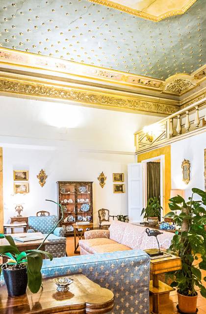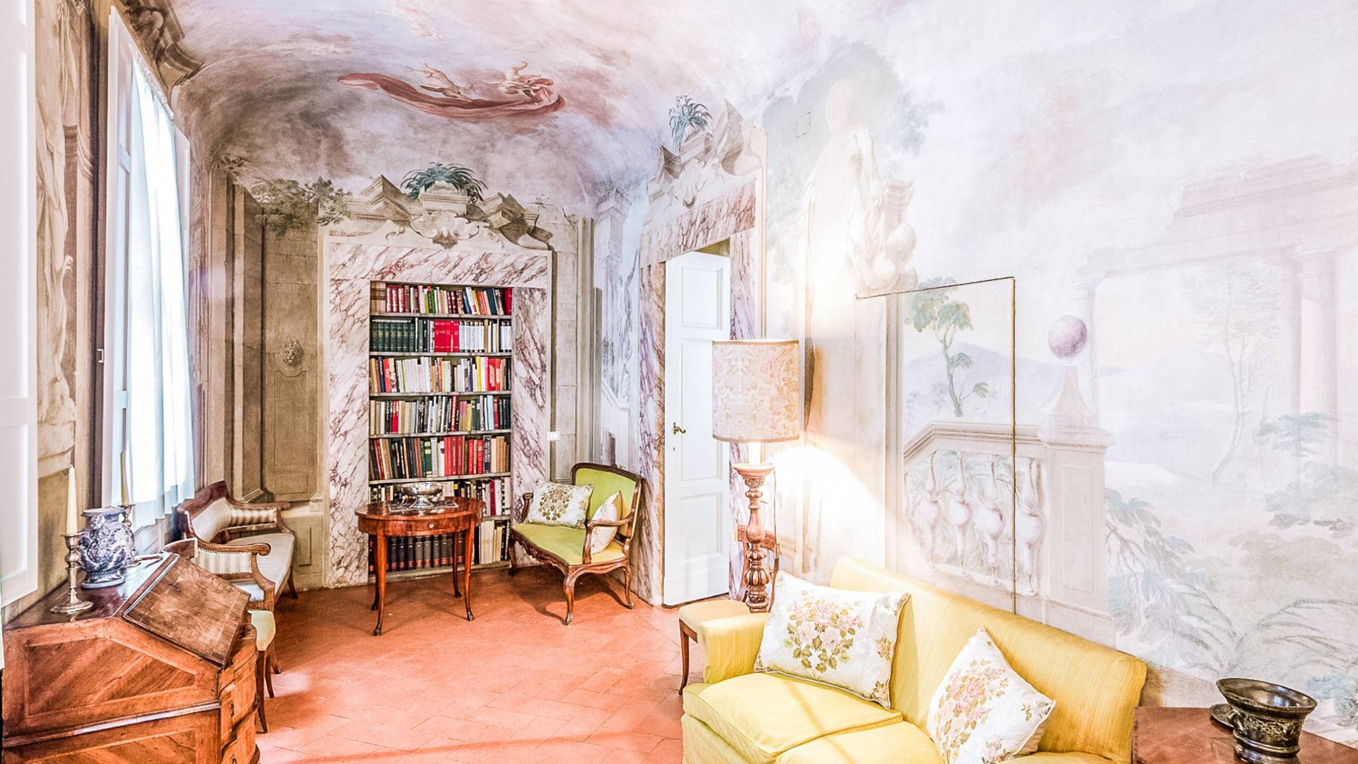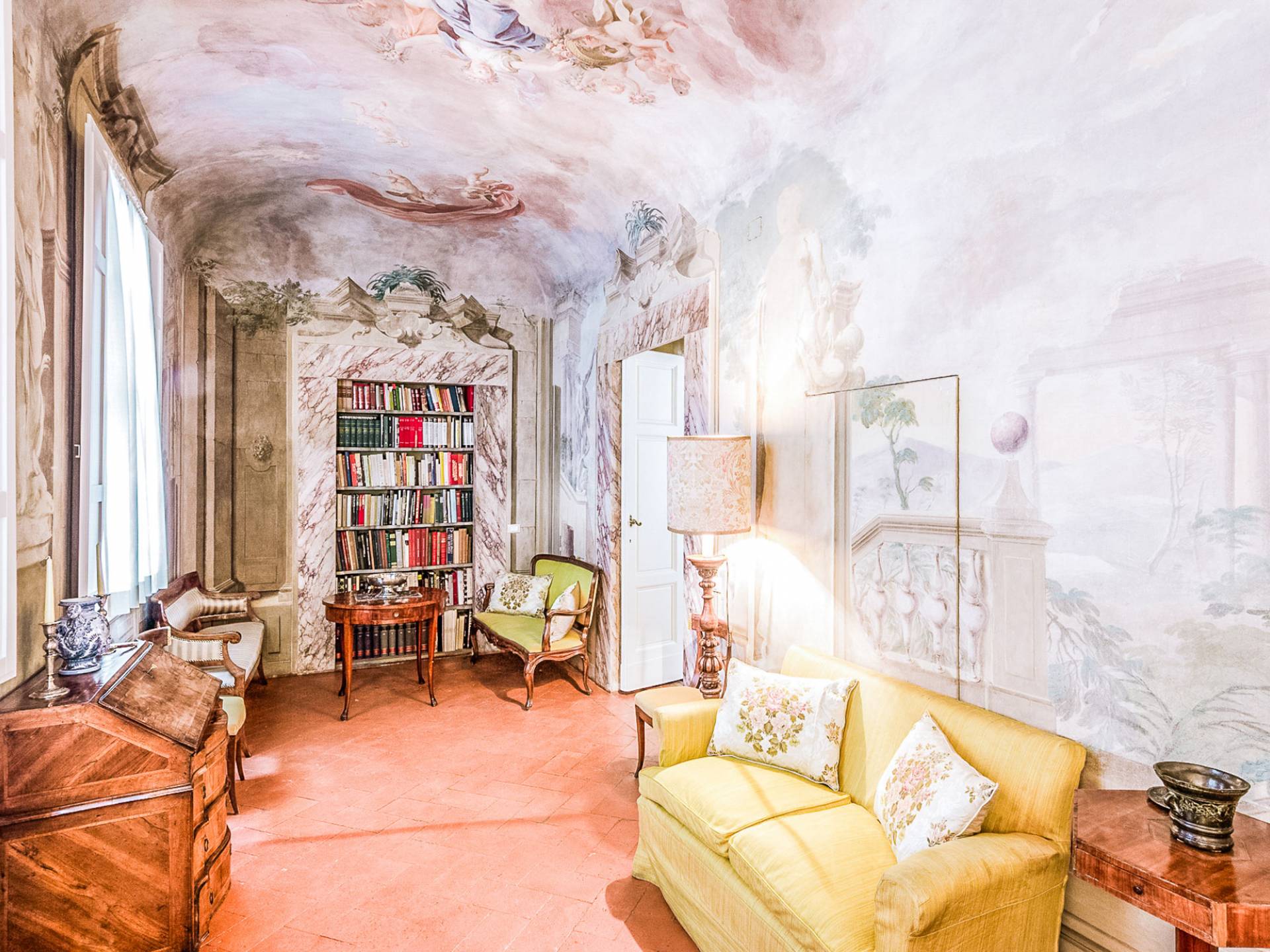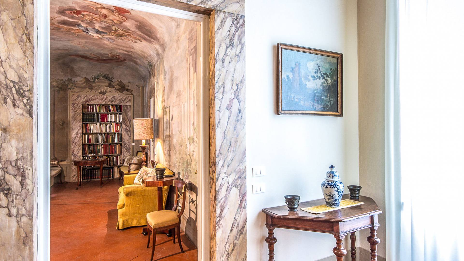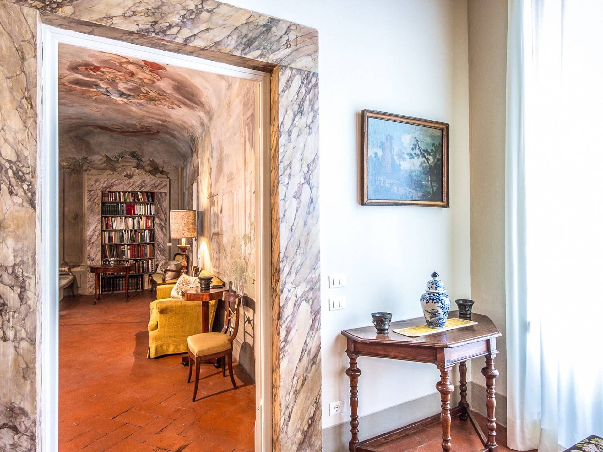 1 Gallery (23 m2) Ένας διάδρομος που συνδέει το σαλόνι με το υπόλοιπο σπίτι, με τους τοίχους και την οροφή πλήρως διακοσμημένα με τοιχογραφίες που απεικονίζουν βλάστηση και άλλα σχέδια. Ανάμεσα στα σχέδια διακρίνεται κανείς το οικόσημο της οικογένειας. Ο διάδρομος ήταν ο «χειμωνιάτικος κήπος» του πιάνο nobile όπου οι άνθρωποι συναντιόντουσαν για να πιουν τσάι ή να απολαύσουν ένα ήσυχο διάβασμα. Είναι επιπλωμένο με μικρά ντιβάνια και καθίσματα και περιλαμβάνει επίσης ένα καλά εφοδιασμένο ράφι με βιβλία για την τέχνη. 1 Επαγγελματική Κουζίνα (22 m2) Ο χώρος της κουζίνας είναι μοντέρνος, με 6 μέτρα χώρο μαγειρέματος. Οι χώροι εργασίας, ο καθένας με το δικό του απορροφητήρα, έχουν ρυθμιστεί έτσι ώστε να επιτρέπουν σε τρεις μάγειρες να εργάζονται ταυτόχρονα.