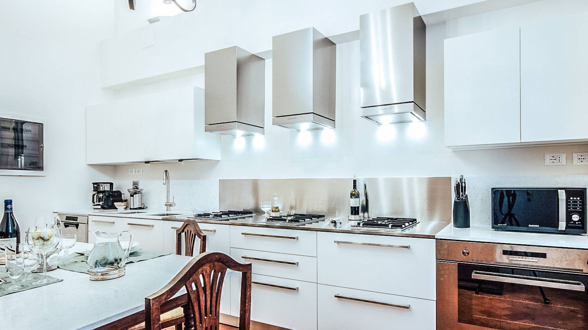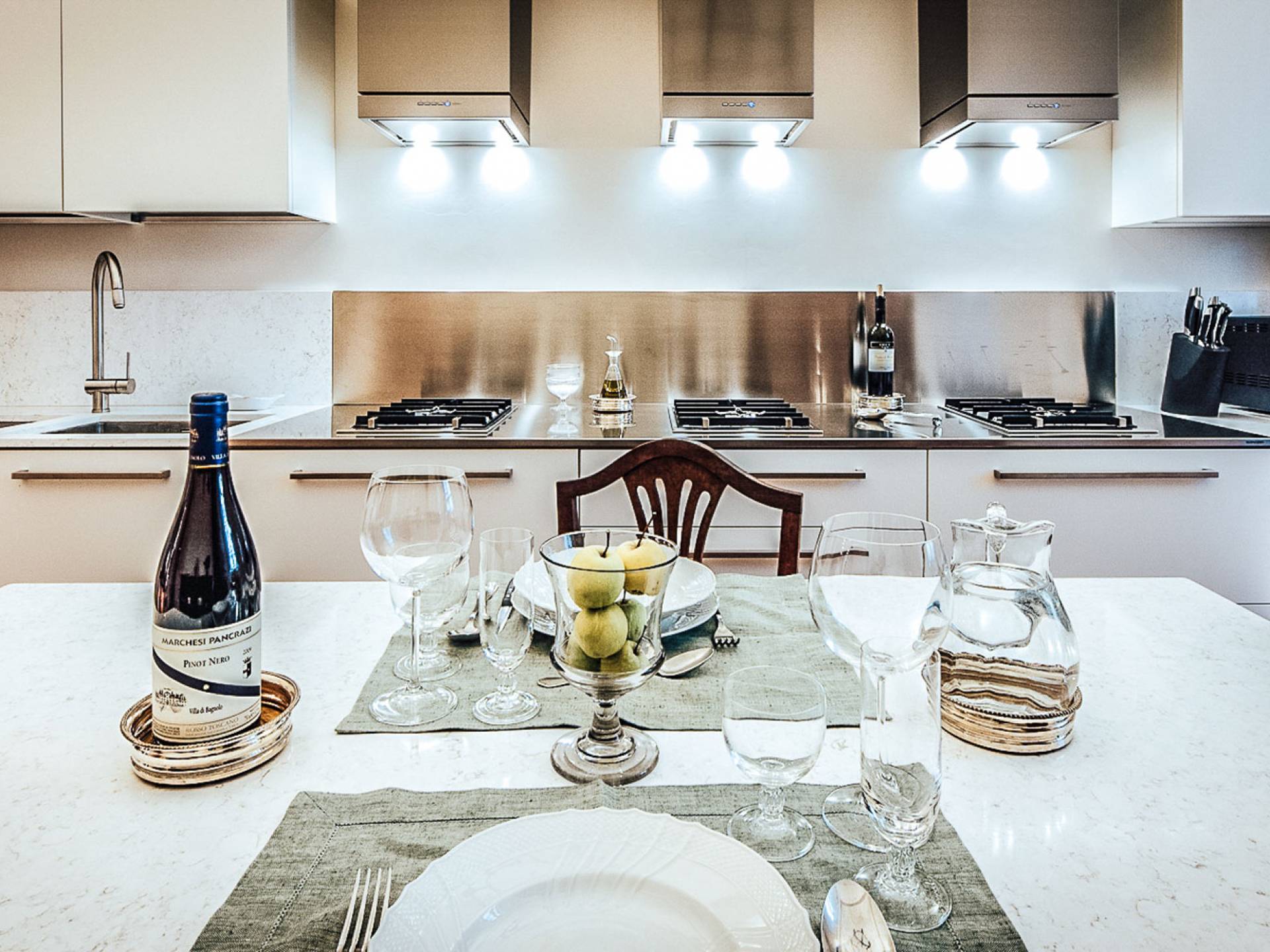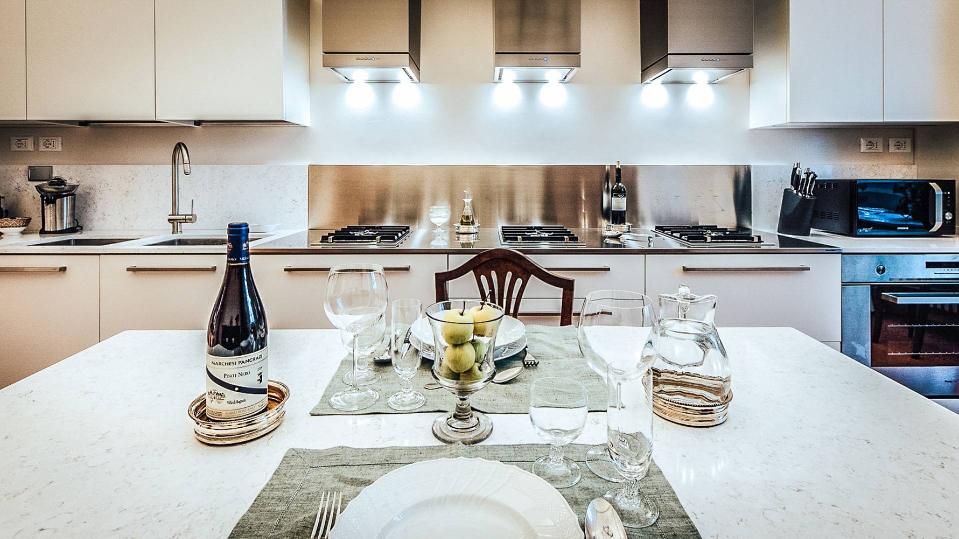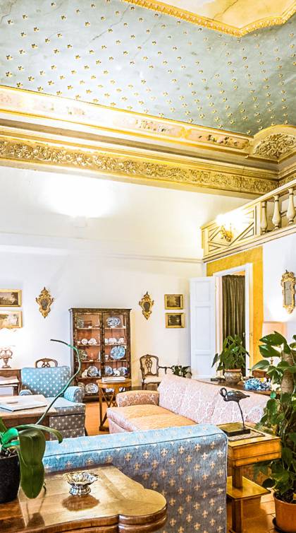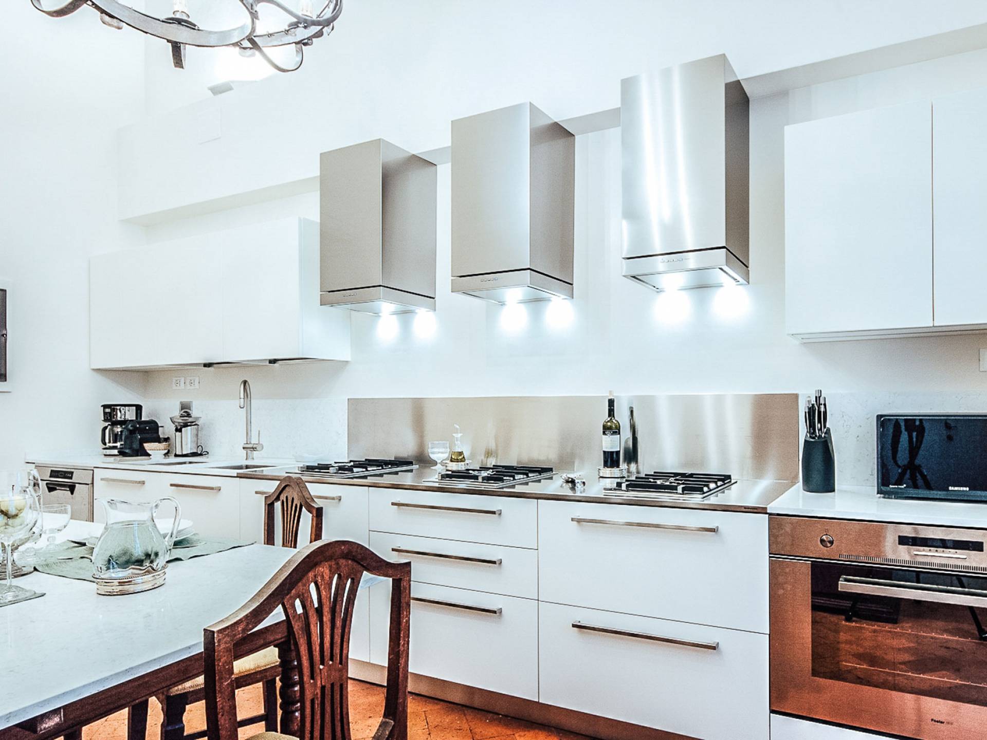 1 Gallery (23 m2) Ένας διάδρομος που συνδέει το σαλόνι με το υπόλοιπο σπίτι, με τους τοίχους και την οροφή πλήρως διακοσμημένα με τοιχογραφίες που απεικονίζουν βλάστηση και άλλα σχέδια. Ανάμεσα στα σχέδια διακρίνεται κανείς το οικόσημο της οικογένειας. Ο διάδρομος ήταν ο «χειμωνιάτικος κήπος» του πιάνο nobile όπου οι άνθρωποι συναντιόντουσαν για να πιουν τσάι ή να απολαύσουν ένα ήσυχο διάβασμα. Είναι επιπλωμένο με μικρά ντιβάνια και καθίσματα και περιλαμβάνει επίσης ένα καλά εφοδιασμένο ράφι με βιβλία για την τέχνη. 1 Επαγγελματική Κουζίνα (22 m2) Ο χώρος της κουζίνας είναι μοντέρνος, με 6 μέτρα χώρο μαγειρέματος. Οι χώροι εργασίας, ο καθένας με το δικό του απορροφητήρα, έχουν ρυθμιστεί έτσι ώστε να επιτρέπουν σε τρεις μάγειρες να εργάζονται ταυτόχρονα.