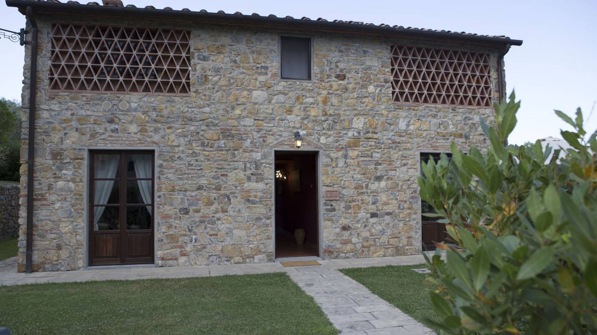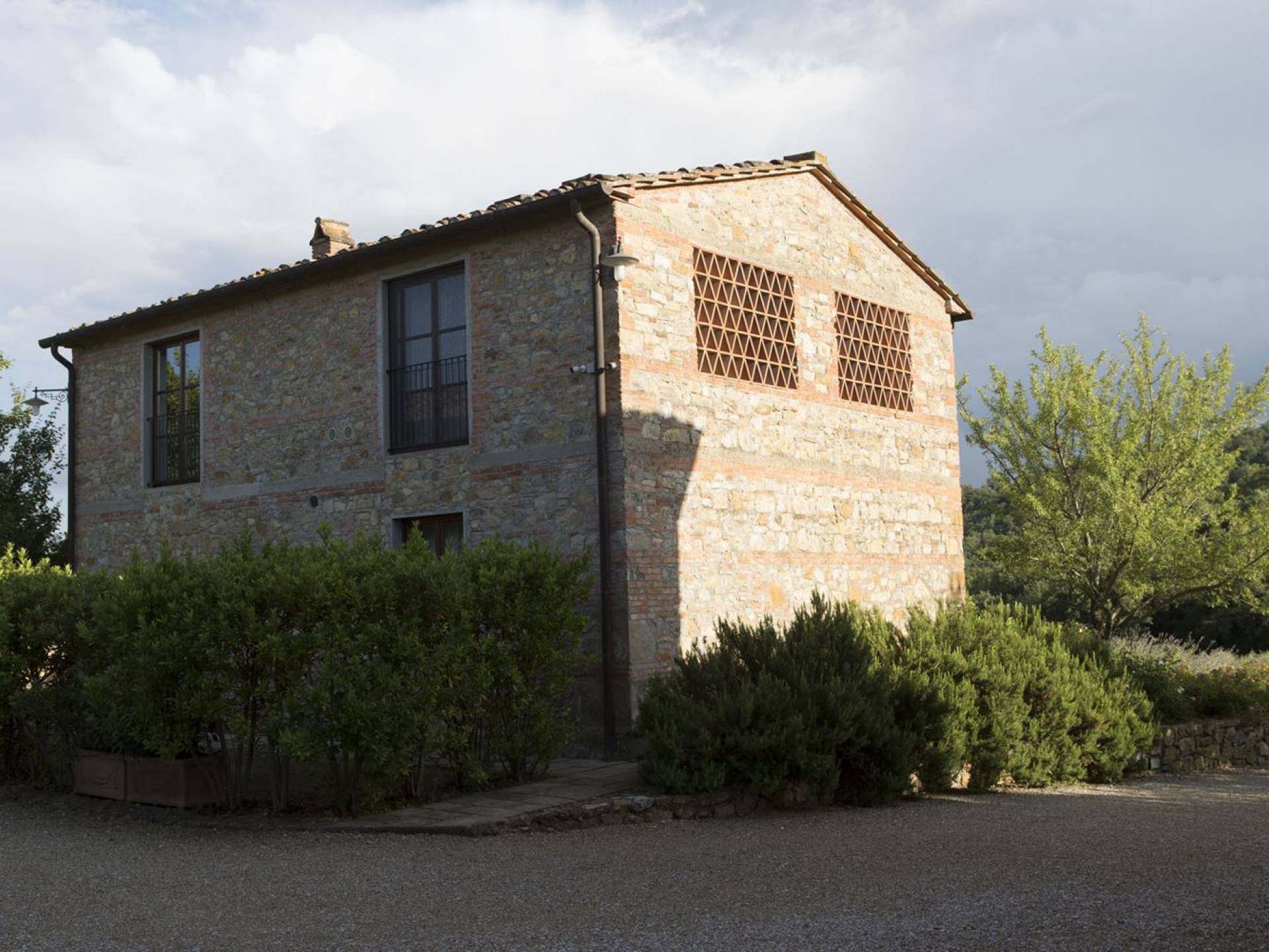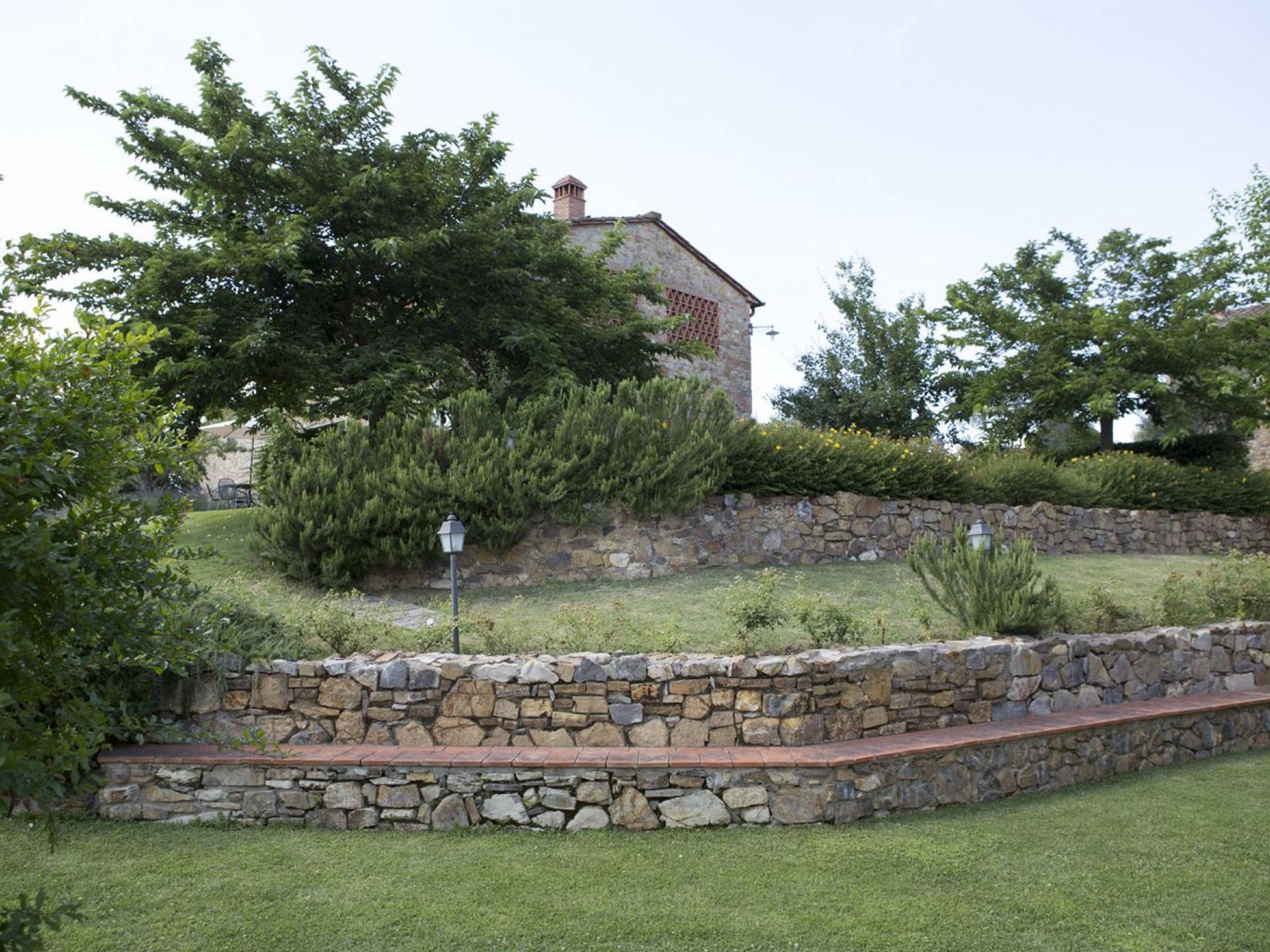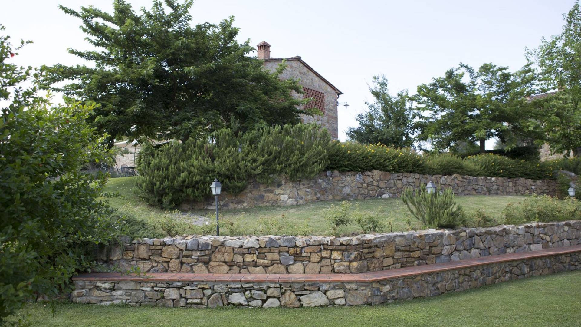 Όλα τα κτίρια είναι κατασκευασμένα από εκτεθειμένη πέτρα, ξύλο και λεπτομέρειες από σίδηρο. Οι κατοικίες βρίσκονται στη μέση μιας τεράστιας καταπράσινης περιοχής και περιβάλλονται εξ ολοκλήρου από ένα πάρκο διακοσμημένο με ελαιόδεντρα, κυπαρίσσια και ανθισμένους θάμνους τυπικούς της Μεσογείου. Ο κήπος φιλοξενεί μια μεγάλη πισίνα με χώρο υδρομασάζ, παιδική χαρά, γήπεδο τένις και γυμναστήριο, προφανώς όλα ιδιωτικά και για αποκλειστική χρήση των επισκεπτών. Οι εσωτερικοί χώροι είναι φωτεινοί και φρέσκοι, με ξύλινες οροφές και δάπεδα από τερακότα και παρκέ δάπεδα. Οι επισκέπτες θα απολαύσουν διάφορους χώρους χαλάρωσης που περιβάλλονται από ένα τυπικό ρουστίκ στιλ.