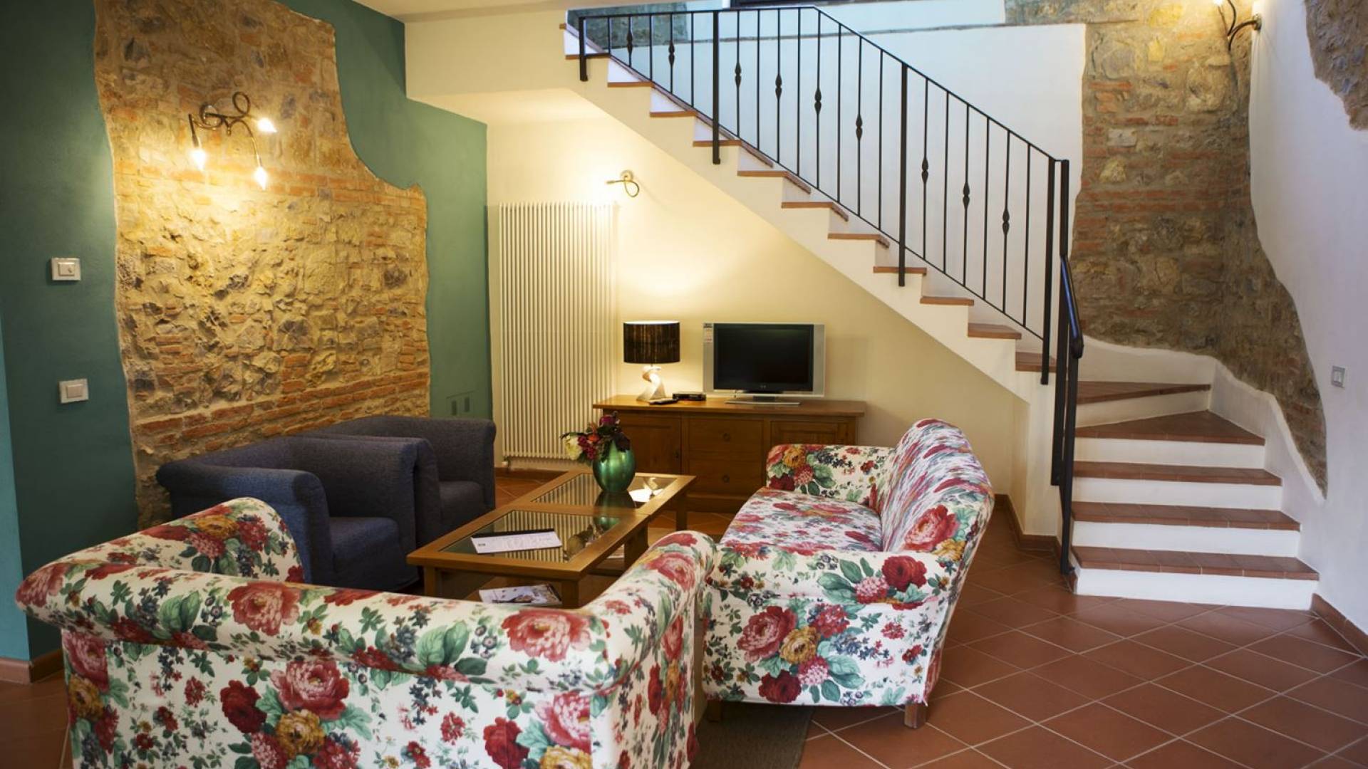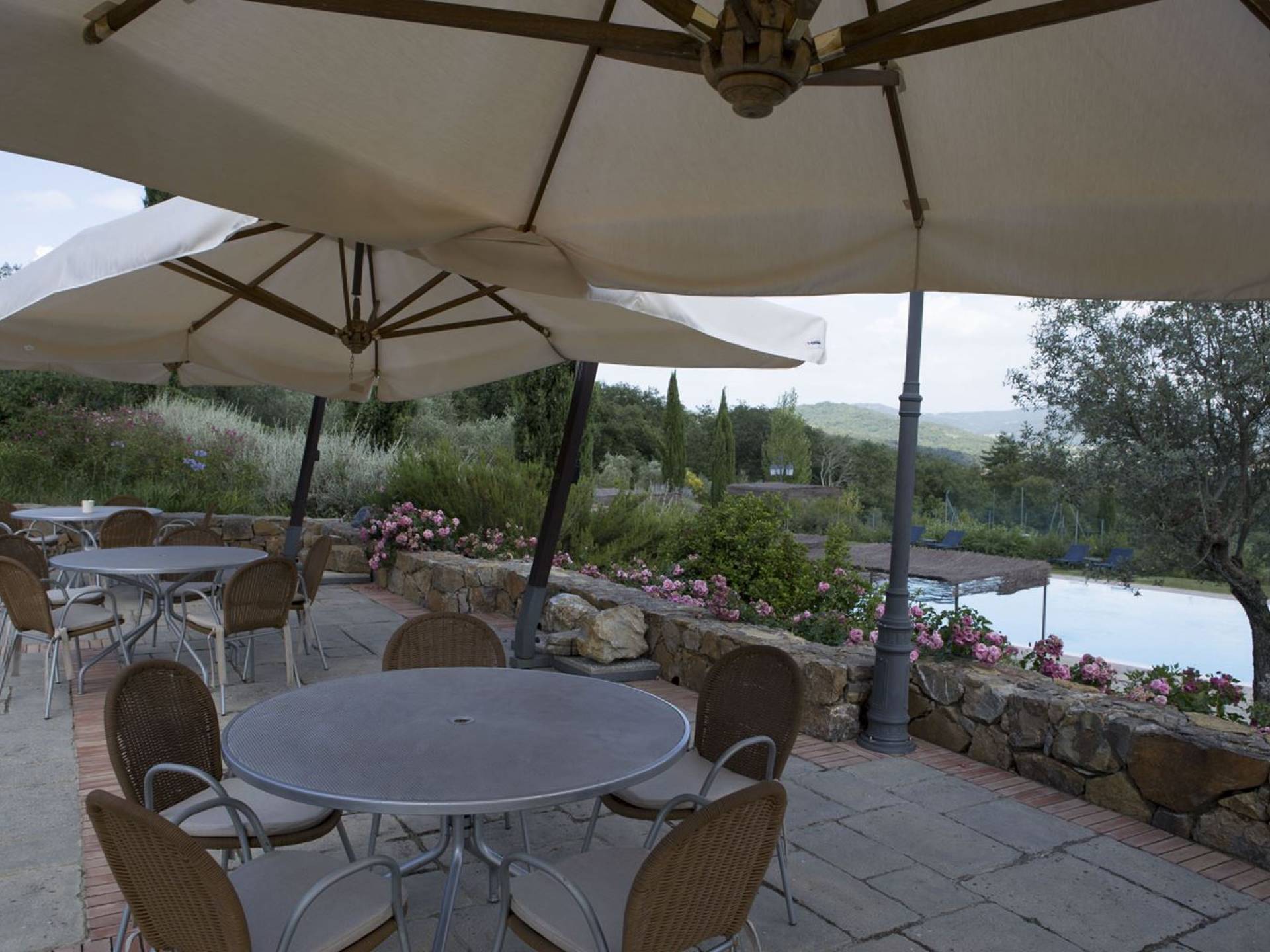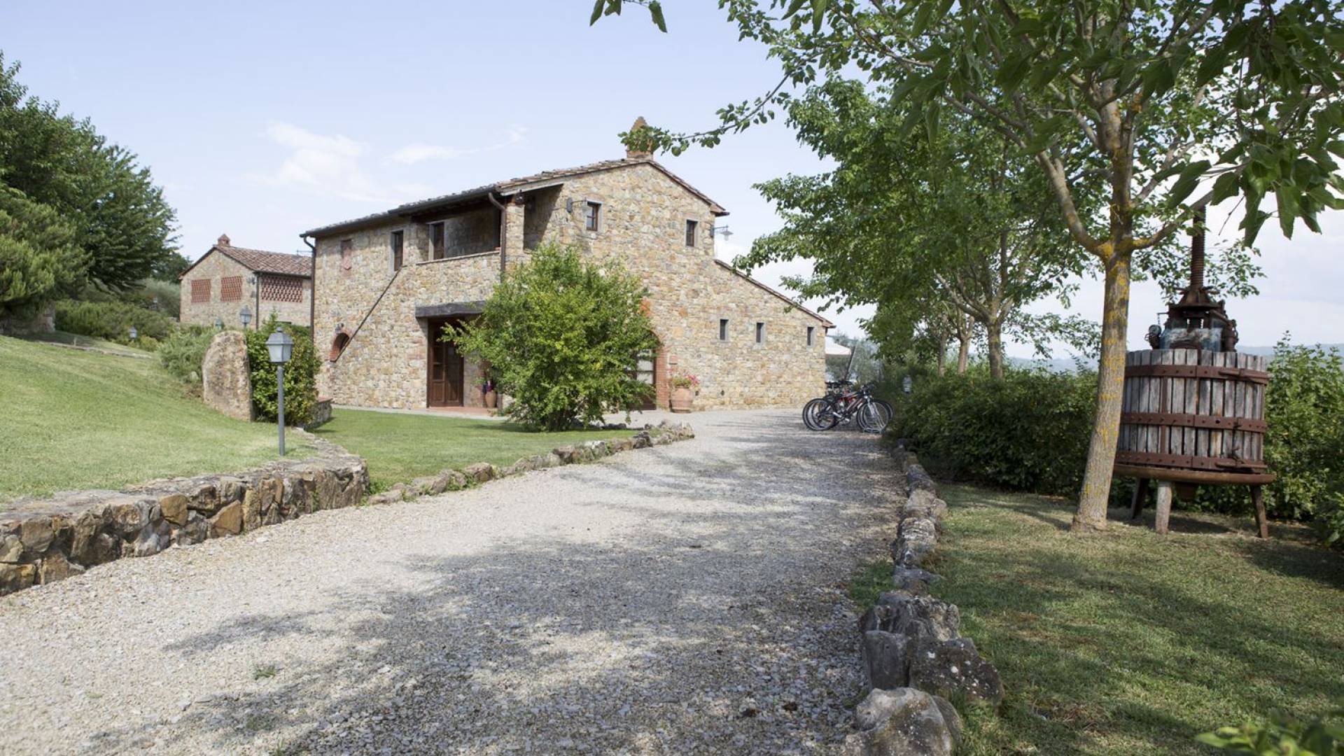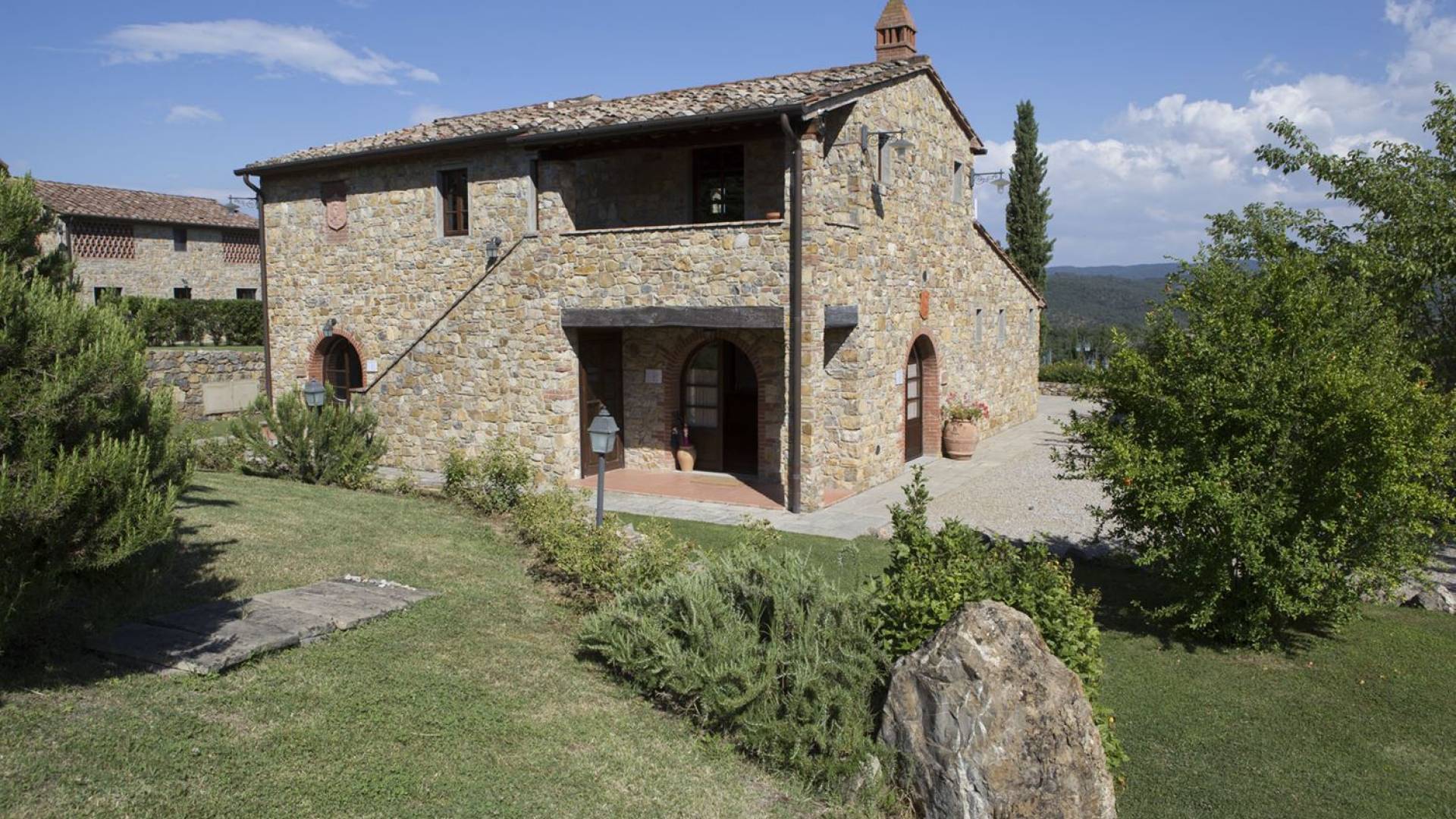 Όλα τα κτίρια είναι κατασκευασμένα από εκτεθειμένη πέτρα, ξύλο και λεπτομέρειες από σίδηρο. Οι κατοικίες βρίσκονται στη μέση μιας τεράστιας καταπράσινης περιοχής και περιβάλλονται εξ ολοκλήρου από ένα πάρκο διακοσμημένο με ελαιόδεντρα, κυπαρίσσια και ανθισμένους θάμνους τυπικούς της Μεσογείου. Ο κήπος φιλοξενεί μια μεγάλη πισίνα με χώρο υδρομασάζ, παιδική χαρά, γήπεδο τένις και γυμναστήριο, προφανώς όλα ιδιωτικά και για αποκλειστική χρήση των επισκεπτών. Οι εσωτερικοί χώροι είναι φωτεινοί και φρέσκοι, με ξύλινες οροφές και δάπεδα από τερακότα και παρκέ δάπεδα. Οι επισκέπτες θα απολαύσουν διάφορους χώρους χαλάρωσης που περιβάλλονται από ένα τυπικό ρουστίκ στιλ.