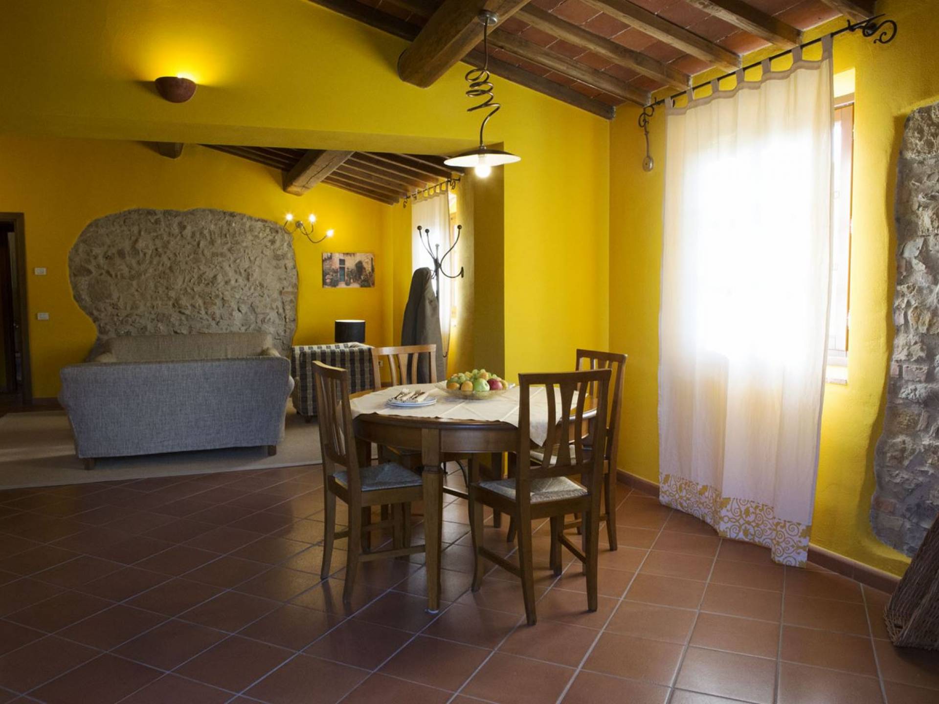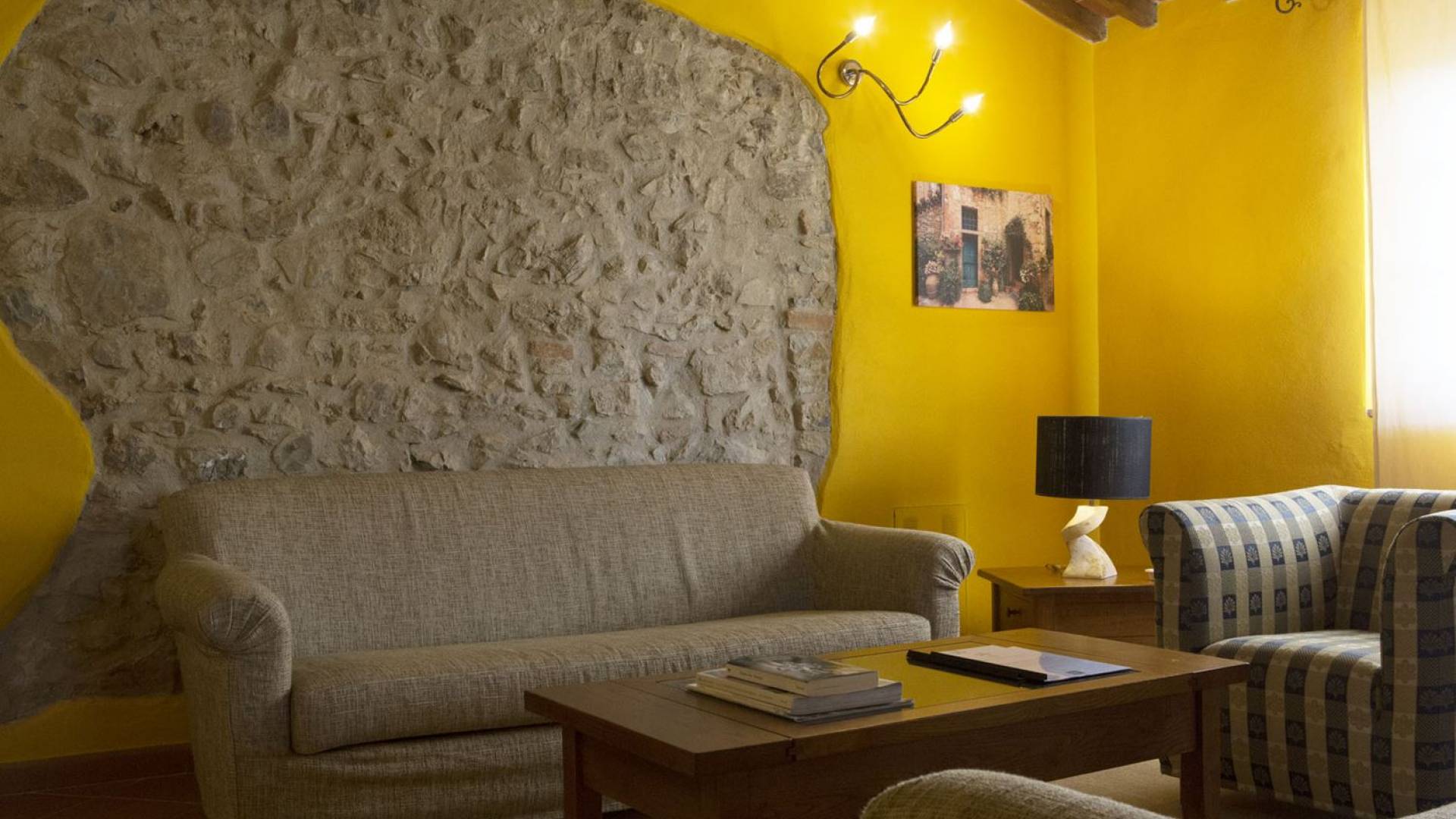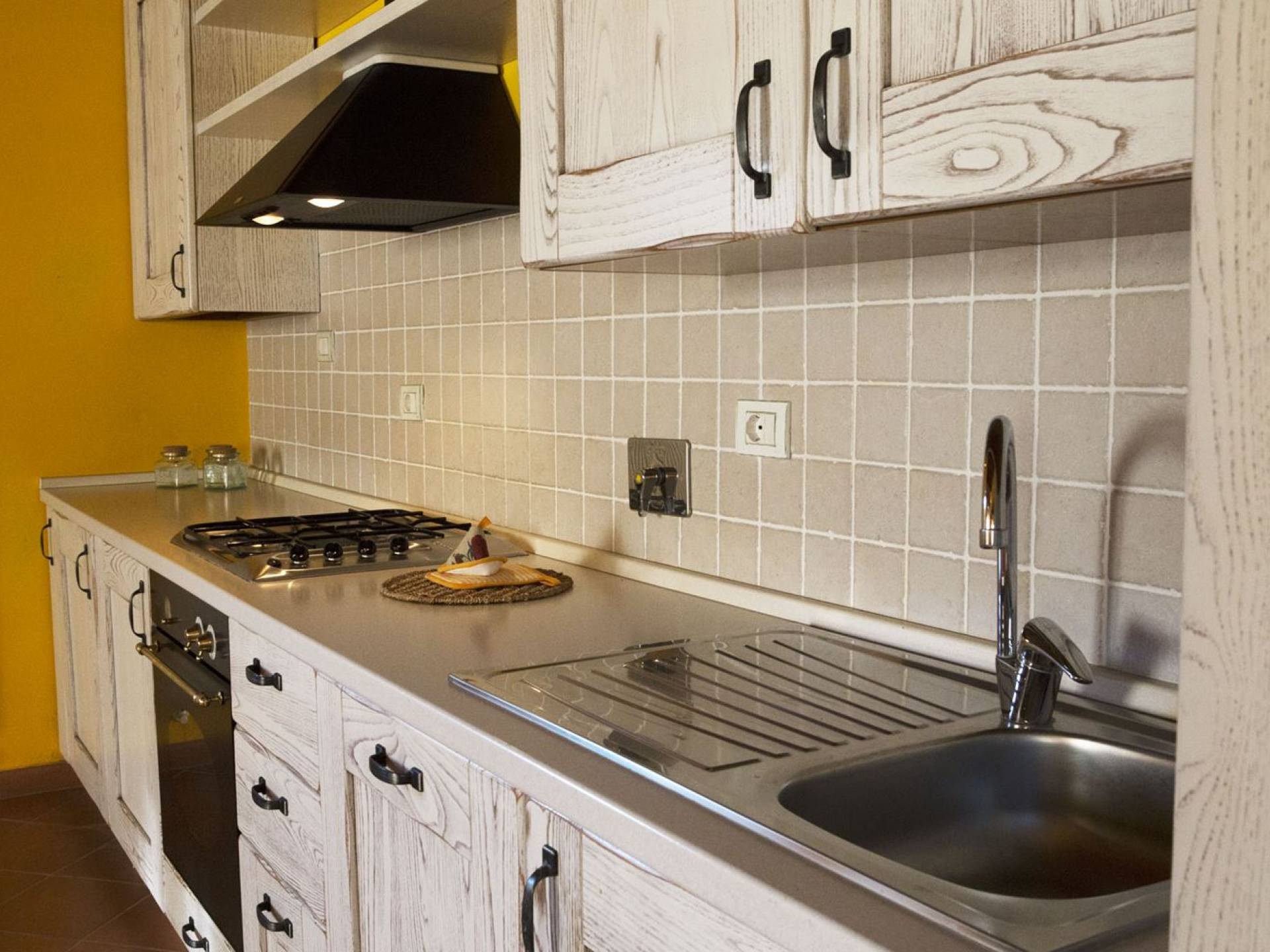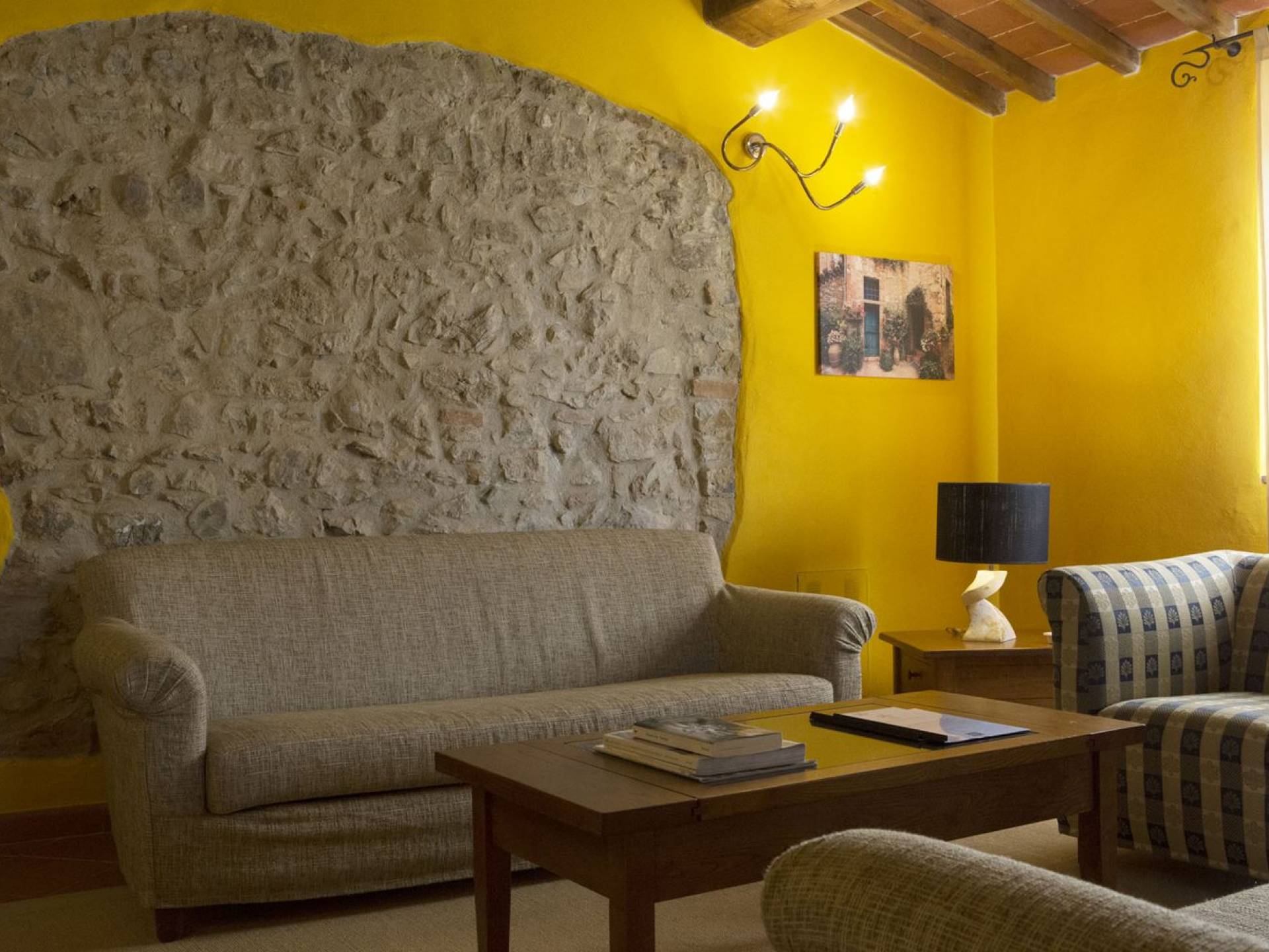 Όλα τα κτίρια είναι κατασκευασμένα από εκτεθειμένη πέτρα, ξύλο και λεπτομέρειες από σίδηρο. Οι κατοικίες βρίσκονται στη μέση μιας τεράστιας καταπράσινης περιοχής και περιβάλλονται εξ ολοκλήρου από ένα πάρκο διακοσμημένο με ελαιόδεντρα, κυπαρίσσια και ανθισμένους θάμνους τυπικούς της Μεσογείου. Ο κήπος φιλοξενεί μια μεγάλη πισίνα με χώρο υδρομασάζ, παιδική χαρά, γήπεδο τένις και γυμναστήριο, προφανώς όλα ιδιωτικά και για αποκλειστική χρήση των επισκεπτών. Οι εσωτερικοί χώροι είναι φωτεινοί και φρέσκοι, με ξύλινες οροφές και δάπεδα από τερακότα και παρκέ δάπεδα. Οι επισκέπτες θα απολαύσουν διάφορους χώρους χαλάρωσης που περιβάλλονται από ένα τυπικό ρουστίκ στιλ.