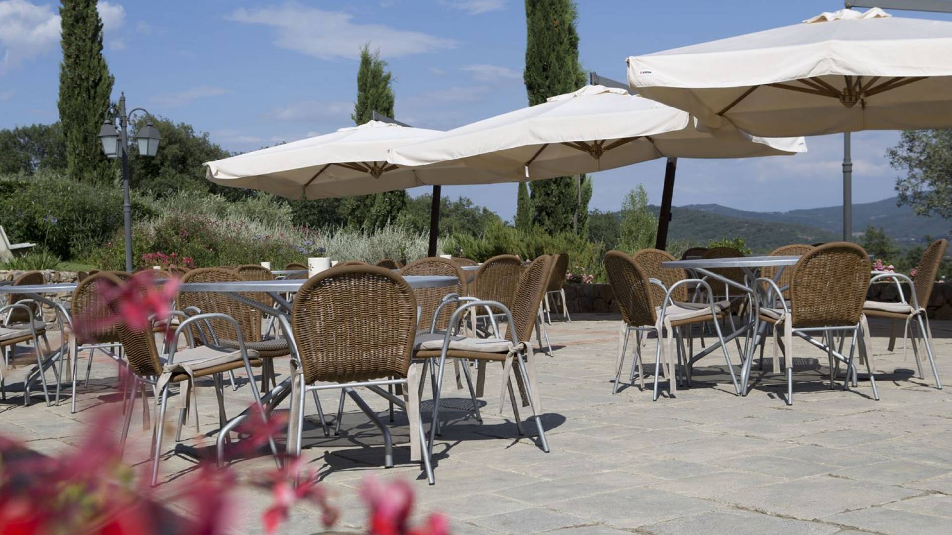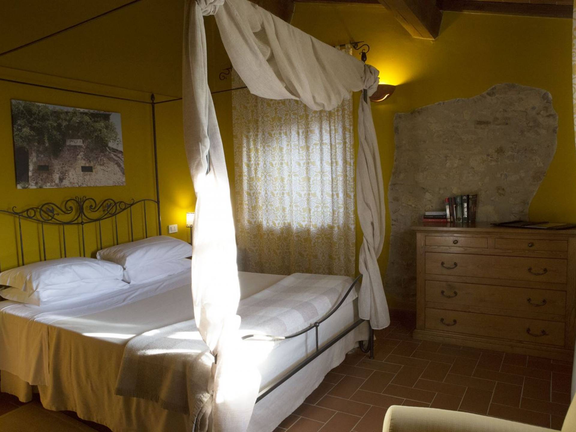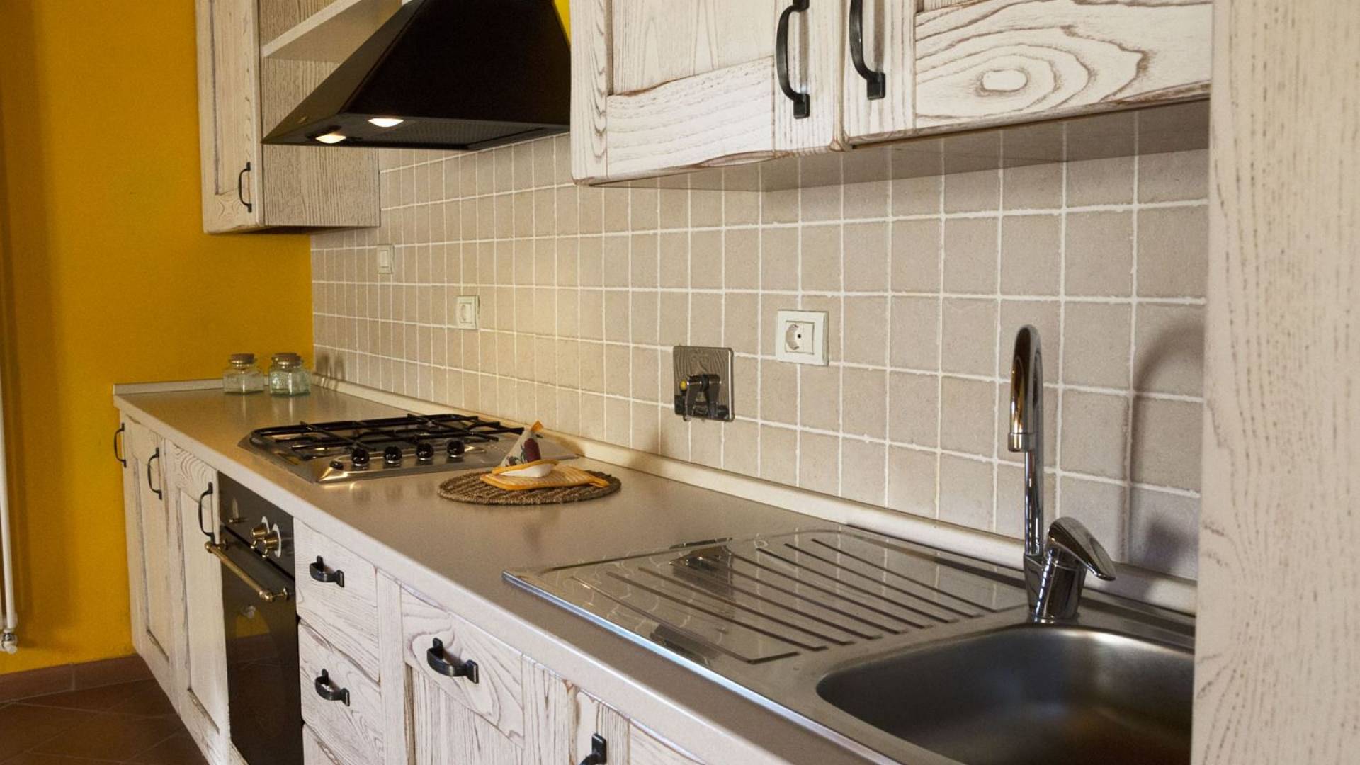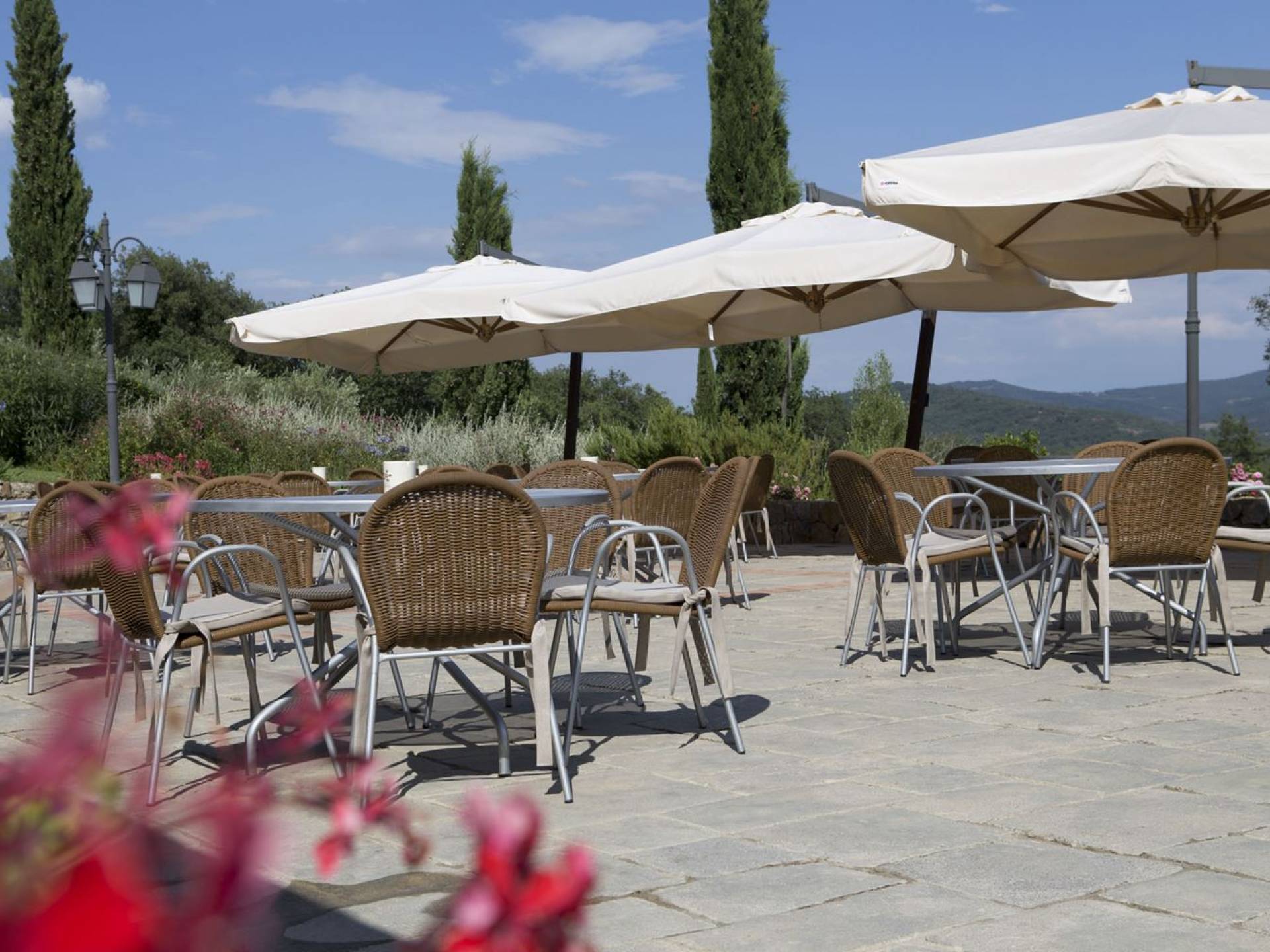 Όλα τα κτίρια είναι κατασκευασμένα από εκτεθειμένη πέτρα, ξύλο και λεπτομέρειες από σίδηρο. Οι κατοικίες βρίσκονται στη μέση μιας τεράστιας καταπράσινης περιοχής και περιβάλλονται εξ ολοκλήρου από ένα πάρκο διακοσμημένο με ελαιόδεντρα, κυπαρίσσια και ανθισμένους θάμνους τυπικούς της Μεσογείου. Ο κήπος φιλοξενεί μια μεγάλη πισίνα με χώρο υδρομασάζ, παιδική χαρά, γήπεδο τένις και γυμναστήριο, προφανώς όλα ιδιωτικά και για αποκλειστική χρήση των επισκεπτών. Οι εσωτερικοί χώροι είναι φωτεινοί και φρέσκοι, με ξύλινες οροφές και δάπεδα από τερακότα και παρκέ δάπεδα. Οι επισκέπτες θα απολαύσουν διάφορους χώρους χαλάρωσης που περιβάλλονται από ένα τυπικό ρουστίκ στιλ.
