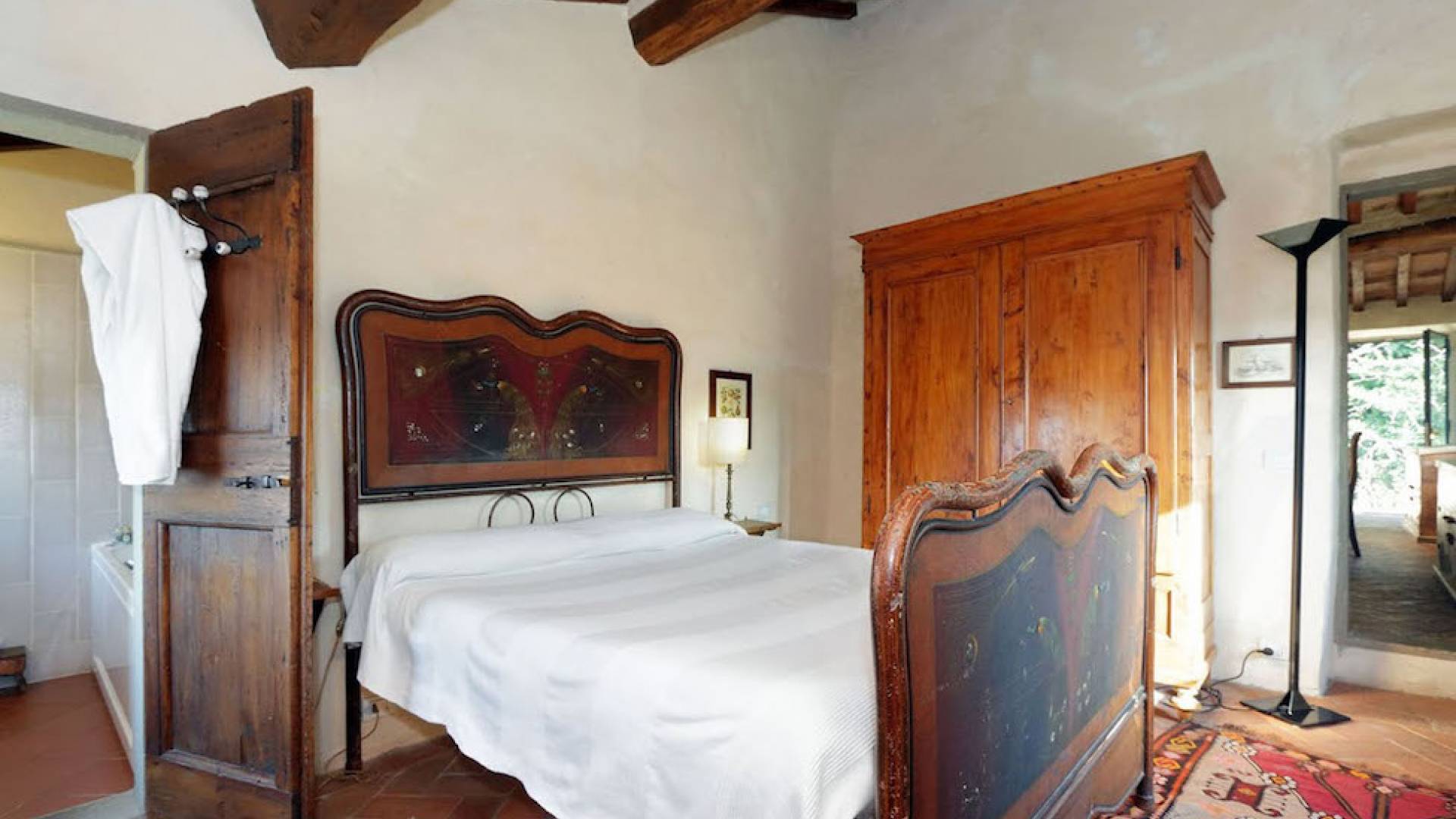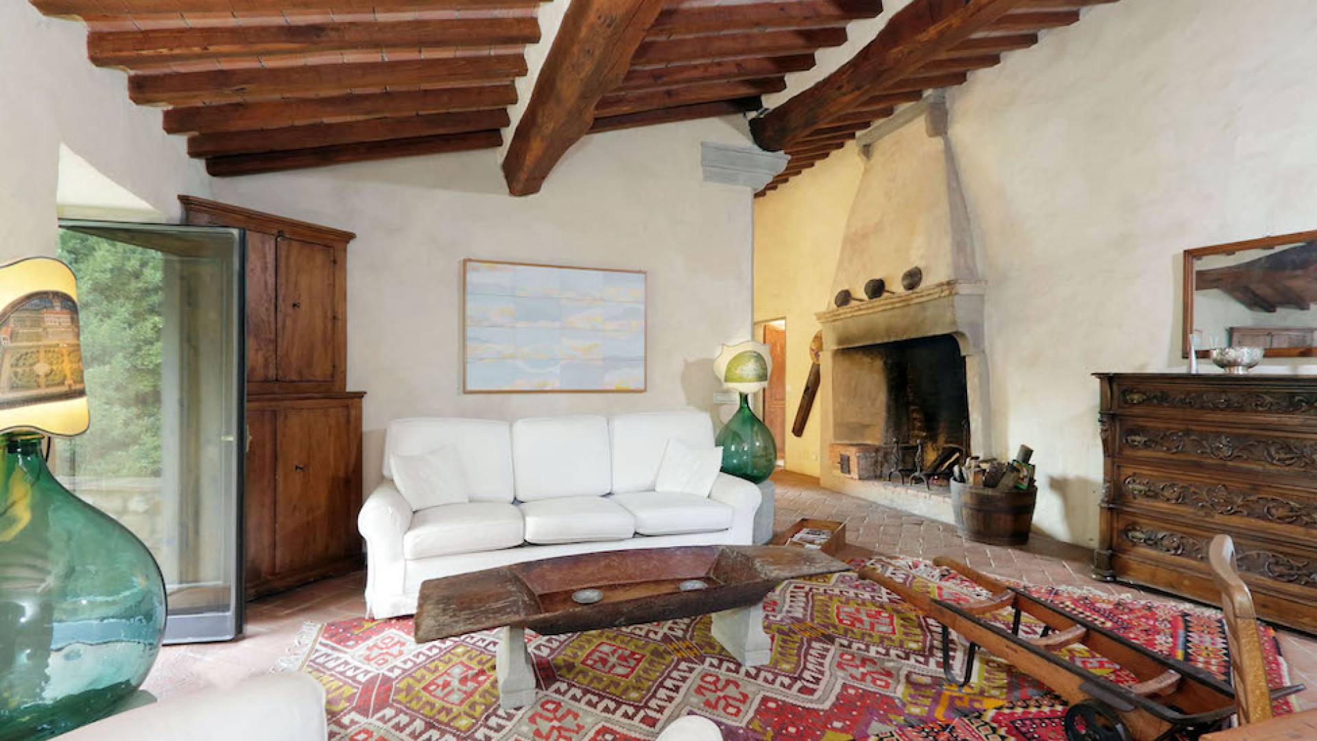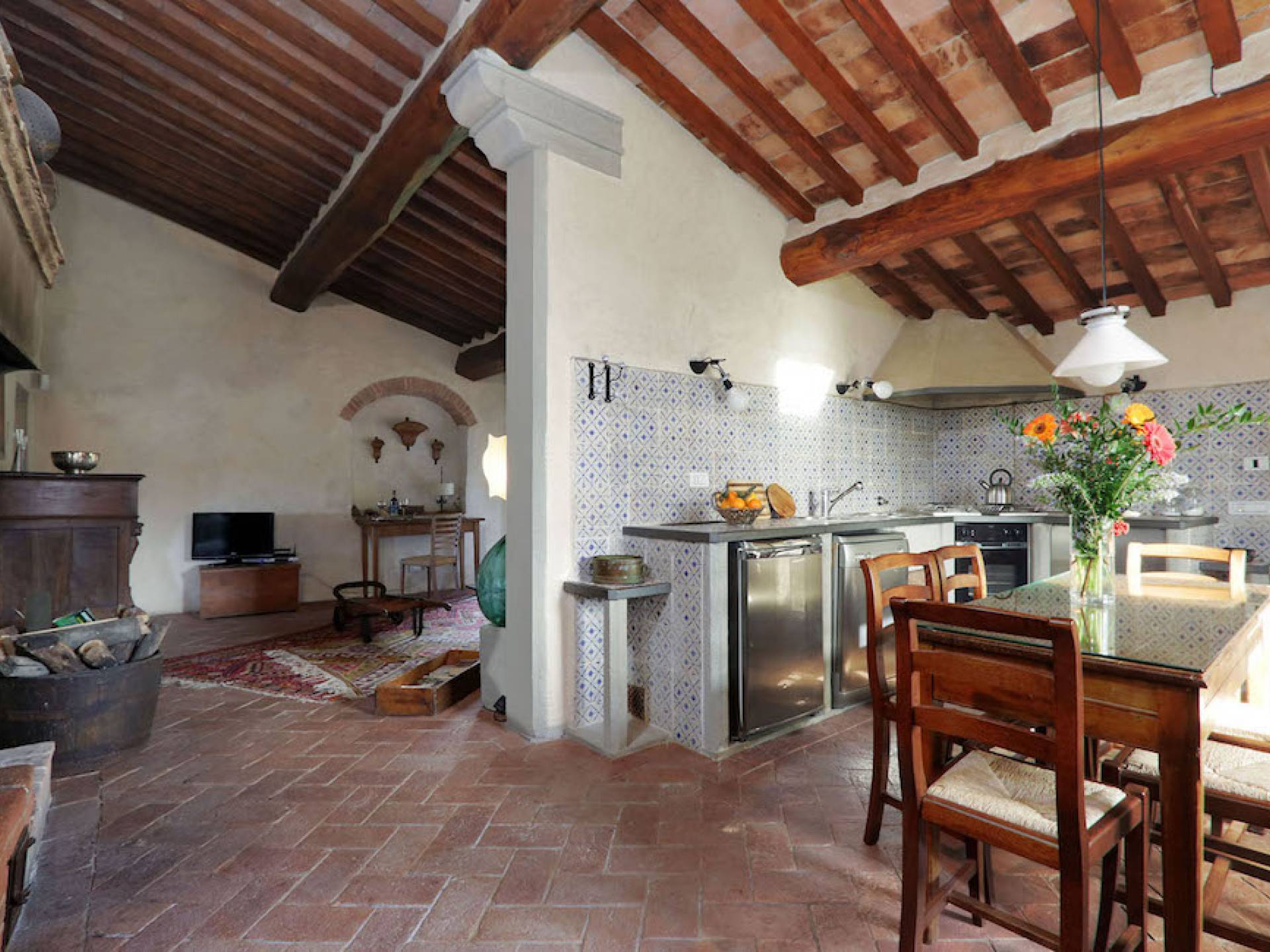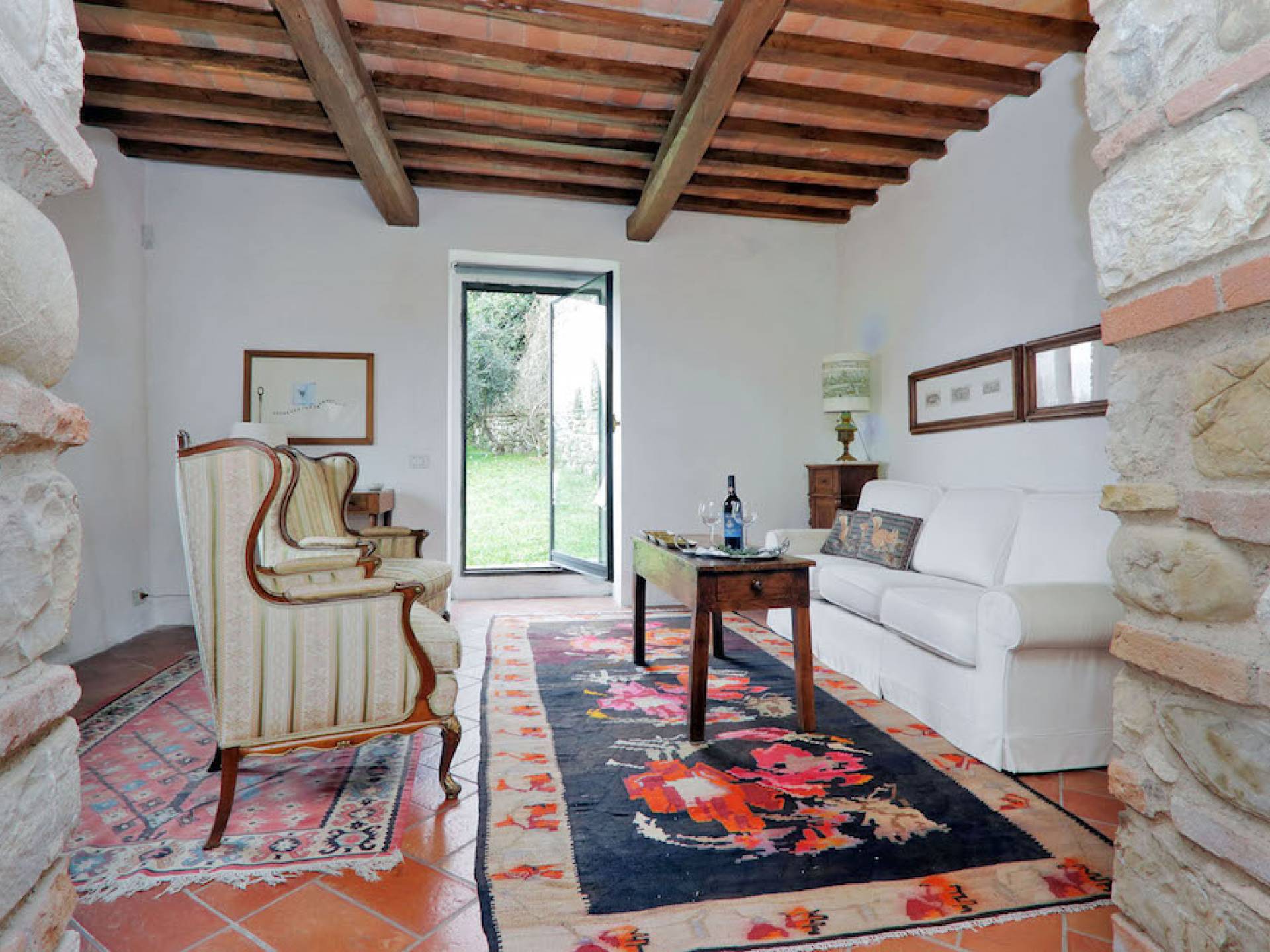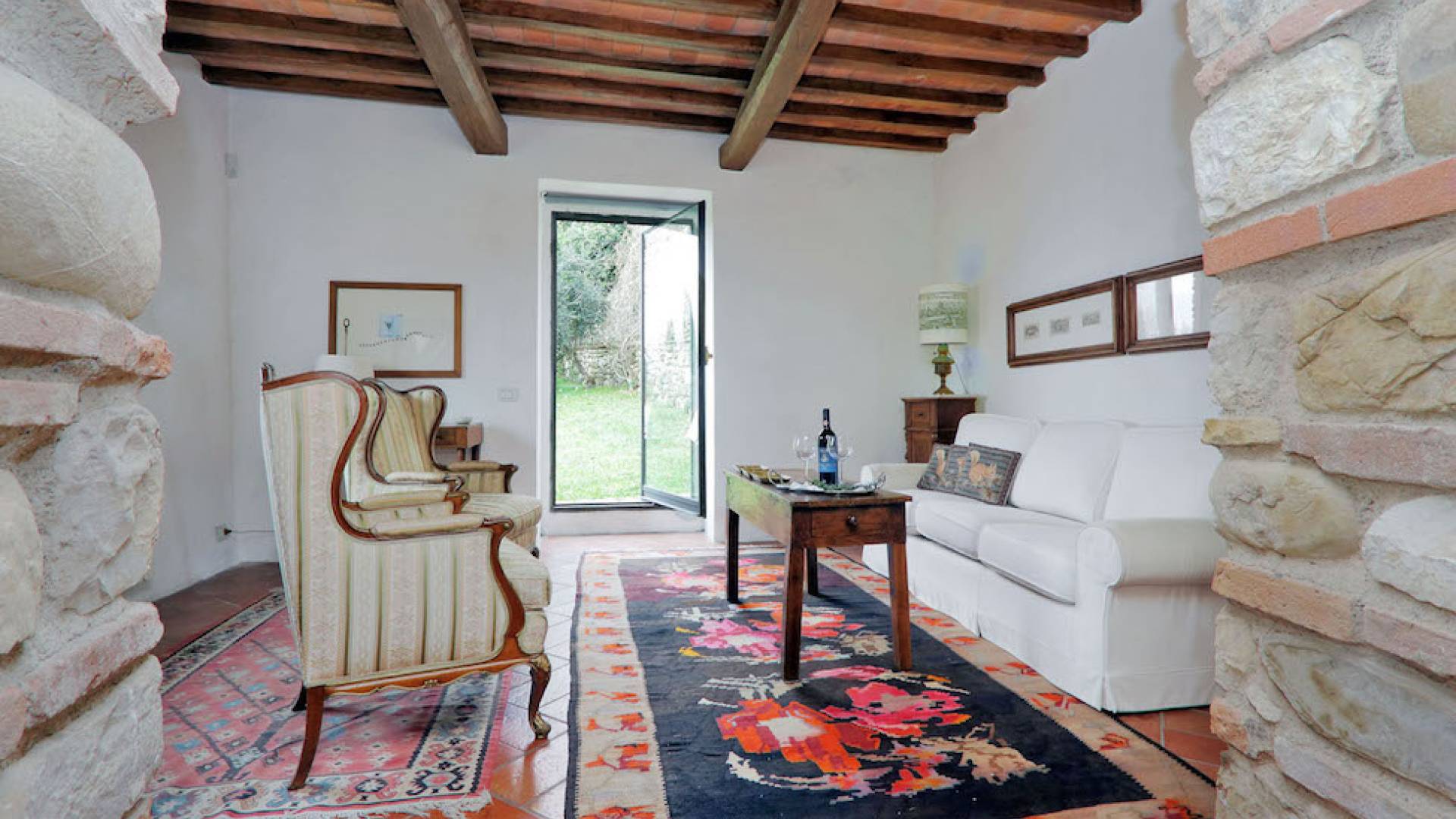 Βρίσκεται στο χωριό, αυτή η διώροφη αγροικία περιβάλλεται από έναν όμορφο γκαζόν. Τα παράθυρα ανοίγουν σε ένα πανόραμα της κοιλάδας της Πέσας και των ελαιώνων του αγροκτήματος. Το μεγάλο σπίτι είναι διακοσμημένο με πολύτιμα έπιπλα, χαλί Kilim και εξοπλισμένο με όλες τις σύγχρονες ανέσεις, διατηρώντας παράλληλα το παραδοσιακό στυλ της Τοσκάνης. Η φωτεινή είσοδος με ένα παλιό τζάκι οδηγεί σε δύο υπνοδωμάτια. Μια παλιά σκάλα σας οδηγεί στο ισόγειο, ο οποίος ανοίγει σε έναν ιδιωτικό κήπο προσβάσιμο από όλα τα δωμάτια: το άνετο σαλόνι, την τραπεζαρία και την κουζίνα διακοσμημένη με αντίκες κεραμίδια από τερακότα. Έξω από την κουζίνα, υπάρχει μπάρμπεκιου από τερακότα και πέτρα, σιδερένιο τραπέζι και καρέκλες όπου μπορεί κανείς να απολαύσει υπέροχες ψησταριές στο ύπαιθρο.