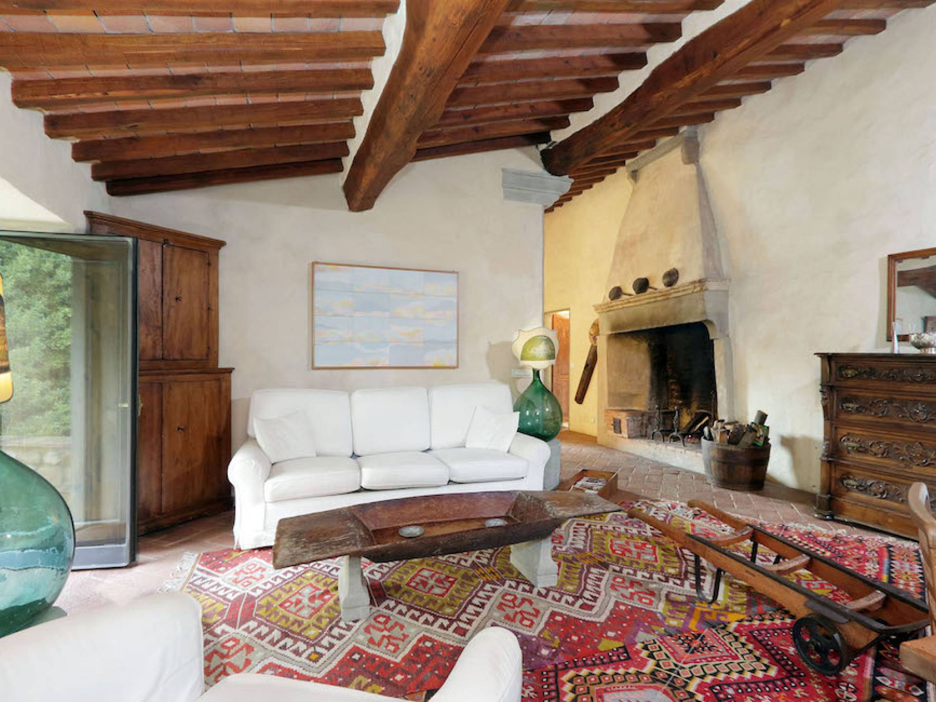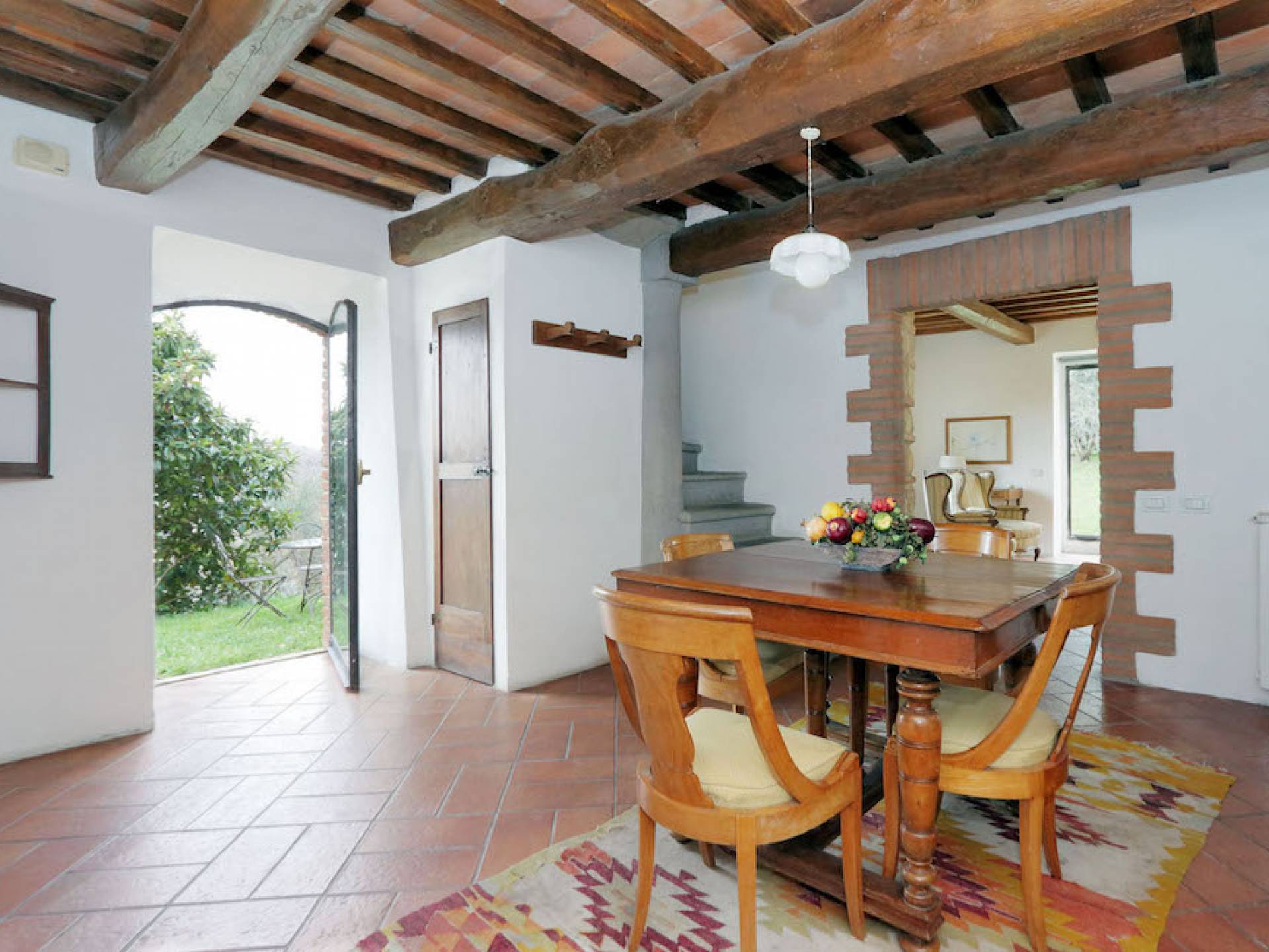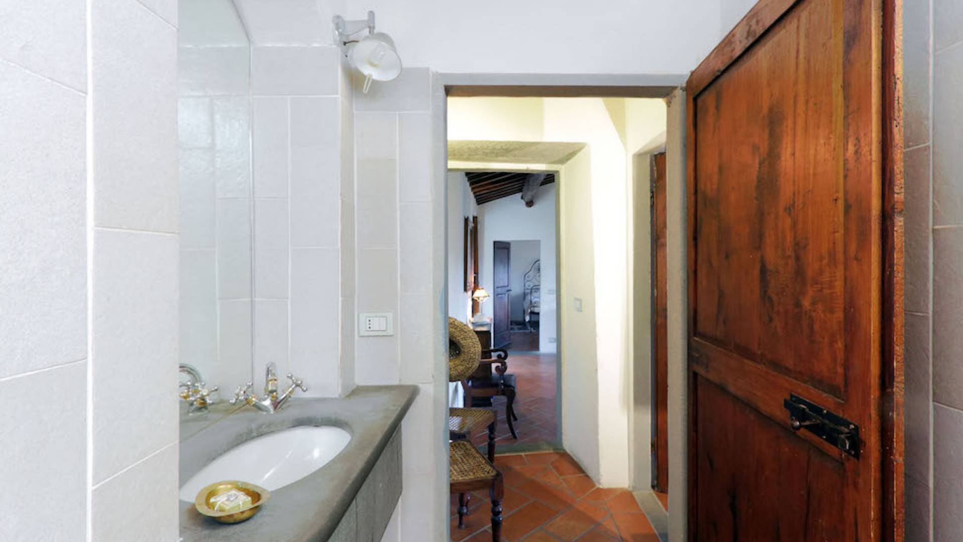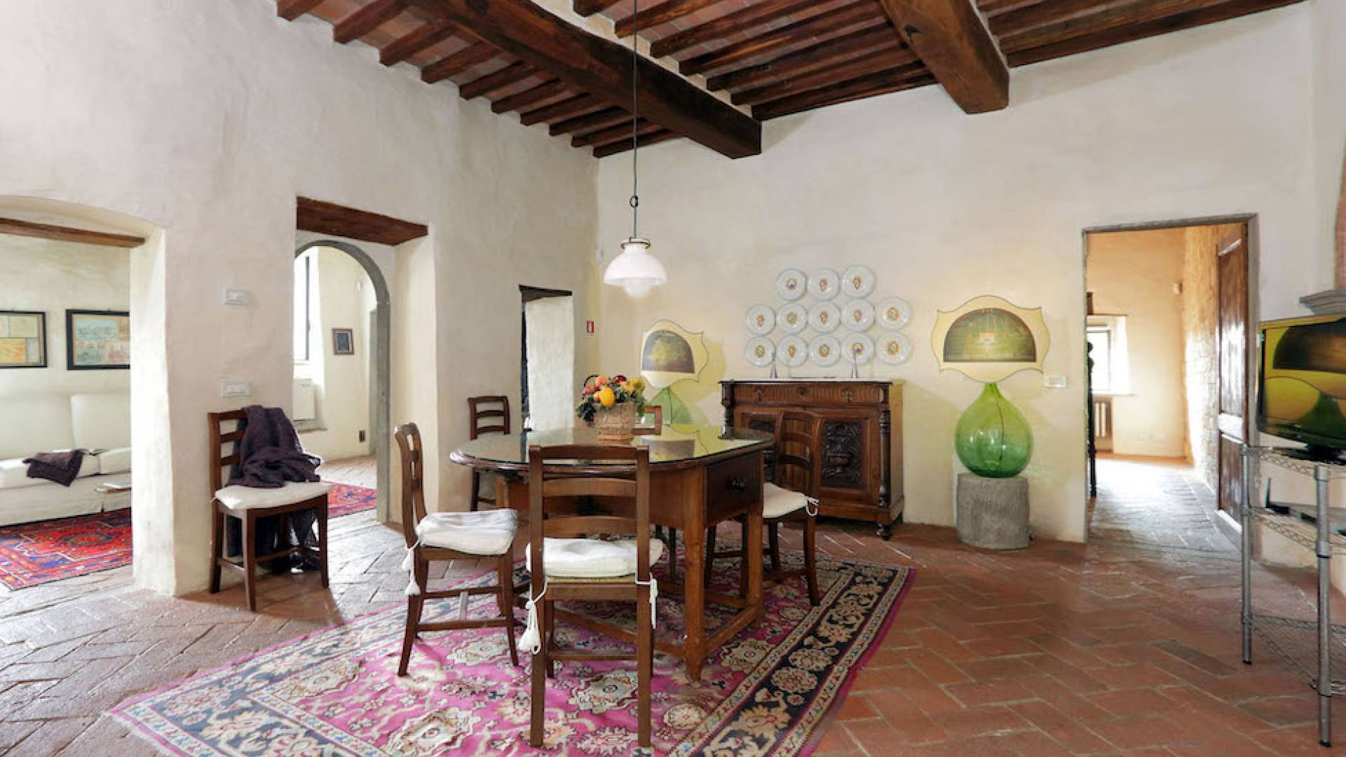 Βρίσκεται στο χωριό, αυτή η διώροφη αγροικία περιβάλλεται από έναν όμορφο γκαζόν. Τα παράθυρα ανοίγουν σε ένα πανόραμα της κοιλάδας της Πέσας και των ελαιώνων του αγροκτήματος. Το μεγάλο σπίτι είναι διακοσμημένο με πολύτιμα έπιπλα, χαλί Kilim και εξοπλισμένο με όλες τις σύγχρονες ανέσεις, διατηρώντας παράλληλα το παραδοσιακό στυλ της Τοσκάνης. Η φωτεινή είσοδος με ένα παλιό τζάκι οδηγεί σε δύο υπνοδωμάτια. Μια παλιά σκάλα σας οδηγεί στο ισόγειο, ο οποίος ανοίγει σε έναν ιδιωτικό κήπο προσβάσιμο από όλα τα δωμάτια: το άνετο σαλόνι, την τραπεζαρία και την κουζίνα διακοσμημένη με αντίκες κεραμίδια από τερακότα. Έξω από την κουζίνα, υπάρχει μπάρμπεκιου από τερακότα και πέτρα, σιδερένιο τραπέζι και καρέκλες όπου μπορεί κανείς να απολαύσει υπέροχες ψησταριές στο ύπαιθρο.