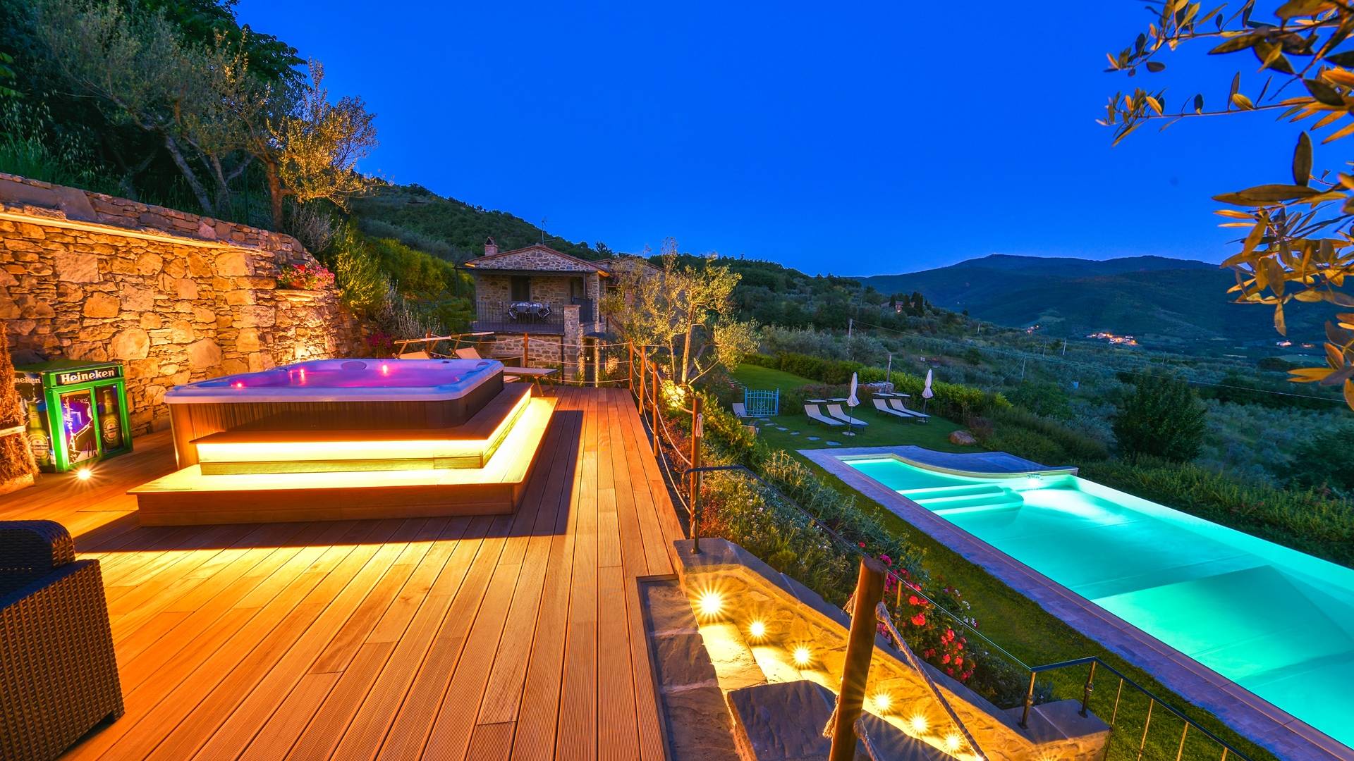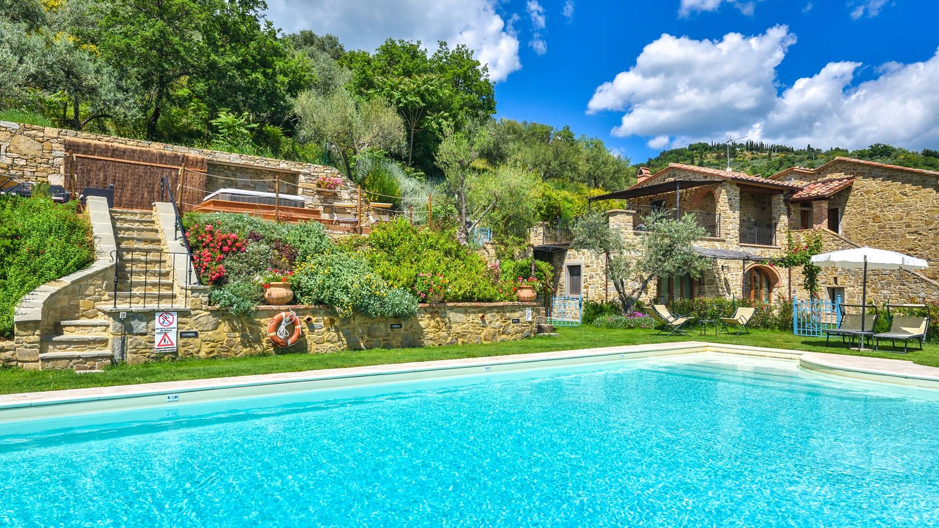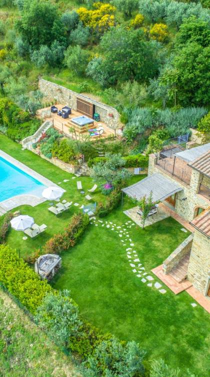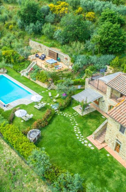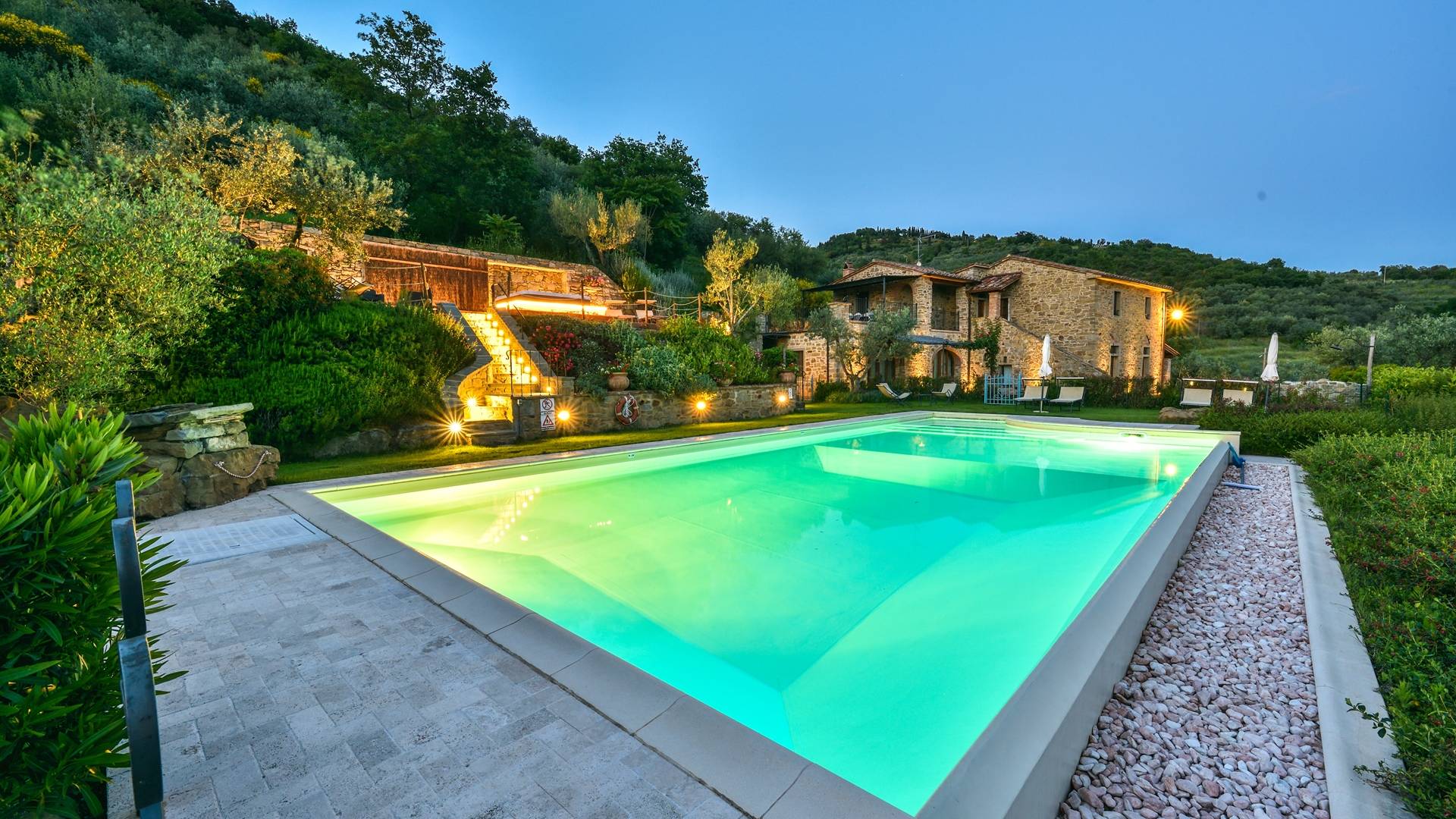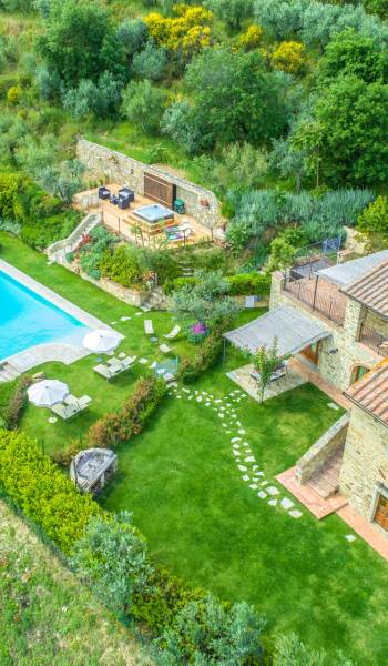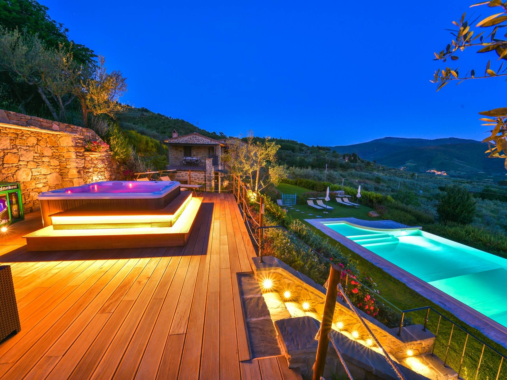Πρόσφατα ανακαινισμένη, η βίλα διαθέτει έπιπλα εσωτερικού χώρου με προσοχή σε κάθε λεπτομέρεια για να δώσει σε κάθε δωμάτιο μια ιδιαίτερη πινελιά, πάντα καλά ενσωματωμένη στο γενικό πλαίσιο. Το δάπεδο από τερακότα, τα ξύλινα δοκάρια και τα παστέλ χρώματα των τοίχων δημιουργούν μια τυπικά Τοσκανική ατμόσφαιρα. Έξω, ο κήπος πλαισιώνει την υπέροχη πισίνα διαστάσεων 6 μέτρα πλάτος επί 12 μέτρα μήκος, με έναν καταρράκτη, έναν ρηχό χώρο για παιδιά και ένα άπειρο άκρο που αφήνει ελεύθερη τη θέα της κοιλάδας από κάτω. Επίσης έξω υπάρχει μια μεγάλη ξύλινη πλακόστρωτη βεράντα με θερμαινόμενη μπανιέρα τζακούζι και ξαπλώστρες καθώς και μια γωνιά με καναπέ και πολυθρόνες και ένα τραπεζάκι για να διαβάσετε ένα βιβλίο ή για ένα διάλειμμα για κοκτέιλ. Ξαπλώστρες και ομπρέλες είναι επίσης διαθέσιμες δίπλα στην πισίνα σε έναν καταπράσινο κήπο όπου μπορείτε να περπατήσετε ξυπόλητοι για να απολαύσετε στη συνέχεια μια βουτιά στο νερό. Όλος ο χώρος είναι φωτισμένος, αυτό του επιτρέπει να χρησιμοποιείται ακόμα και τη νύχτα. Επίσης έξω θα βρείτε επίσης έναν ξυλόφουρνο που καλύπτεται από μια οροφή και ένα χώρο μπάρμπεκιου για υπαίθρια ψησίματα.