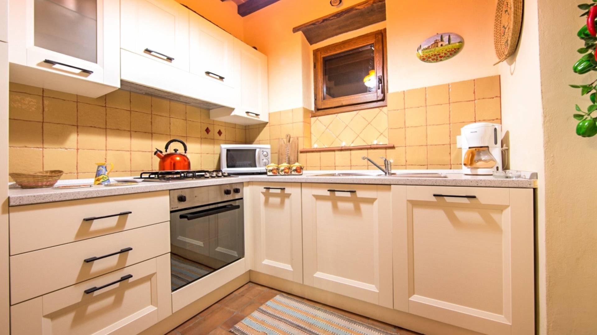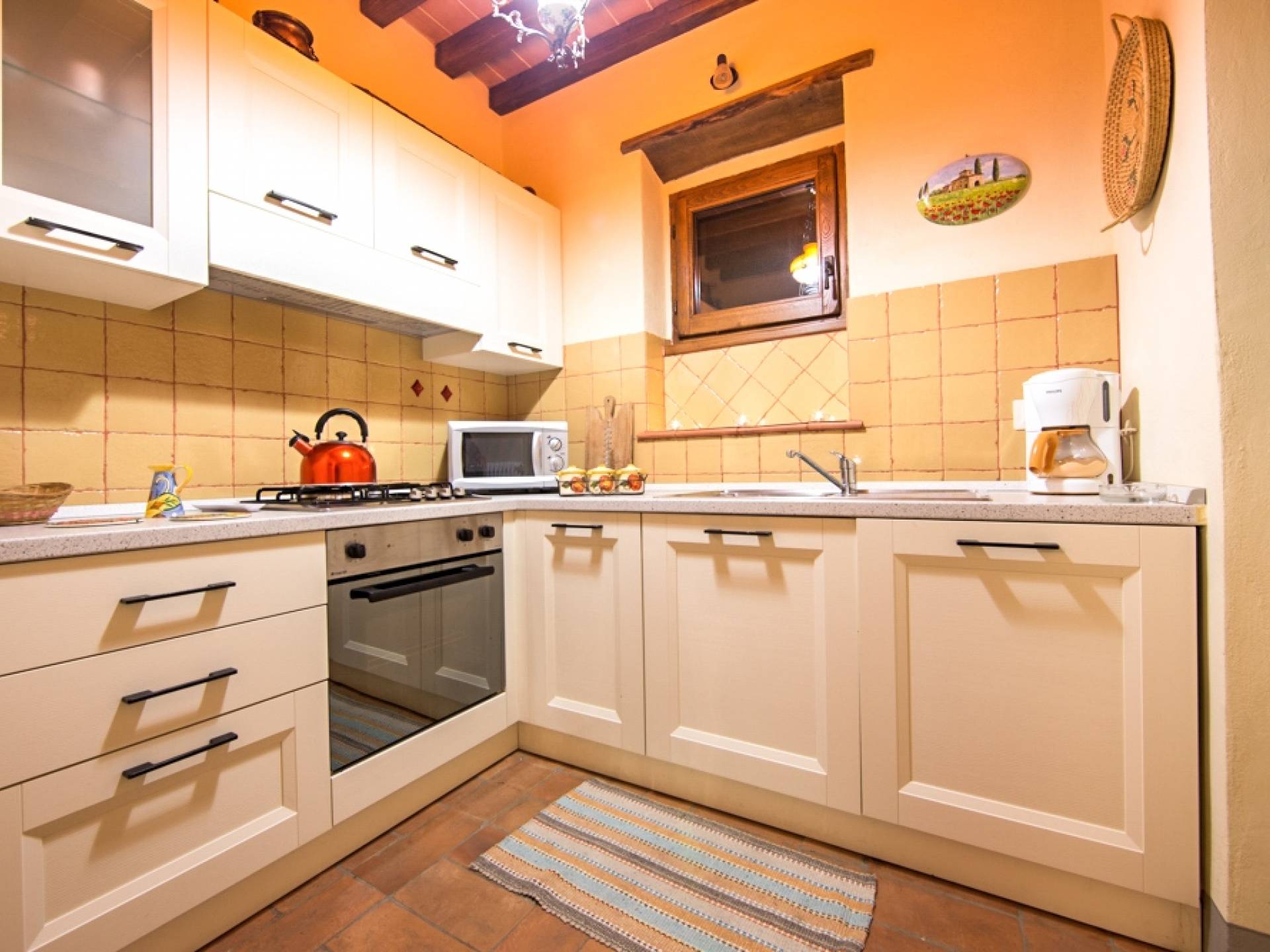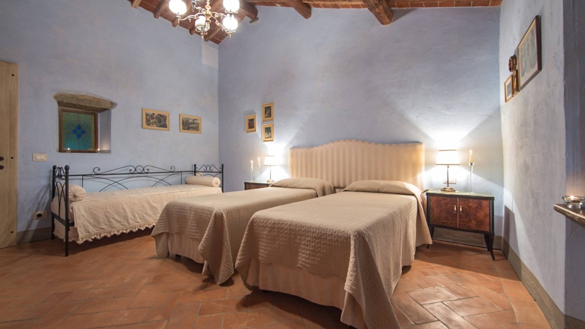 Η βίλα χωρίζεται σε δύο διαμερίσματα το καθένα σε έναν όροφο που μπορούν να φιλοξενήσουν έως και 11 άτομα. Το κτίριο στο ισόγειο αποτελείται από ένα μεγάλο ενιαίο χώρο σαλόνι, κουζίνα, ένα υπνοδωμάτιο με διπλό κρεβάτι με ιδιωτικό μπάνιο, ένα υπνοδωμάτιο με δύο μονά κρεβάτια και ένα μπάνιο με τζακούζι. Στον πρώτο όροφο, το δεύτερο διαμέρισμα αποτελείται από ένα υπνοδωμάτιο με διπλό κρεβάτι, ένα τρίκλινο υπνοδωμάτιο, σαλόνι, κουζίνα, μπάνιο, και βεράντα με πανοραμική πέργκολα. Η βίλα διαθέτει επίσης δορυφορική τηλεόραση, πλυντήριο ρούχων, πλυντήριο πιάτων, μπάρμπεκιου, ξυλόφουρνο για πίτσα έξω. Σε απόσταση λίγων χιλιομέτρων, υπάρχουν τα φημισμένα κέντρα Cortona, Montepulciano, Montalcino - η πατρίδα του φημισμένου κρασιού "Brunello" - αλλά και το San Gimignano, η Siena, η Pienza και η Φλωρεντία, στα οποία μπορείτε να φτάσετε σε μόλις μια ώρα με το αυτοκίνητο. .