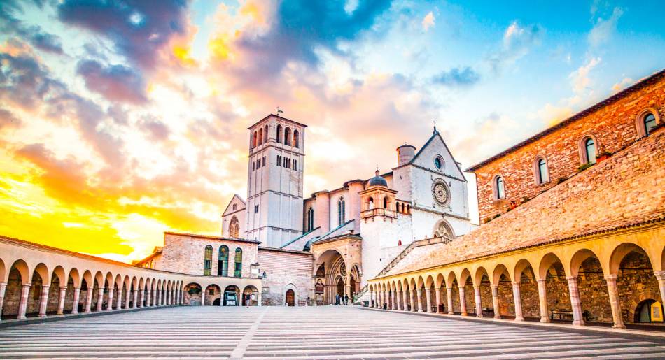 Η Ασίζη είναι μια μικρή μεσαιωνική πόλη σκαρφαλωμένη σε έναν λόφο στην Ούμπρια της Ιταλίας. Διάσημη ως η γενέτειρα του Αγίου Φραγκίσκου, ενός από τους πολιούχους της Ιταλίας, η Ασίζη έχει μεγάλη θρησκευτική, ιστορική και καλλιτεχνική σημασία. Στολίδι και σημείο αναφοράς της πόλης είναι η επιβλητική Βασιλική του Αγίου Φραγκίσκου, η οποία είναι μια μεγαλοπρεπής εκκλησία 2 επιπέδων, που αφιερώθηκε το 1253. Η εκκλησία περιλαμβάνει τοιχογραφίες του 13ου αιώνα με μεγάλη καλλιτεχνική αξία, που απεικονίζουν τη ζωή του Αγίου Φραγκίσκου στους αρχιτέκτονες και τους ζωγράφους Giotto και Cimabue, μεταξύ άλλων. Η κρύπτη στεγάζει την πέτρινη σαρκοφάγο του αγίου.
