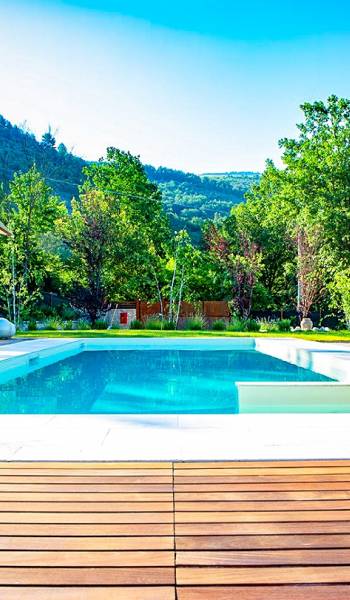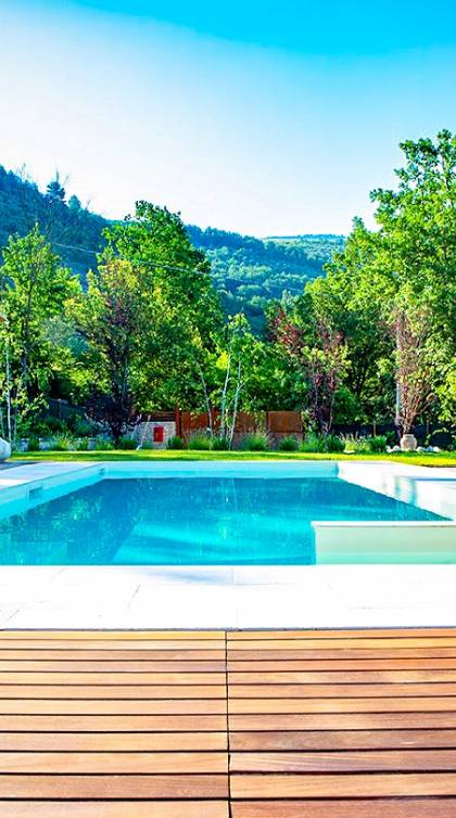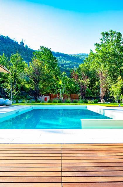 Η πισίνα είναι υπέροχη, εύκολα προσβάσιμη μέσω μιας σκάλας που συνδέεται με το σαλόνι ή από το εξωτερικό , ακόμα και για όσους έχουν κινητικές δυσκολίες. Είναι μια πισίνα θαλασσινού νερού, θερμαινόμενη, με θέα στη γύρω ύπαιθρο και διαθέτει μεγάλο χώρο σολάριουμ, ενώ διαθέτει και μπαρ. Για την ευεξία σας, θα βρείτε επίσης μια υπέροχη σάουνα και τέσσερα ποδήλατα για μερικές εκδρομές στα πετάλια.
