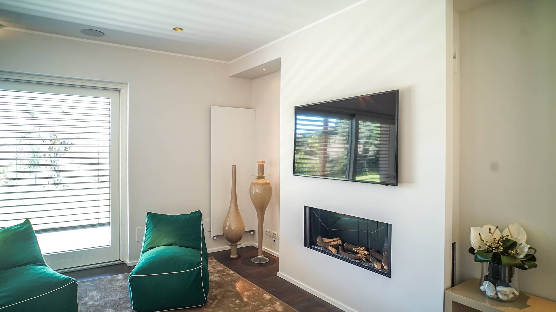 Η είσοδος της Villa San Francesco φωτίζεται από μια πολύ μεγάλη γυάλινη πόρτα με θέα στα βουνά της Ούμπρια, την πράσινη καρδιά της Ιταλίας. Για τη διαμονή σας, θα βρείτε ένα μεγάλο σαλόνι με δερμάτινους καναπέδες και τζάκι βιοαιθανόλης που θα ζεστάνει ευχάριστα τις πιο κρύες μέρες σας. Η βιβλιοθήκη, στον χώρο της τηλεόρασης, είναι επίσης εφοδιασμένη με ευχάριστες και ενδιαφέρουσες αναγνώσεις.