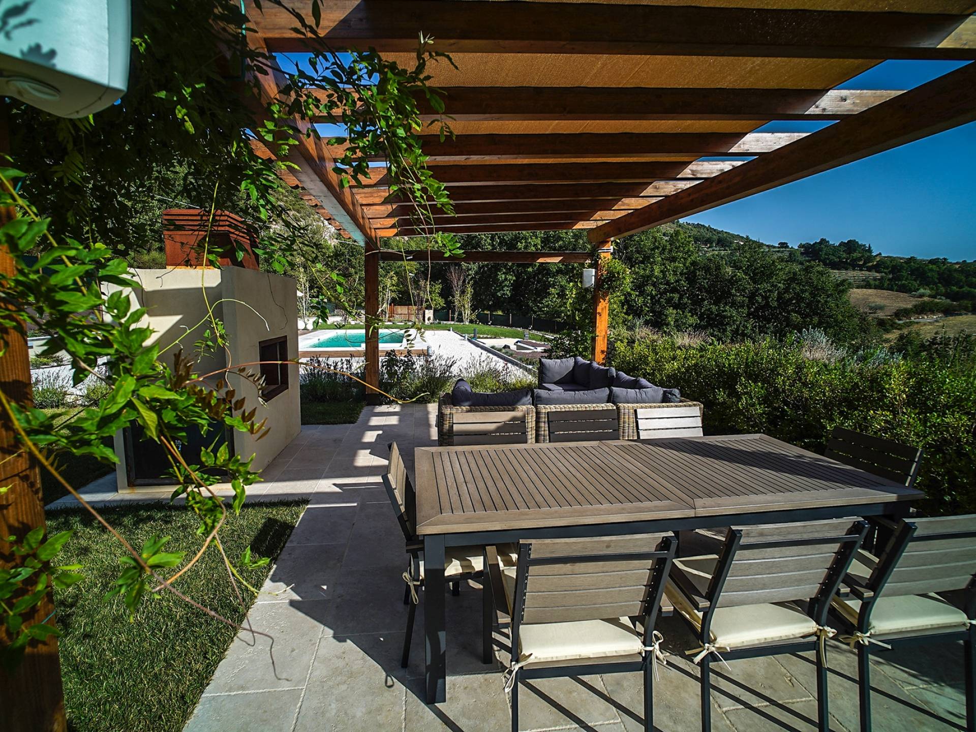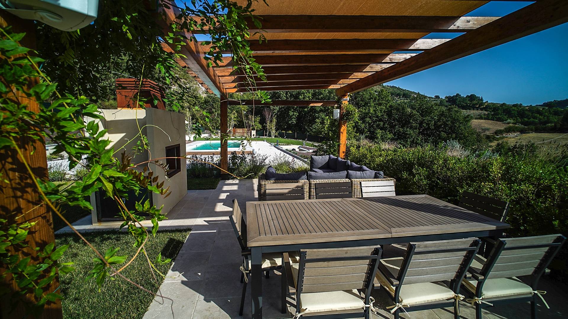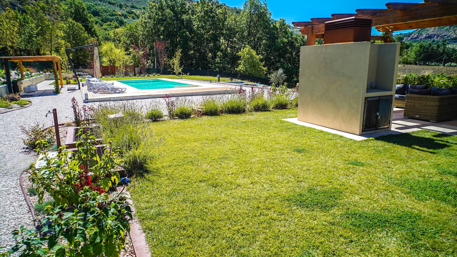 Έξω θα βρείτε έναν μεγάλο κήπο με ξύλινα έπιπλα που θα σας επιτρέψει επίσης να φάτε έξω ή να πιείτε ένα απεριτίφ ή ένα κοκτέιλ μόνοι σας ή στην παρέα. Στα μεγάλα υπαίθρια στραγγίσματα, υπάρχει επίσης χώρος για καναπέ με πολλά ψάθινα καθίσματα. Επιπλέον, θα έχετε επίσης χώρο για μπάρμπεκιου και χώρο για πικνίκ, καθώς και μεγάλο δωρεάν υπαίθριο χώρο στάθμευσης.