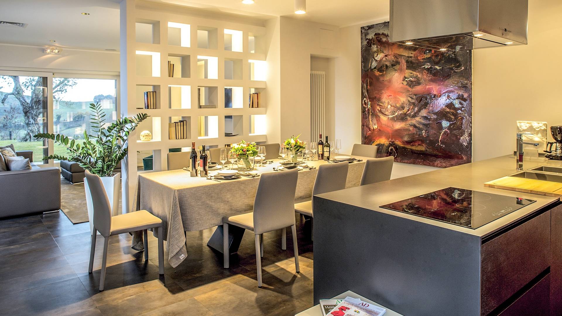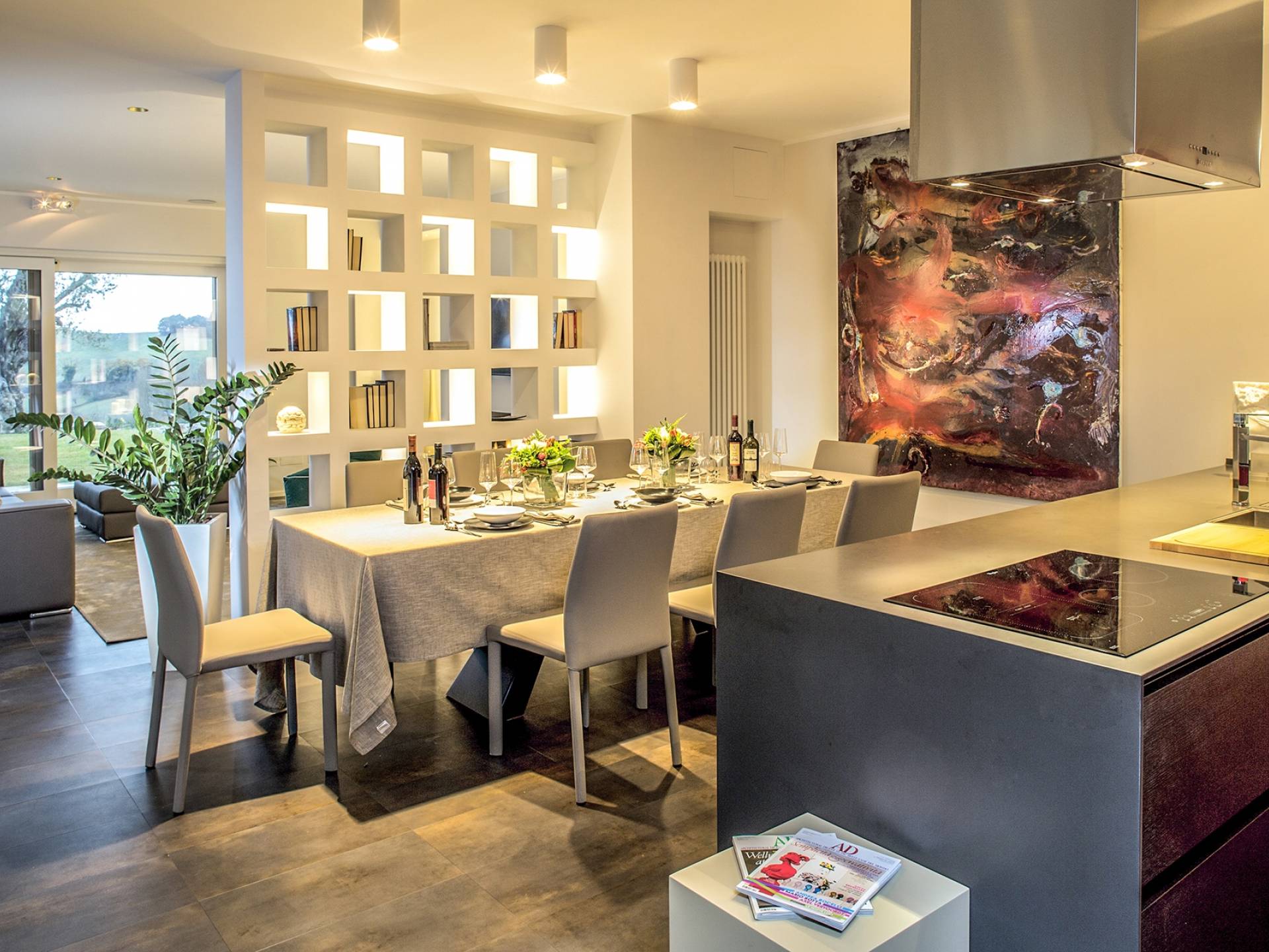 Μια εξοπλισμένη κουζίνα θα σας επιτρέψει να ετοιμάσετε εξαίσια μεσημεριανά γεύματα και νόστιμα δείπνα σε ένα πολύ βιώσιμο και ιδιαίτερα φωτεινό περιβάλλον όπου το κόκκινο θα είναι το κύριο. Παντού το σπίτι είναι διάσπαρτο με έργα τέχνης: γλυπτά αλλά και πίνακες ζωγραφικής και εγκαταστάσεις, ευχάριστα διατεταγμένα σε πολλές γωνίες και στα περάσματα για να χαρούν, ακόμα και με την παραμικρή λεπτομέρεια, τα σαλόνια σας.
