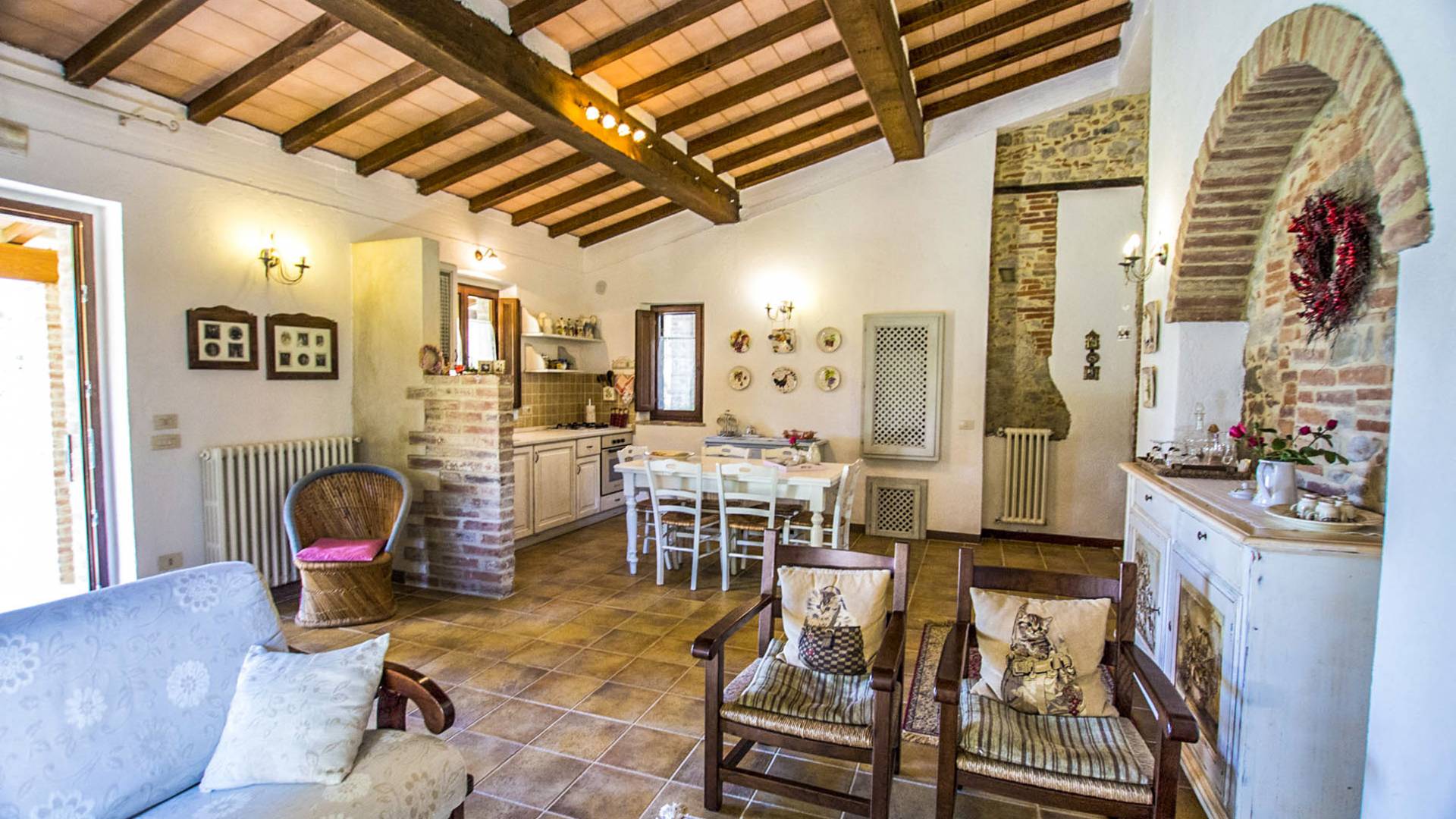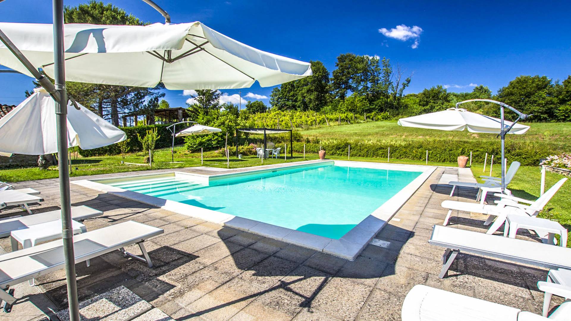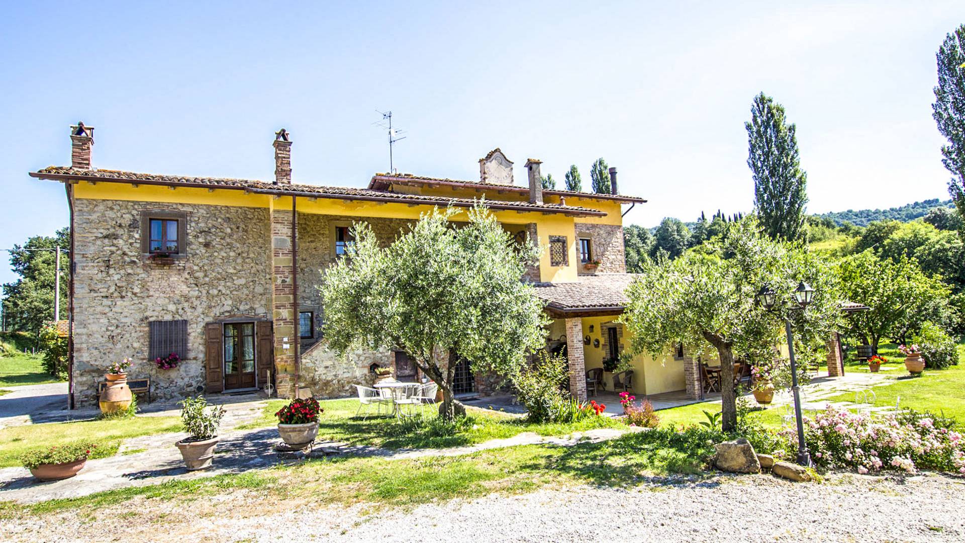 Χτισμένη από μια αγροικία των αρχών του 1800, ανακαινισμένη και μεταμορφωμένη με επιδεξιότητα για να ζει όλο το χρόνο, η βίλα βρίσκεται κοντά στο Città di Castello, στην κοιλάδα του Άνω Τίβερη, λίγα χιλιόμετρα από την Τοσκάνη, αλλά και πολύ κοντά στην οι πιο όμορφες πόλεις τέχνης της Ούμπρια.
