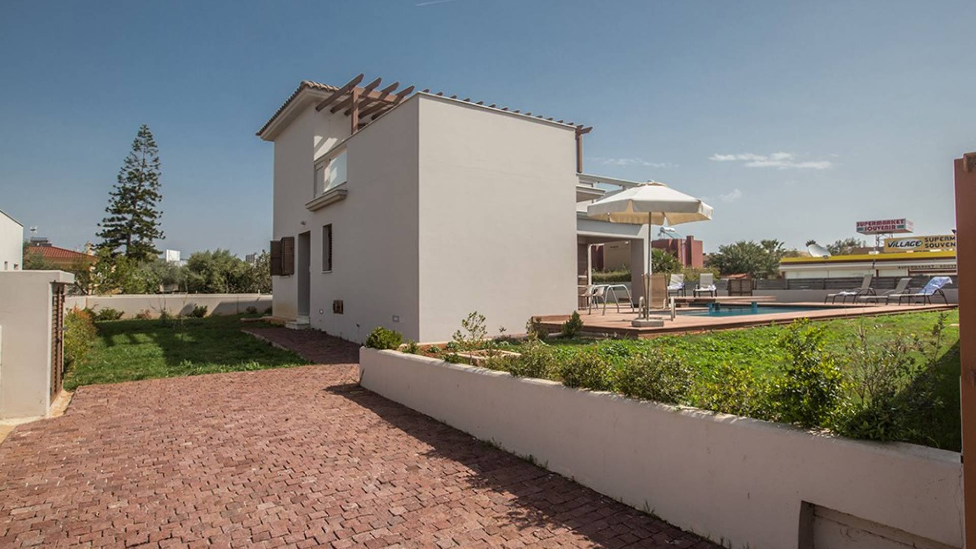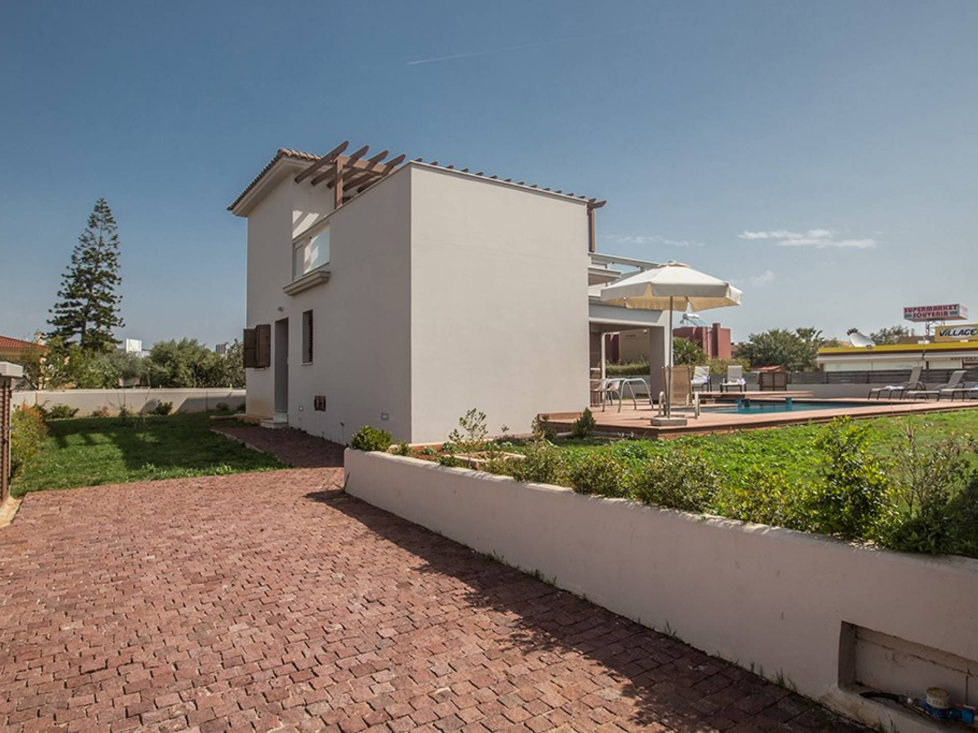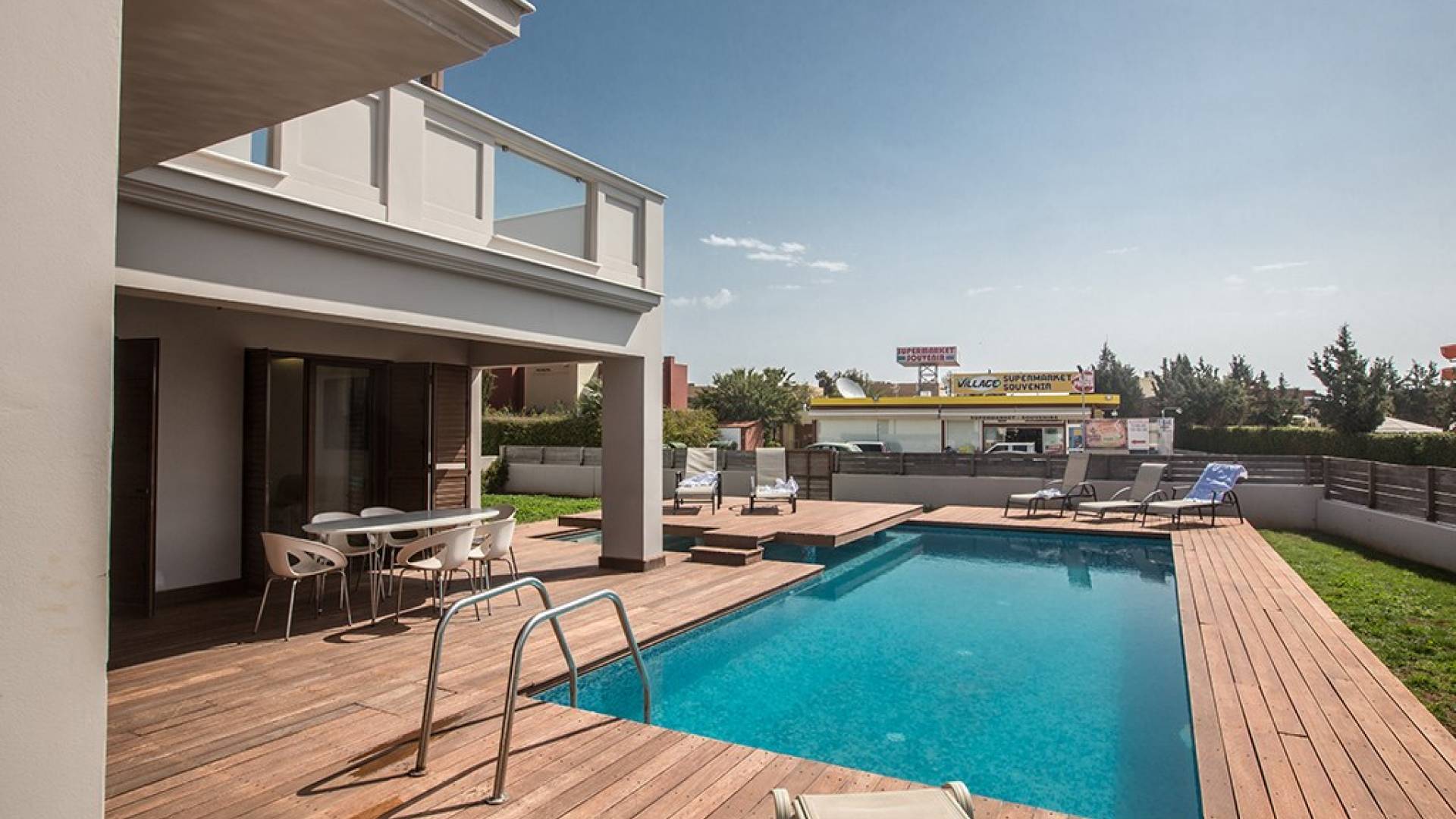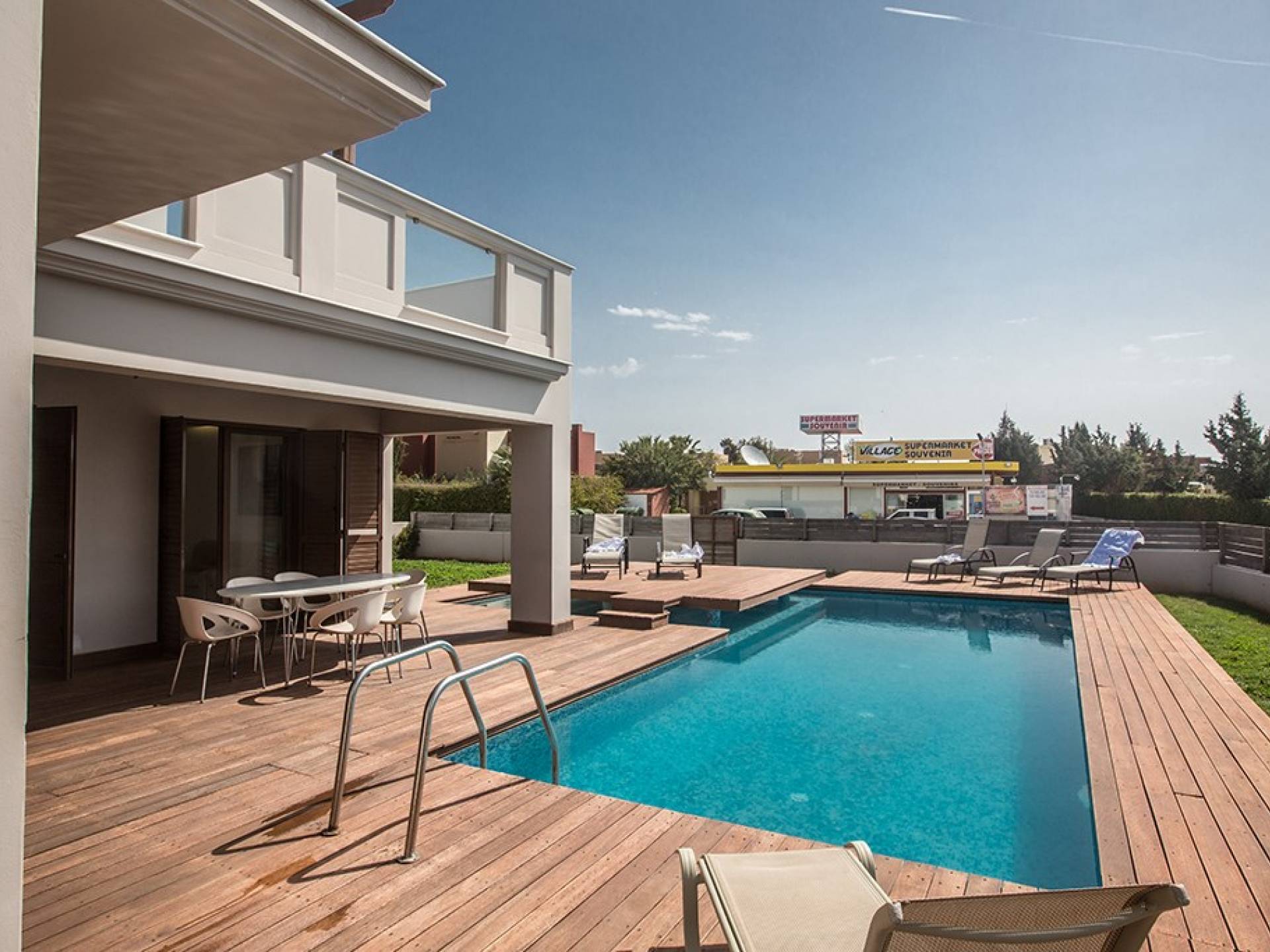Έξω, η βίλα διαθέτει ευρύχωρο κήπο με μπάρμπεκιου, σκιερή εξωτερική τραπεζαρία, ξαπλώστρες και ιδιωτική πισίνα. Η τέλεια επιλογή για οικογένειες ή φίλους που θέλουν ήρεμες και ήρεμες διακοπές αλλά κοντά στις παραλίες, τις ανέσεις και τη νυχτερινή ζωή.