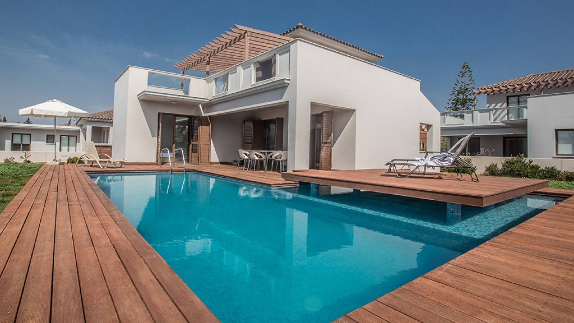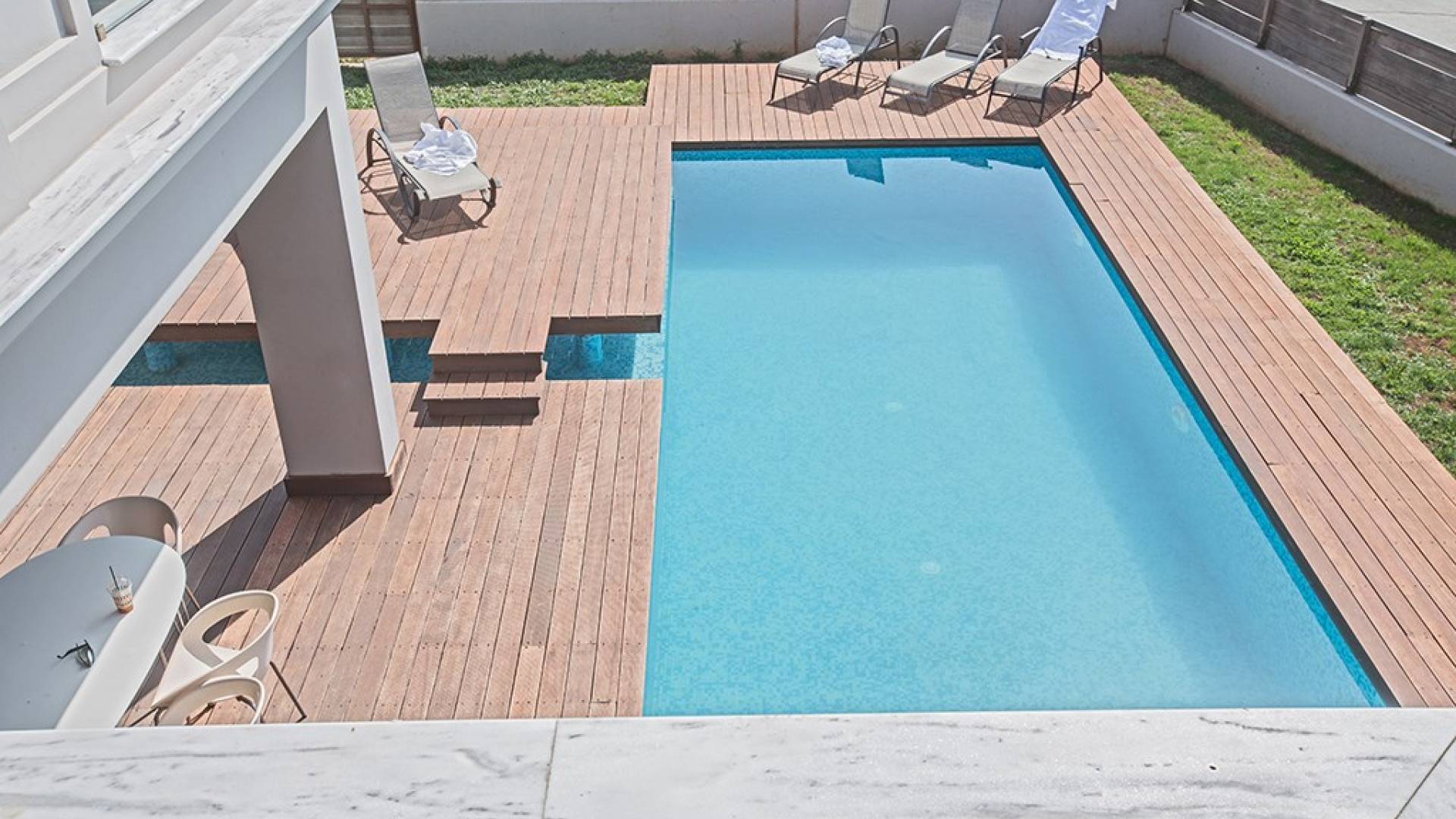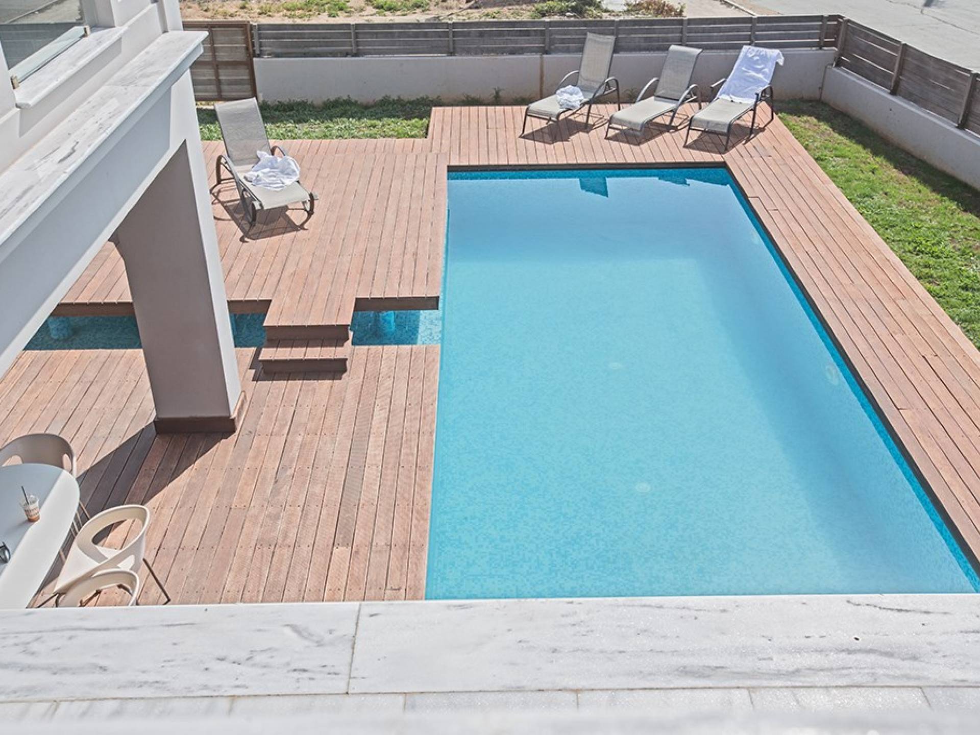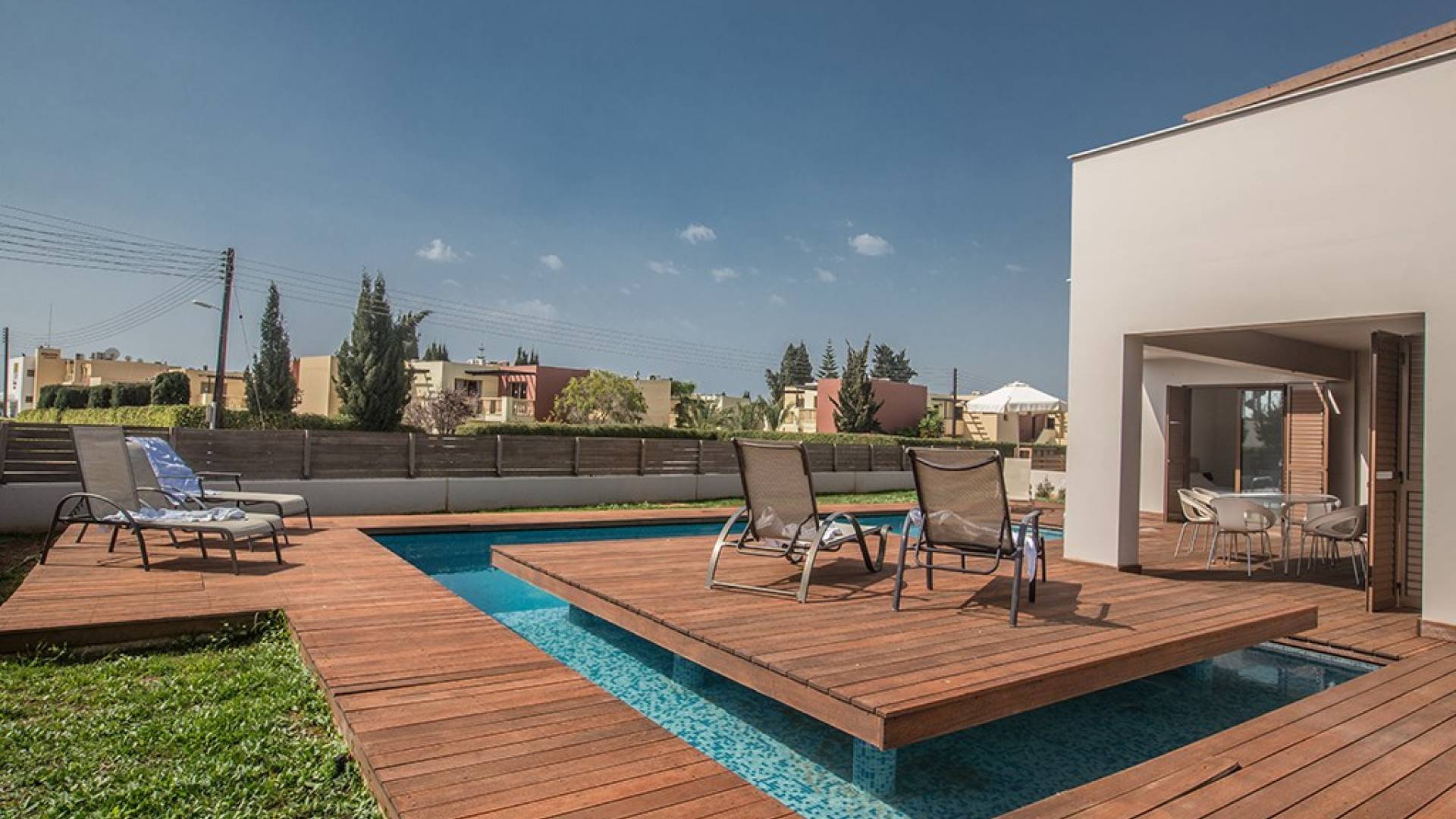 Έξω, η βίλα διαθέτει ευρύχωρο κήπο με μπάρμπεκιου, σκιερή εξωτερική τραπεζαρία, ξαπλώστρες και ιδιωτική πισίνα. Η τέλεια επιλογή για οικογένειες ή φίλους που θέλουν ήρεμες και ήρεμες διακοπές αλλά κοντά στις παραλίες, τις ανέσεις και τη νυχτερινή ζωή.