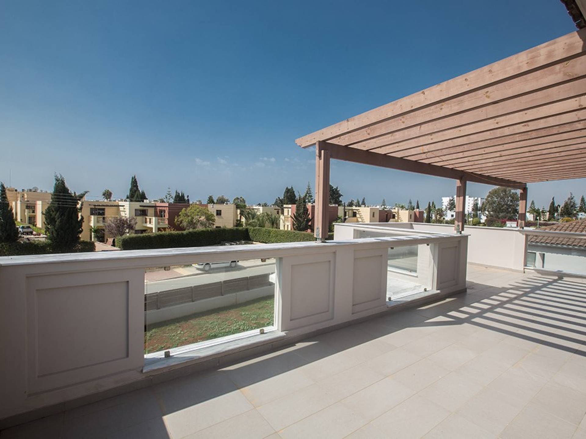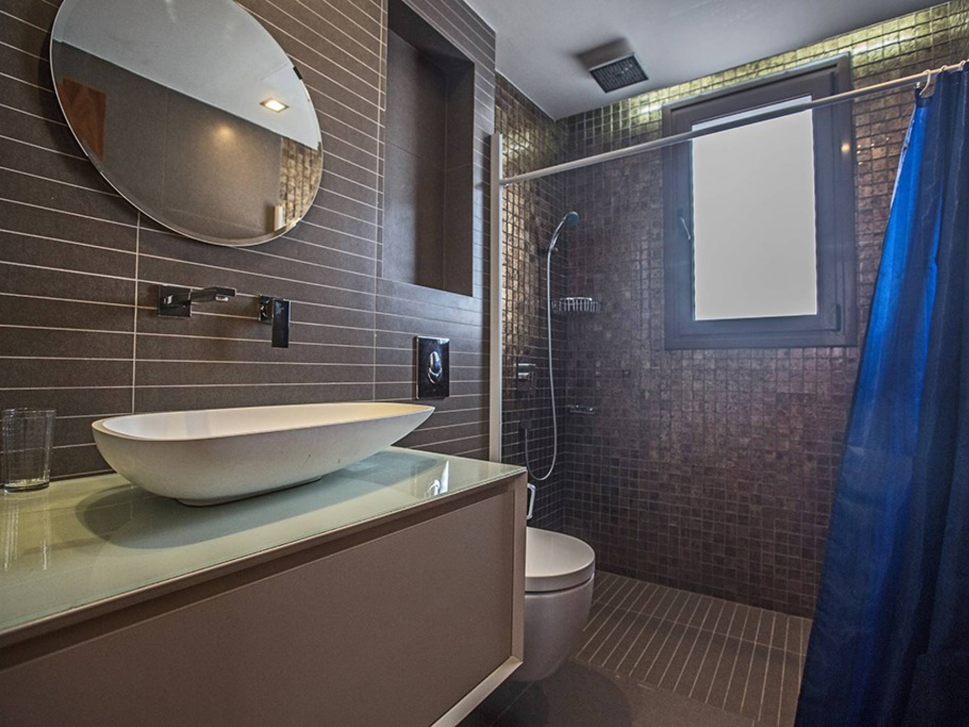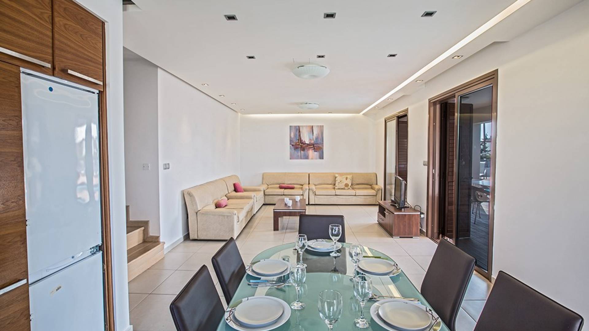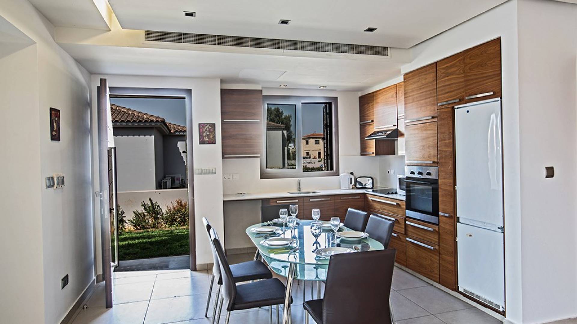 Καθώς μπαίνετε μέσα, θα βρείτε το μεγάλο, ενιαίο σαλόνι, την τραπεζαρία και την κουζίνα. Το σαλόνι διαθέτει άνετους καναπέδες, τηλεόραση ευρείας οθόνης και μεγάλες μπαλκονόπορτες που οδηγούν στον κήπο και την πισίνα. Η τραπεζαρία διαθέτει καθίσματα για 6 άτομα και η κουζίνα είναι εξοπλισμένη με όλα όσα χρειάζεστε για τη διαμονή σας με δυνατότητα προετοιμασίας γευμάτων. Ένα από τα τρία υπνοδωμάτια βρίσκεται σε αυτόν τον όροφο με διπλό κρεβάτι και πόρτες που οδηγούν στον κήπο, ξεχωριστό μπάνιο με ντουζιέρα και WC καθώς και ένα μικρό βοηθητικό δωμάτιο. Στον επάνω όροφο, θα βρείτε τα υπόλοιπα δύο υπνοδωμάτια, τα οποία διαθέτουν δύο μονά κρεβάτια και κοινόχρηστο μπαλκόνι. Όλα τα υπνοδωμάτια διαθέτουν εντοιχισμένες ντουλάπες και κομοδίνα. Υπάρχει ένα άλλο μπάνιο σε αυτόν τον όροφο με μπανιέρα, ντους και WC.