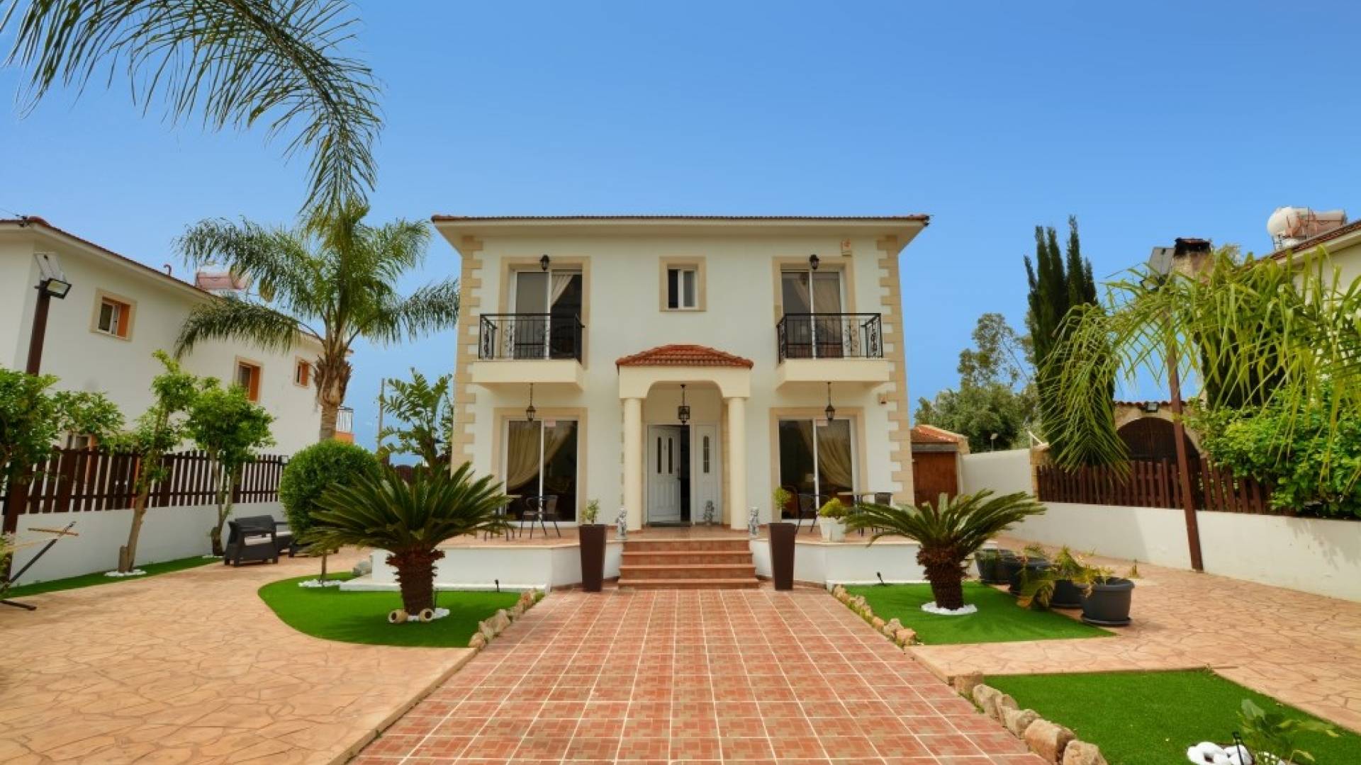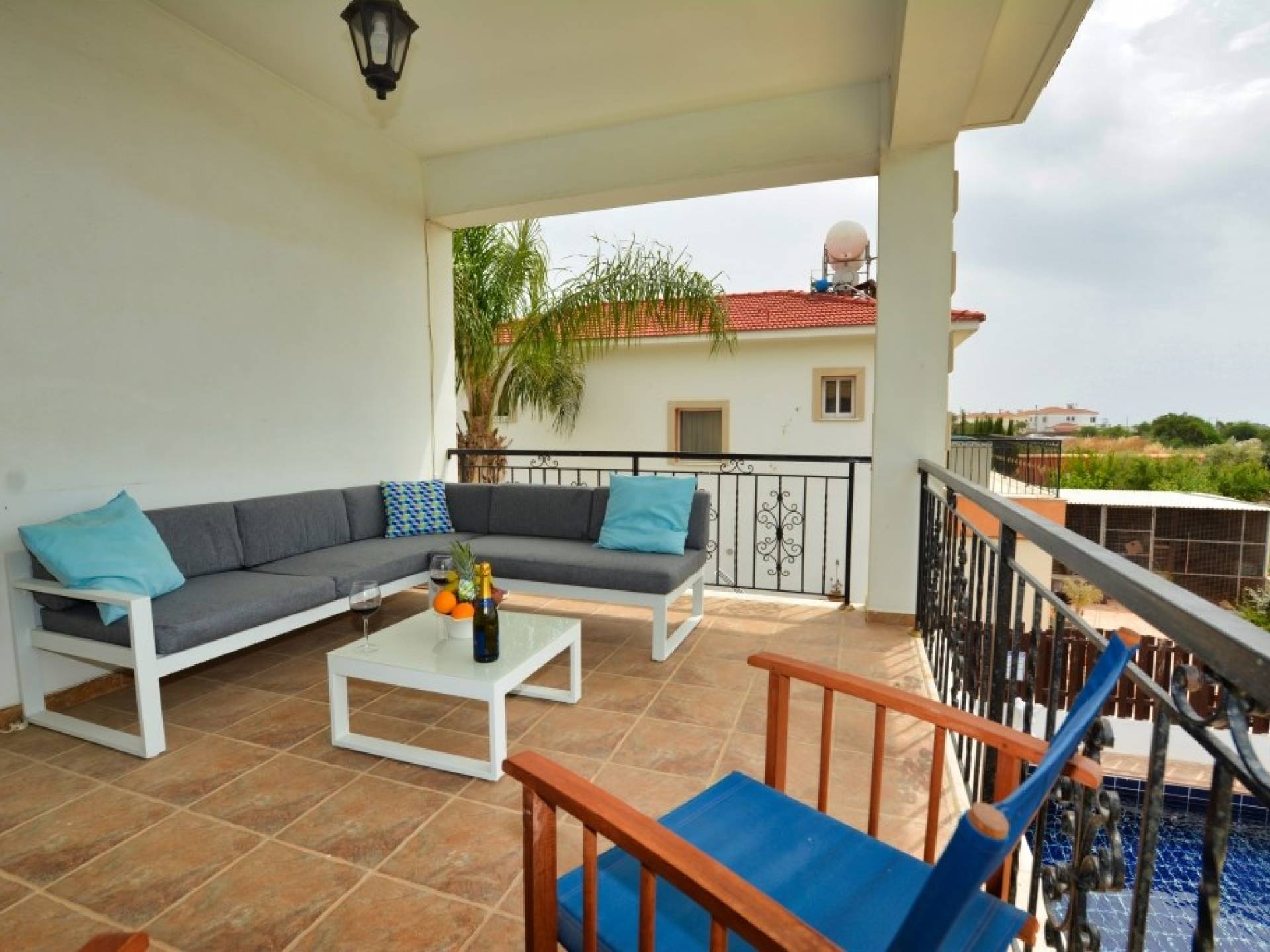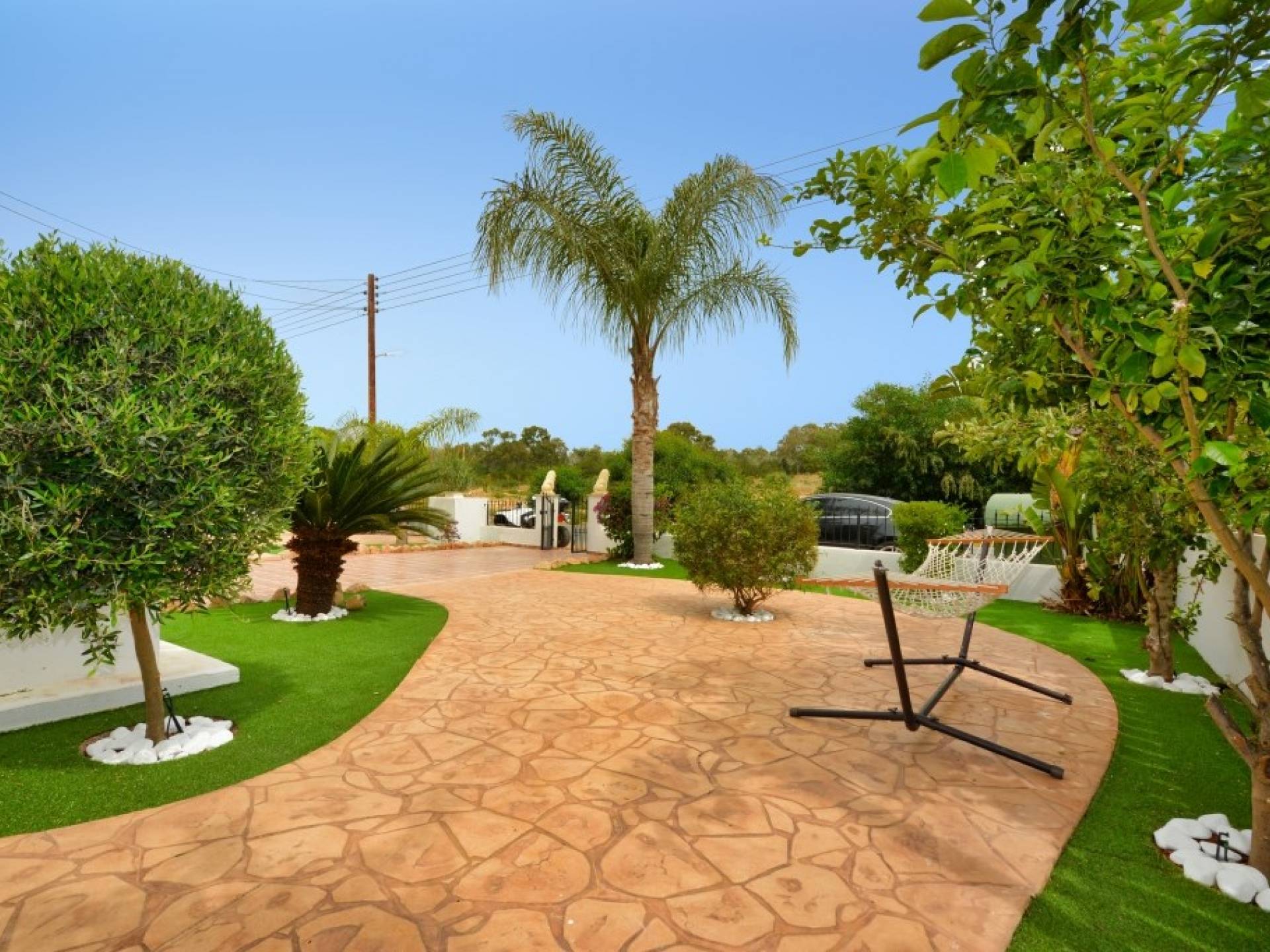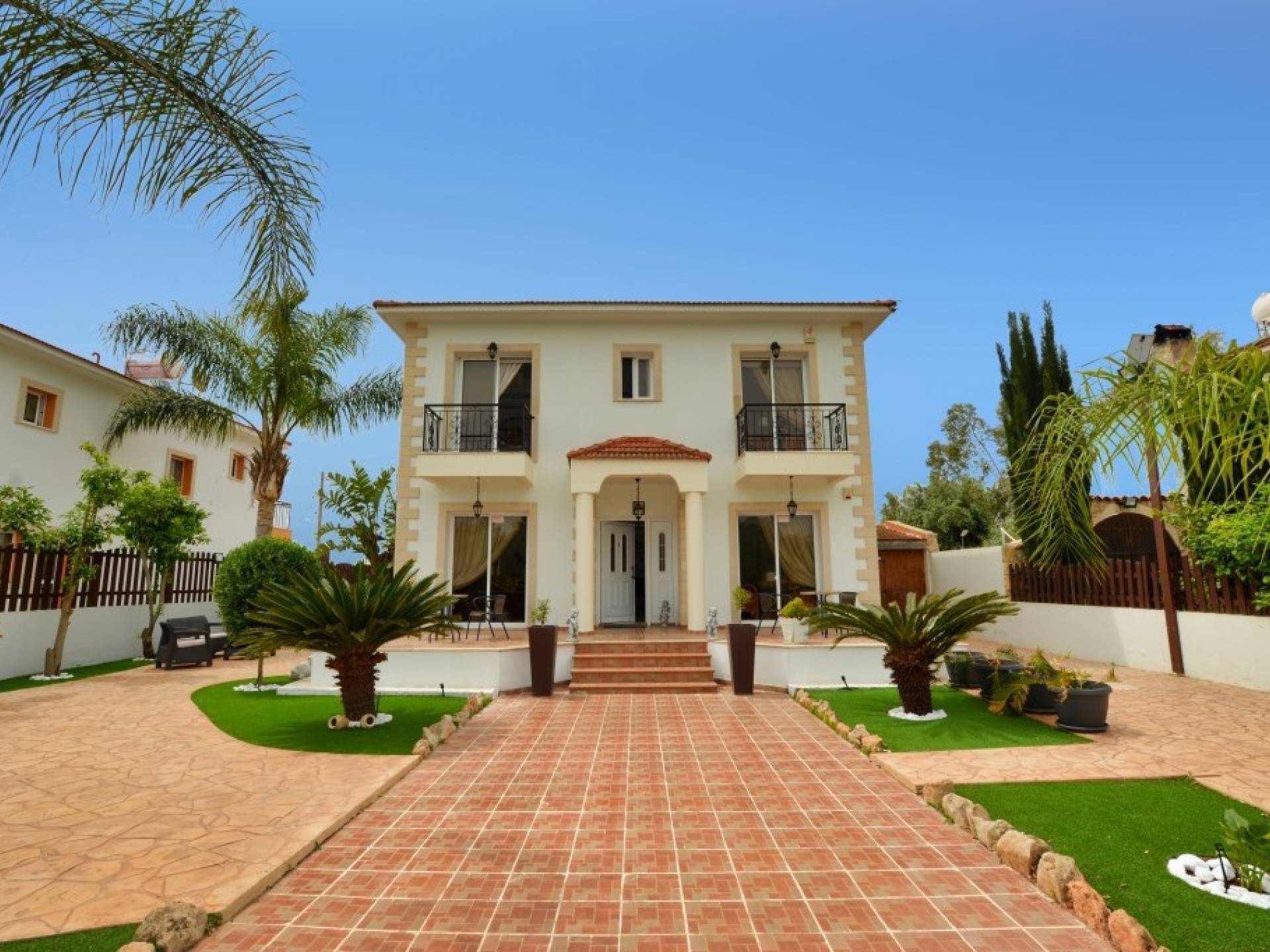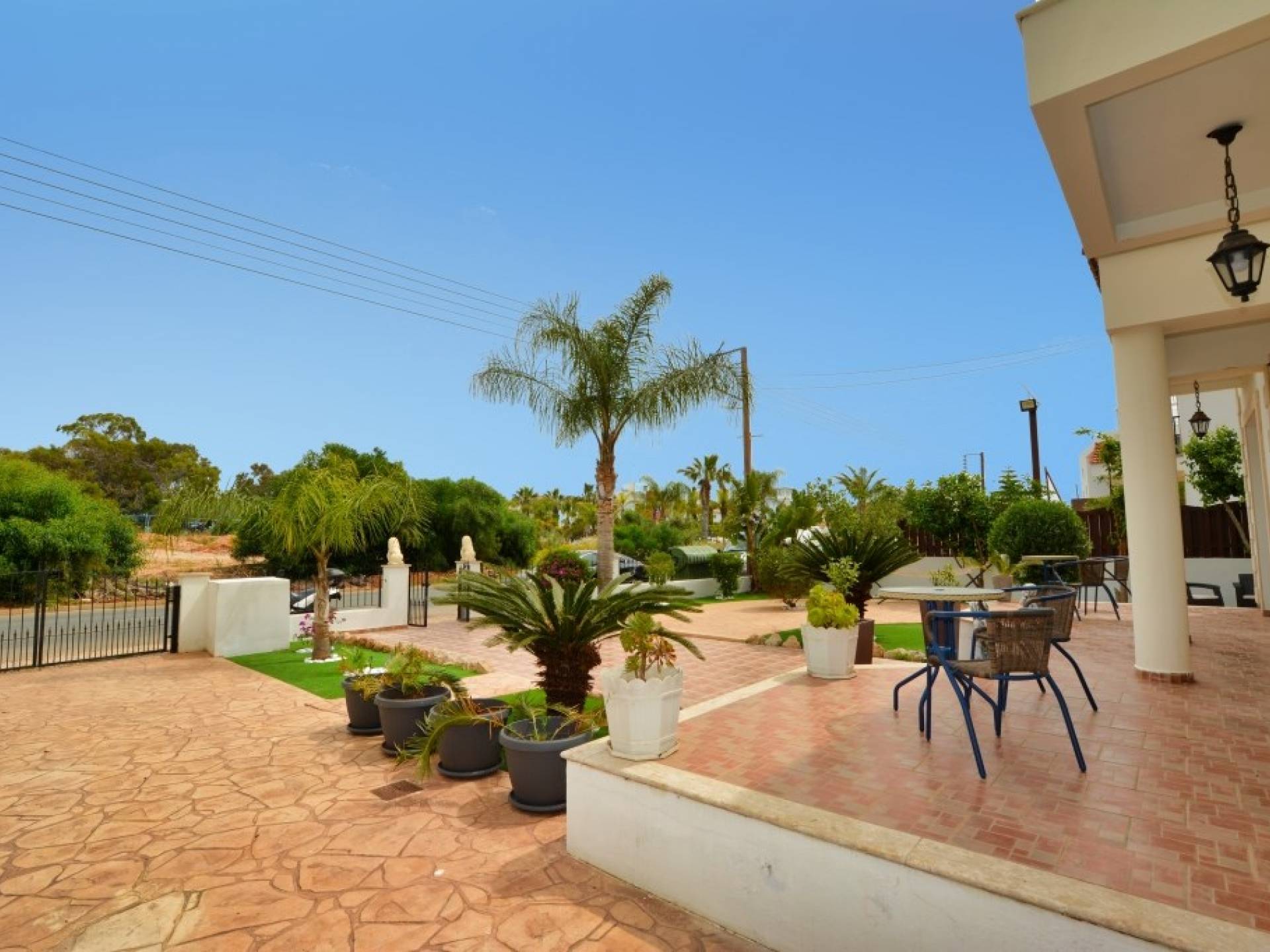 Έξω, η βίλα διαθέτει μεγάλο και περιποιημένο ιδιωτικό κήπο με σκιερή εξωτερική τραπεζαρία, εντοιχισμένο μπάρμπεκιου από τούβλα και μπάρμπεκιου αερίου, ξαπλώστρες και ιδιωτική πισίνα.