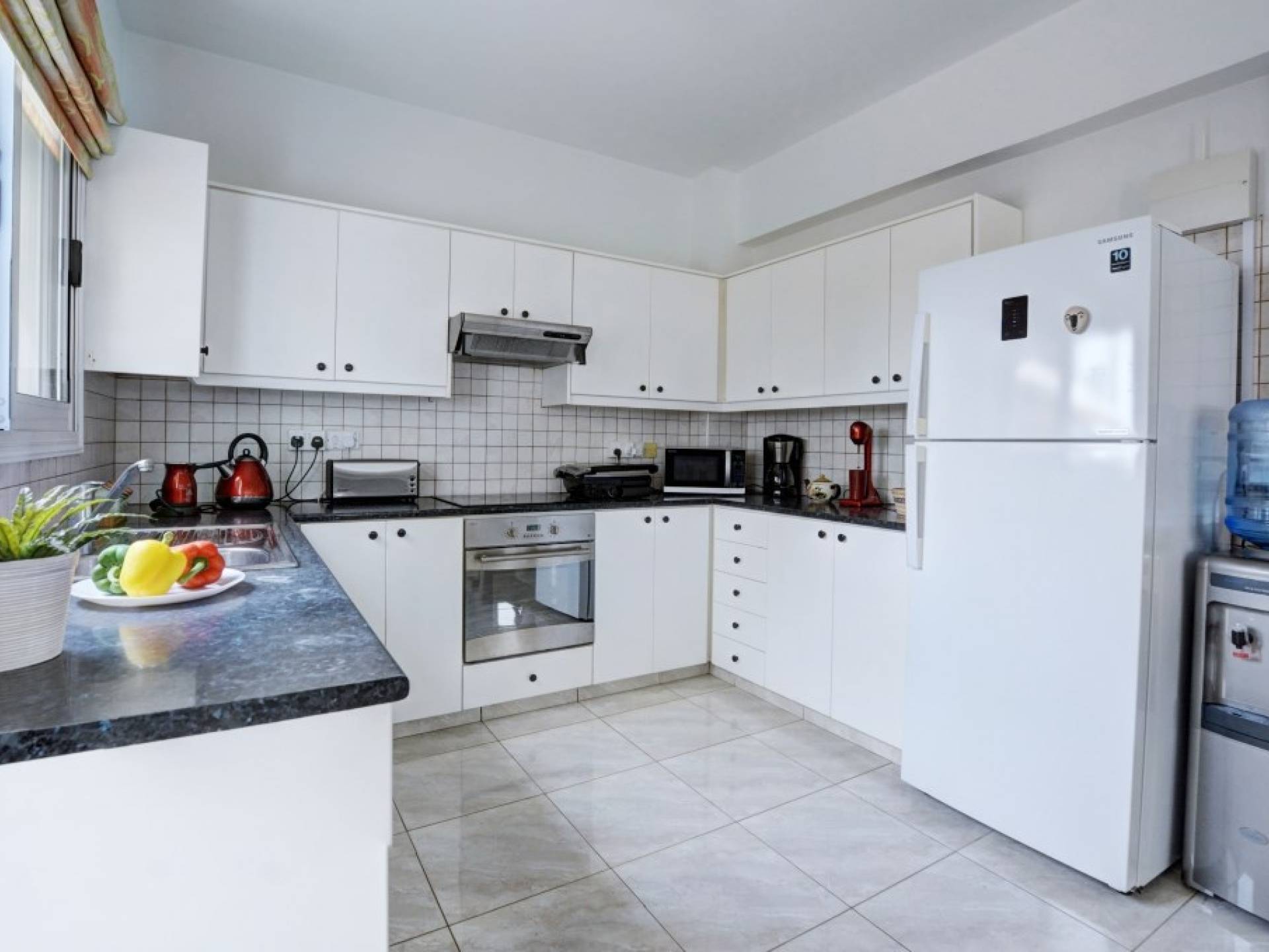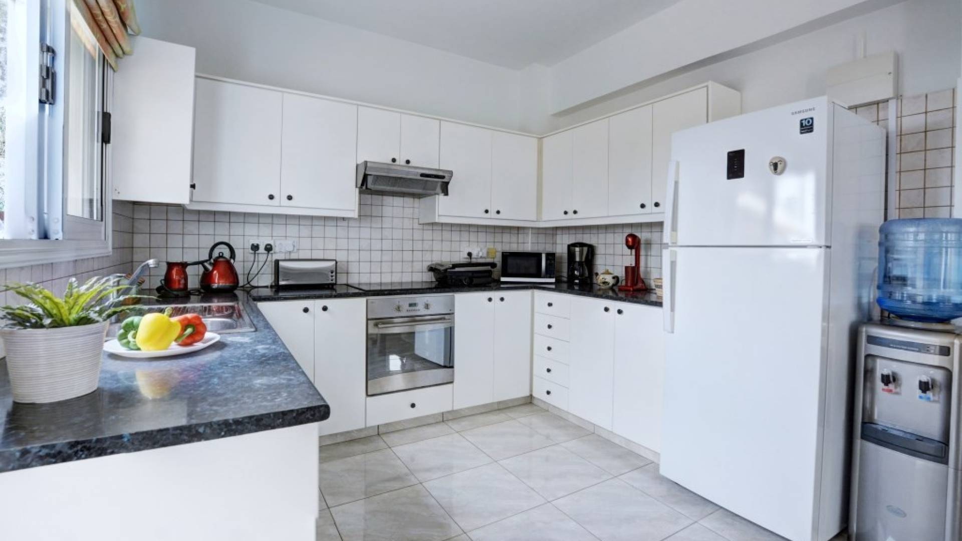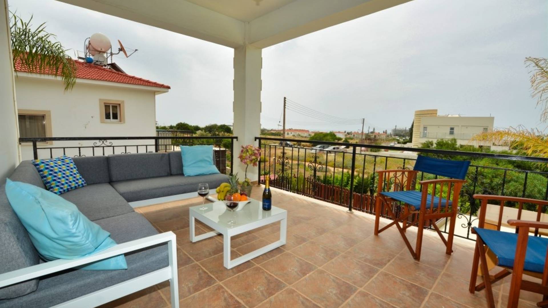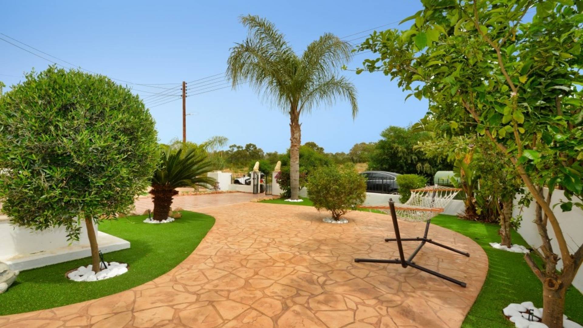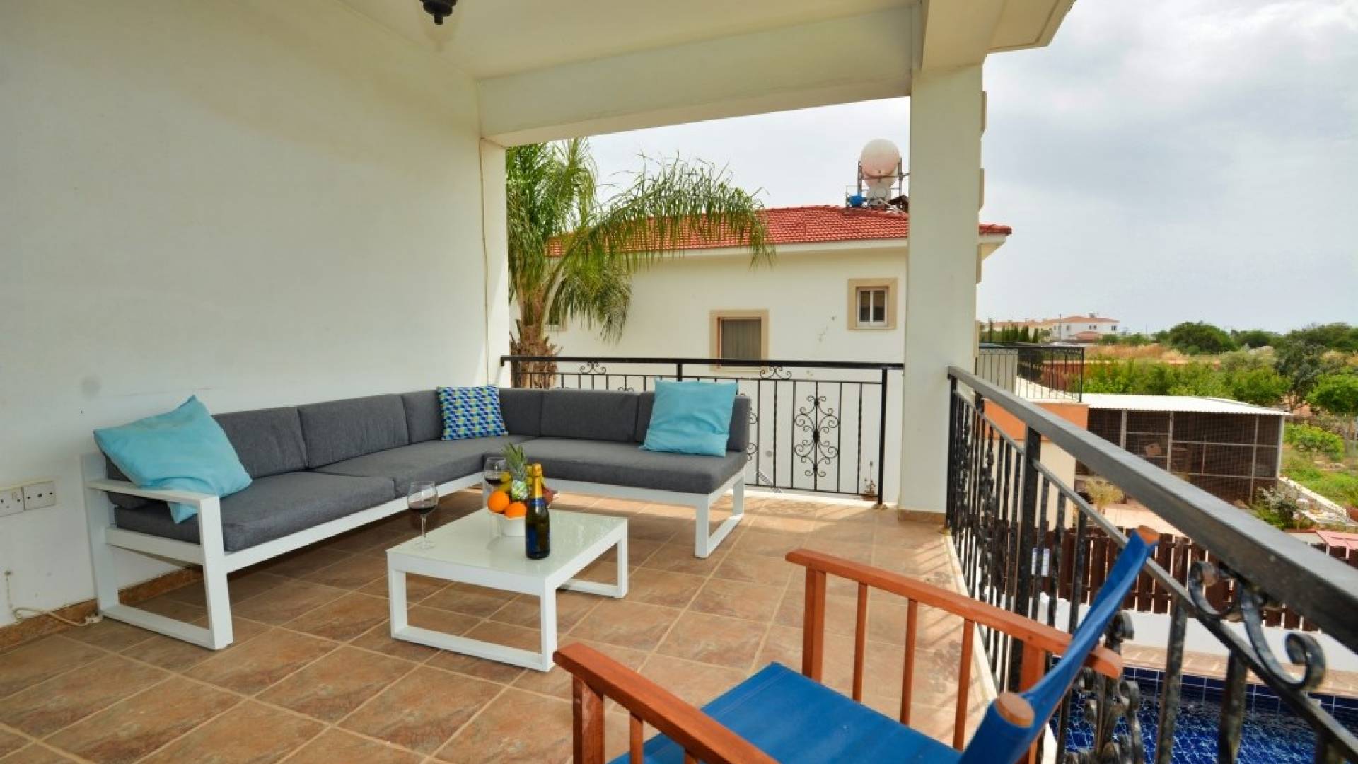 Έξω, η βίλα διαθέτει μεγάλο και περιποιημένο ιδιωτικό κήπο με σκιερή εξωτερική τραπεζαρία, εντοιχισμένο μπάρμπεκιου από τούβλα και μπάρμπεκιου αερίου, ξαπλώστρες και ιδιωτική πισίνα.