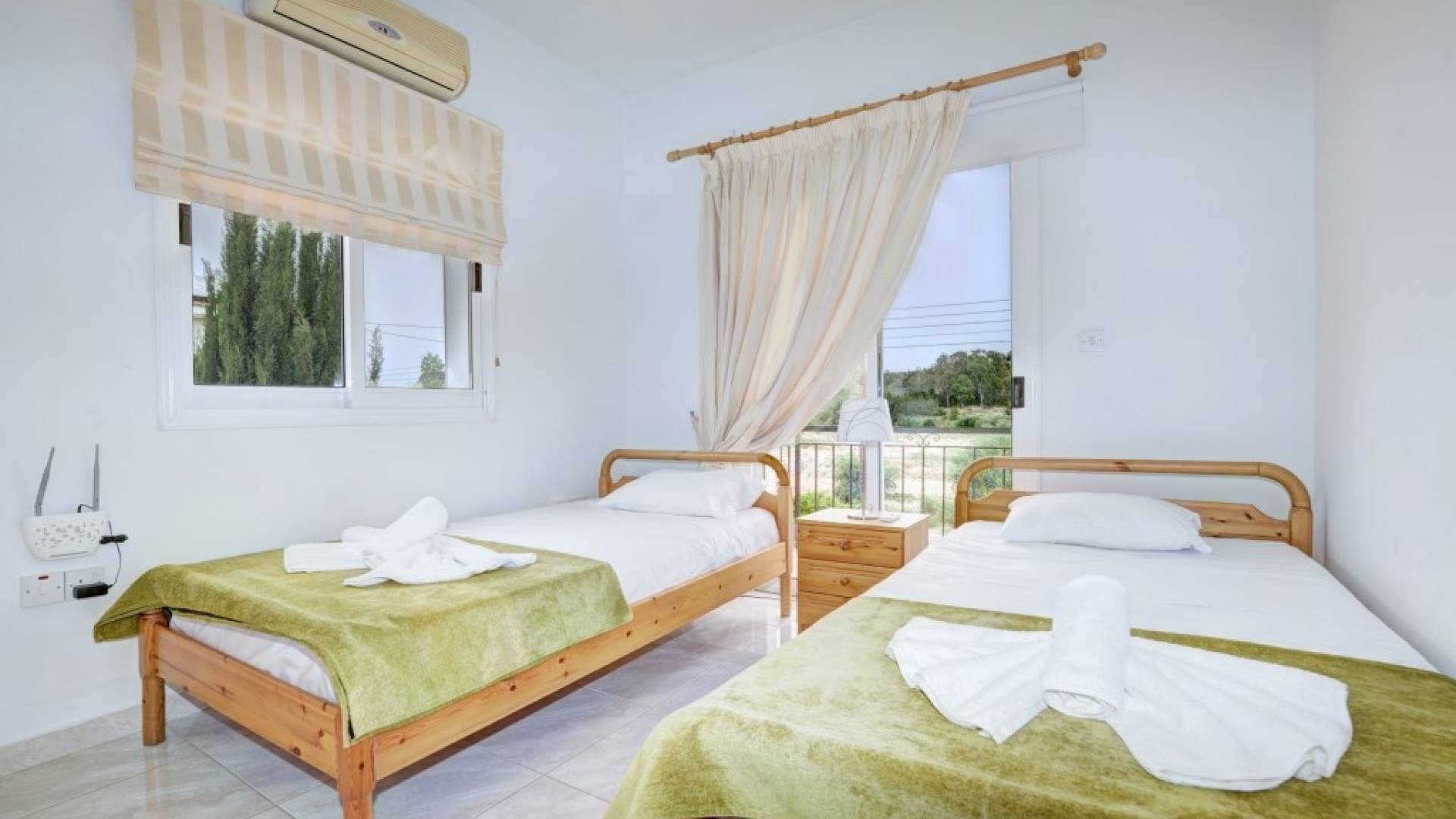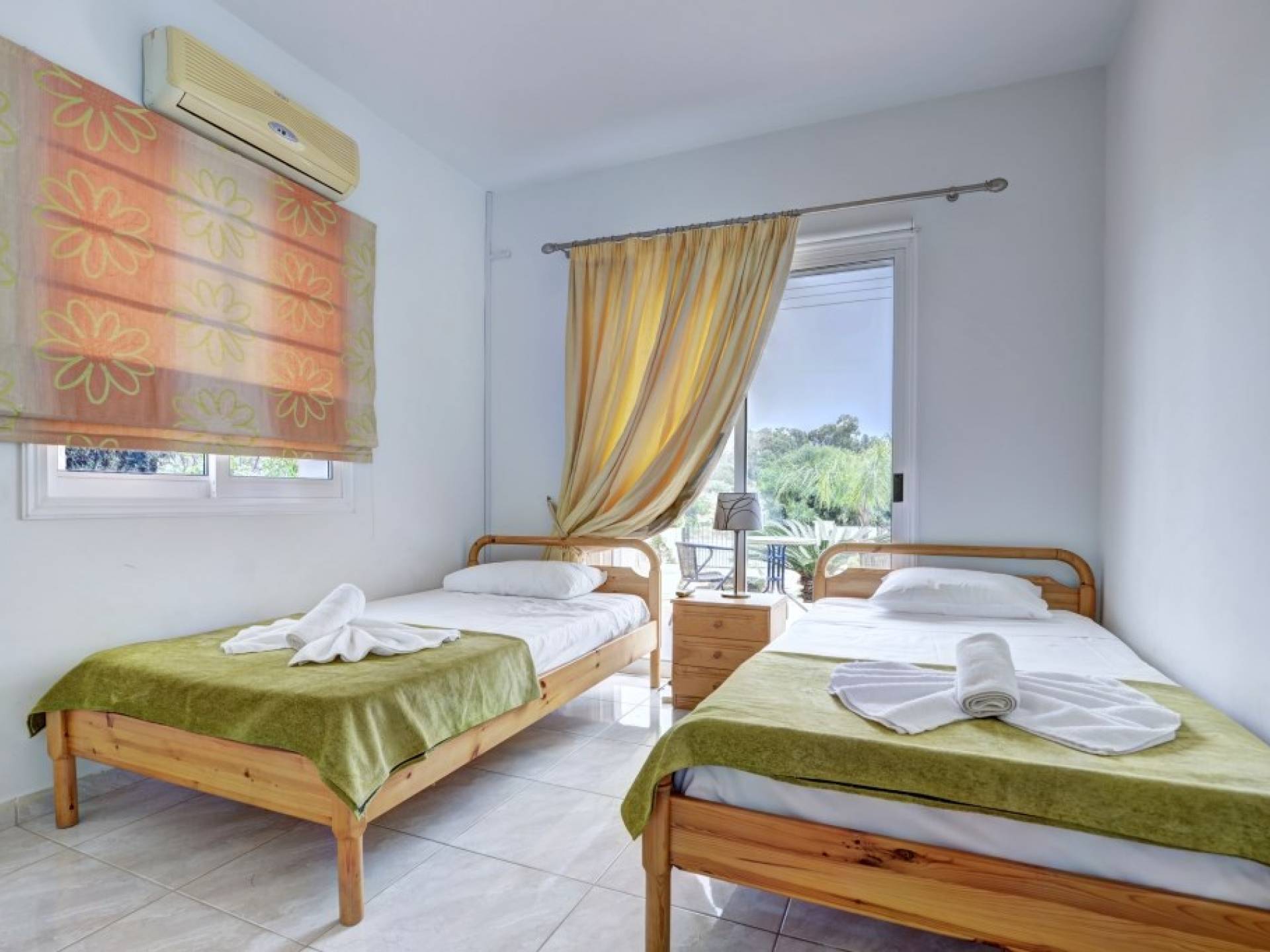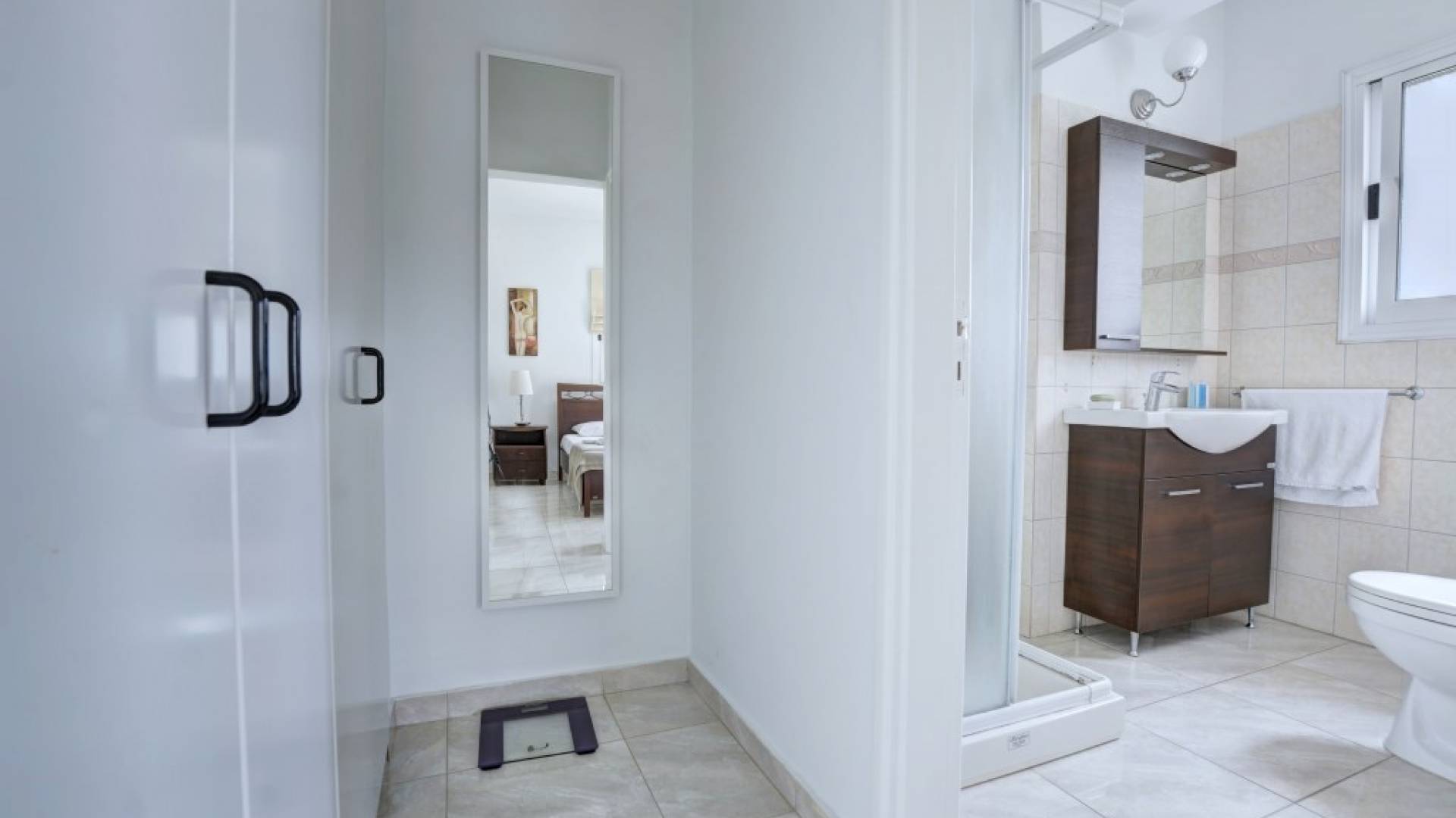 Στον όροφο, έξω από το μεγάλο διάδρομο με γκαρνταρόμπα, θα βρείτε 3 επιπλέον υπνοδωμάτια. Το κύριο υπνοδωμάτιο διαθέτει διπλό κρεβάτι και ιδιωτικό μπάνιο με ντους και ξεχωριστό γκαρνταρόμπα. Υπάρχουν άλλα δύο υπνοδωμάτια, το ένα με διπλό κρεβάτι και το υπνοδωμάτιο 4 έχει δύο μονά κρεβάτια, επομένως η βίλα φιλοξενεί εννέα άτομα. Όλα τα υπνοδωμάτια διαθέτουν ντουλάπες και ντουλάπια δίπλα στο κρεβάτι και πρόσβαση σε μπαλκόνι ή κήπο. Θα βρείτε επίσης το οικογενειακό μπάνιο με μπανιέρα με ντους σε αυτόν τον όροφο.