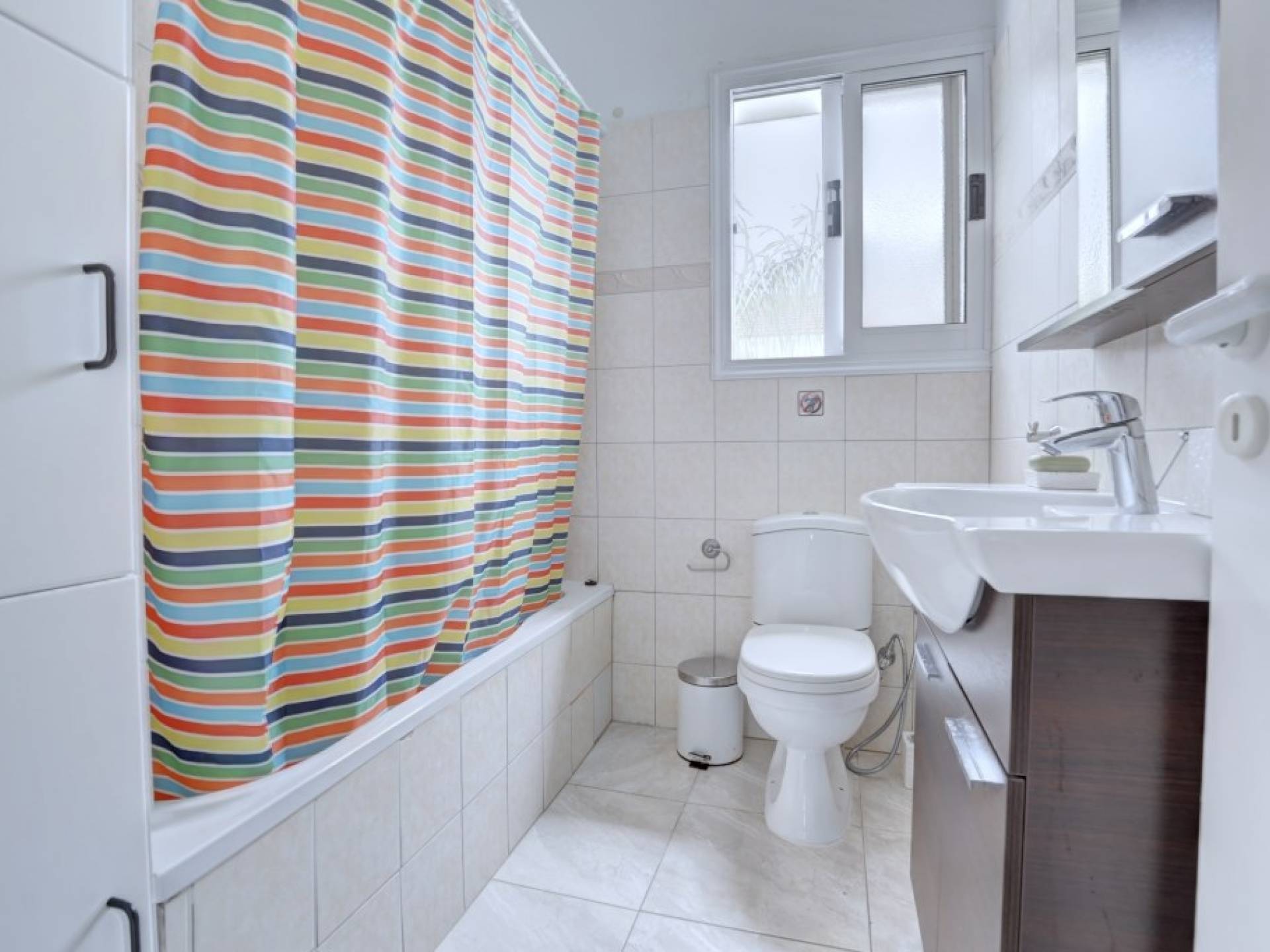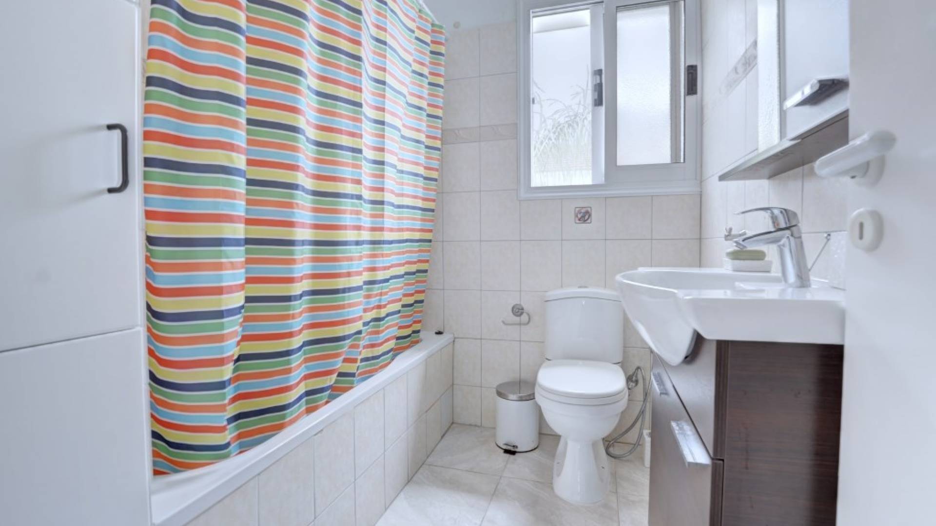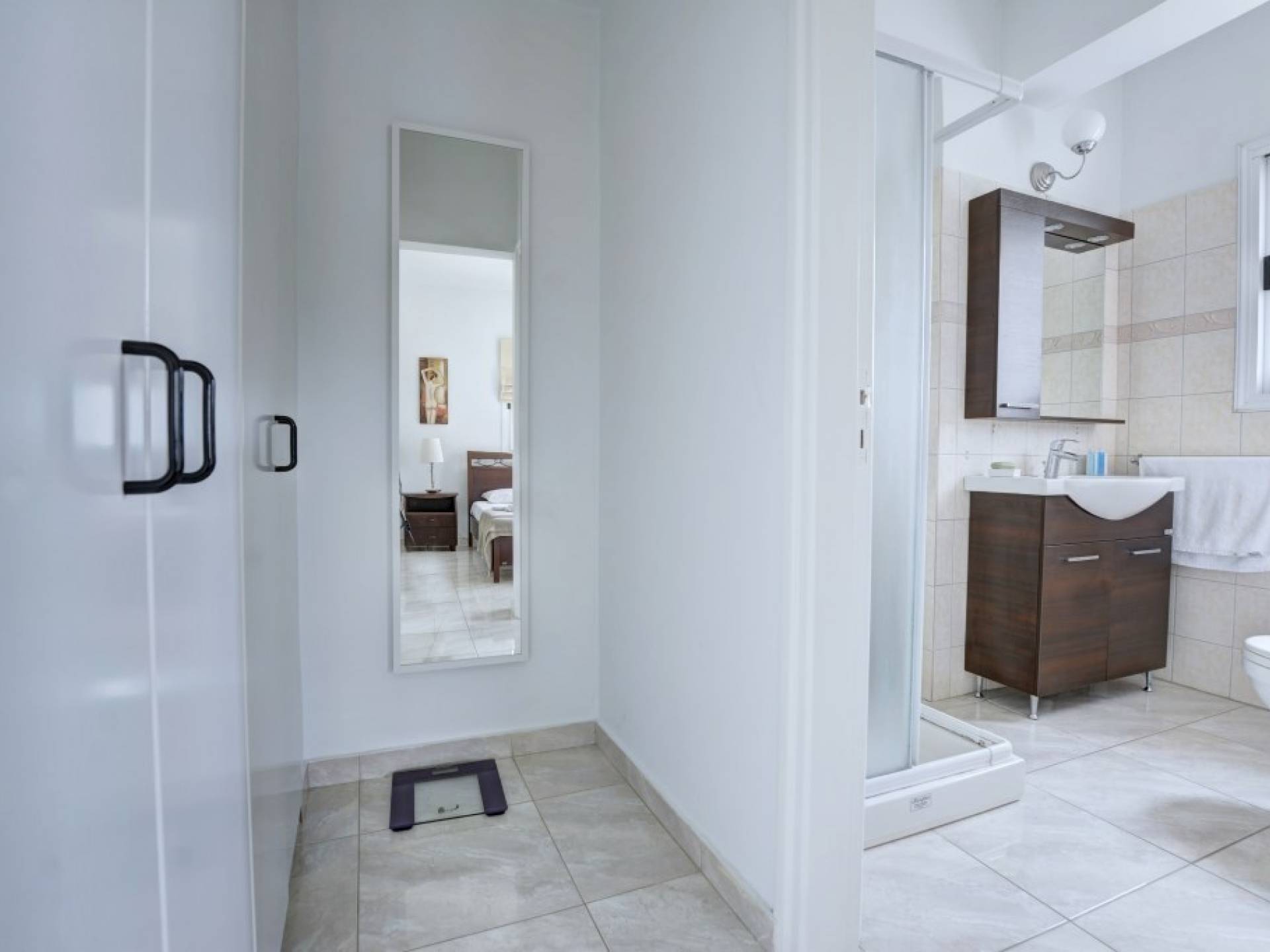 Στον όροφο, έξω από το μεγάλο διάδρομο με γκαρνταρόμπα, θα βρείτε 3 επιπλέον υπνοδωμάτια. Το κύριο υπνοδωμάτιο διαθέτει διπλό κρεβάτι και ιδιωτικό μπάνιο με ντους και ξεχωριστό γκαρνταρόμπα. Υπάρχουν άλλα δύο υπνοδωμάτια, το ένα με διπλό κρεβάτι και το υπνοδωμάτιο 4 έχει δύο μονά κρεβάτια, επομένως η βίλα φιλοξενεί εννέα άτομα. Όλα τα υπνοδωμάτια διαθέτουν ντουλάπες και ντουλάπια δίπλα στο κρεβάτι και πρόσβαση σε μπαλκόνι ή κήπο. Θα βρείτε επίσης το οικογενειακό μπάνιο με μπανιέρα με ντους σε αυτόν τον όροφο.