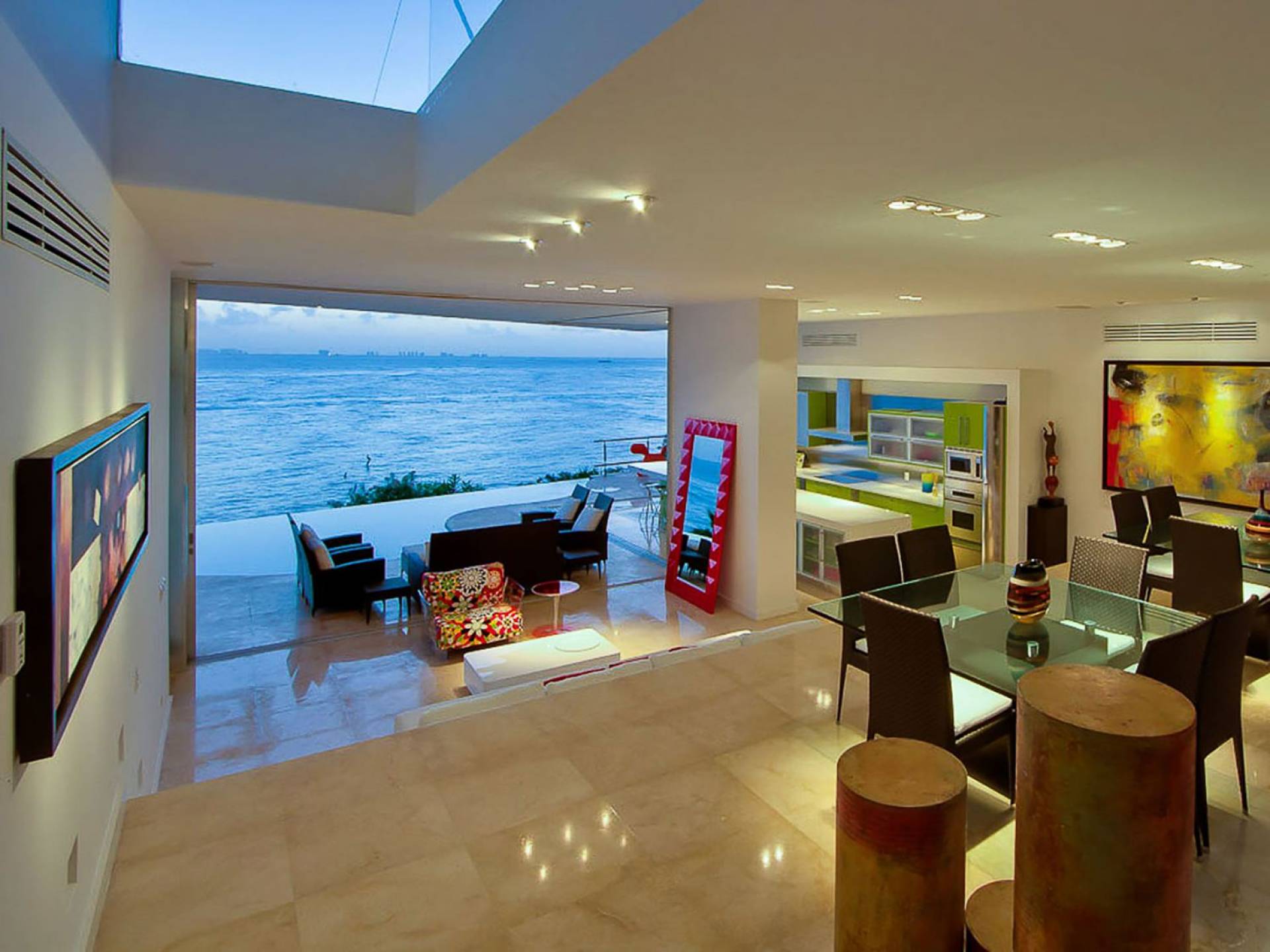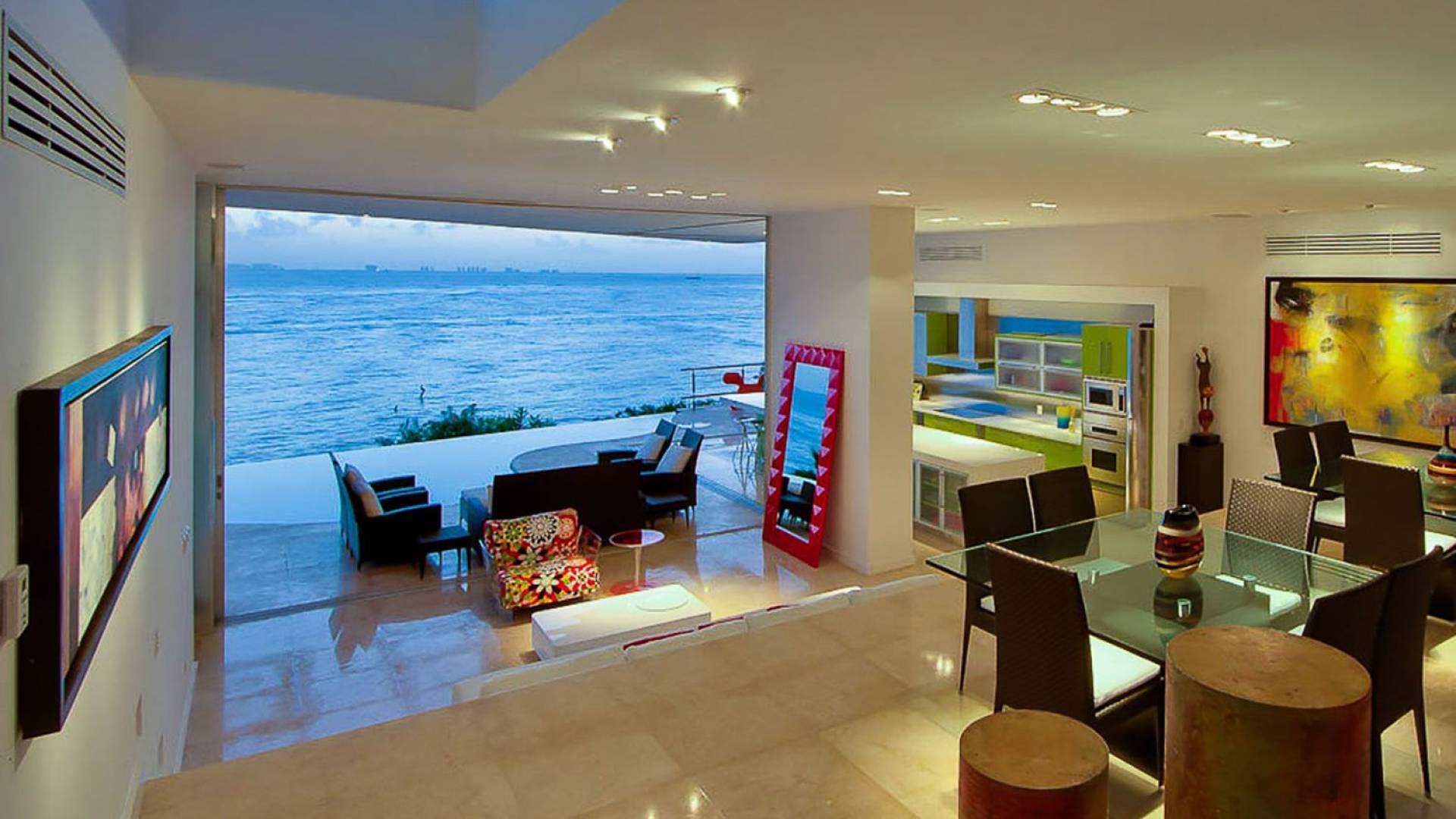 Η Villa De La Vida Isla Mujeres είναι μια πολυτελής ενοικίαση βίλας με 6 υπνοδωμάτια και ιδιωτική πισίνα. Αυτή η εκπληκτική, βραβευμένη βίλα σχεδιάστηκε από τον διάσημο αρχιτέκτονα του Μεξικού Javier Muñoz Menéndez, του οποίου η προσωπικότητα και η φαντασία δημιούργησαν ένα αριστούργημα, ένα μέρος που δεν σταματά ποτέ να σας εξυψώνει. Αυτό το θαύμα μηχανικής είναι χωρίς κολώνες με εντυπωσιακές, πρόβολες οροφές και συρόμενα τζάμια που εξαφανίζονται για να ανοίξουν πλήρως το σαλόνι, θολώνοντας τα όρια μεταξύ μέσα και έξω, μεγιστοποιώντας τη μαγευτική θέα, το φυσικό φως και το δροσερό αεράκι που πνέει έξω από το νερό. Οι καθαρές, γραφικές γραμμές και τα ψηλά ταβάνια ενισχύουν την αίσθηση του ανοίγματος.