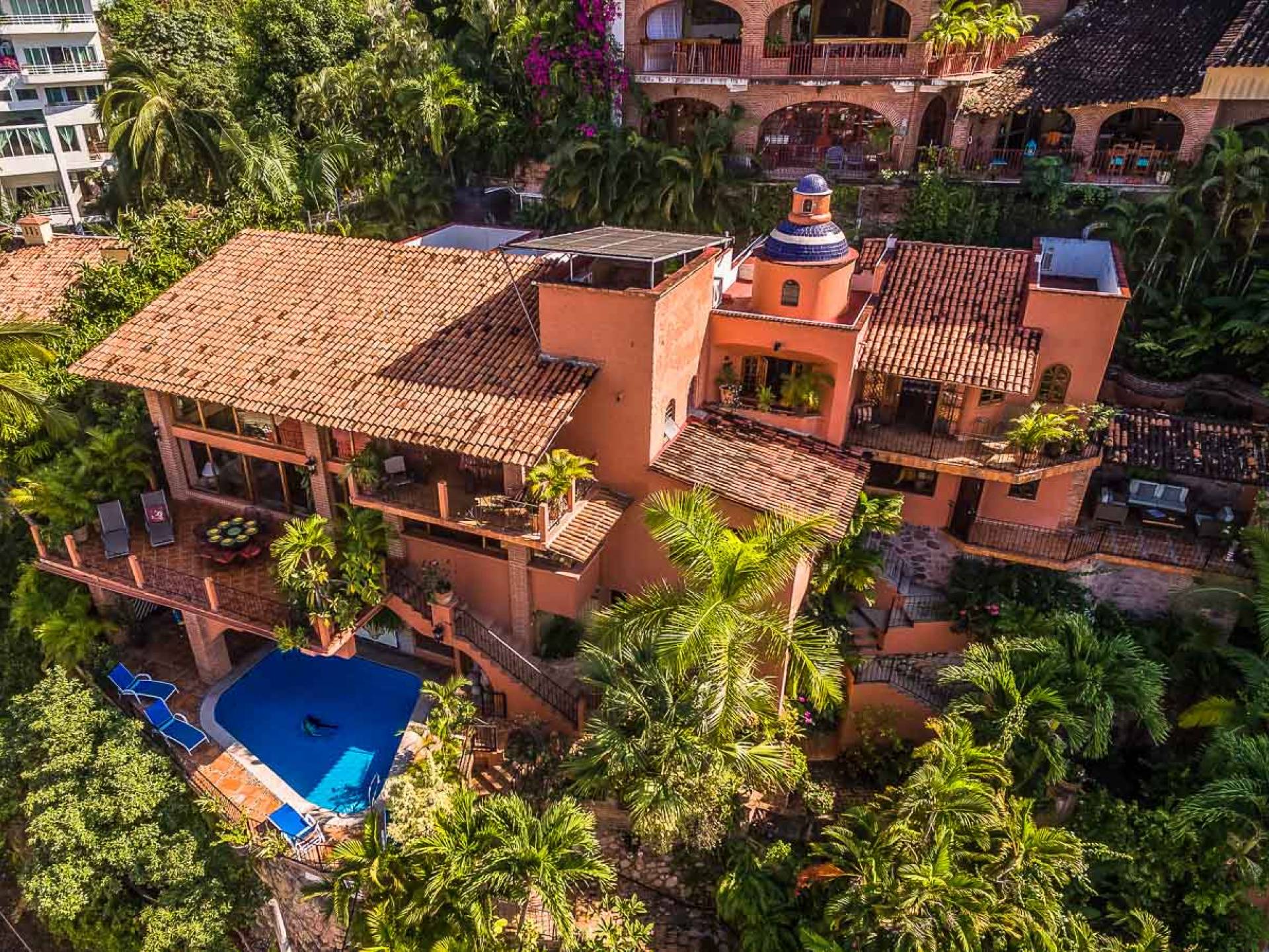 Υπαίθρια, η ιδιοκτησία διαθέτει πισίνα με ηλιακή θέρμανση, άφθονους χώρους για ιδιωτικότητα και όμορφους τροπικούς κήπους που ανθίζουν με άγριες ορχιδέες. Σε εσωτερικούς χώρους, θα βρείτε ένα σύστημα οικιακής ψυχαγωγίας με ηχείο Bose, βάση σύνδεσης για iPod και Wi-Fi. Ο χώρος τηλεόρασης στον επάνω όροφο είναι επίσης ιδανικός για παιχνίδια με χαρτιά ή απλή χαλάρωση Το Puerto Vallarta είναι ένας από τους πιο δελεαστικούς παραθαλάσσιους προορισμούς του Μεξικού, που βρίσκεται ανάμεσα στις τροπικές ζούγκλες Jalisco και τον πολυσύχναστο κόλπο Banderas. Αυτή η περιοχή φημίζεται για παραλίες, θαλάσσια σπορ, καταδύσεις, ιδιόμορφα καταστήματα, γκαλερί τέχνης, νυχτερινή ζωή και εξαιρετικά εστιατόρια.
