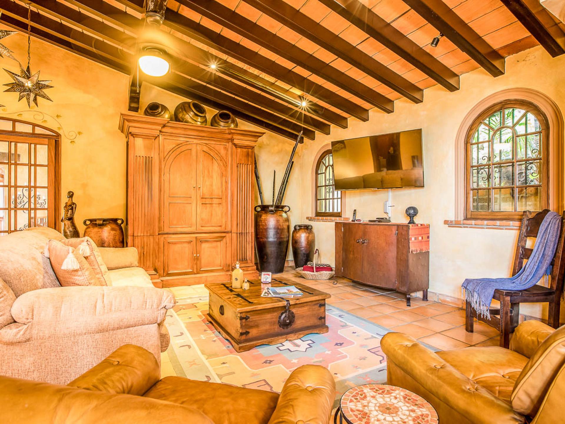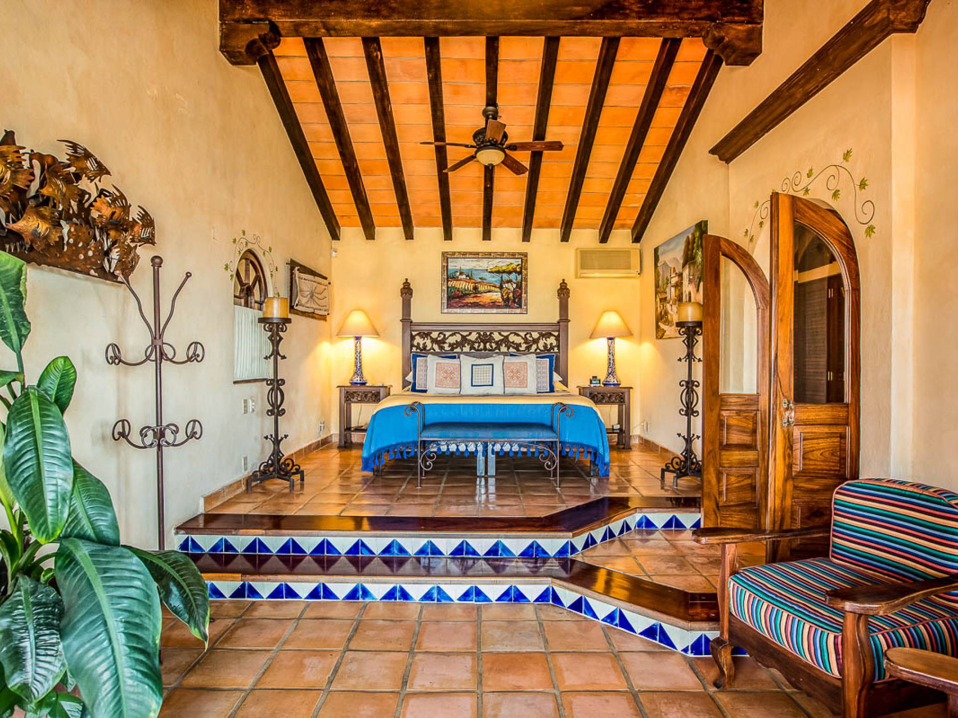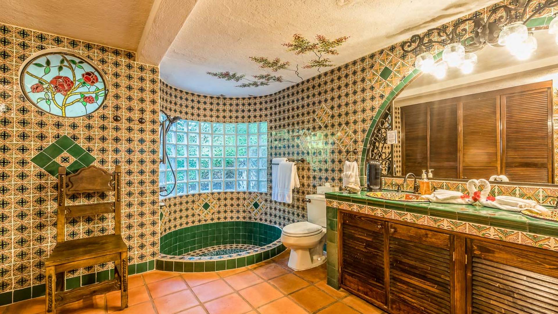 >Το Casa Paraiso Puerto Vallarta διαθέτει παράθυρα από το δάπεδο μέχρι την οροφή που προσφέρουν υπέροχο φυσικό φως και υπέροχη θέα από όλα τα δωμάτια. Μια περίτεχνη βεράντα στο κεντρικό σαλόνι προσφέρει το ιδανικό σημείο για κοκτέιλ ηλιοβασιλέματος ή δείπνο στο ύπαιθρο. Σε όλο το Casa Paraiso, η παραδοσιακή επίπλωση και τα φωτεινά πολύχρωμα φινιρίσματα προσφέρουν καλλιτεχνική γοητεία και χαρακτήρα.