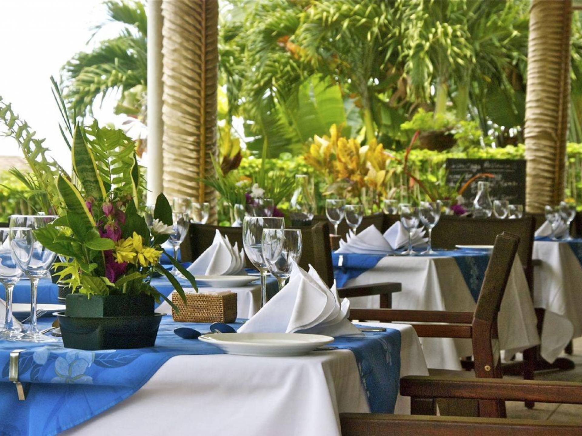 Περιτριγυρισμένη από έναν τροπικό κήπο βρίσκεται η κύρια πισίνα που βρίσκεται στη μέση του θέρετρου. Η δεύτερη πισίνα θέρετρου βρίσκεται σε μια πιο ιδιωτική περιοχή κοντά στο Drumbeat Bar, το μπαρ ανοίγει καθημερινά τα απογεύματα για κοκτέιλ Happy Hour. Το εστιατόριο μπορεί να φιλοξενήσει έως 60 άτομα ή να οργανώσει ένα ρομαντικό δείπνο στην παραλία.