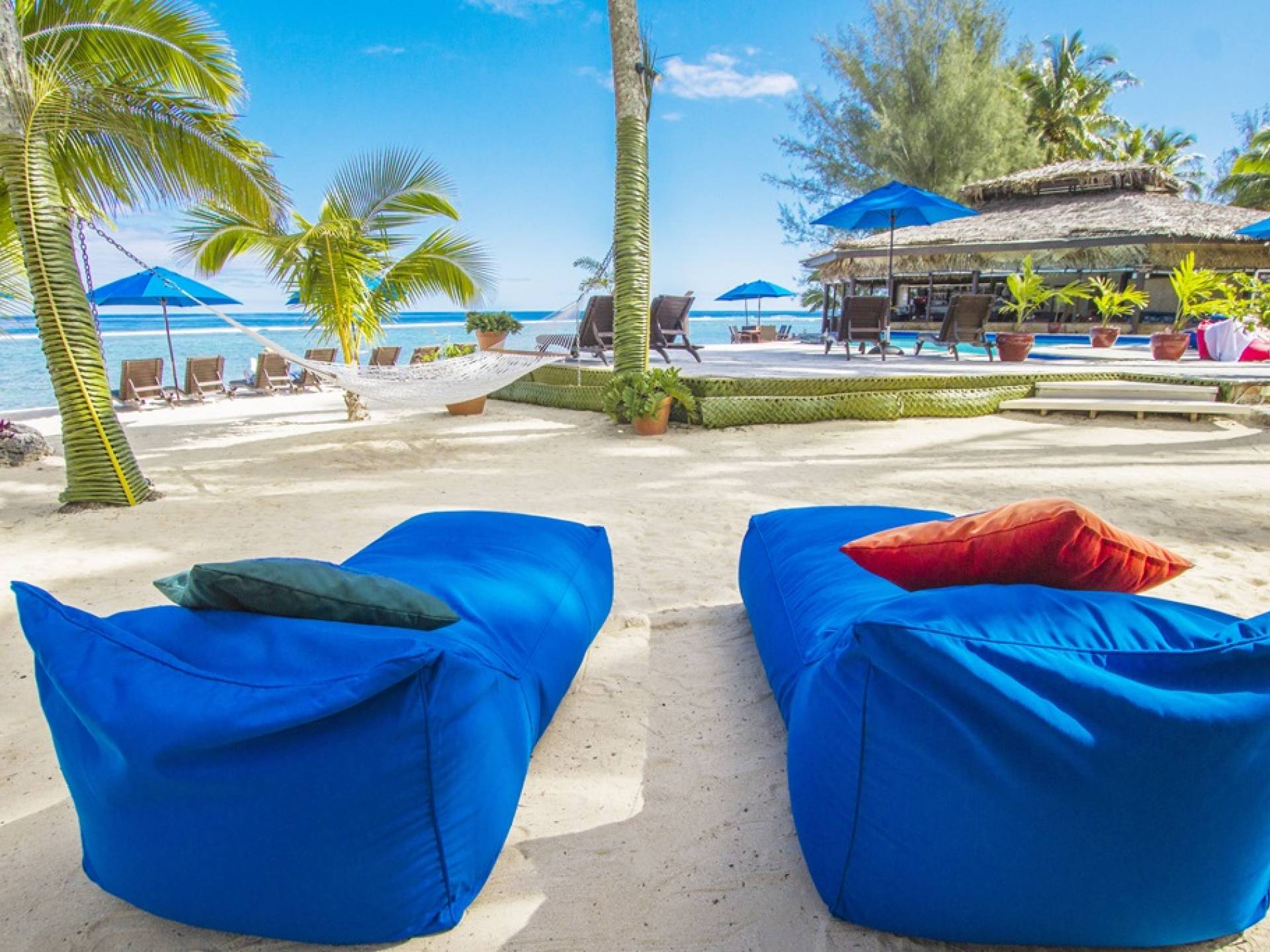 Απόλυτο παραθαλάσσιο Rarotonga Διαμονή με εκπληκτική θέα στον αφρώδη ωκεανό και τη λευκή άμμο. Εσωτερικοί χώροι εμπνευσμένοι από την Πολυνησία, Κλιματιζόμενοι με βελούδινα κρεβάτια υπνηλίας, καθαρά σεντόνια και ιδιωτική βεράντα για να χαλαρώσετε ή να απολαύσετε ένα κοκτέιλ ηλιοβασιλέματος στο δωμάτιό σας από το εστιατόριο των θερέτρων.