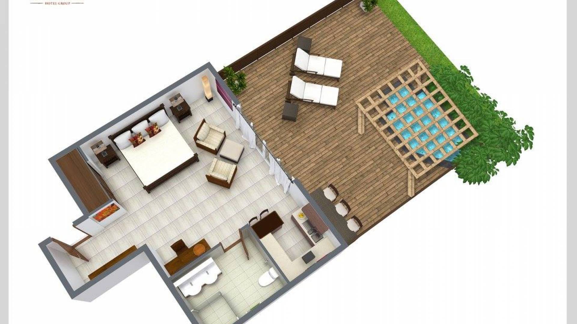 Ιδανικό για μήνα του μέλιτος ή ειδική απόδραση για δύο, η παραθαλάσσια βίλα σουίτας προσφέρει απρόσκοπτη θέα στη γαλάζια λιμνοθάλασσα από το ιδιωτικό σας αίθριο και μια δροσιστική μικρή πισίνα. Κάντε μια βουτιά στην αγκαλιά της πολυτέλειας και ζήστε μόνο τα καλύτερα καταλύματα και ανέσεις. Με γκουρμέ κουζίνα και εγκαταστάσεις πλυντηρίων, δεν θα χρειαστεί να εγκαταλείψετε τις ανέσεις αυτής της κομψής κατοικίας, ούτε θα θέλετε.