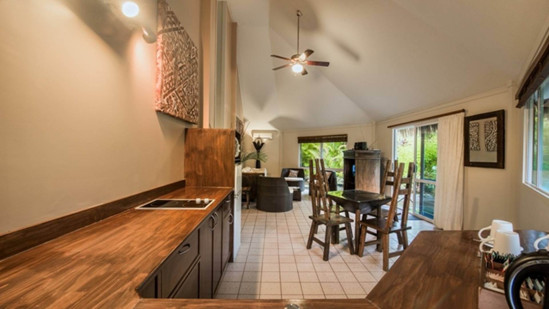 Η ιδανική θέση στη δυτική πλευρά της Rarotonga διασφαλίζει ότι οι επισκέπτες μας απέχουν μόλις 10 λεπτά από το Διεθνές Αεροδρόμιο Rarotonga και 15 λεπτά ακόμη στο κέντρο της Avarua. Η θέση της ακτής του ηλιοβασιλέματος παρουσιάζει μια σειρά από επιλογές για φαγητό και εκδρομές για τους επισκέπτες. Τα κορυφαία εστιατόρια της Rarotonga βρίσκονται στη δυτική ακτή και είναι εύκολα προσβάσιμα με τα πόδια, λεωφορεία νησιού, μοτοσικλέτα ή αυτοκίνητο.