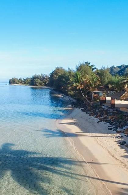 Βρίσκεται σε μια ήπια άνοδο στο πίσω μέρος του καταφυγίου μας, μπορείτε να απολαύσετε βλέποντας το σπάσιμο των κυμάτων στον ύφαλο από το μπροστινό κατάστρωμα ή να απολαύσετε την ειρηνική θέα στο βουνό πίσω καθώς δειπνήσετε με τοιχογραφίες δίπλα στην πισίνα σας. Και μια μικρή βόλτα σε απόσταση μικρότερη των 100 μέτρων από την παραλία, όπου μπορείτε να κολυμπήσετε με αναπνευστήρα, καγιάκ ή να κολυμπήσετε στην όμορφη λιμνοθάλασσα Titikaveka.