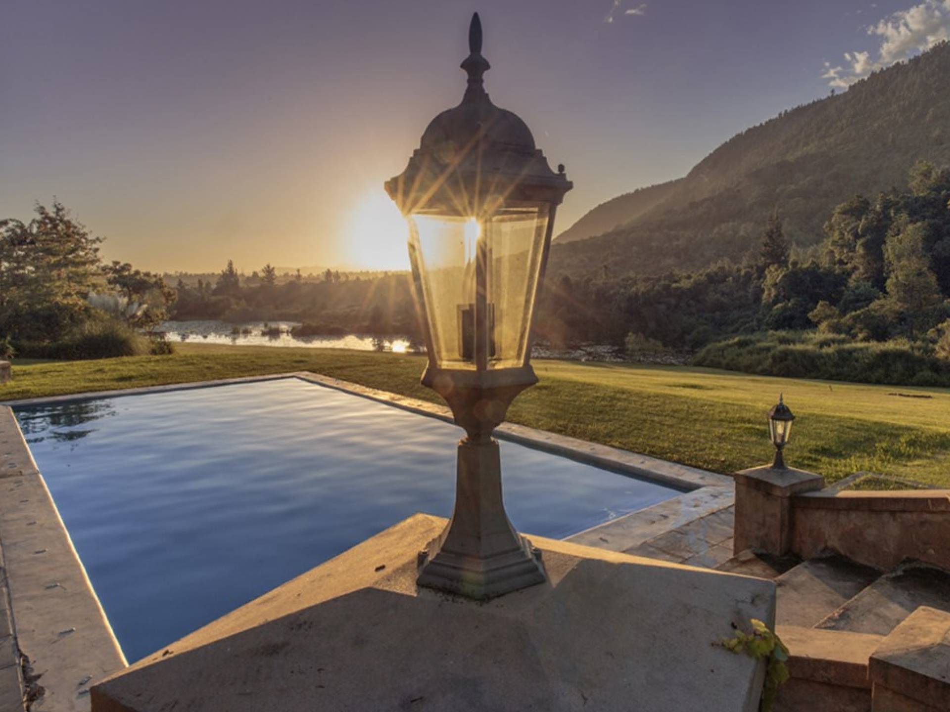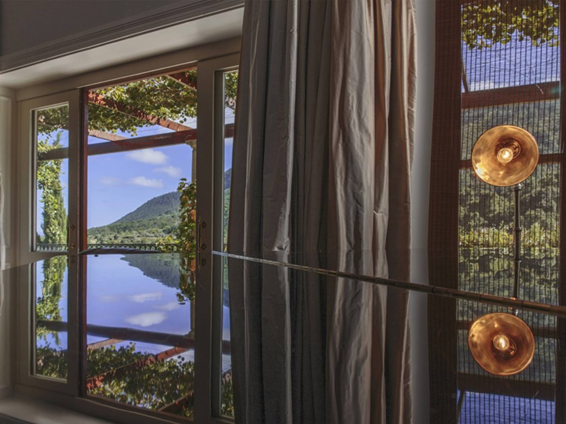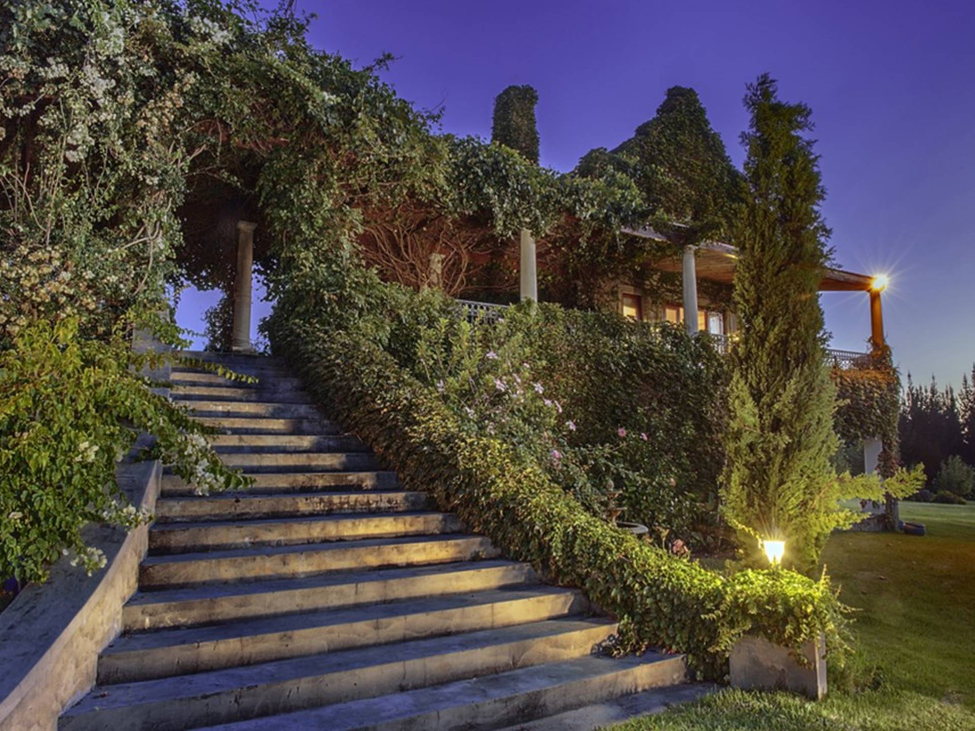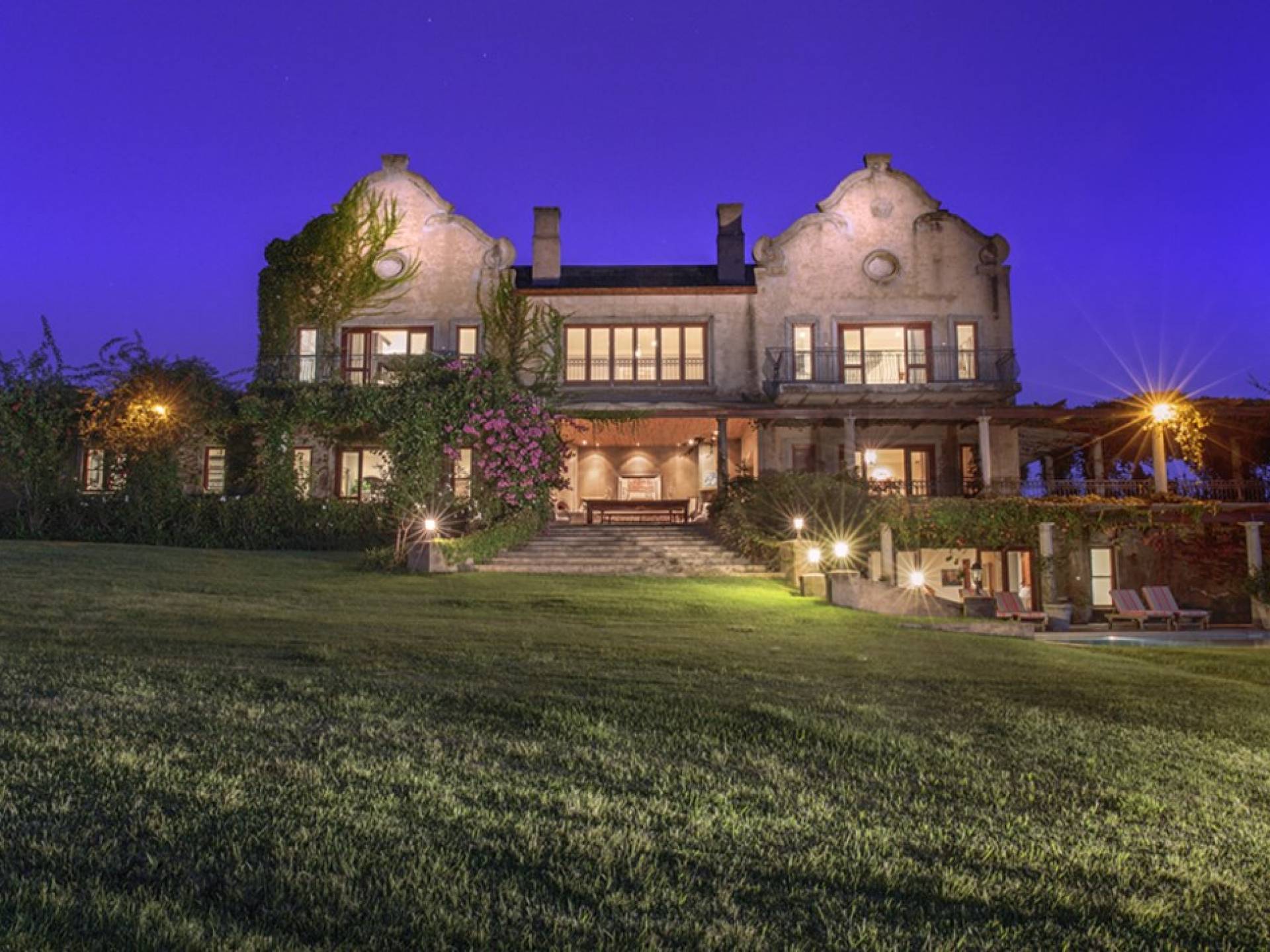 Κάτω: Αίθουσα εισόδου, υπνοδωμάτιο επισκεπτών με ιδιωτικό μπάνιο, σαλόνι, σαλόνι/τηλεόραση, τραπεζαρία, μεγάλη κουζίνα με δωμάτιο-ψυκτικό δωμάτιο, κουζινάκι, δωμάτιο για μπότες, πλυντήριο και λευκά είδη. Μεγάλη, σκεπαστή βεράντα με μπάρμπεκιου και φούρνο πίτσας. Παρακάτω, υπάρχει μια πλήρως εξοπλισμένη κάβα. Δίπλα στην πισίνα υπάρχει ένα σπα με τζακούζι, σάουνα, ατμόλουτρο και αποδυτήρια. Ευρυζωνική ασύρματη και δορυφορική τηλεόραση βρίσκονται σε όλους τους κύριους χώρους καθιστικού, καθώς και στα κύρια και στα υπνοδωμάτια επισκεπτών. Επάνω όροφος: Προσγείωση στην κορυφή της διπλής σκάλας, Κύριο υπνοδωμάτιο με ιδιωτικό μπάνιο, με γκαρνταρόμπα, διπλανό γραφείο και υπολογιστή, ένα υπνοδωμάτιο με διπλό ιδιωτικό μπάνιο, δύο επιπλέον δίκλινα υπνοδωμάτια με μεγάλο μπάνιο και παιδική χαρά. Ξεχωριστή Δυτική Πτέρυγα: Δύο υπνοδωμάτια με ιδιωτικό μπάνιο, σαλόνι/τηλεόραση με ενιαία τραπεζαρία και πλήρως εξοπλισμένη κουζίνα. Παρακάτω υπάρχει ένα υπνοδωμάτιο με ιδιωτικό μπάνιο, επίσης σαλόνι/τηλεόραση, μικρή τραπεζαρία και μικρή κουζίνα. Όπως και με το Main House, όλα τα δωμάτια έχουν απεριόριστη θέα στην παρθένα ύπαιθρο.