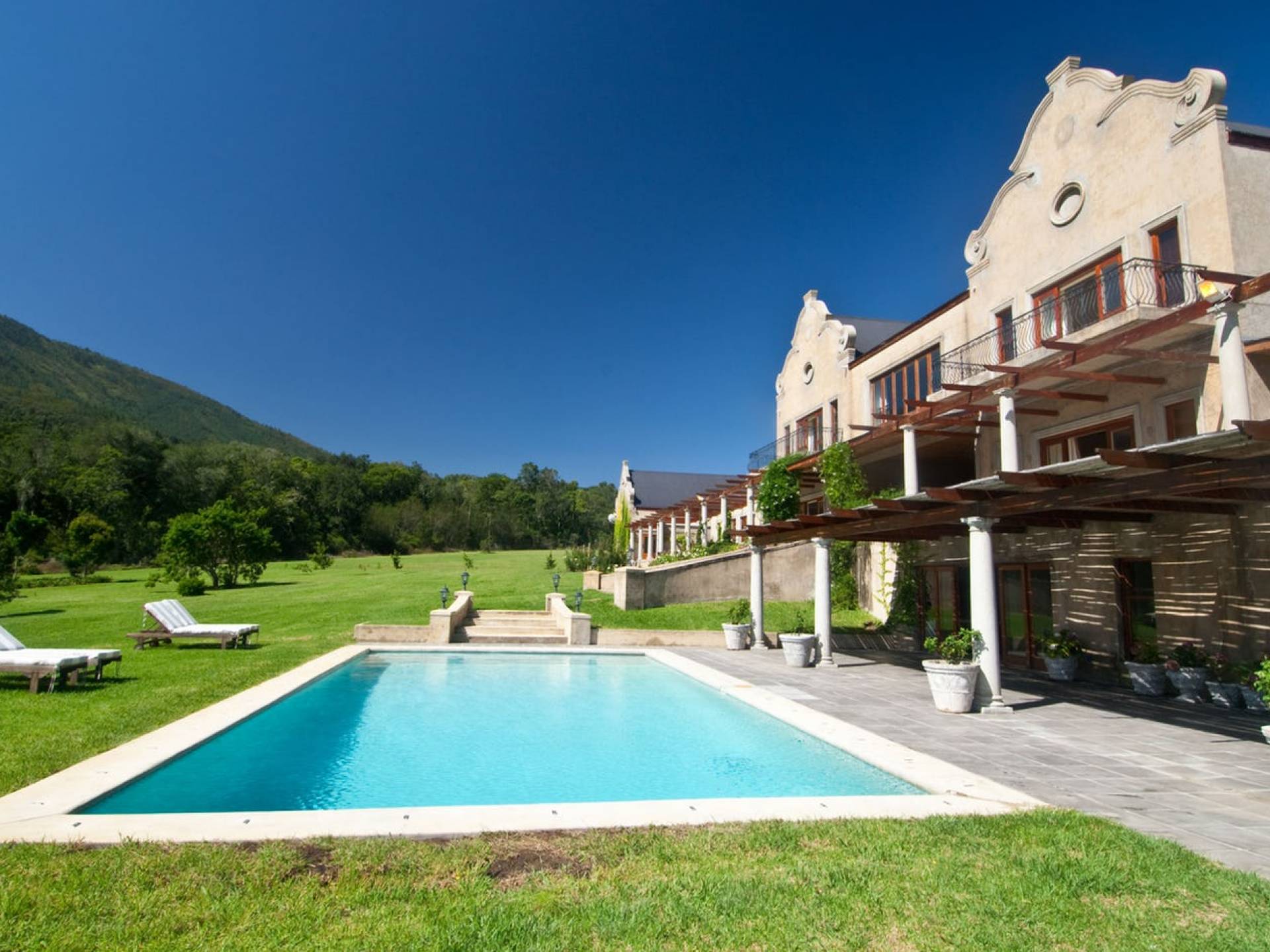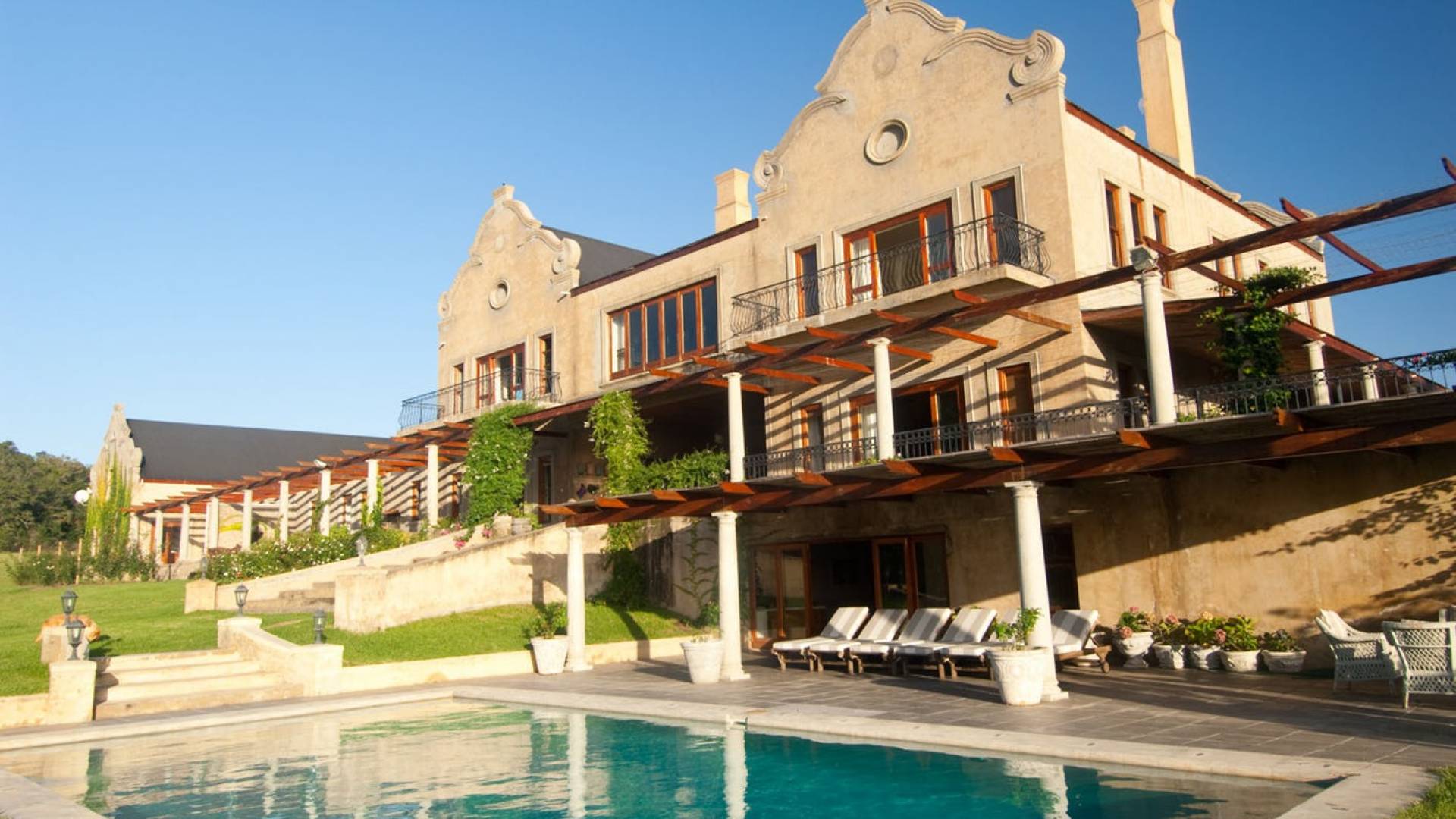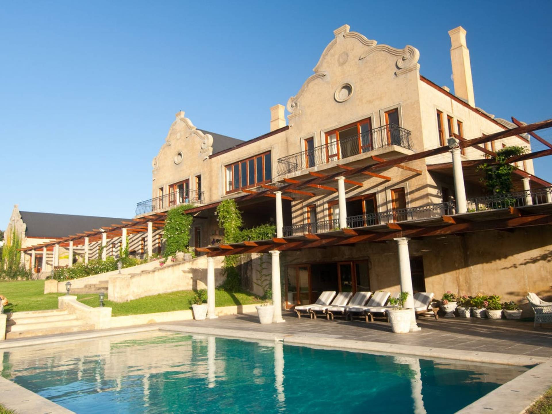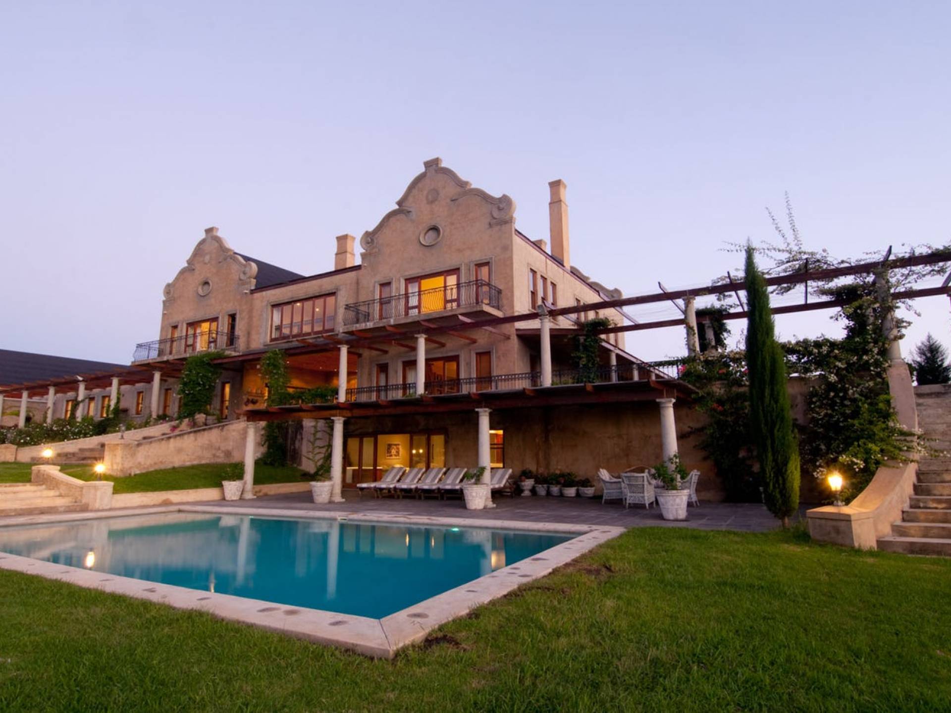 Η βίλα είναι ένα μεγάλο, πρόσφατα χτισμένο σπίτι, σχεδιασμένο σύμφωνα με την παράδοση του Cape Dutch, αλλά στο οποίο καλύπτονται πλήρως όλες οι απαιτήσεις της σύγχρονης ζωής. Τα εσωτερικά φινιρίσματα είναι υψηλών προδιαγραφών και η βίλα έχει διακοσμηθεί όμορφα και κομψά.