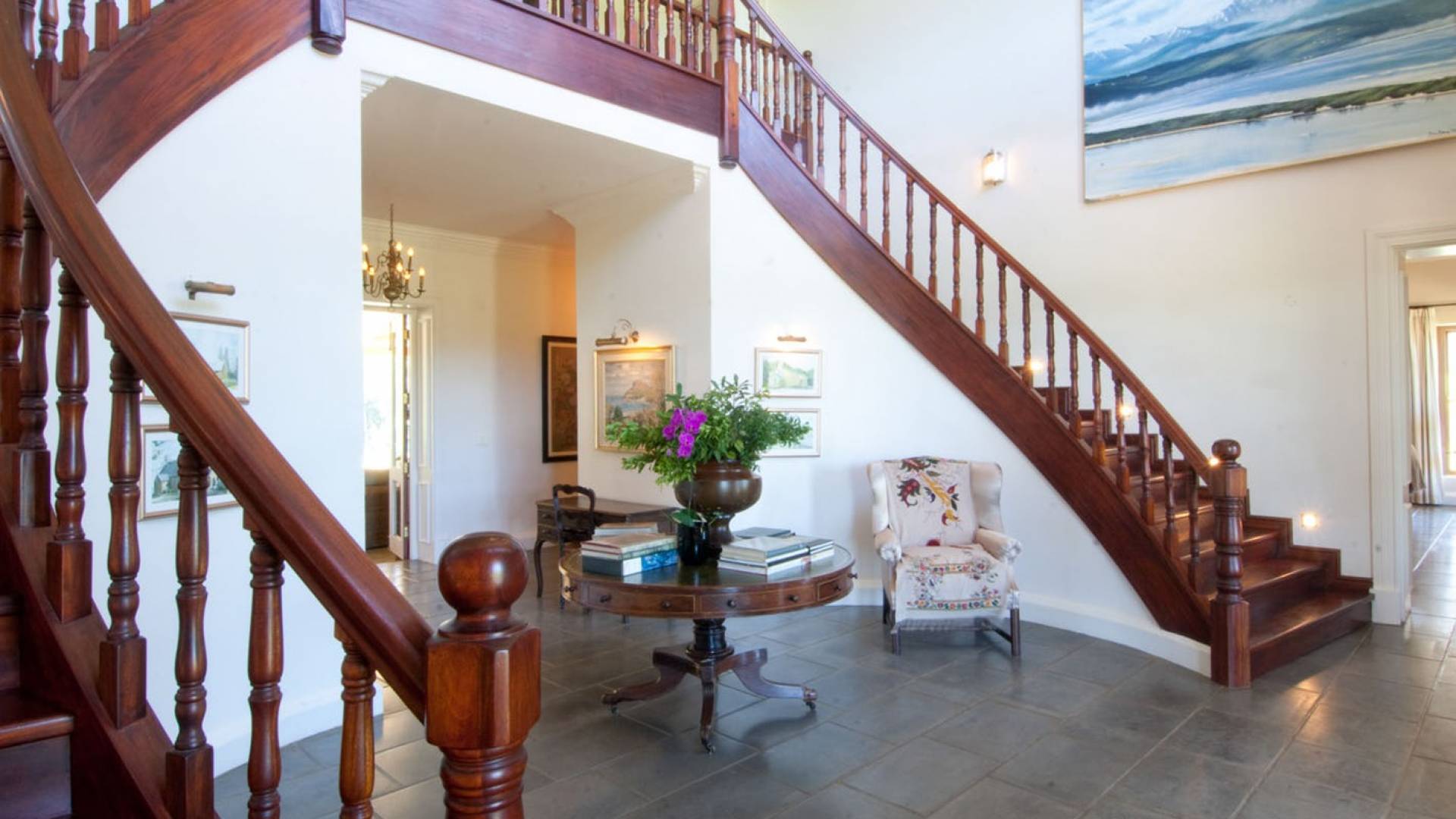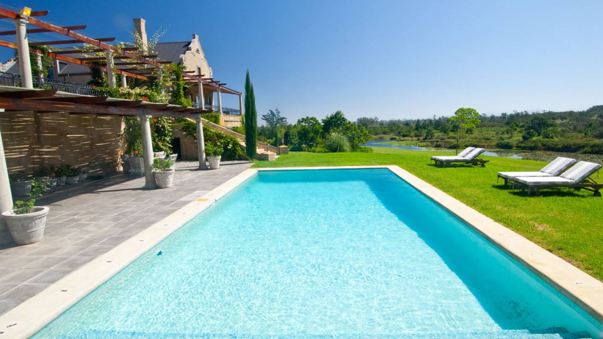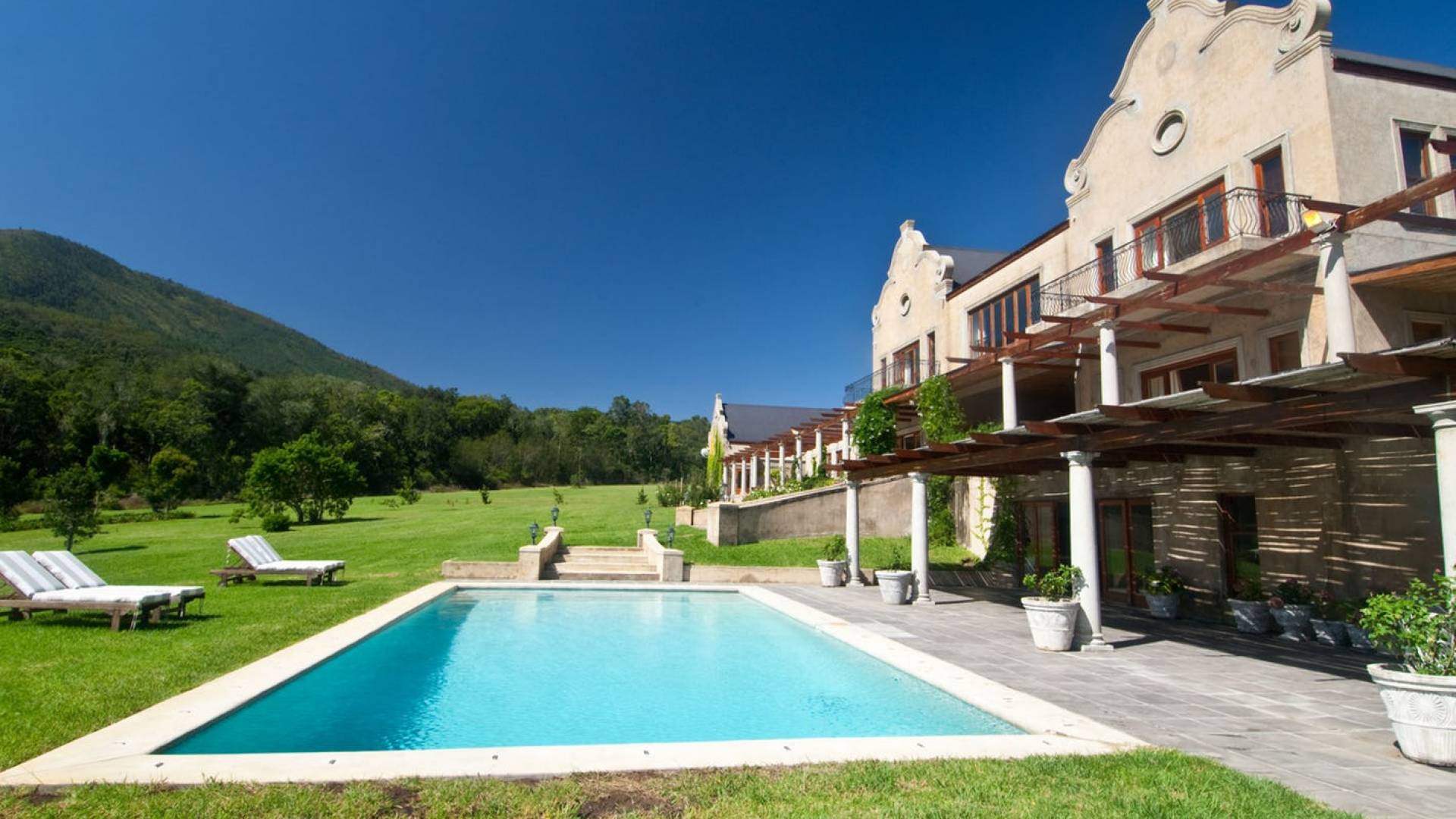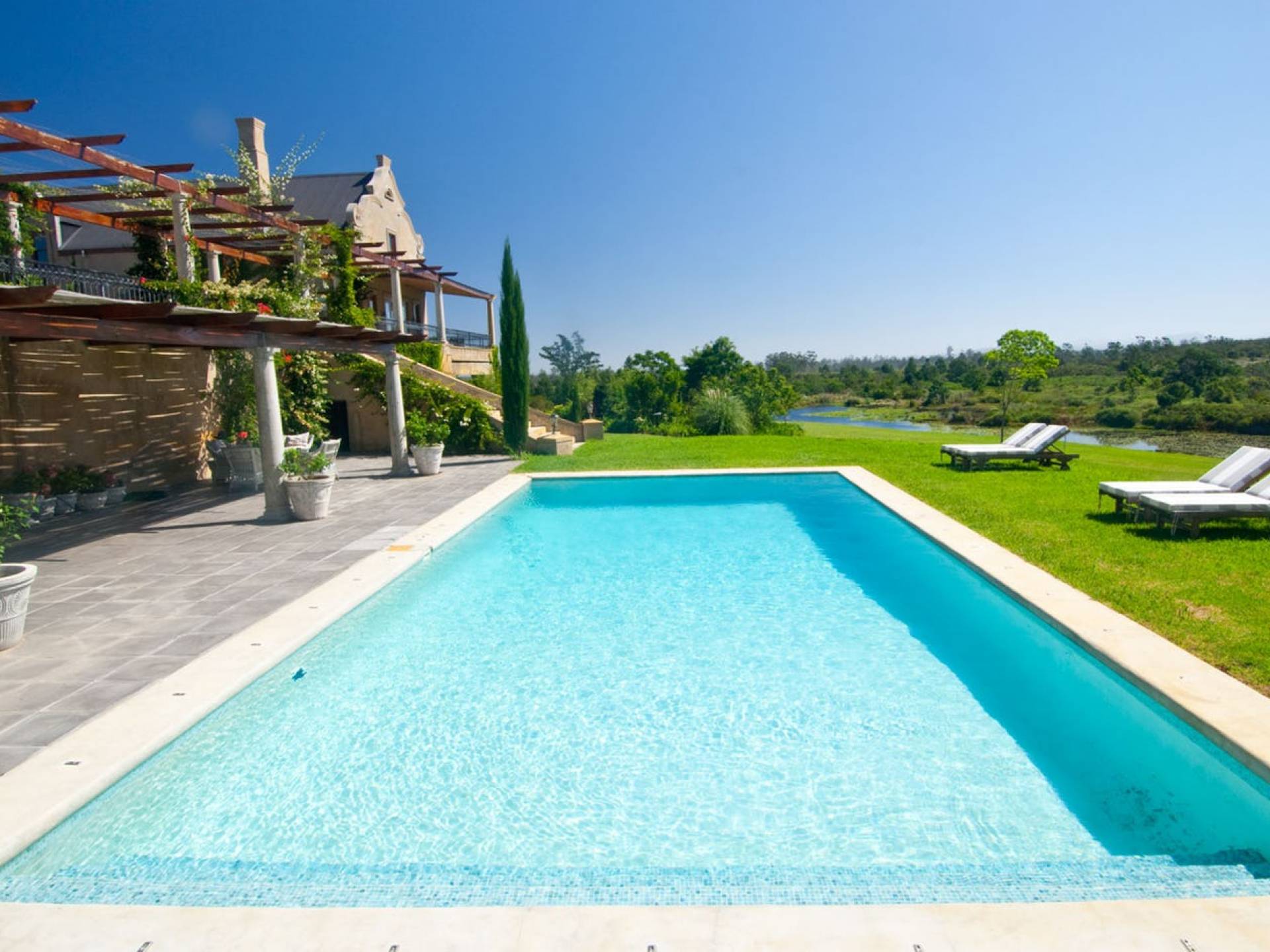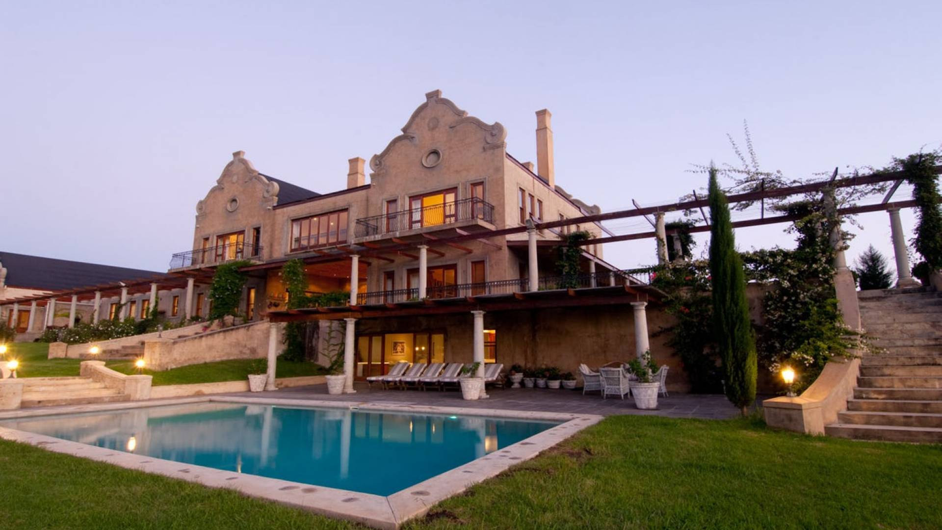 Η βίλα είναι ένα μεγάλο, πρόσφατα χτισμένο σπίτι, σχεδιασμένο σύμφωνα με την παράδοση του Cape Dutch, αλλά στο οποίο καλύπτονται πλήρως όλες οι απαιτήσεις της σύγχρονης ζωής. Τα εσωτερικά φινιρίσματα είναι υψηλών προδιαγραφών και η βίλα έχει διακοσμηθεί όμορφα και κομψά.