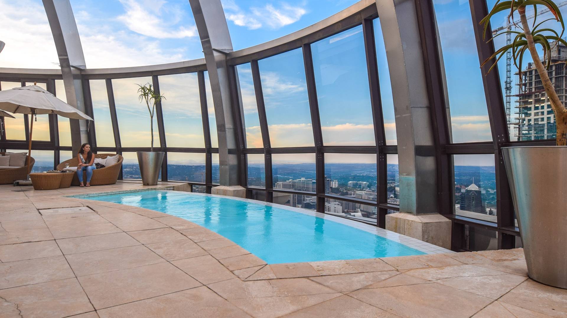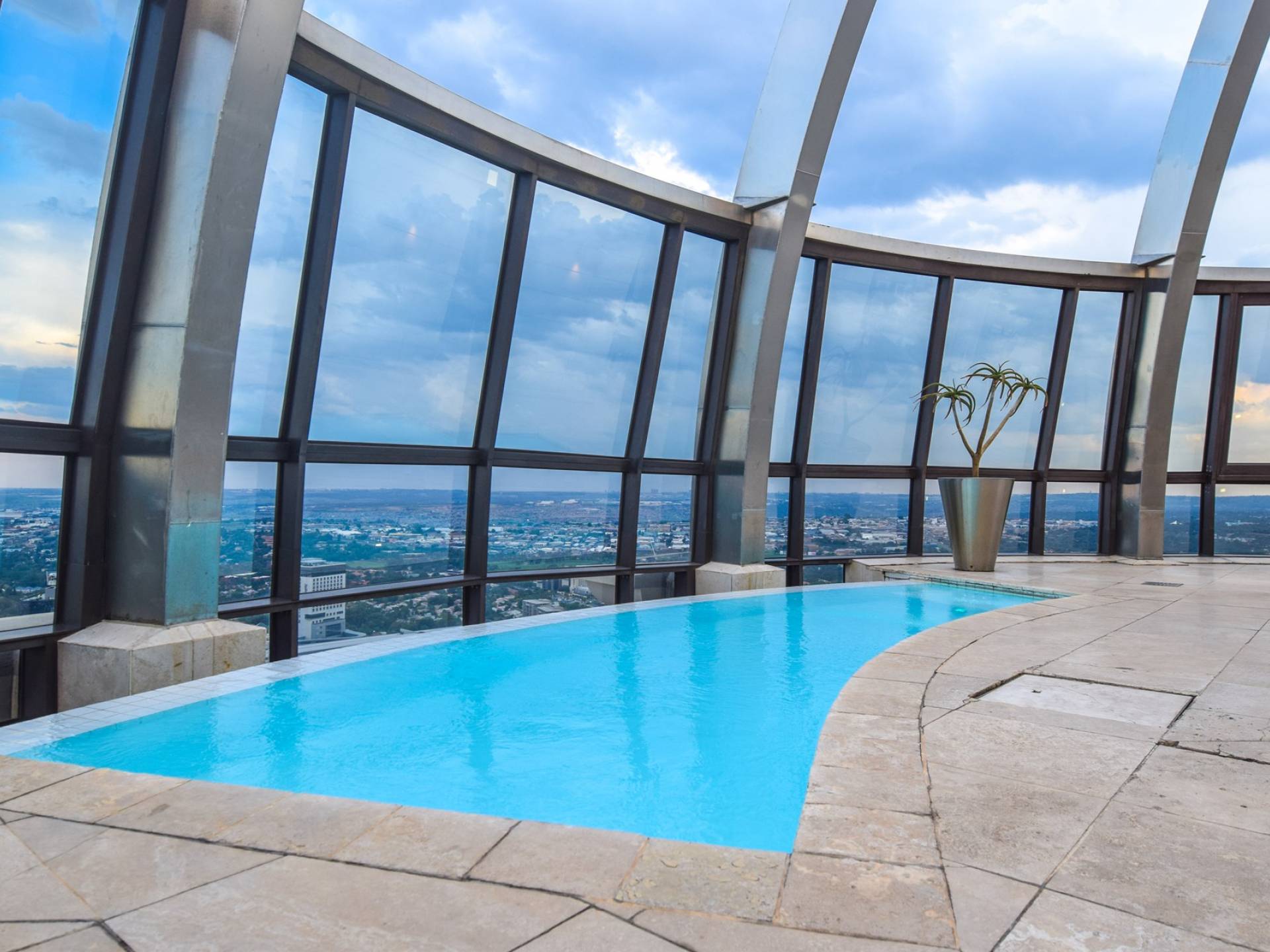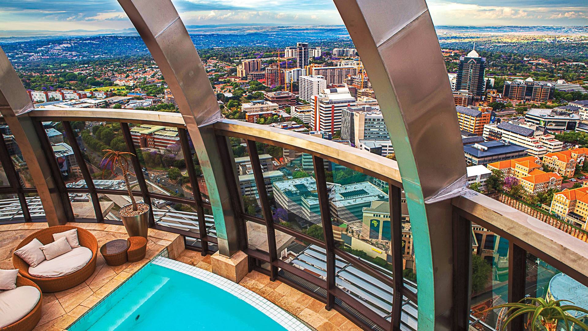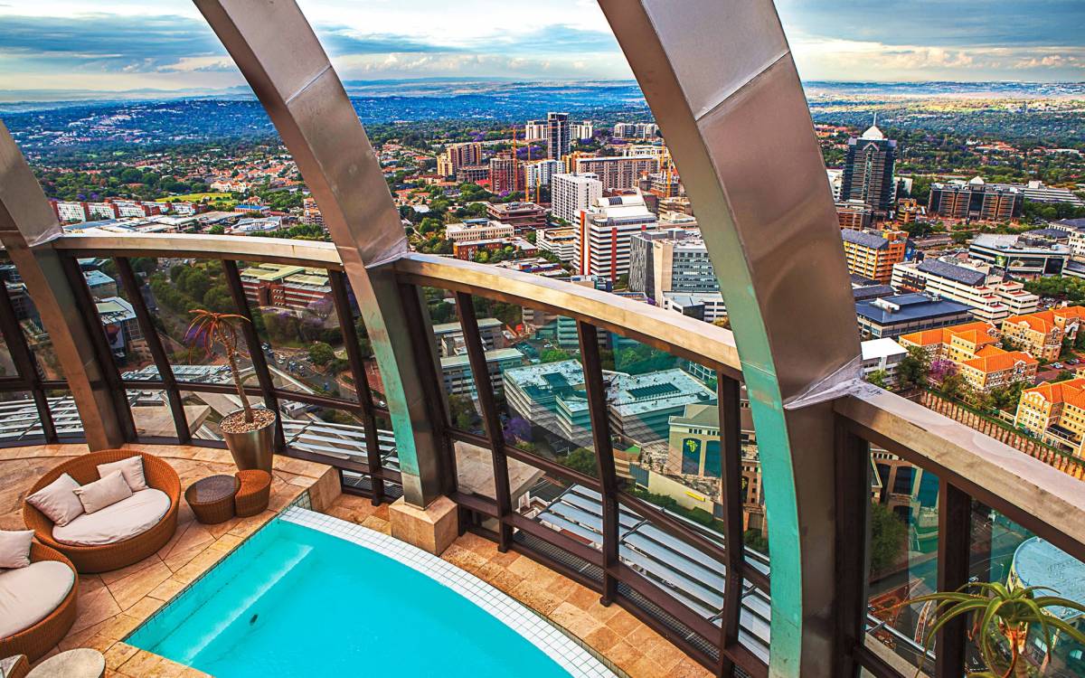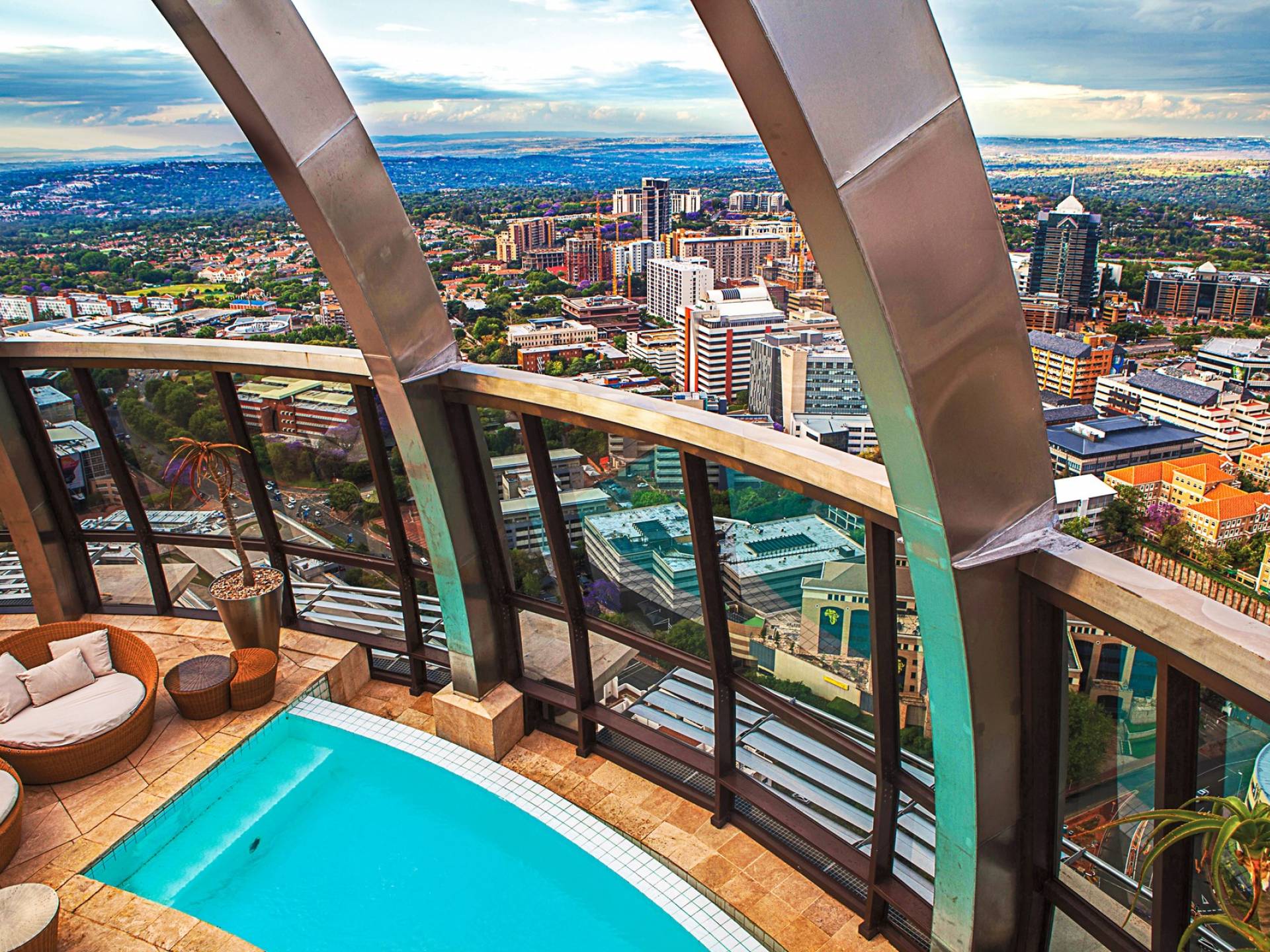 Με πανοραμική θέα στο Magaliesberg, το Γιοχάνεσμπουργκ CBD και το αστικό τοπίο Sandton παρακάτω. Η σουίτα 600τμ είναι ένας χώρος σε αντίθεση με οποιονδήποτε άλλο στο Sandton και προσφέρει στον αρμόδιο για τη διοργάνωση εκδήλωση μια μοναδική παλέτα από την οποία μπορείτε να φανταστείτε το αδιανόητο. Προσφέροντας την απόλυτη άνεση και κομψότητα, αυτή η τριώροφη πολυτελής σουίτα διαθέτει τρία υπνοδωμάτια με ιδιωτικό μπάνιο, τραπέζι φαγητού για 13 άτομα, lounge και sky bar, 13 καθιστική αίθουσα συνεδριάσεων, πλήρως εξοπλισμένη κουζίνα με εγκαταστάσεις πλυντηρίων, γυάλινο ασανσέρ , ιδιωτική εσωτερική πισίνα και γυμναστήριο.