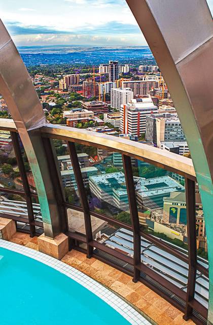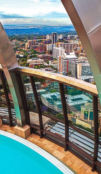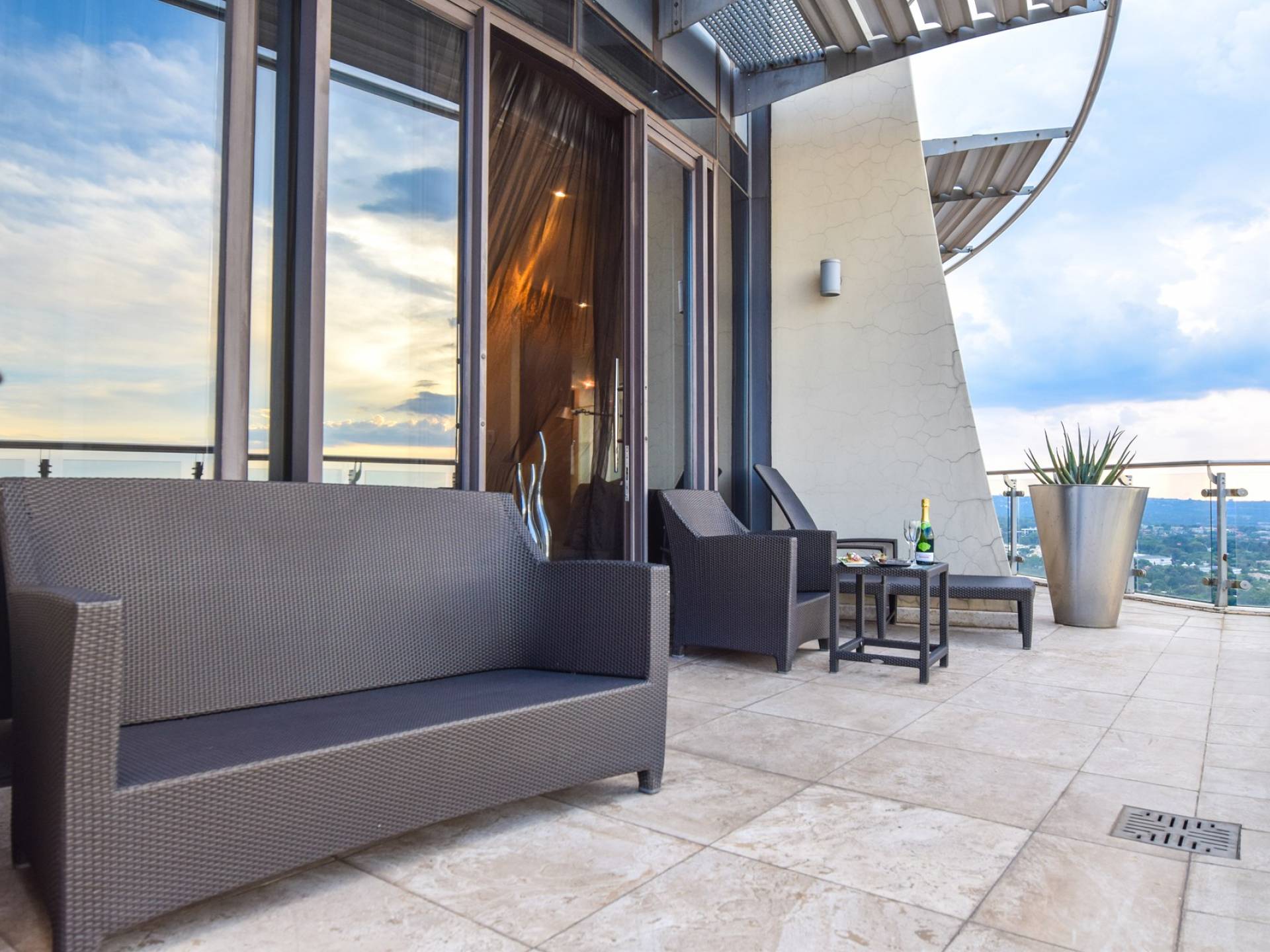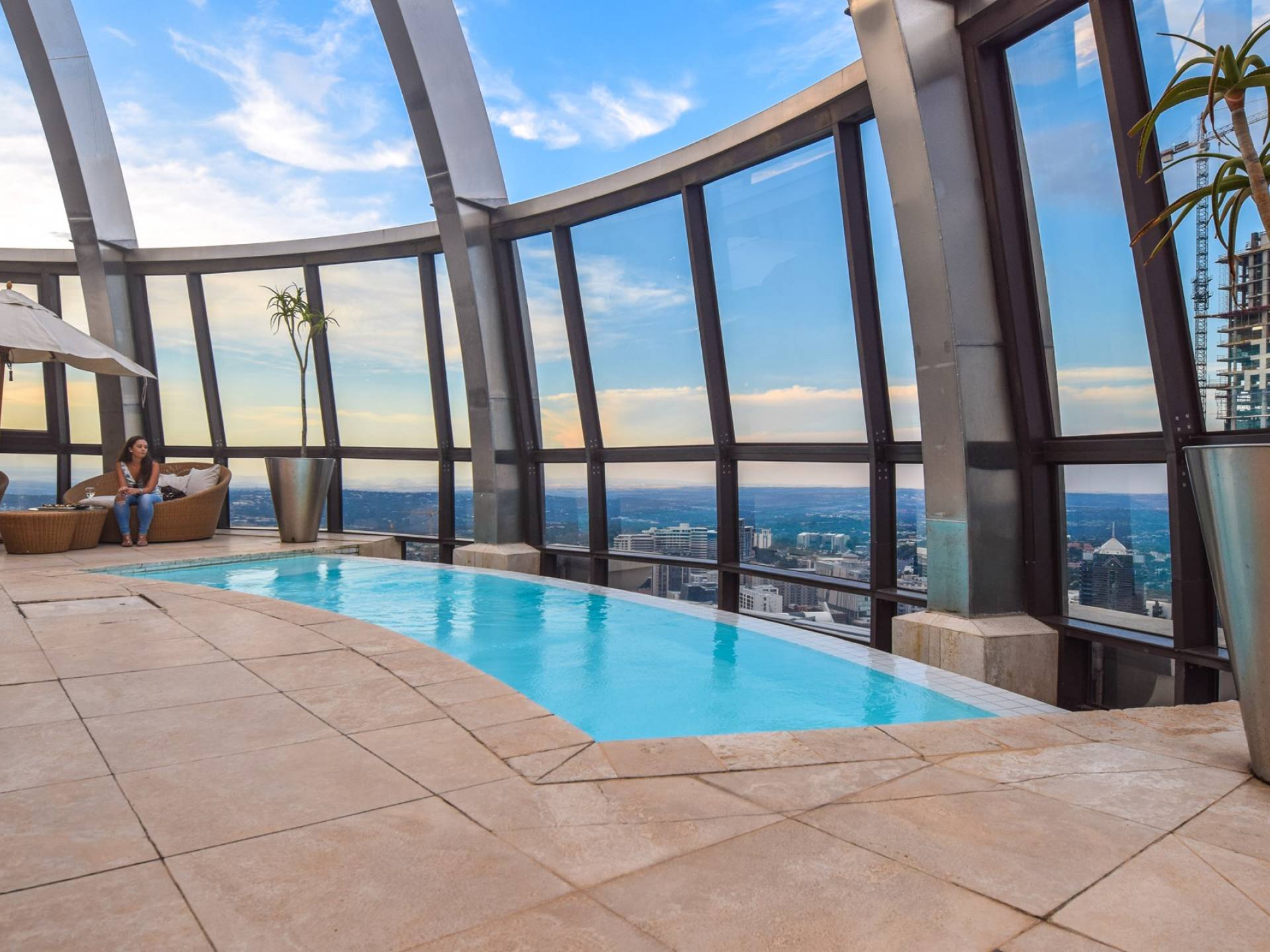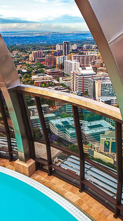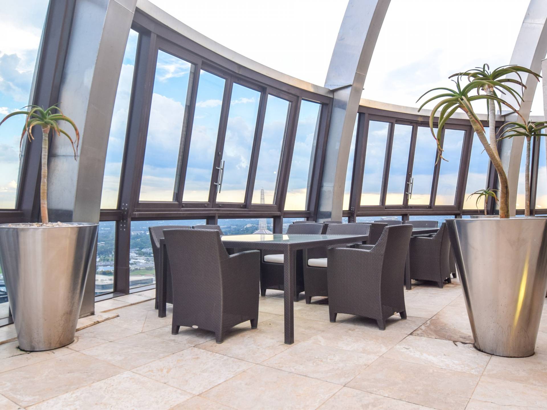 Με πανοραμική θέα στο Magaliesberg, το Γιοχάνεσμπουργκ CBD και το αστικό τοπίο Sandton παρακάτω. Η σουίτα 600τμ είναι ένας χώρος σε αντίθεση με οποιονδήποτε άλλο στο Sandton και προσφέρει στον αρμόδιο για τη διοργάνωση εκδήλωση μια μοναδική παλέτα από την οποία μπορείτε να φανταστείτε το αδιανόητο. Προσφέροντας την απόλυτη άνεση και κομψότητα, αυτή η τριώροφη πολυτελής σουίτα διαθέτει τρία υπνοδωμάτια με ιδιωτικό μπάνιο, τραπέζι φαγητού για 13 άτομα, lounge και sky bar, 13 καθιστική αίθουσα συνεδριάσεων, πλήρως εξοπλισμένη κουζίνα με εγκαταστάσεις πλυντηρίων, γυάλινο ασανσέρ , ιδιωτική εσωτερική πισίνα και γυμναστήριο.