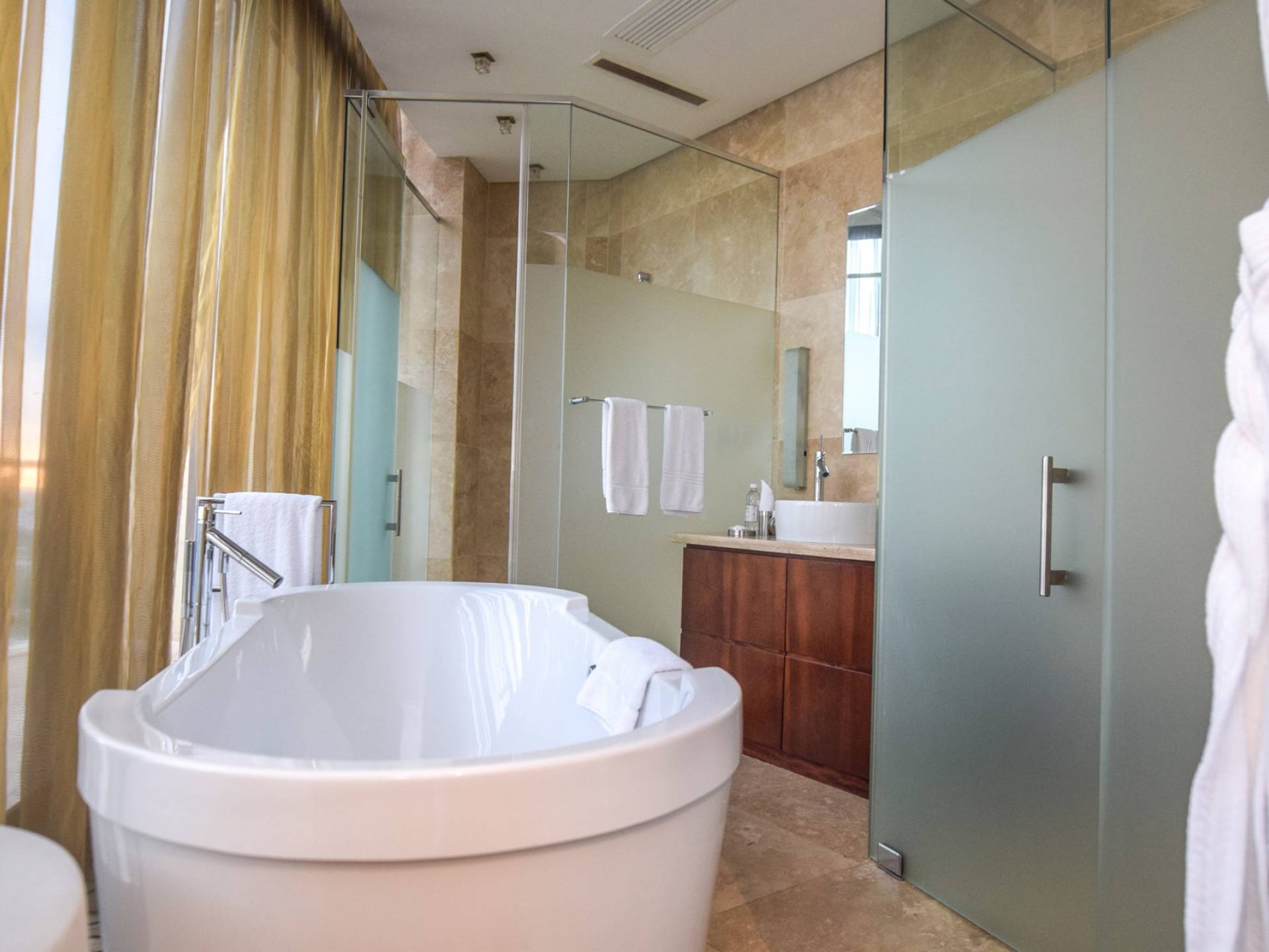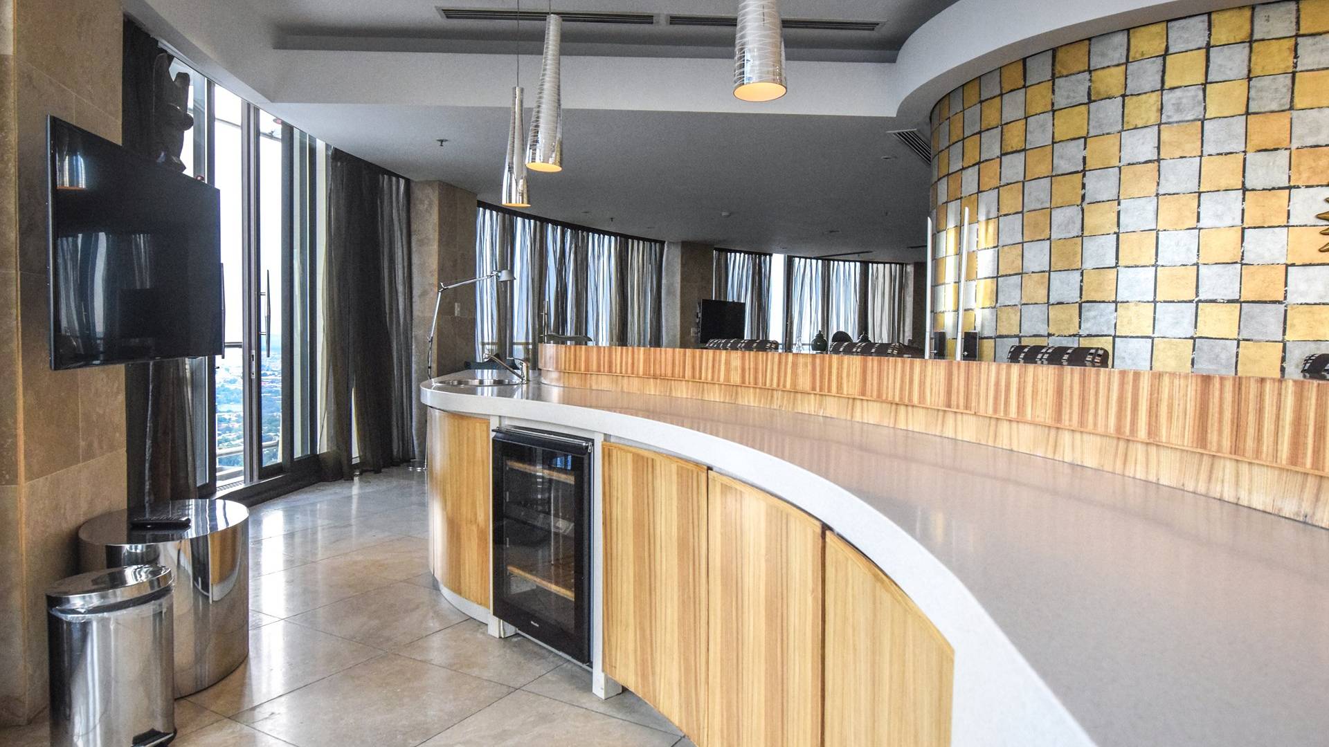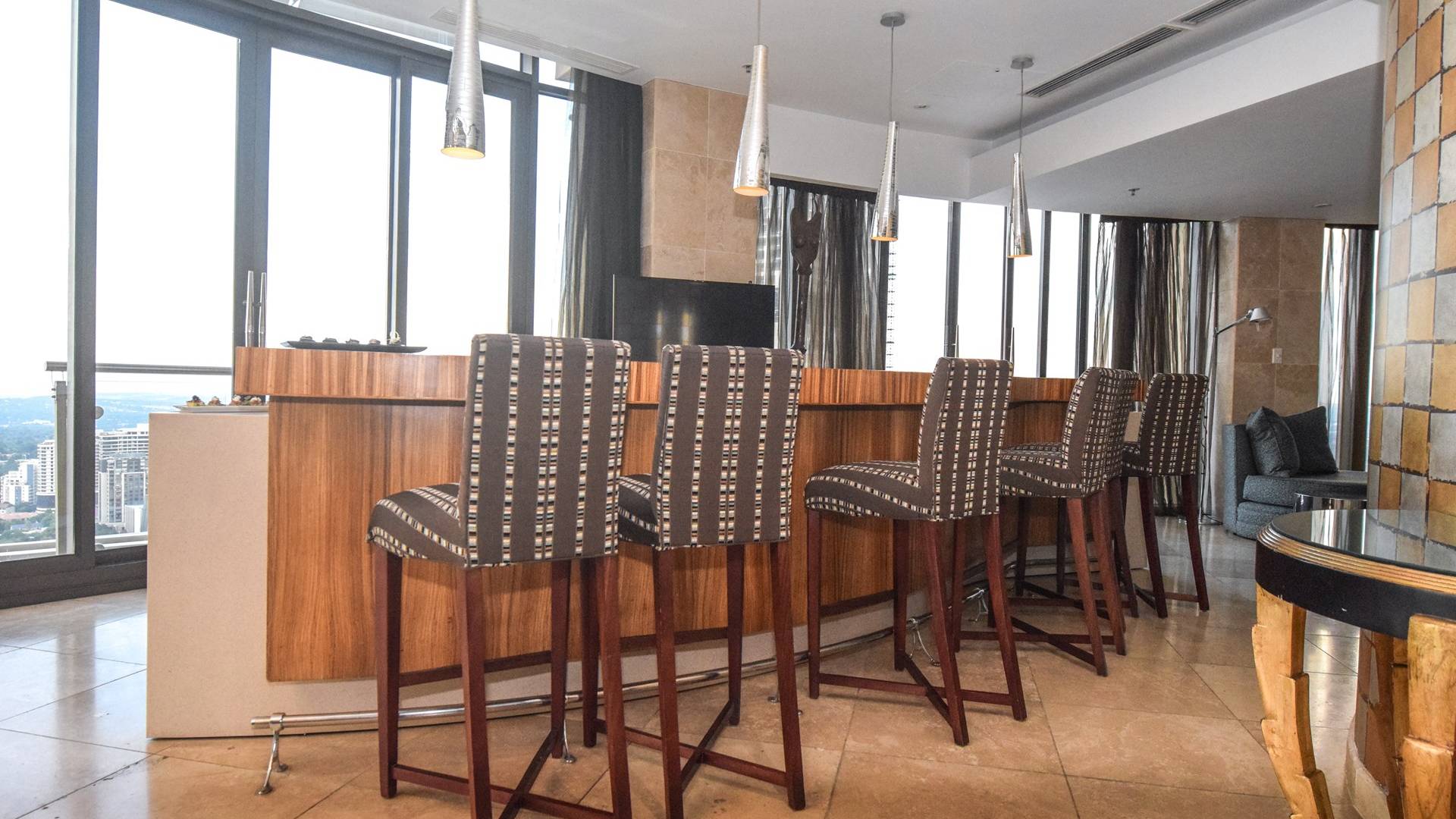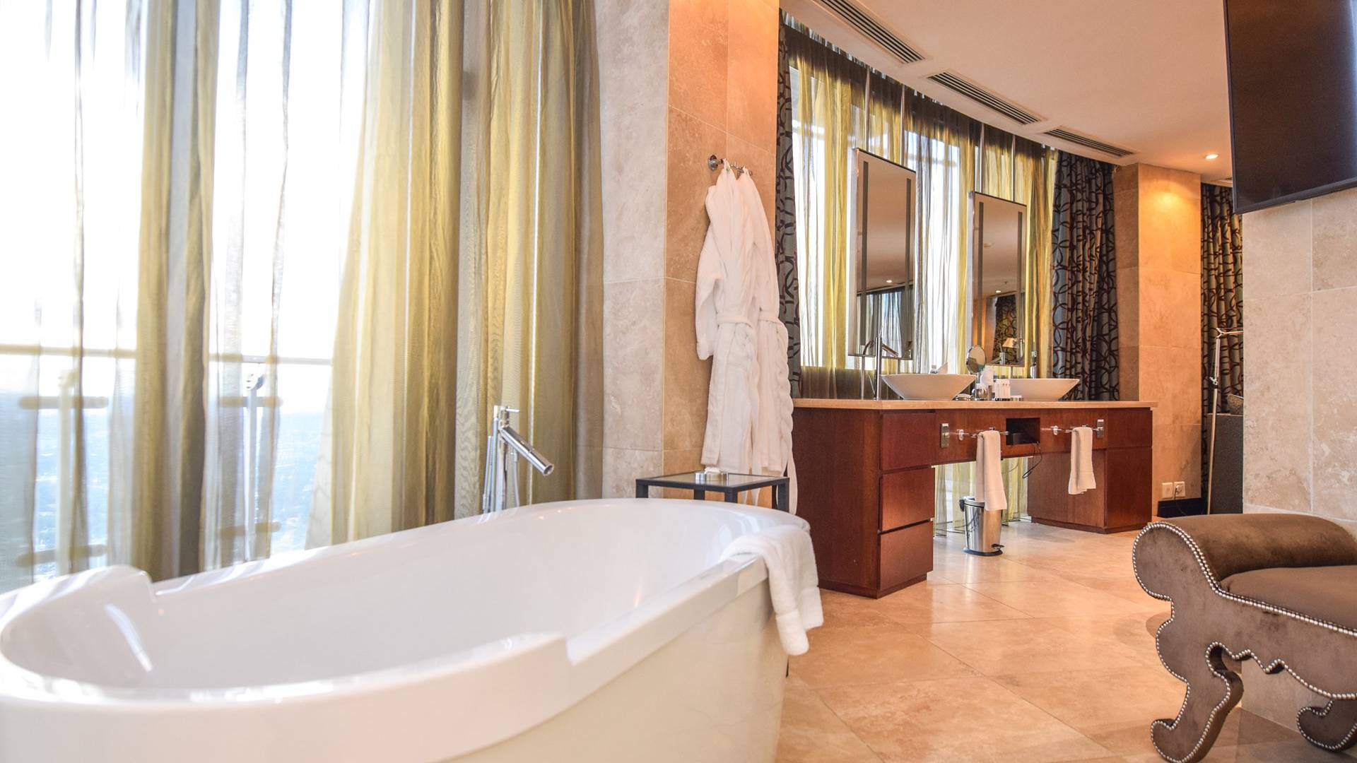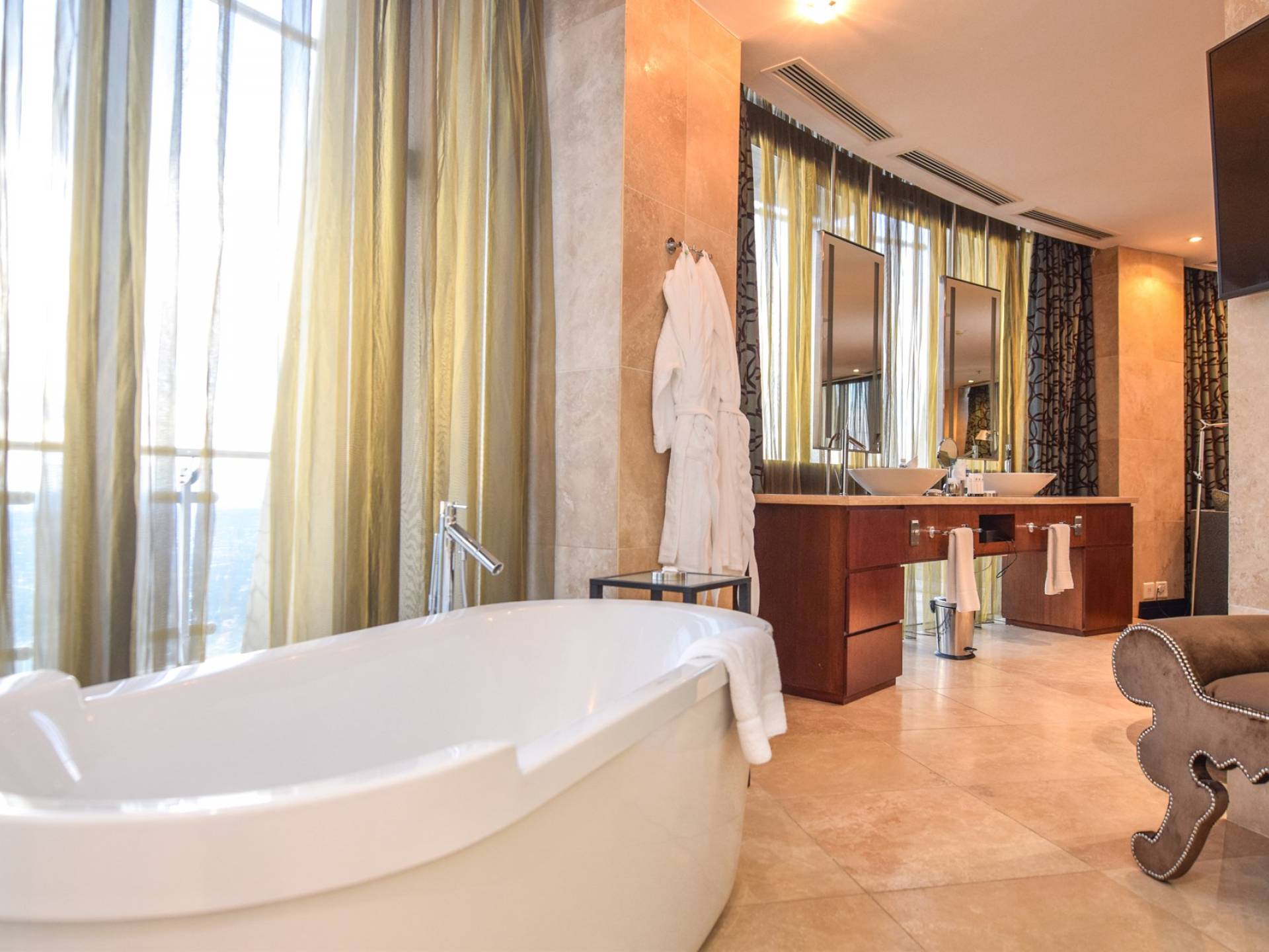 Με πανοραμική θέα στο Magaliesberg, το Γιοχάνεσμπουργκ CBD και το αστικό τοπίο Sandton παρακάτω. Η σουίτα 600τμ είναι ένας χώρος σε αντίθεση με οποιονδήποτε άλλο στο Sandton και προσφέρει στον αρμόδιο για τη διοργάνωση εκδήλωση μια μοναδική παλέτα από την οποία μπορείτε να φανταστείτε το αδιανόητο. Προσφέροντας την απόλυτη άνεση και κομψότητα, αυτή η τριώροφη πολυτελής σουίτα διαθέτει τρία υπνοδωμάτια με ιδιωτικό μπάνιο, τραπέζι φαγητού για 13 άτομα, lounge και sky bar, 13 καθιστική αίθουσα συνεδριάσεων, πλήρως εξοπλισμένη κουζίνα με εγκαταστάσεις πλυντηρίων, γυάλινο ασανσέρ , ιδιωτική εσωτερική πισίνα και γυμναστήριο.