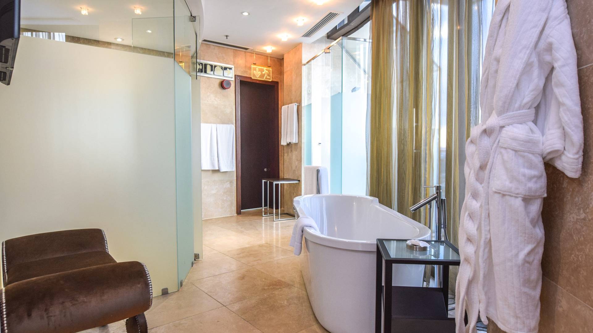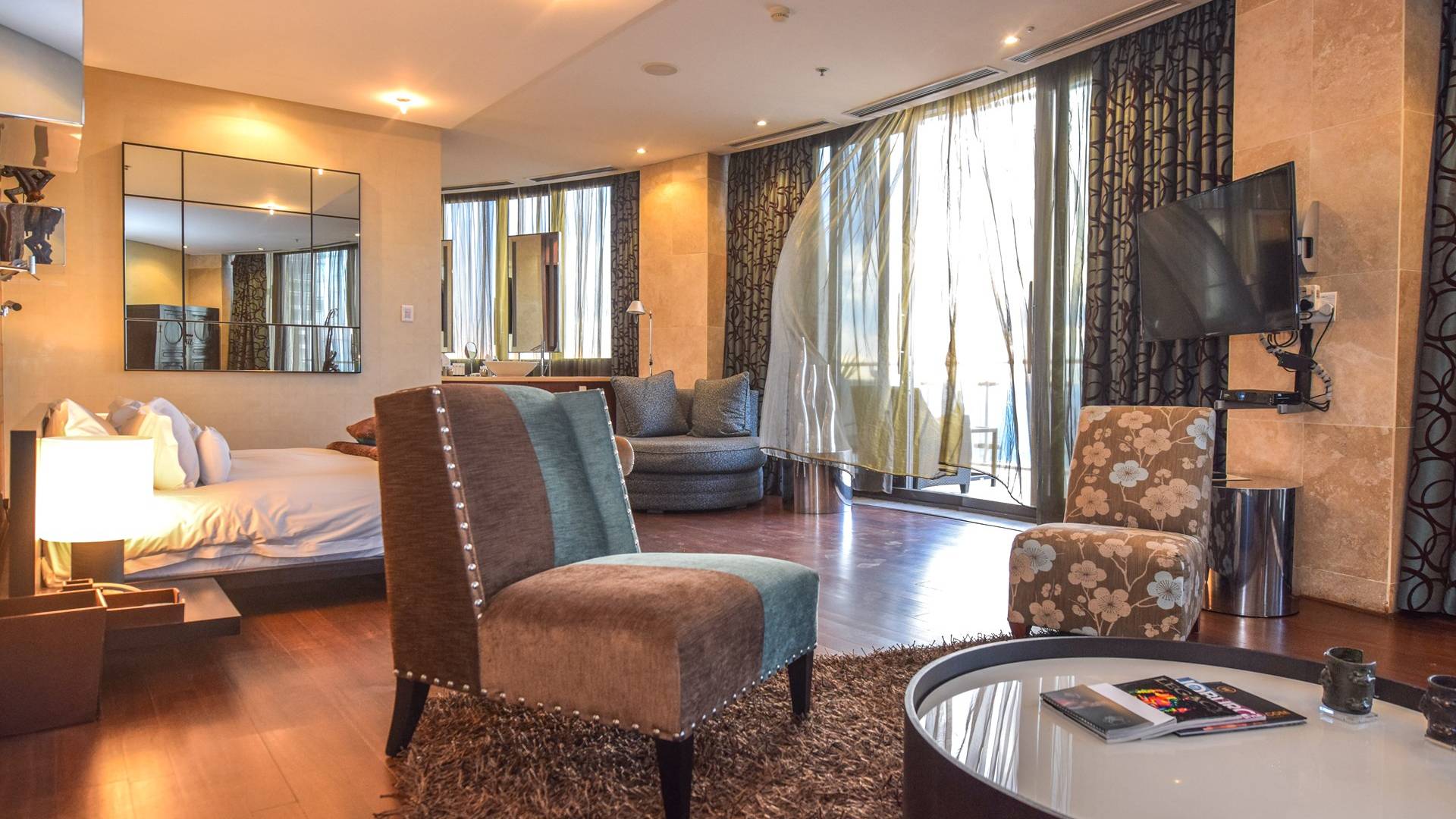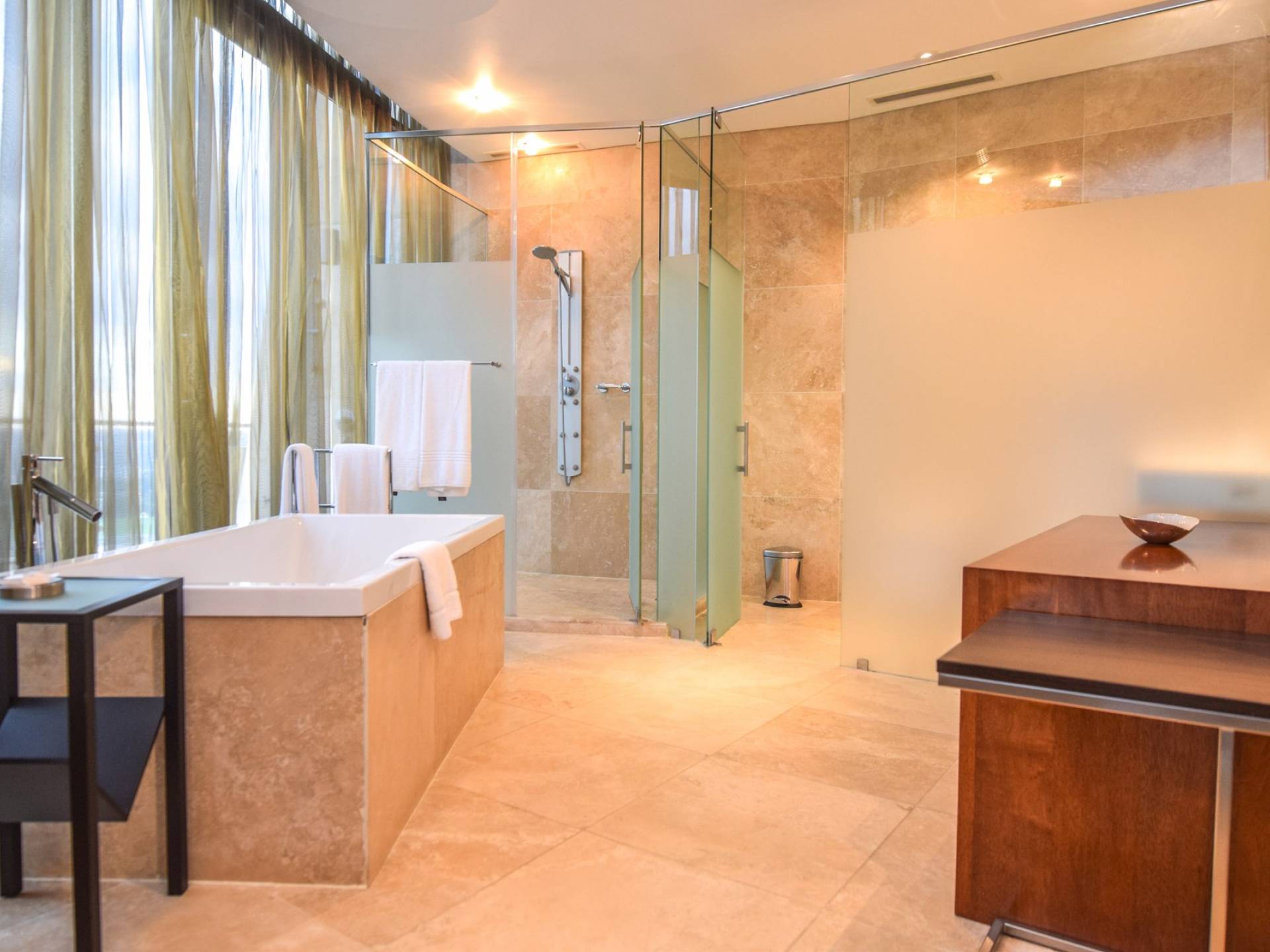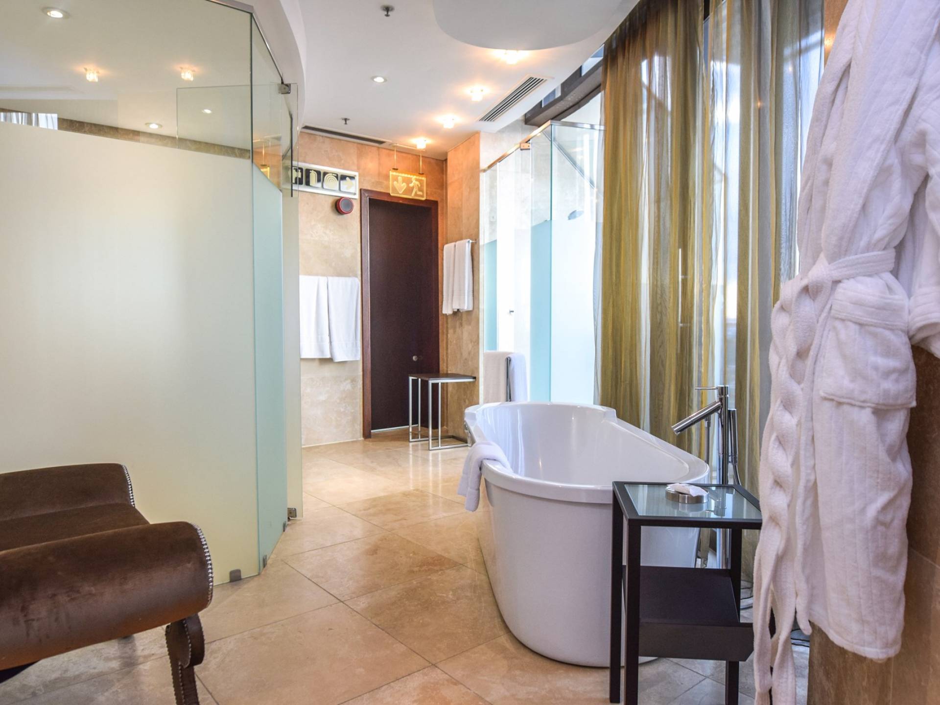Με πανοραμική θέα στο Magaliesberg, το Γιοχάνεσμπουργκ CBD και το αστικό τοπίο Sandton παρακάτω. Η σουίτα 600τμ είναι ένας χώρος σε αντίθεση με οποιονδήποτε άλλο στο Sandton και προσφέρει στον αρμόδιο για τη διοργάνωση εκδήλωση μια μοναδική παλέτα από την οποία μπορείτε να φανταστείτε το αδιανόητο. Προσφέροντας την απόλυτη άνεση και κομψότητα, αυτή η τριώροφη πολυτελής σουίτα διαθέτει τρία υπνοδωμάτια με ιδιωτικό μπάνιο, τραπέζι φαγητού για 13 άτομα, lounge και sky bar, 13 καθιστική αίθουσα συνεδριάσεων, πλήρως εξοπλισμένη κουζίνα με εγκαταστάσεις πλυντηρίων, γυάλινο ασανσέρ , ιδιωτική εσωτερική πισίνα και γυμναστήριο.