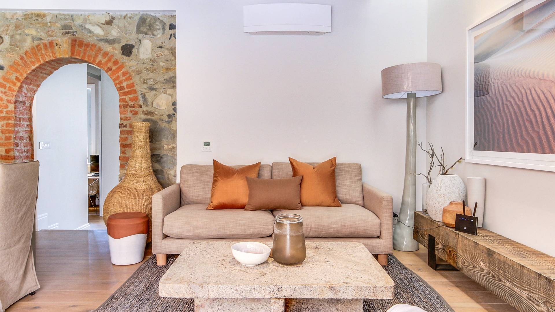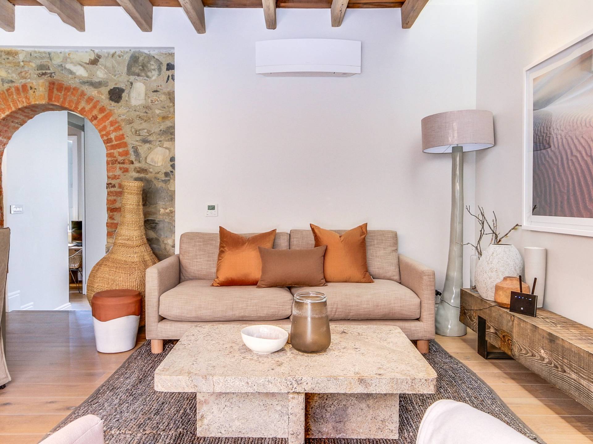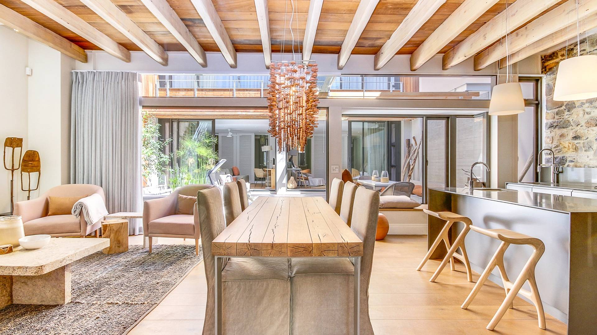 Η καρδιά αυτού του σπιτιού είναι το σαλόνι ενιαίας διαρρύθμισης, το οποίο είναι πραγματικά εξαιρετικό. Τα εκτεθειμένα ξύλινα δοκάρια παρέχουν χαρακτήρα, ενώ ο πολυέλαιος προσφέρει μια πινελιά κομψότητας.
