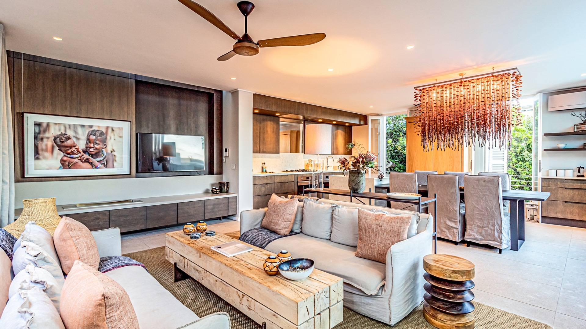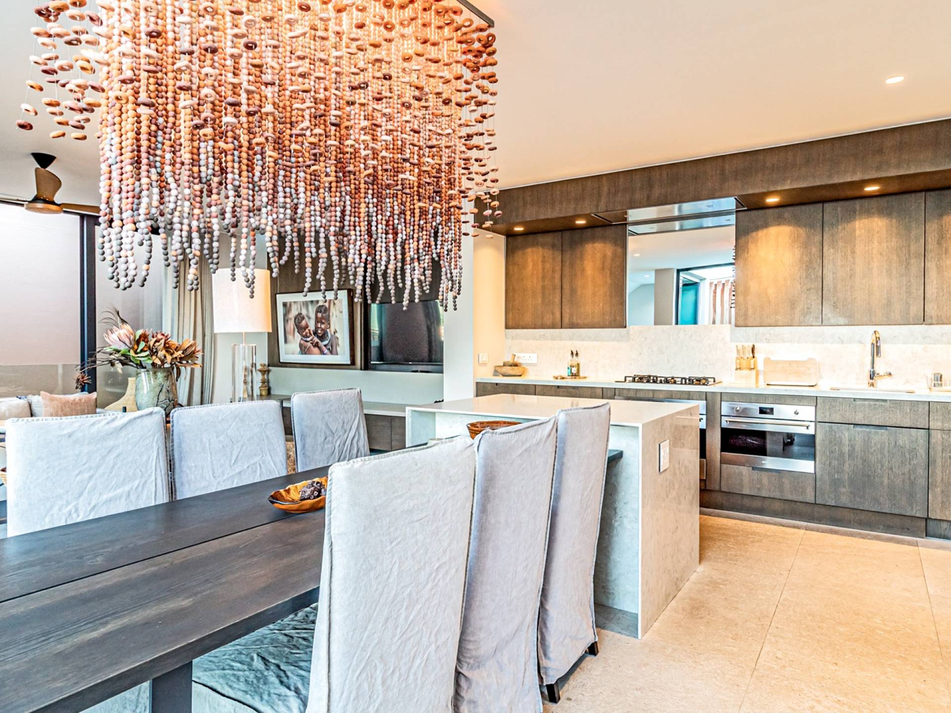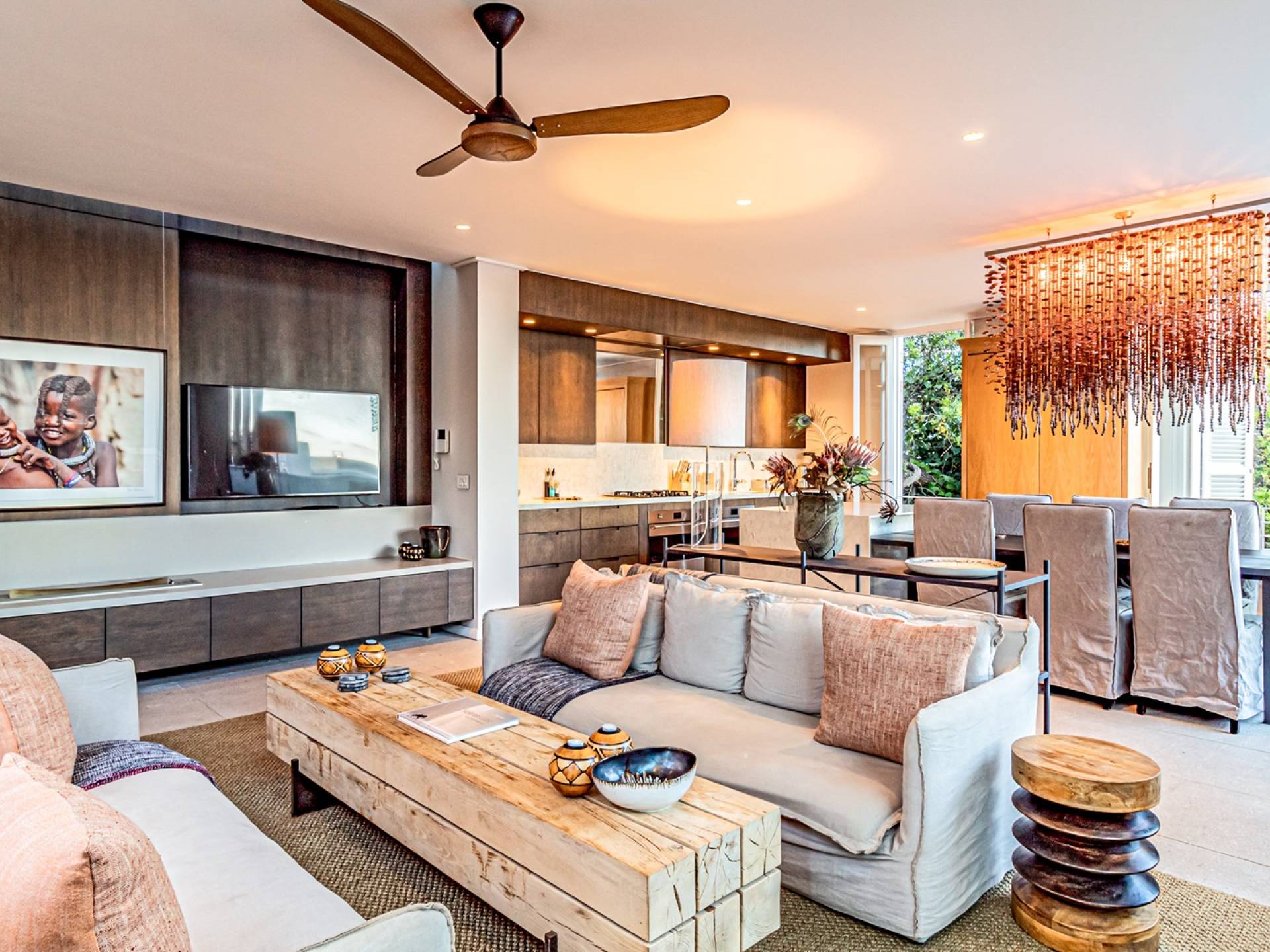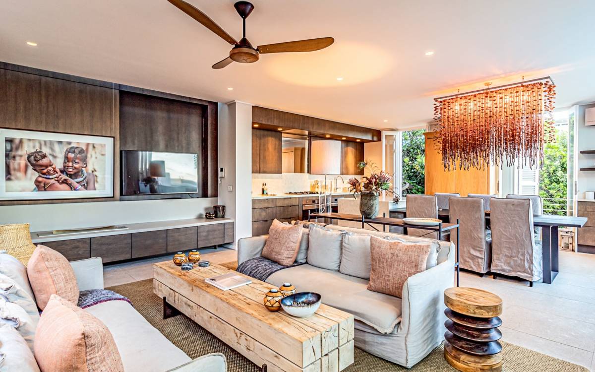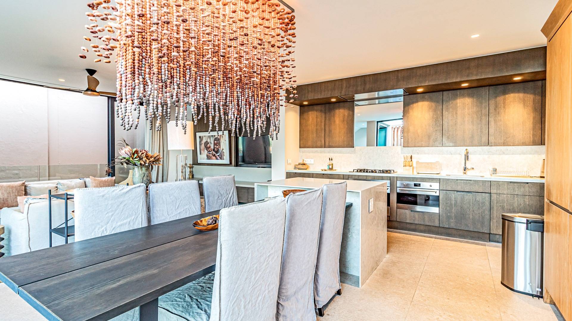 Το κύριο σαλόνι διαθέτει σαλόνι με μεγάλους άνετους καναπέδες, σαλόνι με τηλεόραση, τραπεζαρία για 6 άτομα και κουζίνα με δυνατότητα προετοιμασίας γευμάτων, εξοπλισμένη με όλα τα απαραίτητα. Οι πτυσσόμενες γυάλινες πόρτες ανοίγουν για να αποκαλύψουν μια πισίνα, η οποία είναι ιδανική για τις πιο ζεστές μέρες του καλοκαιριού. Κάθε ένα από τα τρία υπνοδωμάτια διαθέτει κρεβάτι king size και ιδιωτικό μπάνιο. Είναι όλα υπέροχα και ευρύχωρα και ο ουδέτερος συνδυασμός χρωμάτων είναι υπέροχος και χαλαρωτικός.
